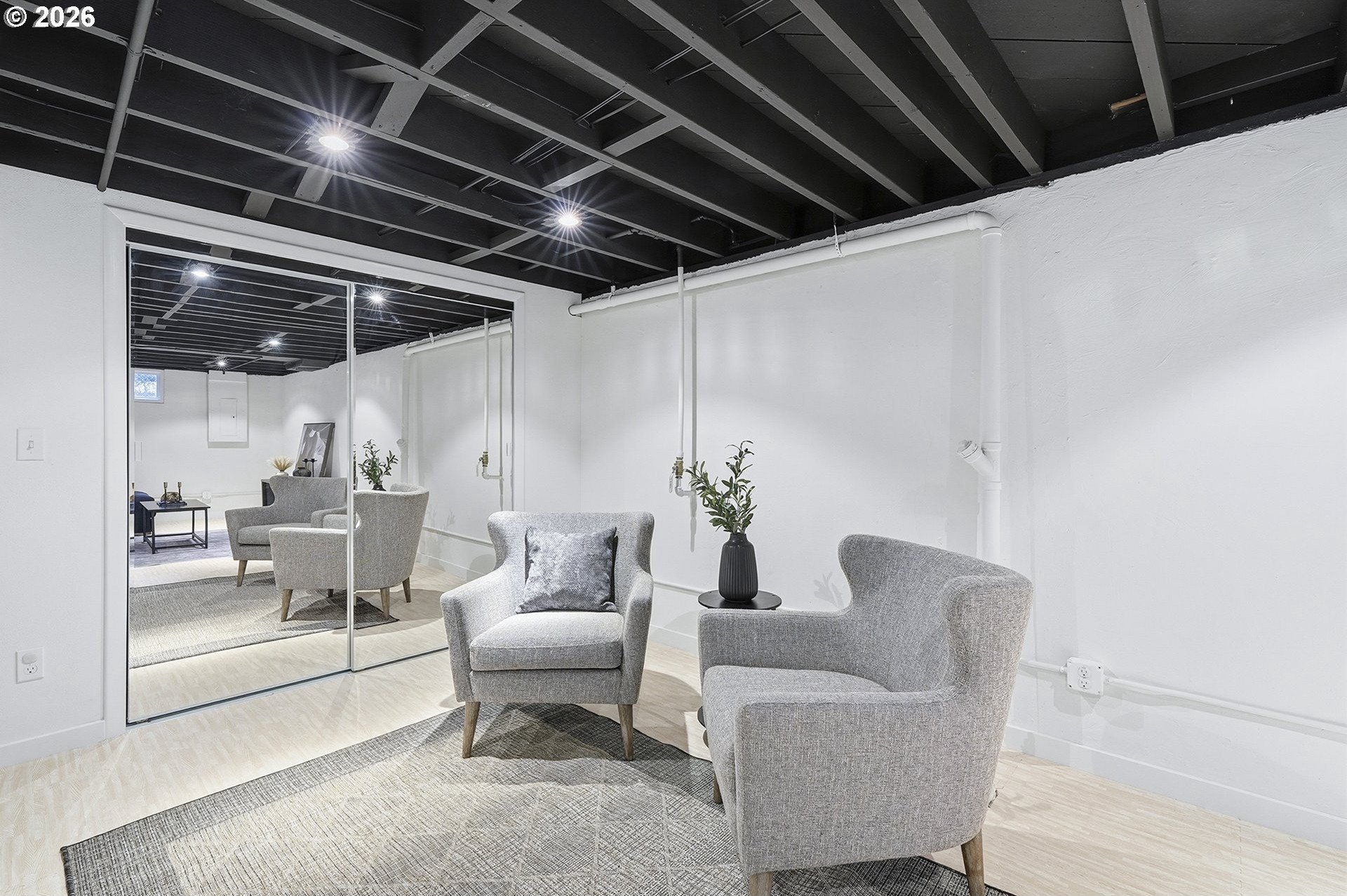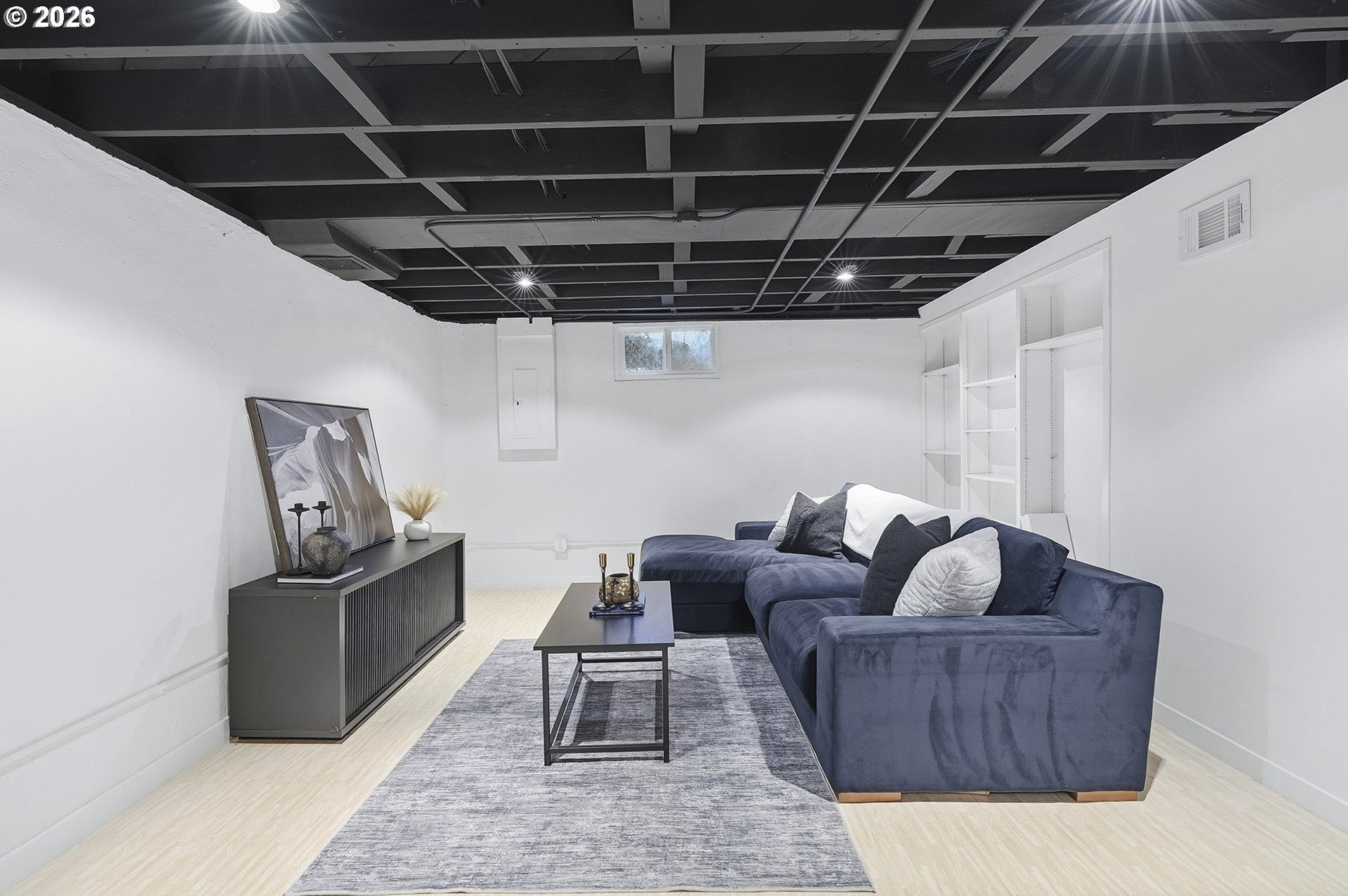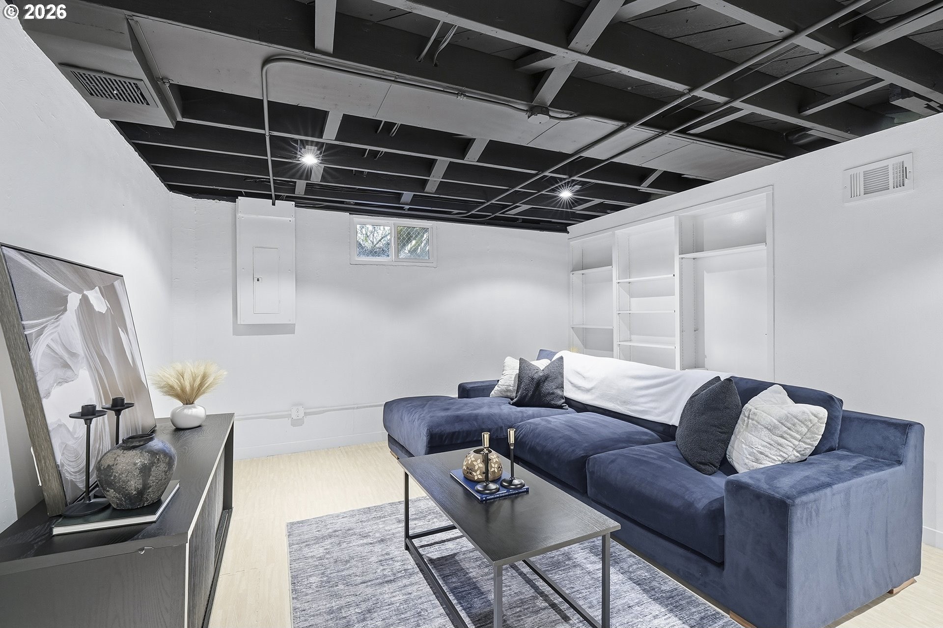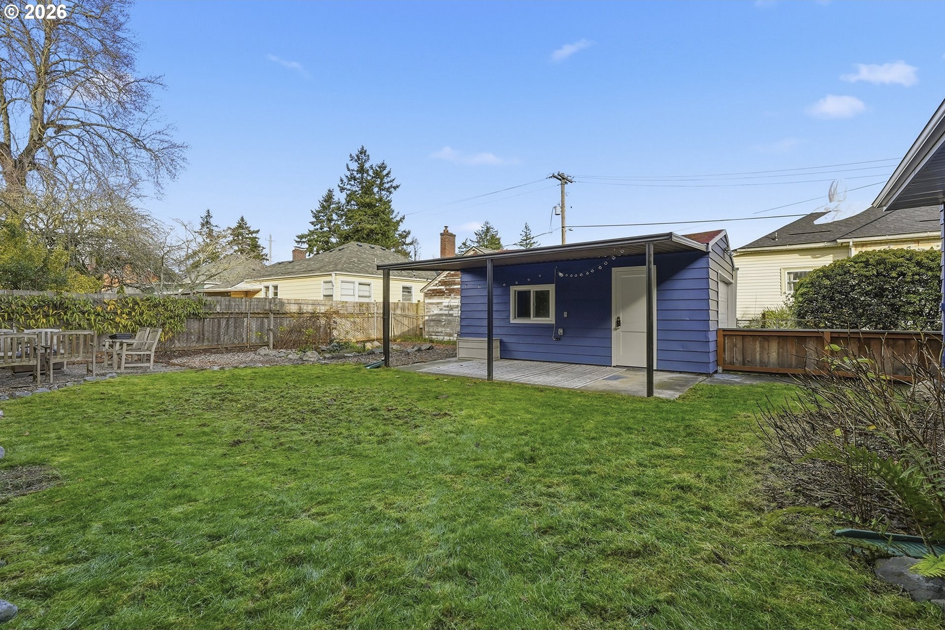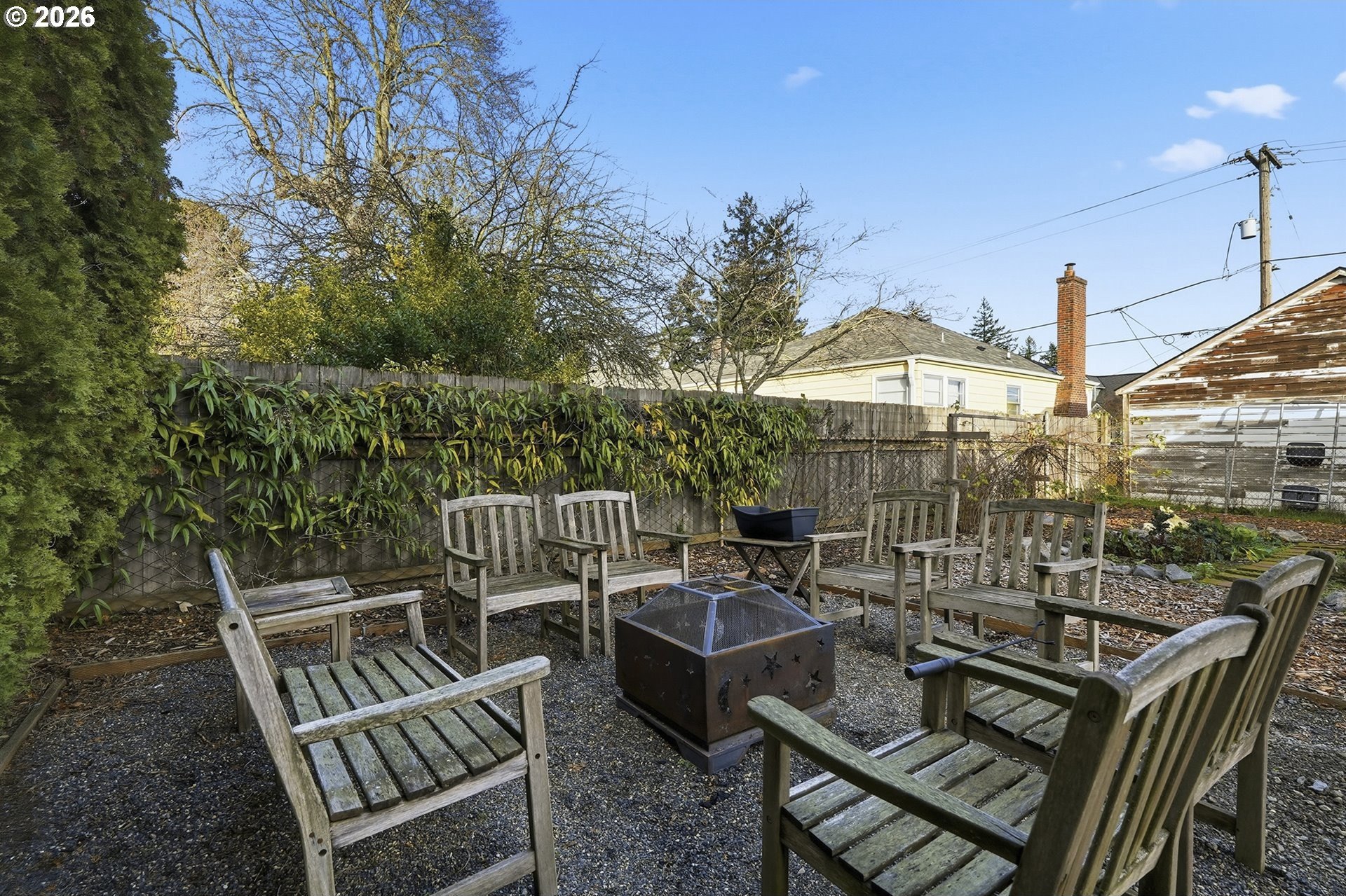 Updated windows flood the main floor with natural light, highlighting a flexible flow between living spaces. Upstairs, the fully renovated bedroom offers a versatile retreat, while the basement has been adapted to provide additional space for recreation.The private backyard is designed for year-round use. It features a generous covered patio, a dedicated firepit area, and a flat lawn with established garden beds. The tall hedge running along the west property line provides privacy and afternoon shade. This fenced, low-maintenance space offers a quiet sense of privacy for gardening or relaxing outdoors.Practical updates, including new plumbing, furnace, water heater, appliances and an upstairs mini-split system for heating and cooling, ensure the home is as functional as it is inviting.Located in the heart of Rose City Park, this property boasts a 93 Bike Score and a 74 Walk Score. Popular food carts and local cafes are just around the corner, placing the neighborhood's best amenities within easy reach. [Home Energy Score = 5. HES Report