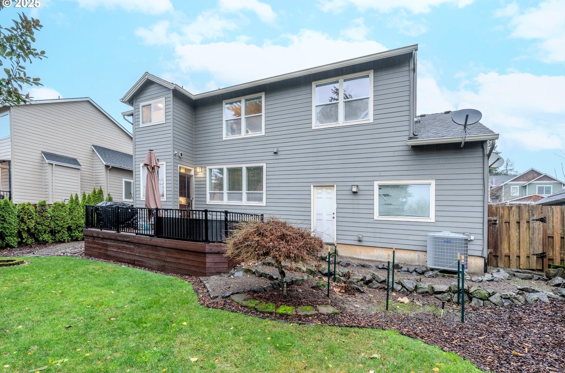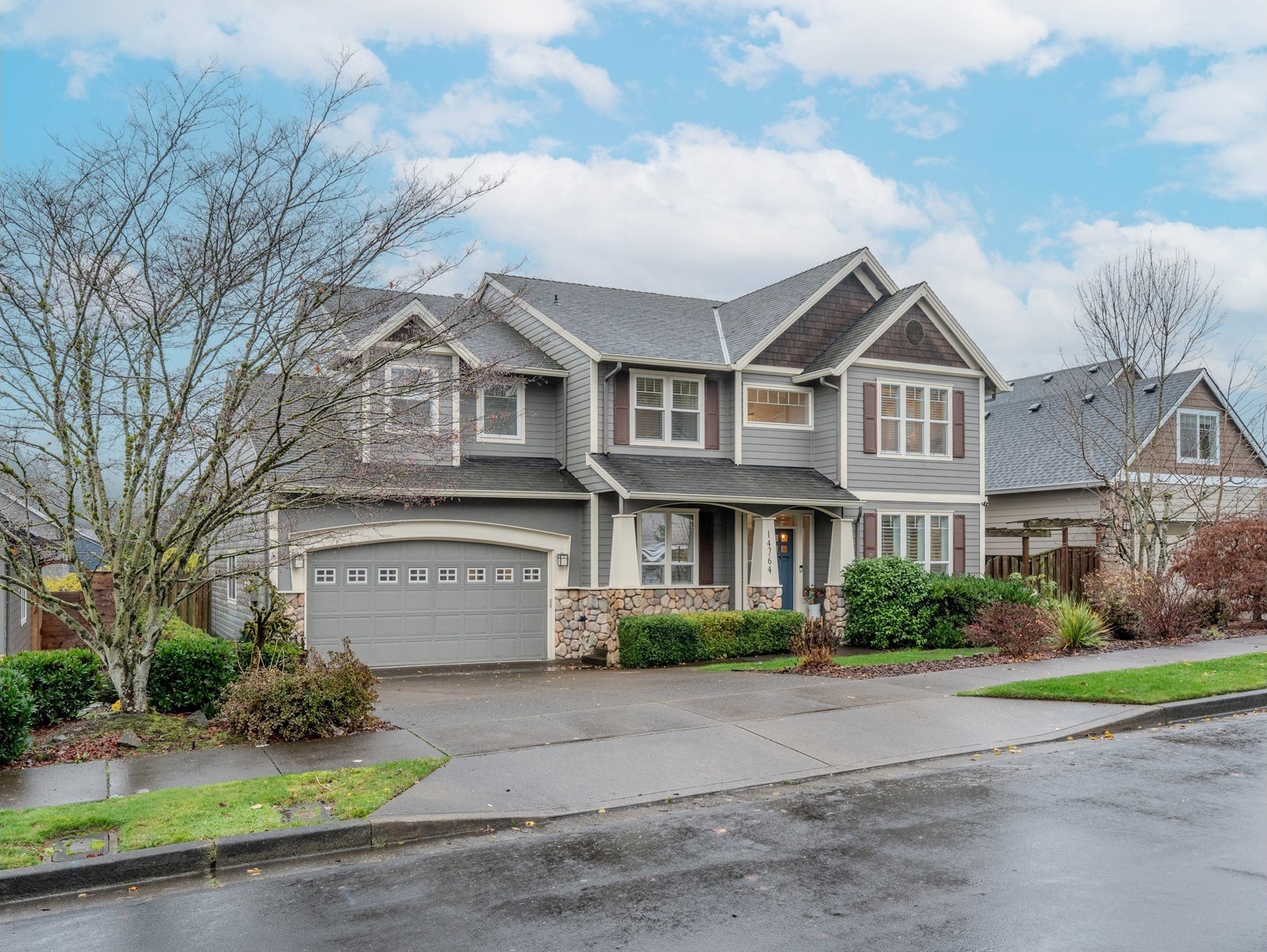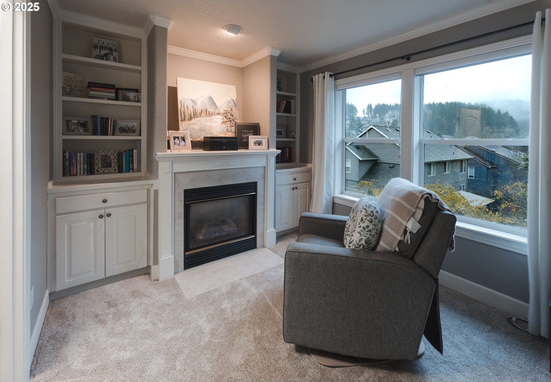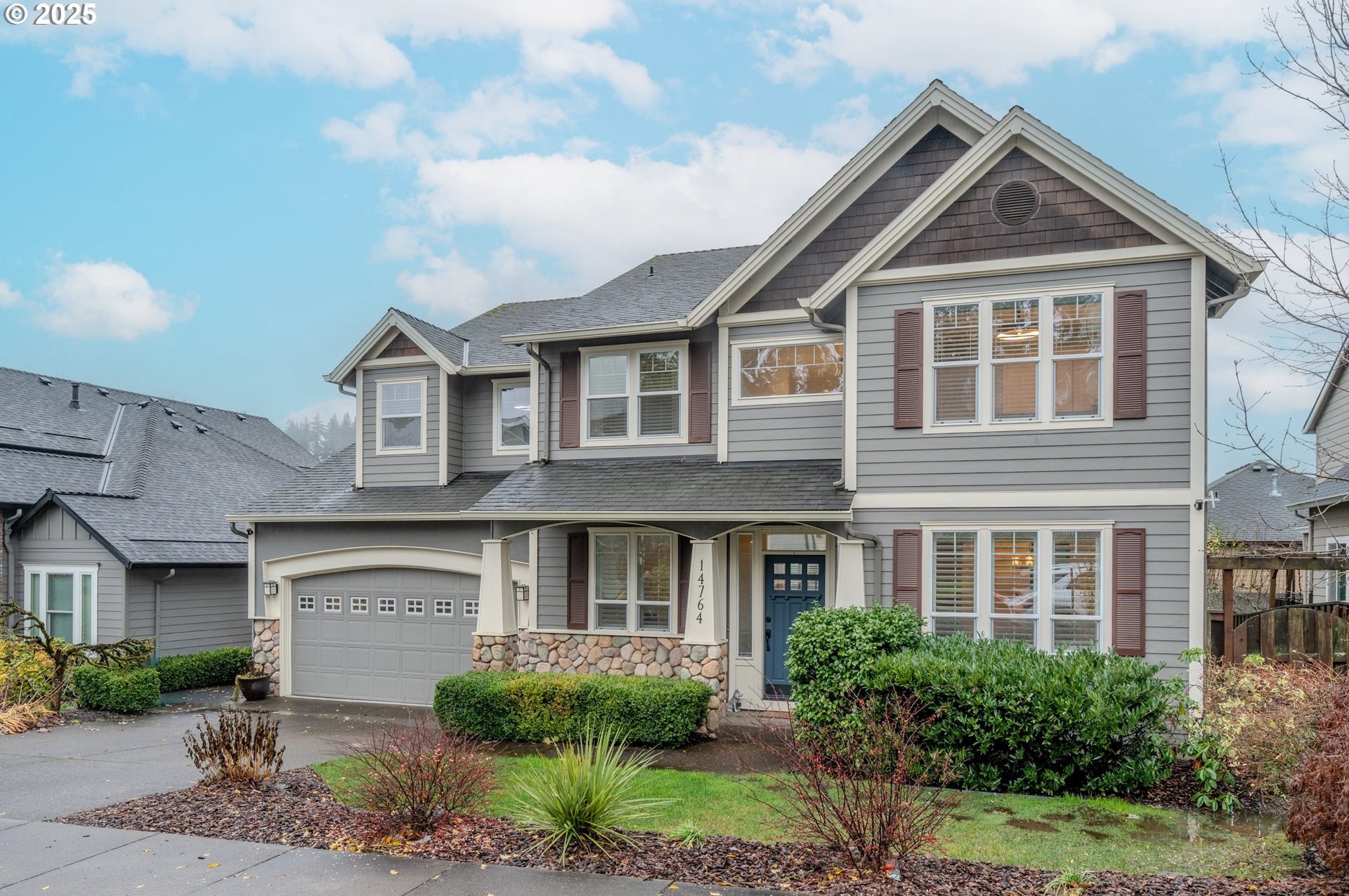 Located in the heart of Happy Valley, this stunning 5-bedroom, 4-bath custom home is a few blocks from hiking trails, nature preserves, and the bustling Happy Valley Park; home of Concerts in the Park, firework displays, and many other community activities. Combining elegant design with modern functionality, this home has a beautifully appointed kitchen featuring premium cabinetry, quartz countertops, S/S appliances, and a walk-in pantry w/ wine storage-perfect for entertaining or family gatherings. The open-concept living area showcases custom built-ins, a cozy fireplace, and abundant natural light. The main floor also boasts a great layout with an office/den, family room, living room, and dining room. Upstairs, the spacious primary suite offers a sitting area w/ fireplace and custom built-ins. The primary's ensuite bath was remodeled w/ luxurious finishes, custom tile, and heated floors. The roomy walk-in closet is customized by Closets By Design to enhance organization. Upstairs additional bedrooms and washer/dryer are thoughtfully laid out and storage features throughout! Breathe clean air with the upgraded UV filtration HVAC system and central air. Enjoy outdoor living viewing the landscaped yard from the deck, ideal for relaxing or entertaining. With an epoxy-coated 4 car tandem garage, flexible bonus space, and high-end finishes throughout, this home delivers comfort, craftsmanship, and timeless style in every detail!