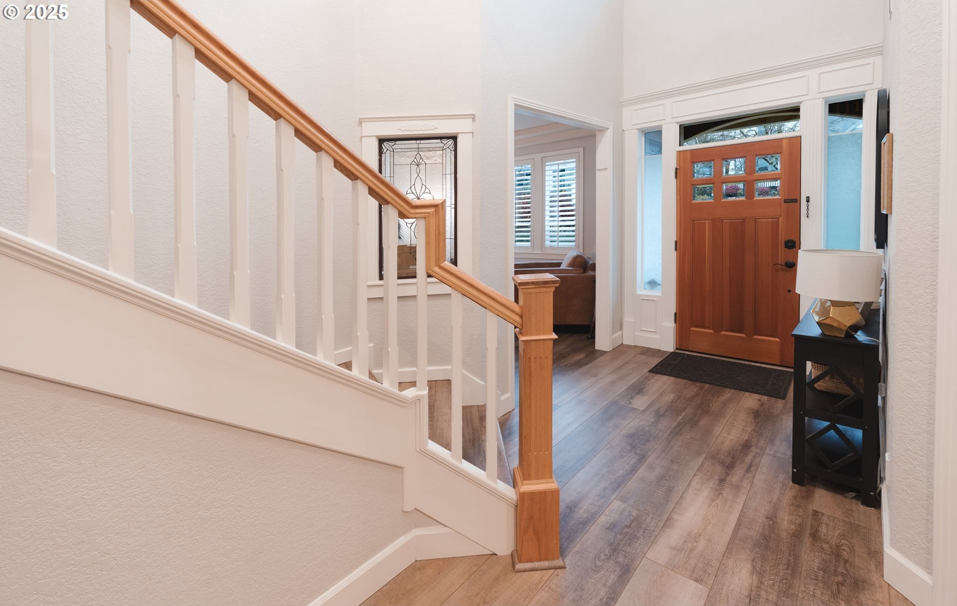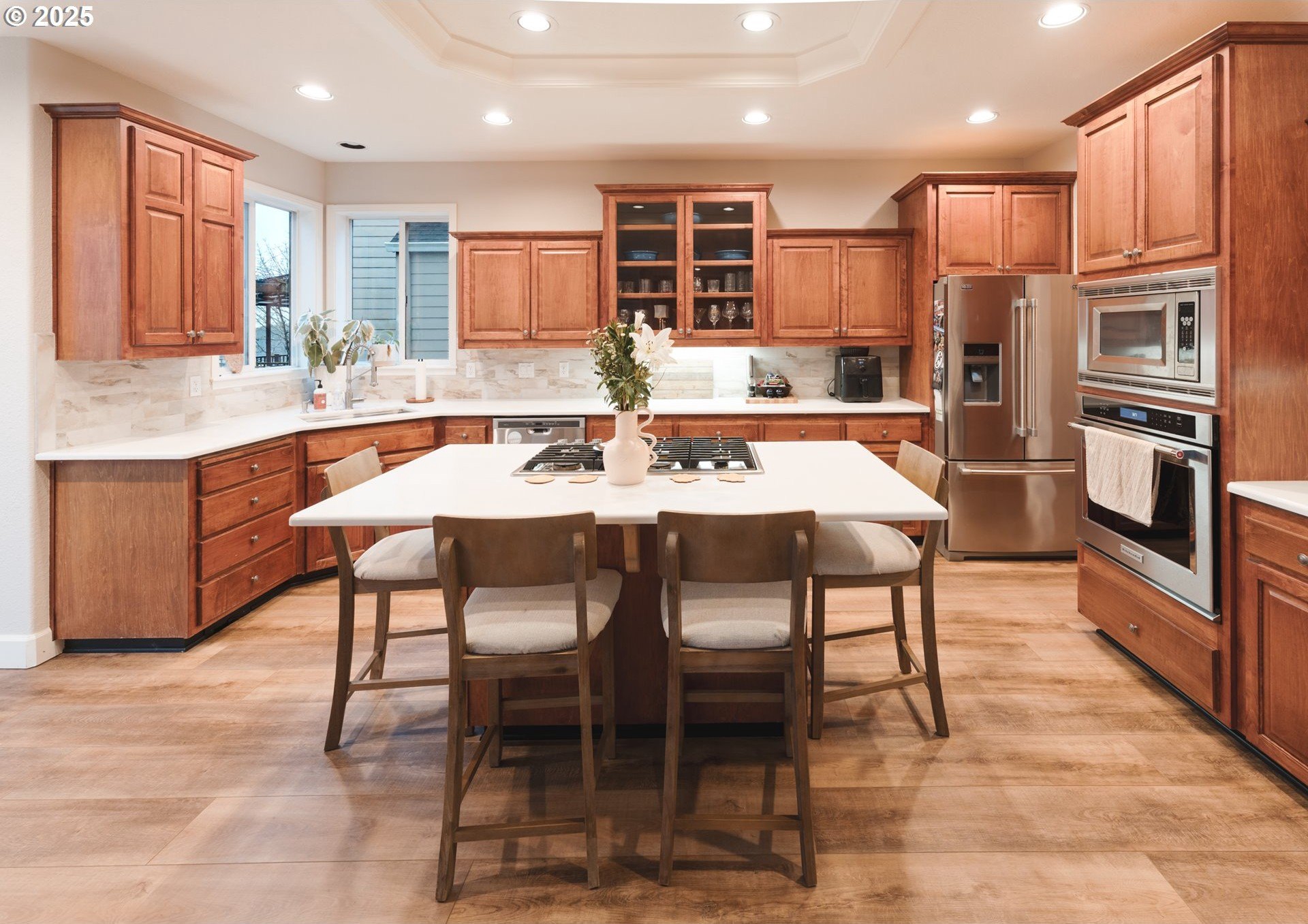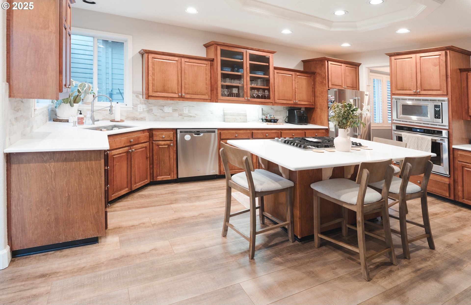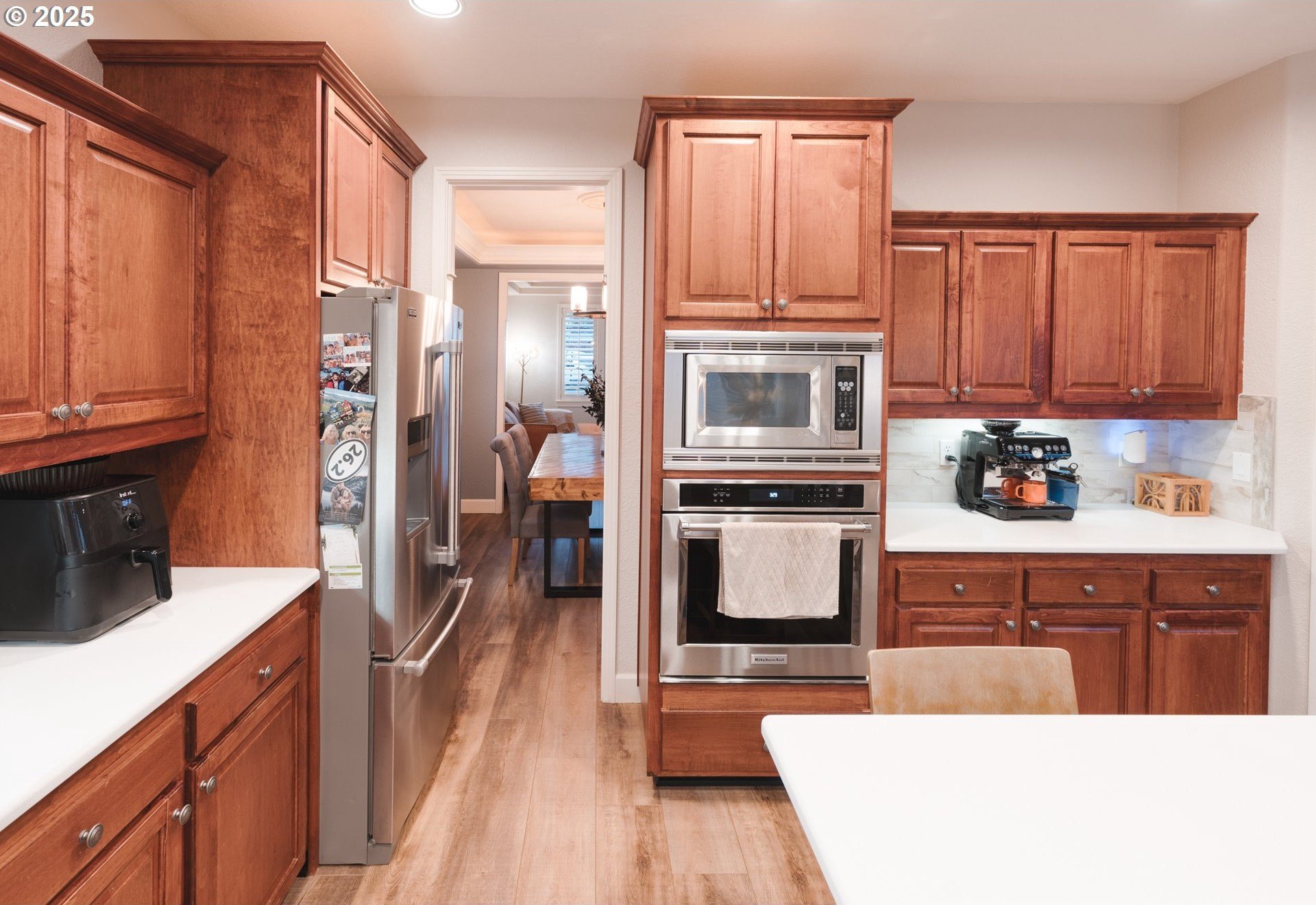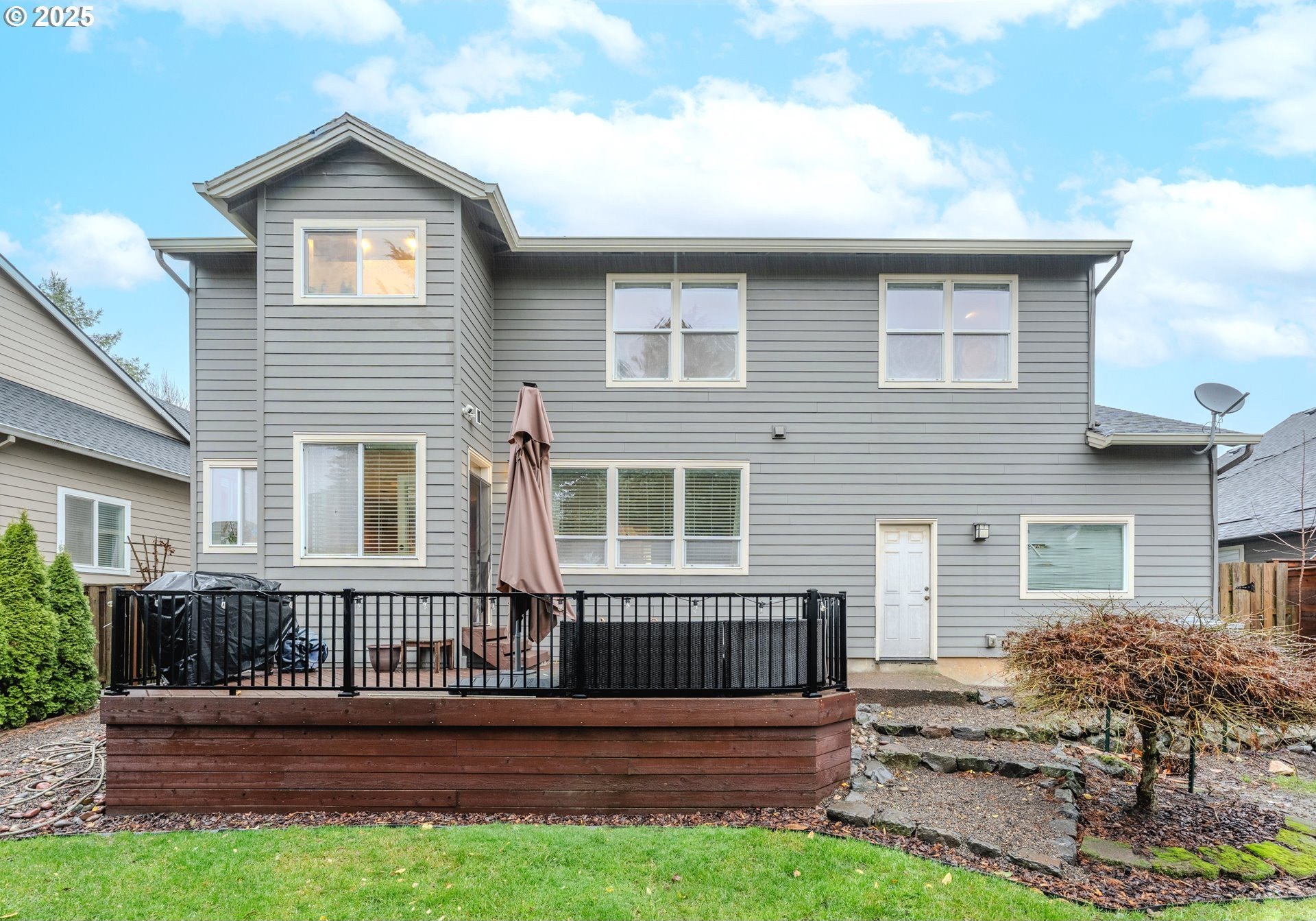 Located in the heart of Happy Valley, this stunning 5-bedroom, 4-bath custom home is a few blocks from hiking trails, nature preserves, and the bustling Happy Valley Park; home of Concerts in the Park, firework displays, and many other community activities. Combining elegant design with modern functionality, this home has a beautifully appointed kitchen featuring premium cabinetry, quartz countertops, S/S appliances, and a walk-in pantry w/ wine storage-perfect for entertaining or family gatherings. The open-concept living area showcases custom built-ins, a cozy fireplace, and abundant natural light. The main floor also boasts a great layout with an office/den, family room, living room, and dining room. Upstairs, the spacious primary suite offers a sitting area w/ fireplace and custom built-ins. The primary's ensuite bath was remodeled w/ luxurious finishes, custom tile, and heated floors. The roomy walk-in closet is customized by Closets By Design to enhance organization. Upstairs additional bedrooms and washer/dryer are thoughtfully laid out and storage features throughout! Breathe clean air with the upgraded UV filtration HVAC system and central air. Enjoy outdoor living viewing the landscaped yard from the deck, ideal for relaxing or entertaining. With an epoxy-coated 4 car tandem garage, flexible bonus space, and high-end finishes throughout, this home delivers comfort, craftsmanship, and timeless style in every detail!