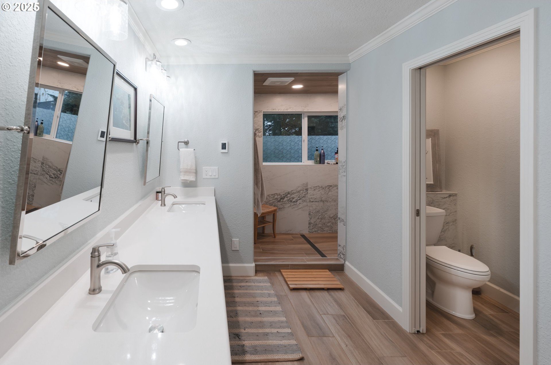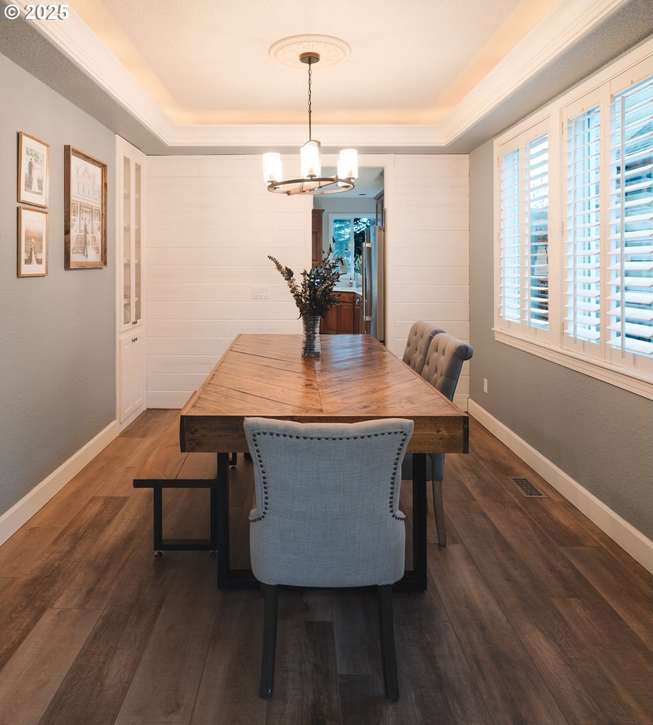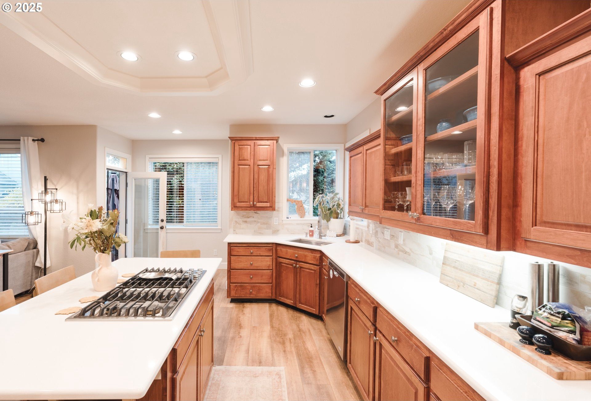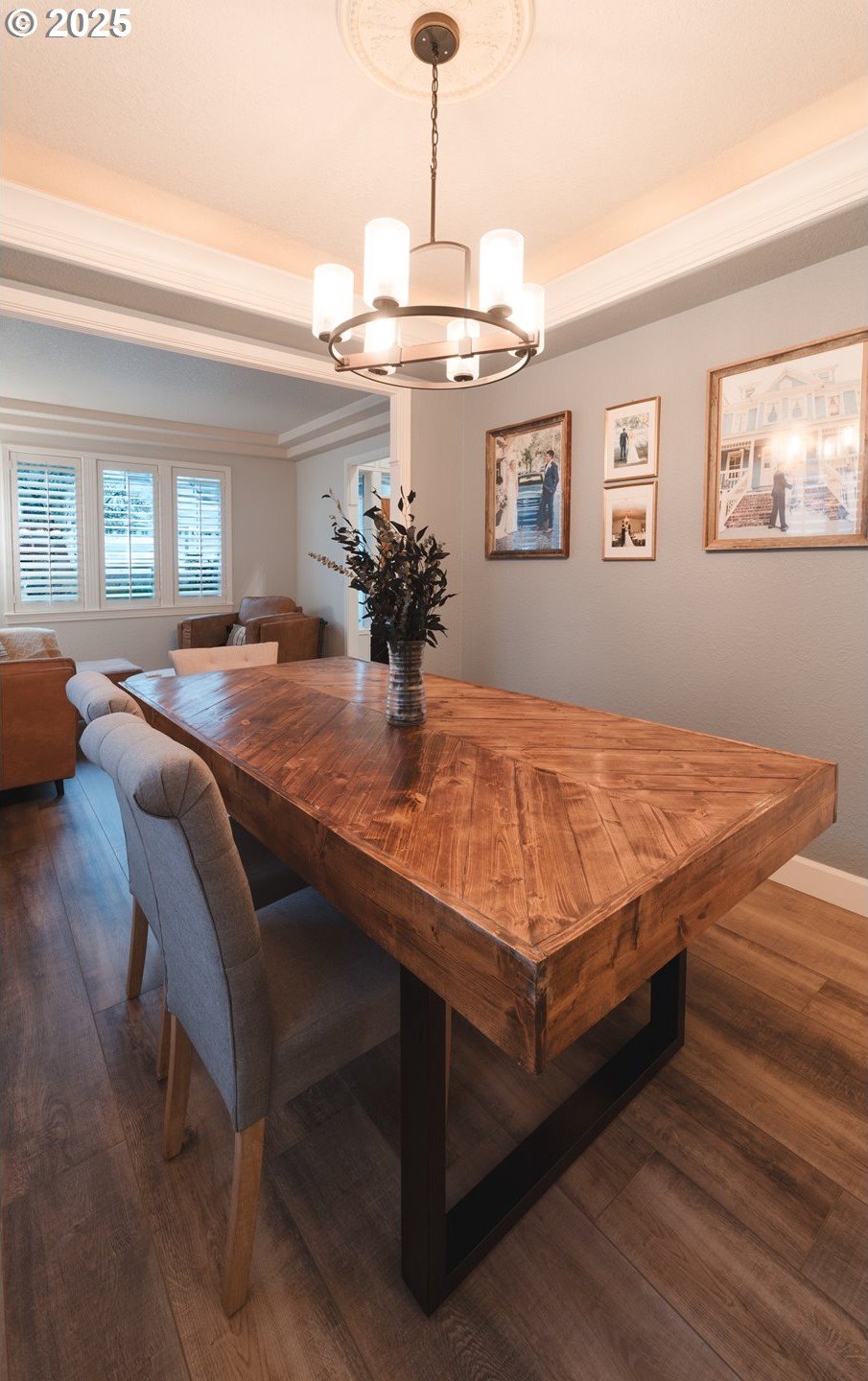 Located in the heart of Happy Valley, this stunning 5-bedroom, 4-bath custom home is a few blocks from hiking trails, nature preserves, and the bustling Happy Valley Park; home of Concerts in the Park, firework displays, and many other community activities. Combining elegant design with modern functionality, this home has a beautifully appointed kitchen featuring premium cabinetry, quartz countertops, S/S appliances, and a walk-in pantry w/ wine storage-perfect for entertaining or family gatherings. The open-concept living area showcases custom built-ins, a cozy fireplace, and abundant natural light. The main floor also boasts a great layout with an office/den, family room, living room, and dining room. Upstairs, the spacious primary suite offers a sitting area w/ fireplace and custom built-ins. The primary's ensuite bath was remodeled w/ luxurious finishes, custom tile, and heated floors. The roomy walk-in closet is customized by Closets By Design to enhance organization. Upstairs additional bedrooms and washer/dryer are thoughtfully laid out and storage features throughout! Breathe clean air with the upgraded UV filtration HVAC system and central air. Enjoy outdoor living viewing the landscaped yard from the deck, ideal for relaxing or entertaining. With an epoxy-coated 4 car tandem garage, flexible bonus space, and high-end finishes throughout, this home delivers comfort, craftsmanship, and timeless style in every detail!