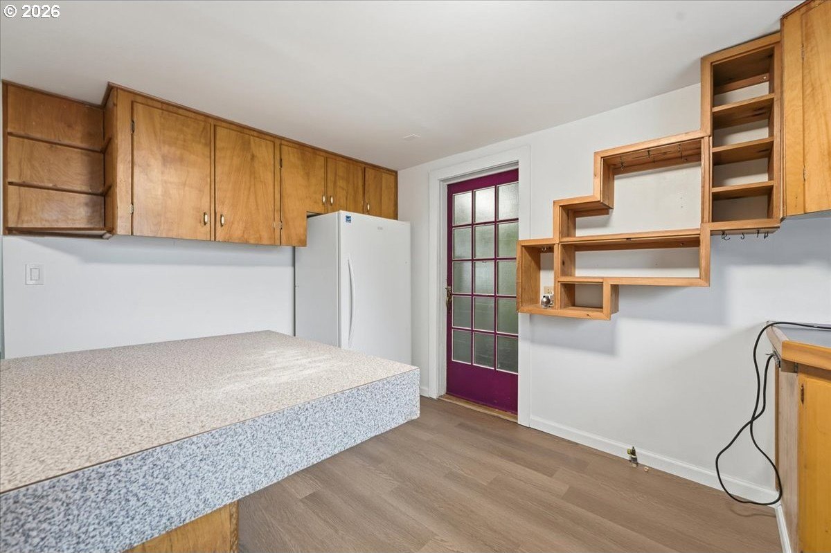Welcome to your urban homestead, set on a flat 1-acre parcel offering privacy, potential, and room to dream. First time on the market in 54 years, this property presents a rare opportunity for a new owner with vision and imagination. Enjoy a variety of fruit trees, wide-open outdoor space, and a substantial 1,200 sq ft barn/garage, perfect for a workshop, storage, hobbies, or future expansion. The home features 4 bedrooms (2 on the main and 2 upstairs) and 2 full bathrooms, with recent flooring updates, a new 2024 roof, and new plumbing, providing a solid foundation for your next chapter. Enjoy the peaceful, semi-rural feel perfect for your urban farm, while remaining conveniently close to everyday amenities. Bring your contractor, your plans and creativity, properties like this are increasingly rare, offering the combination of land, privacy, flexibility, and long-term potential. This is your chance to create something truly special. Buyer to confirm sq. ft, and lot size and any development potential.