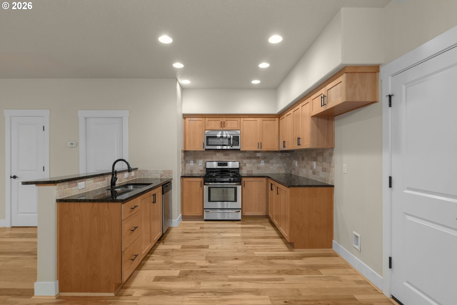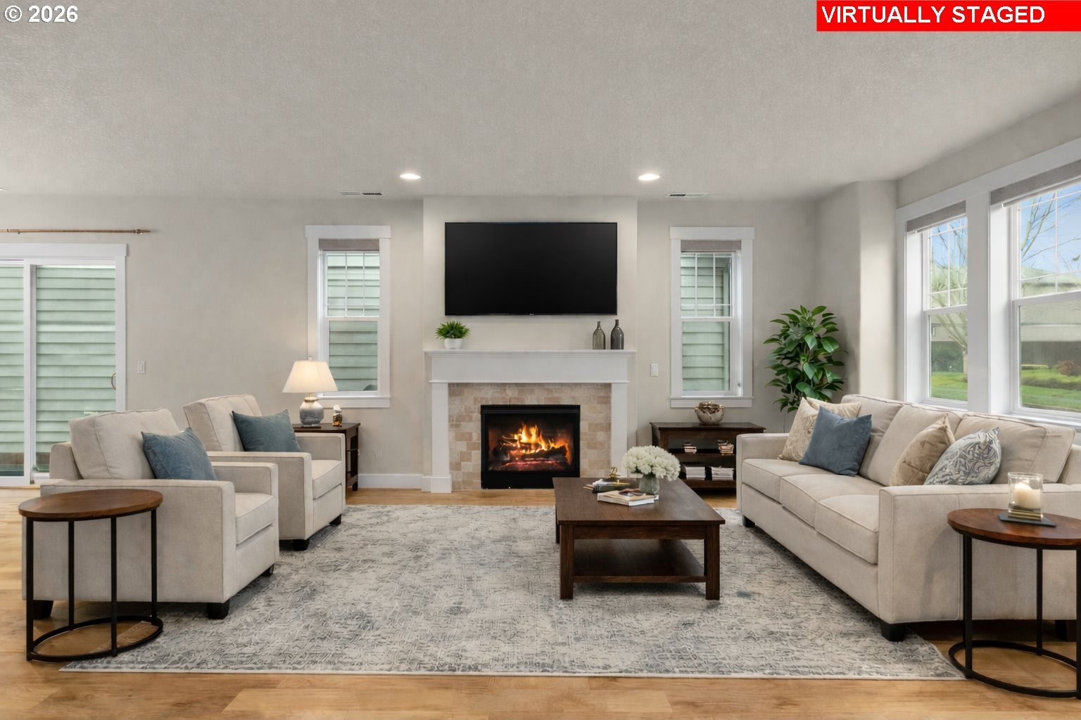 OPEN SUNDAY 1/11 1-3! Impeccably well maintained 2-level home in the lovely Meadows at Baseline Woods community! Main level is open and spacious with high ceilings, beautiful hardwood floors, and gas fireplace along with plenty of windows allowing natural lighting. Kitchen comes with granite counters, custom backsplash, and stainless-steel gas appliances. Dining area with slider door to patio is great for BBQs. Upstairs, the primary bedroom is generously sized, featuring attached bathroom with double sinks, walk-in shower, and walk-in closet. Also, on upper, two additional bedrooms, hall bathroom, and space for washer/dryer hookup. Attached two-car garage access from alley behind home; ample street parking available for visitors. Great location minutes to Streets of Tanasbourne for shopping and dining, also close to max station, Intel campuses, Nike, and Costco!