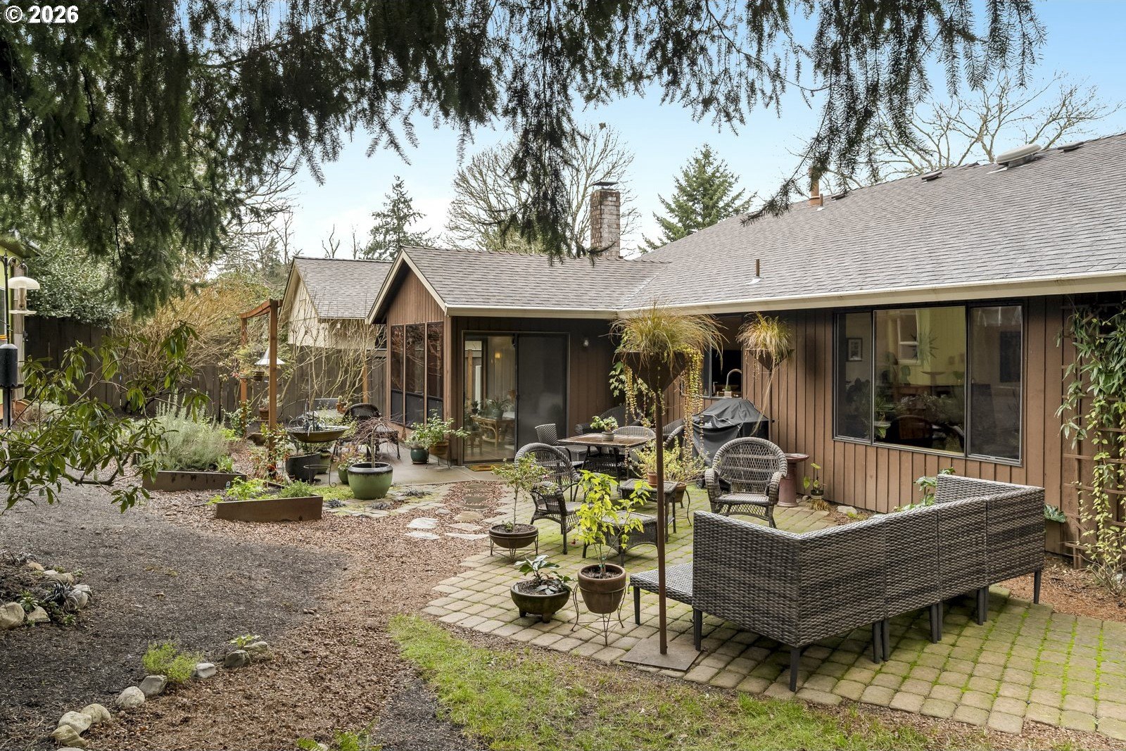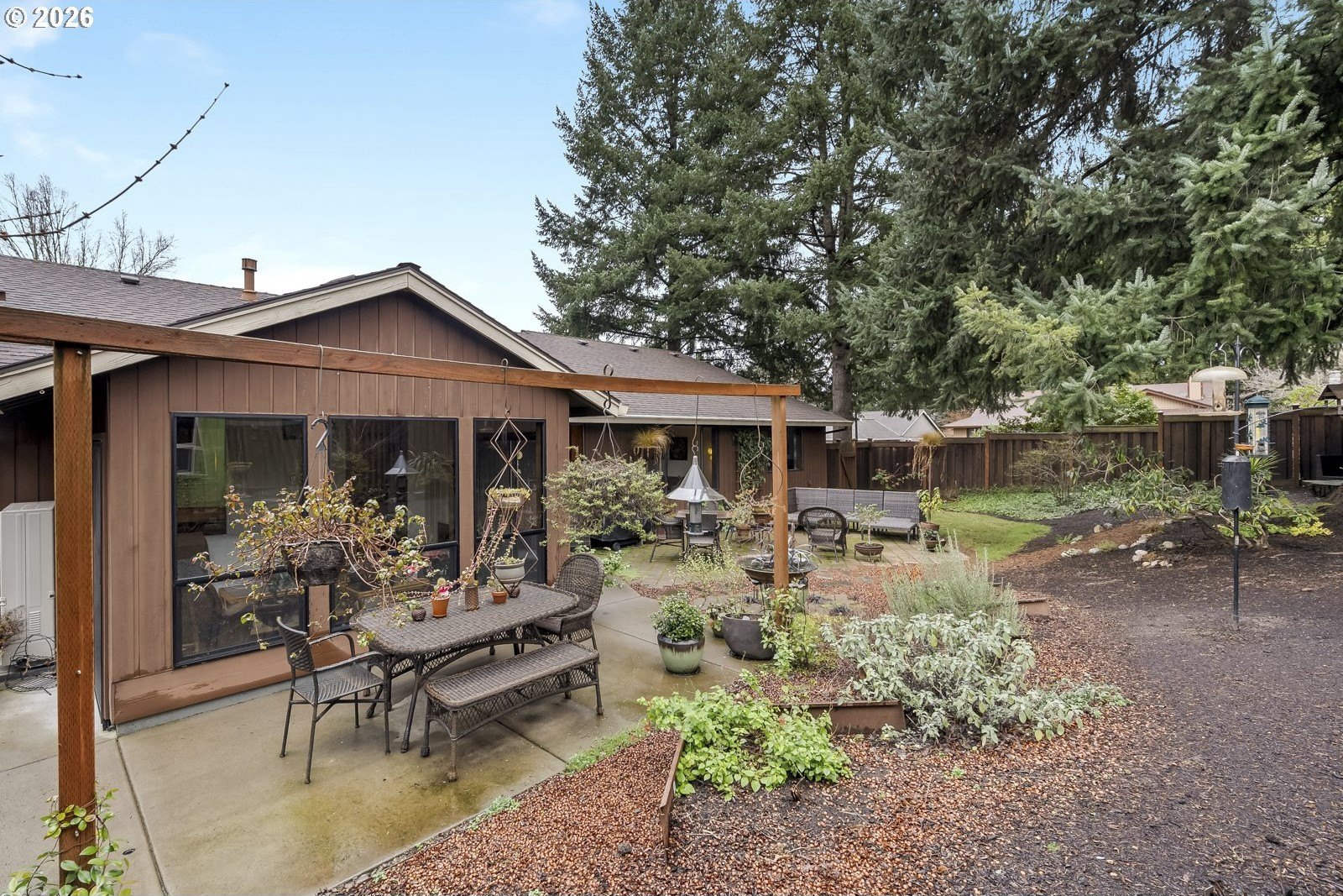 Warm and inviting single-level home on a private corner lot in the heart of Tigard. Designed for comfortable everyday living, this spacious 3-bedroom, 2-bath home offers a generous living room, an open kitchen and family room layout, and a formal dining space-perfect for both daily life and gathering with friends. The cozy family room features a gas fireplace and built-in bookshelves, creating an ideal spot to unwind. Fresh interior paint gives the home a light, refreshed feel, and recent updates include a new heat pump, furnace, and hot water heater for year-round comfort. The primary bedroom faces the backyard and includes double closets and an en-suite bath. A sunny sunroom adds flexible bonus space-perfect for morning coffee, afternoon reading, or simply enjoying the peaceful surroundings. Outside, the fully fenced backyard feels private and serene, with a patio and cozy sitting areas ideal for relaxing, entertaining, or watching the birds. The location truly can't be beat-central to downtown Tigard, close to restaurants in Lake Oswego, shopping at Bridgeport Village, easy freeway access, and a quick drive to wine country. A wonderful opportunity for easy single-level living in a fantastic central location and neighborhood.