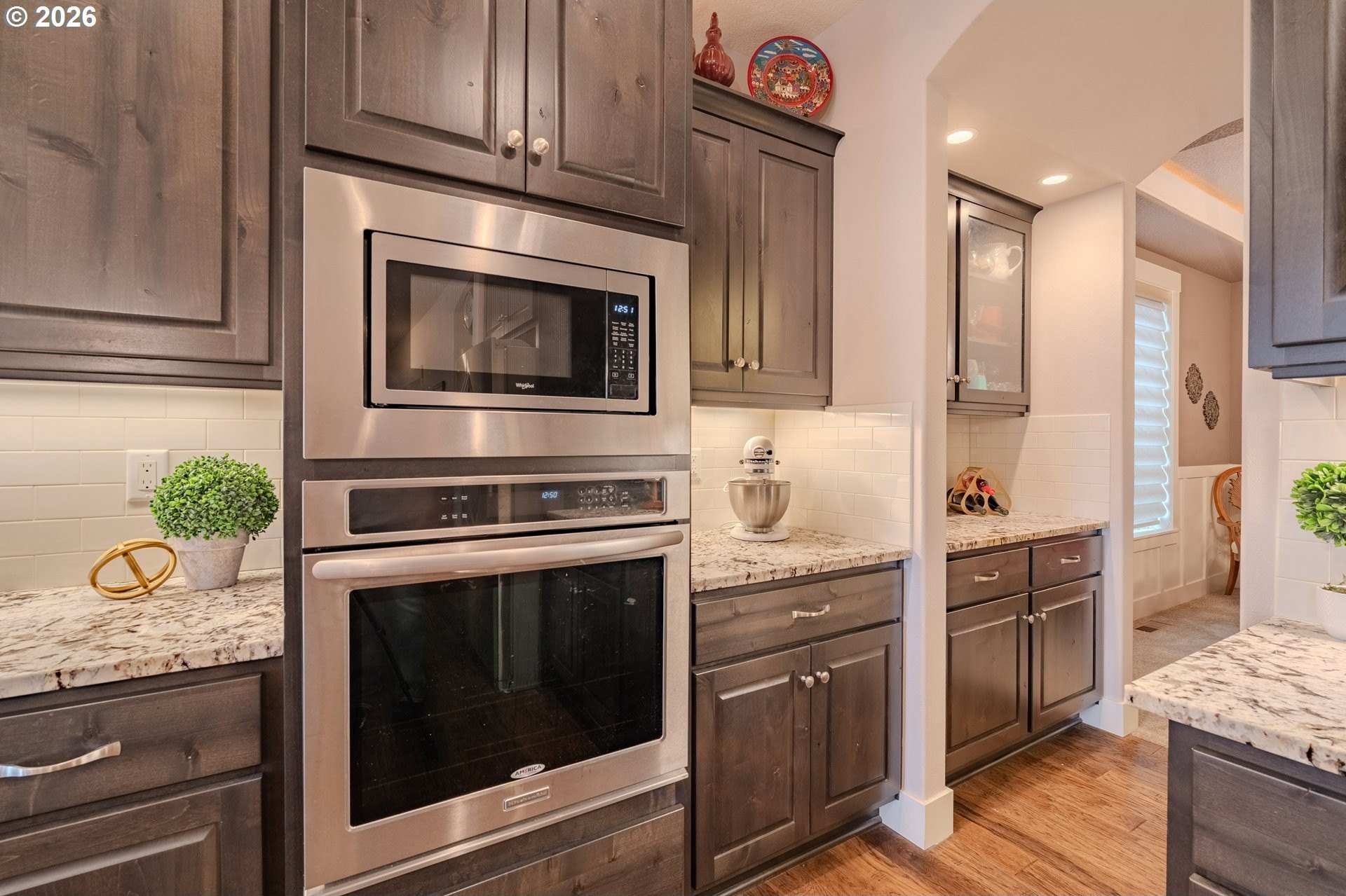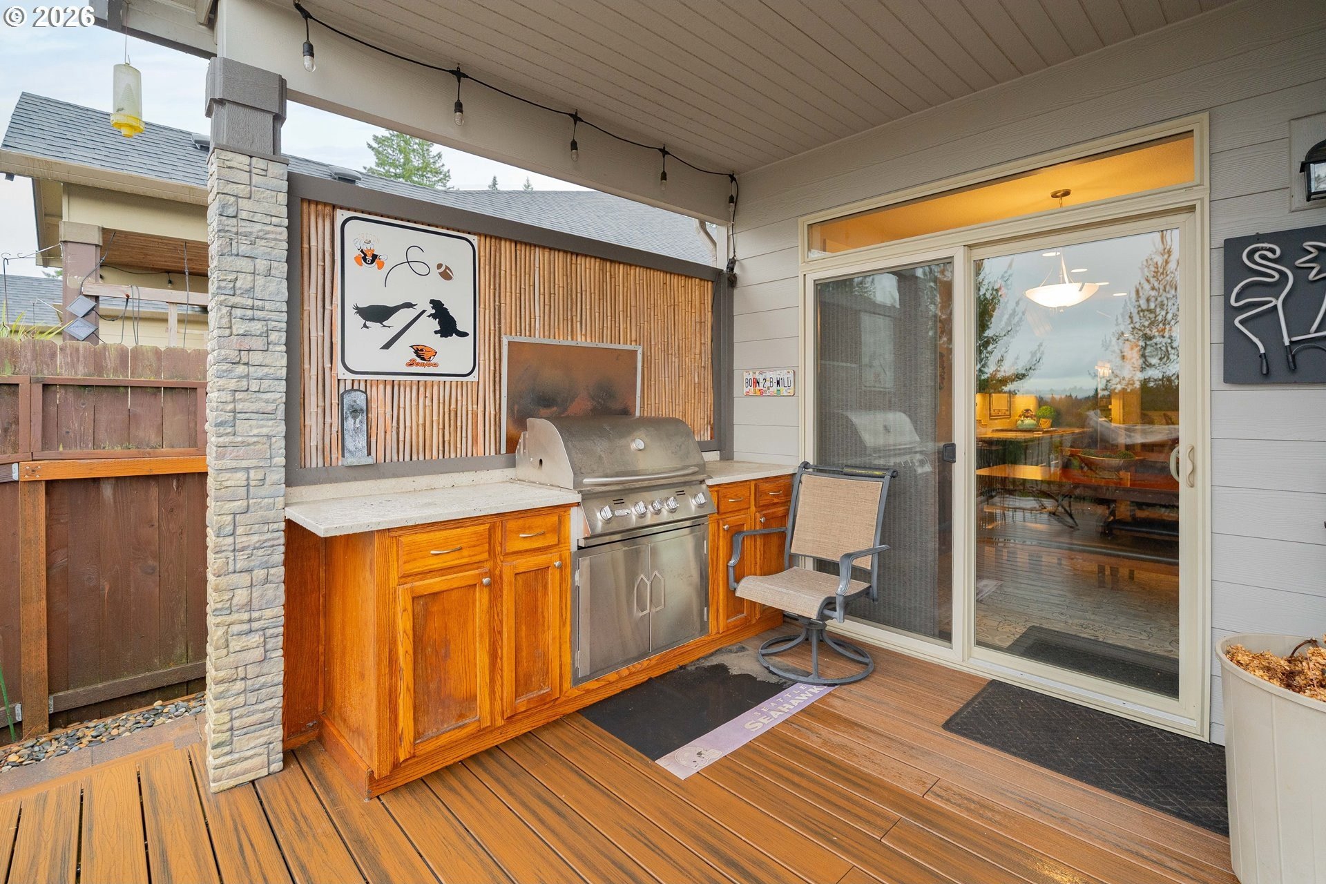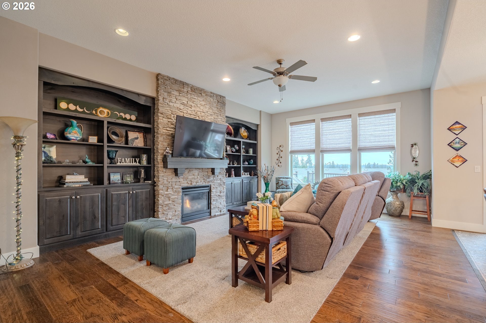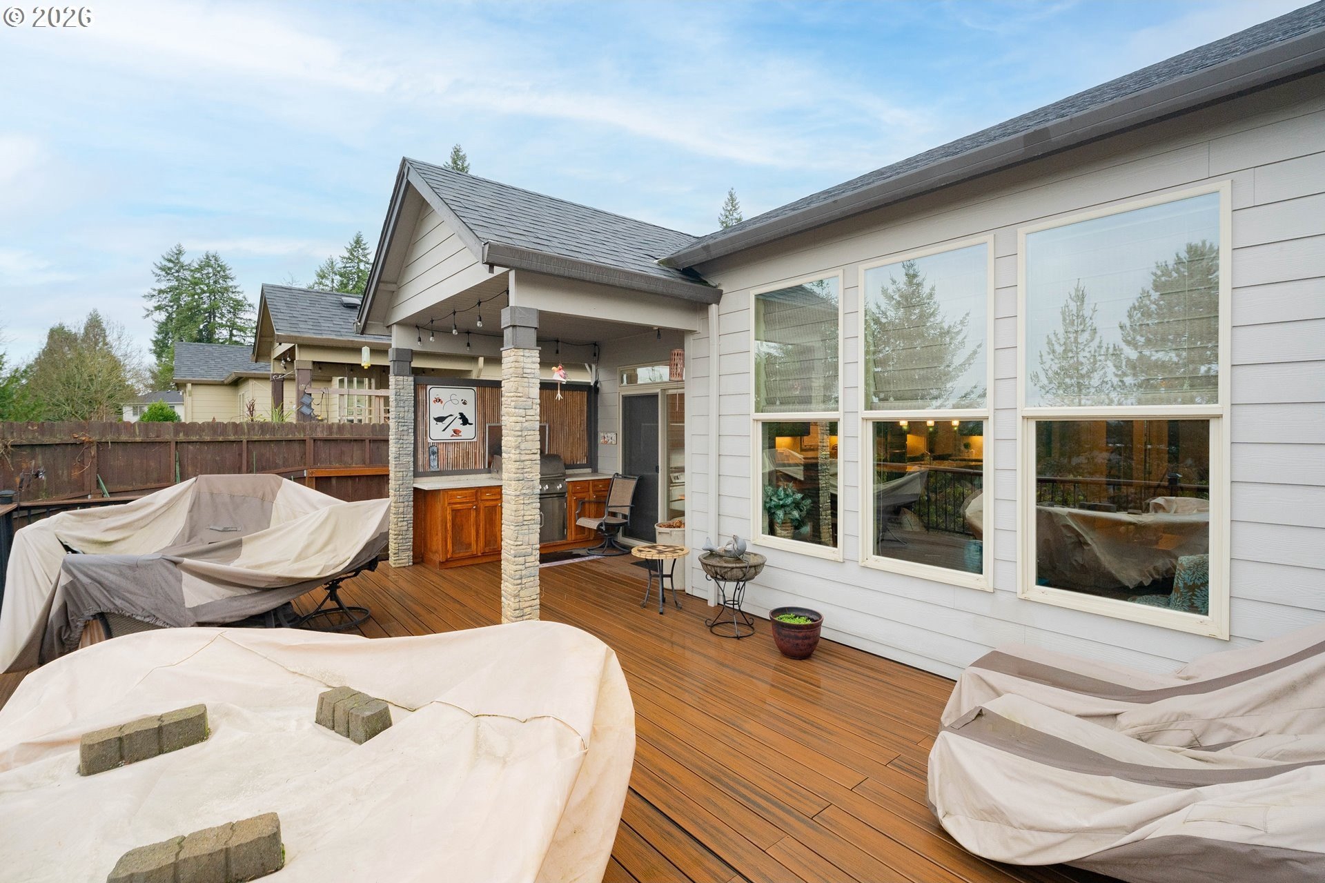 Welcome home to a thoughtfully designed residence where comfort, functionality, and ease of living come together in one of Salmon Creek's most peaceful, quiet neighborhoods. Originally built as the builder's model home in 2013, this residence showcases an elevated level of finishes and thoughtful upgrades throughout.A front office/den provides flexible space for working from home or a quiet retreat, while engineered hardwood floors and wide hallways lead into a warm, inviting great room anchored by a floor-to-ceiling stone gas fireplace with custom built-ins-ideal for everyday living and effortless entertaining.The kitchen is both stylish and practical, featuring granite countertops, a large center island, gas cooktop, butler's pantry, and separate pantry. The adjacent dining area is accented by classic wainscoting, creating an elevated yet comfortable space for gatherings. Thoughtful storage throughout and a laundry room with utility sink and built-in bench add to the home's everyday ease.The primary suite offers a private retreat with dual closets and a spa-inspired bath. Step outside to enjoy a low-maintenance outdoor living space designed for use-not upkeep-featuring Trex decking, raised garden beds, a covered patio, and a fully equipped outdoor kitchen, all complemented by territorial views and seasonal views of Mt. Hood.All of this is set just minutes from I-5 and I-205, Legacy Salmon Creek Medical Center, and Washington State University Vancouver, offering exceptional convenience without sacrificing tranquility.This is a home designed for buyers who value turn-key living, thoughtful design, and a low-maintenance lifestyle-with more time to enjoy life and less time spent on upkeep.