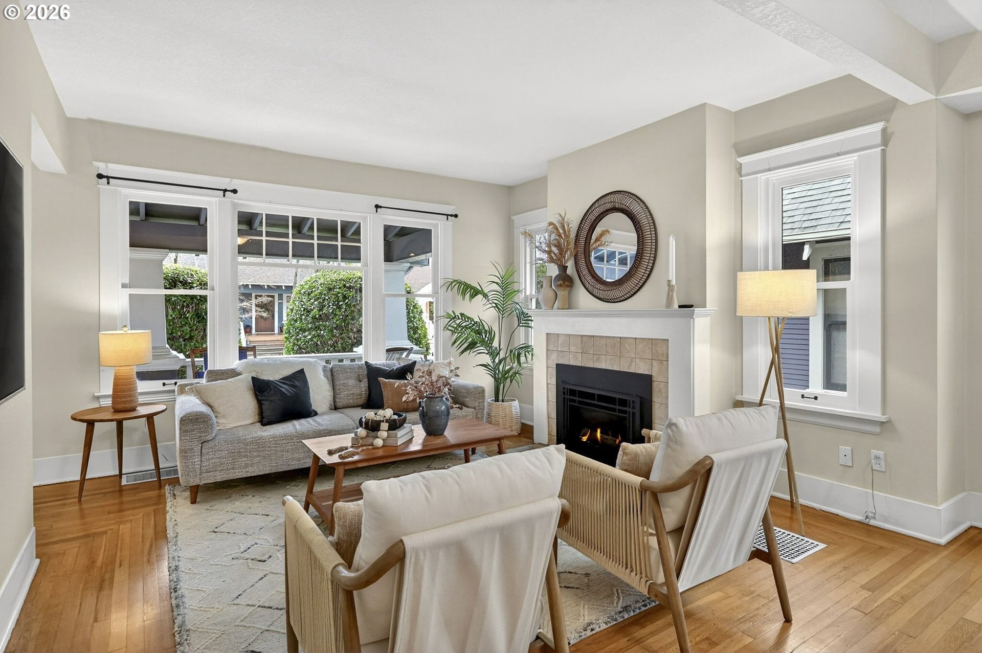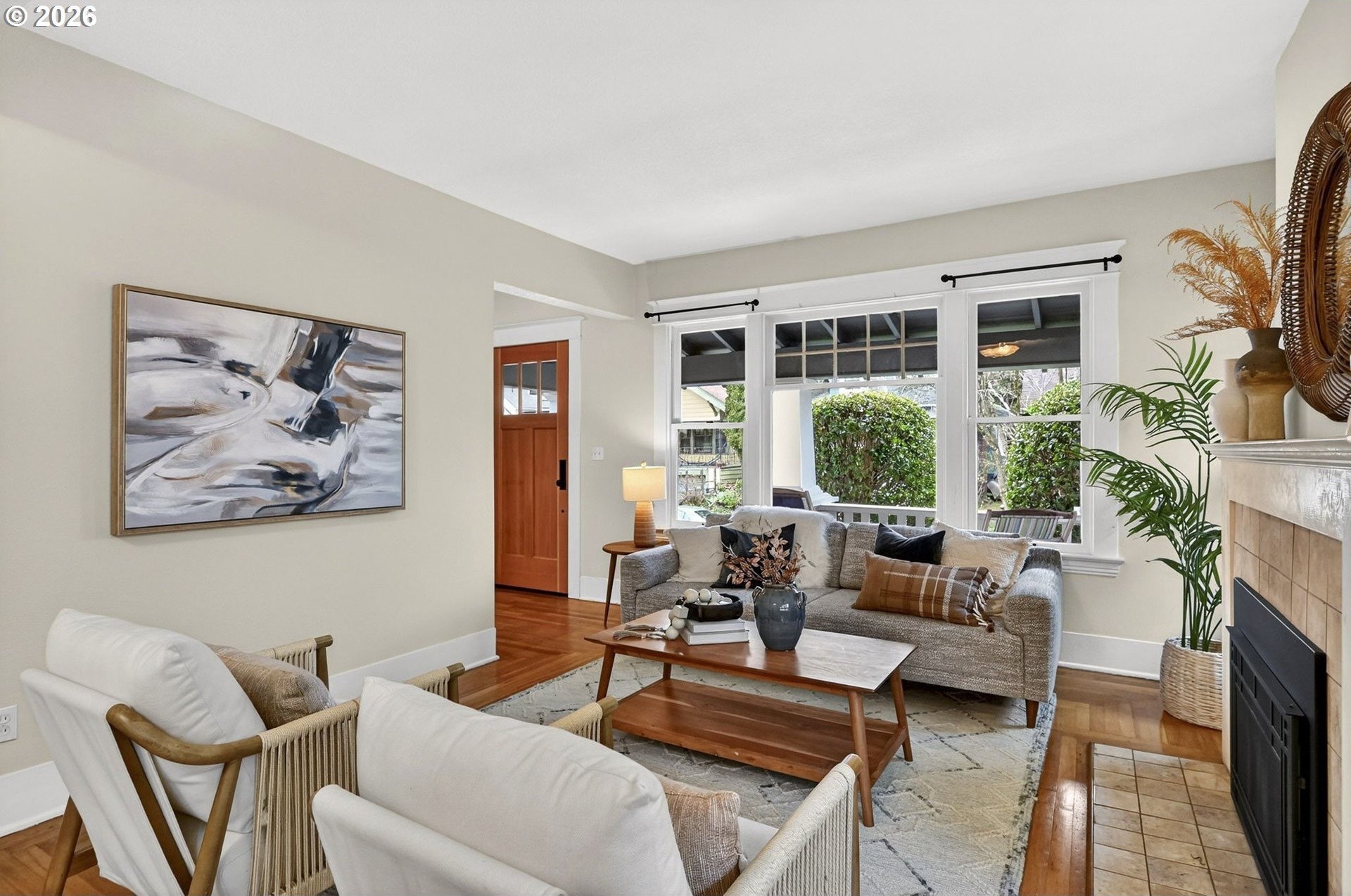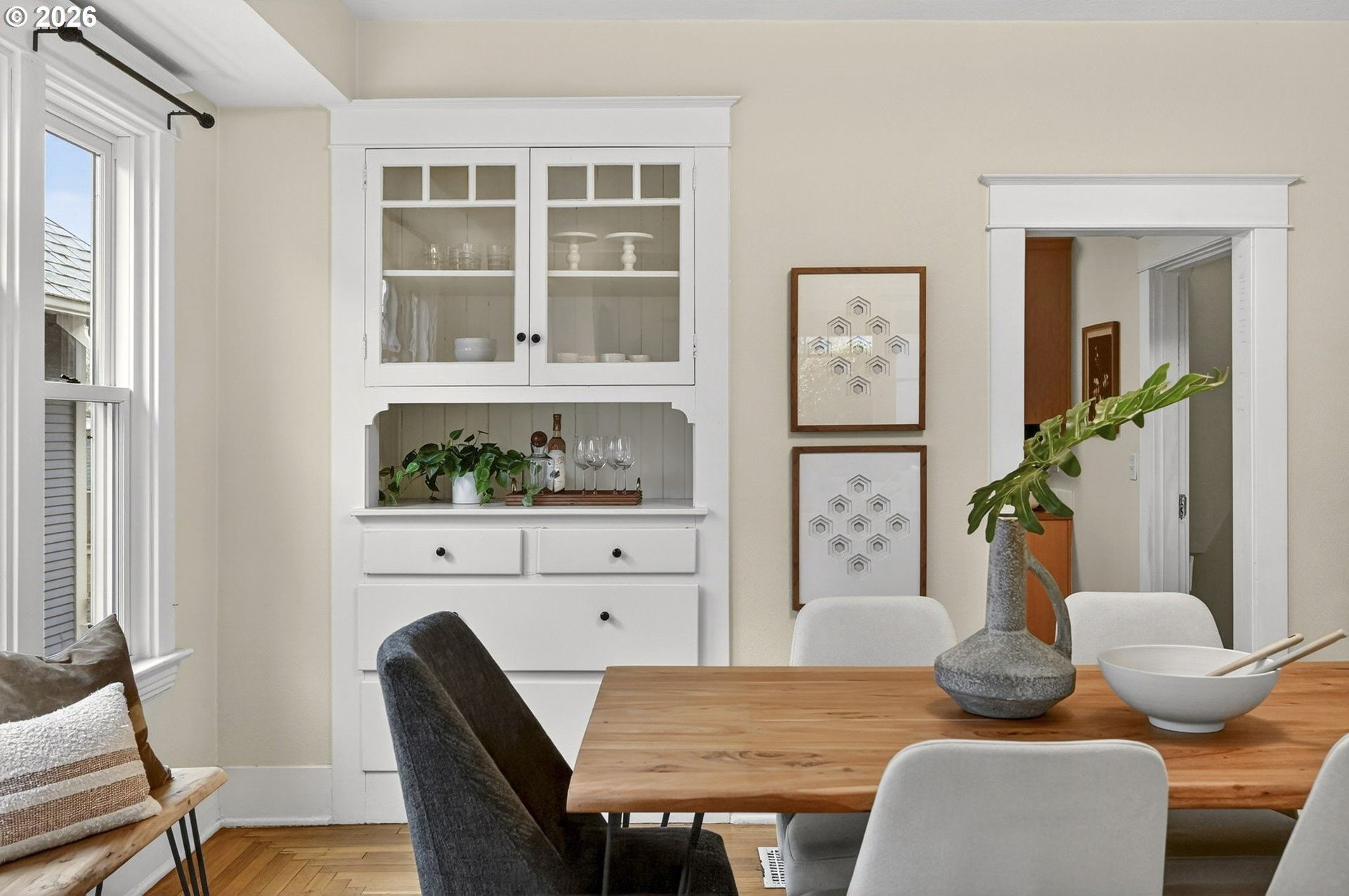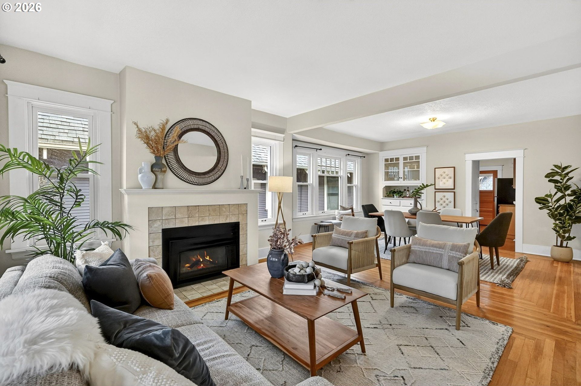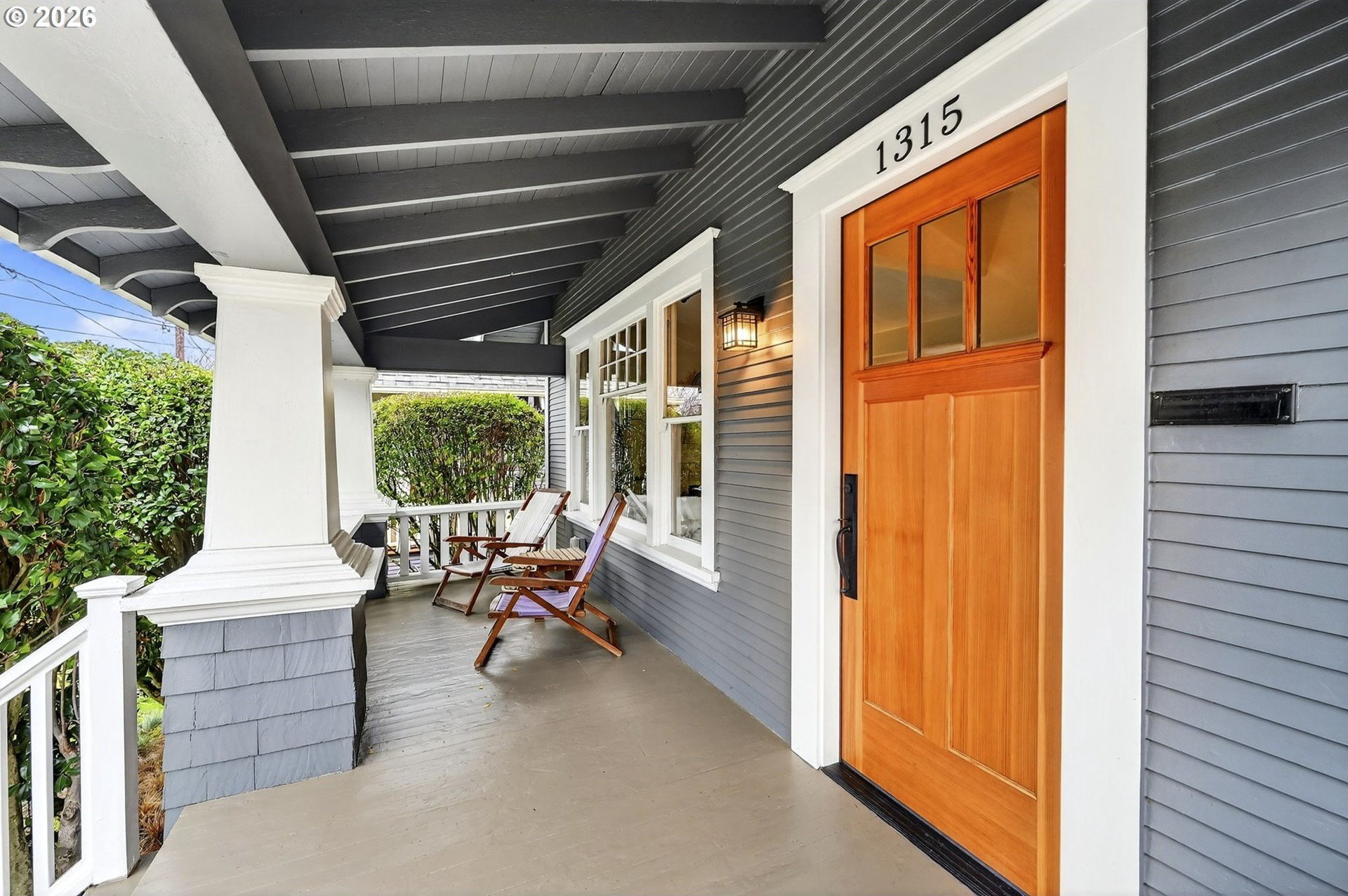 Squeaky-clean bungalow less than two blocks off Hawthorne, tucked away on a sweetheart dead end street. A classic front porch welcomes you into the charm of this solid 1911 bungalow. Oak and fir floors throughout, plus a cozy gas fireplace insert in the living room and built-ins in the dining room. Mostly newer, high-end Marvin windows throughout. The lovely second floor features a landing ideal for office space with a peek toward the West Hills, and a spacious primary bedroom with views up to Mt. Tabor Park. The unfinished basement offers a clean, blank slate with good ceiling height and an exterior entrance. Enjoy a covered back porch off the kitchen and a nicely hedged and fenced backyard perfect for summer entertaining. A beautifully maintained home that is move in ready!