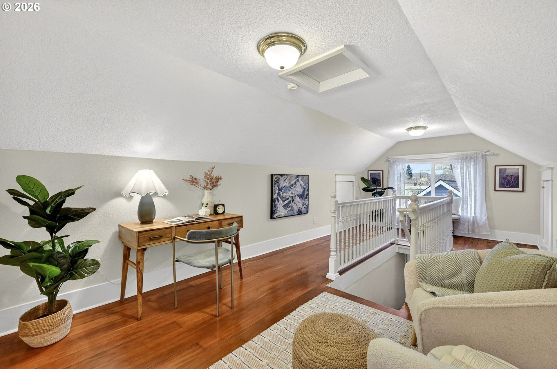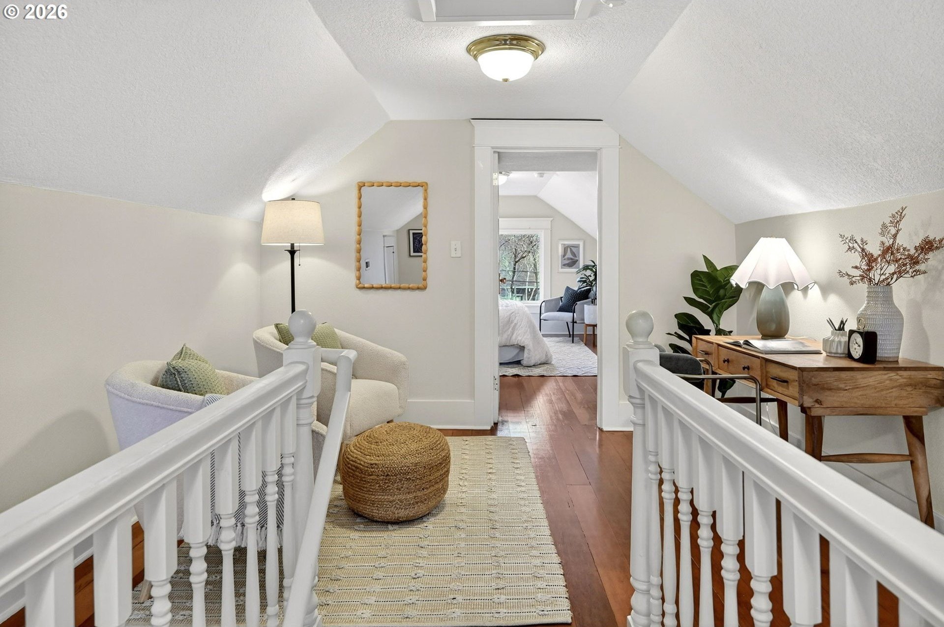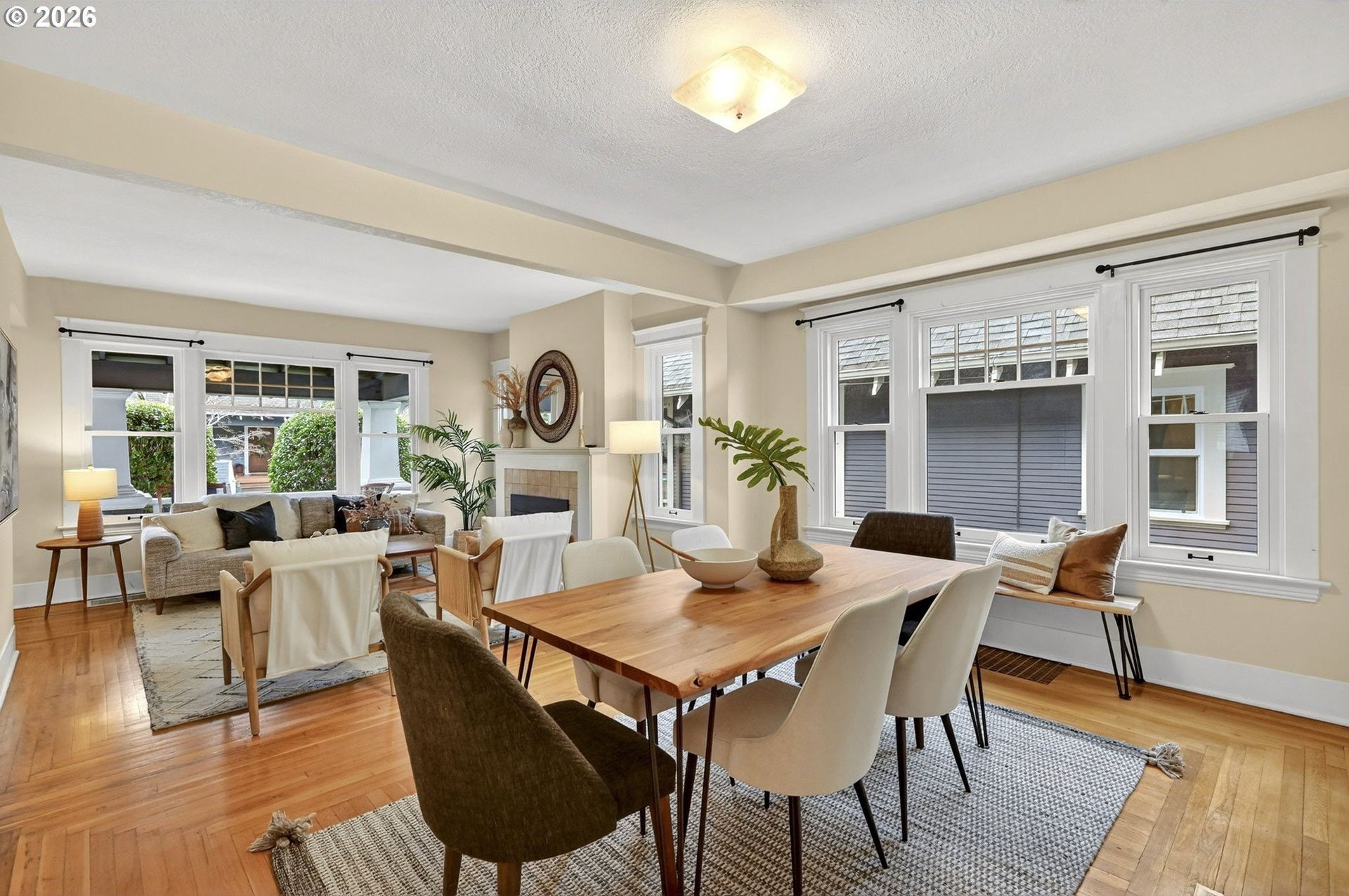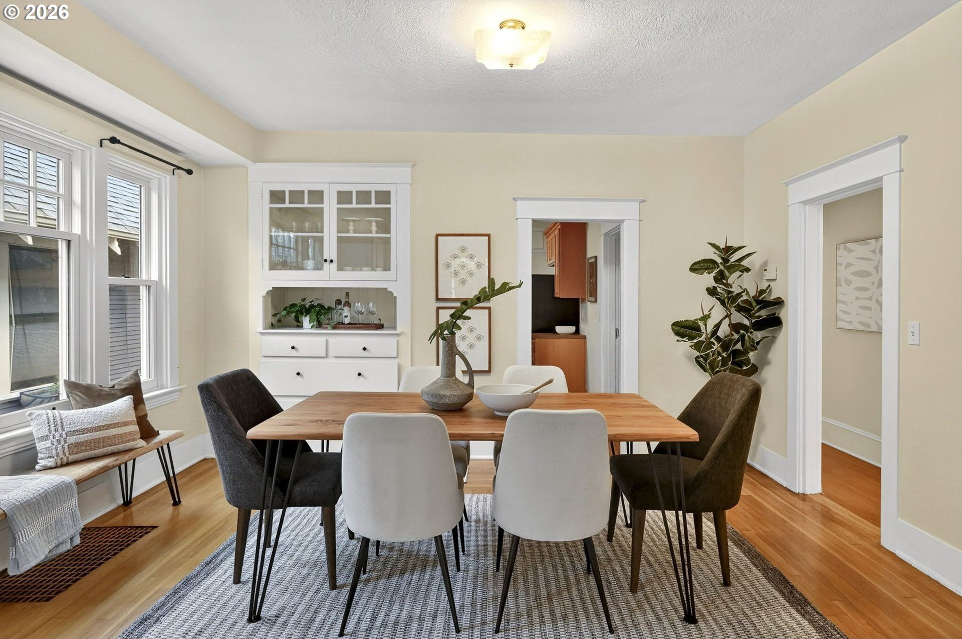 Squeaky-clean bungalow less than two blocks off Hawthorne, tucked away on a sweetheart dead end street. A classic front porch welcomes you into the charm of this solid 1911 bungalow. Oak and fir floors throughout, plus a cozy gas fireplace insert in the living room and built-ins in the dining room. Mostly newer, high-end Marvin windows throughout. The lovely second floor features a landing ideal for office space with a peek toward the West Hills, and a spacious primary bedroom with views up to Mt. Tabor Park. The unfinished basement offers a clean, blank slate with good ceiling height and an exterior entrance. Enjoy a covered back porch off the kitchen and a nicely hedged and fenced backyard perfect for summer entertaining. A beautifully maintained home that is move in ready!