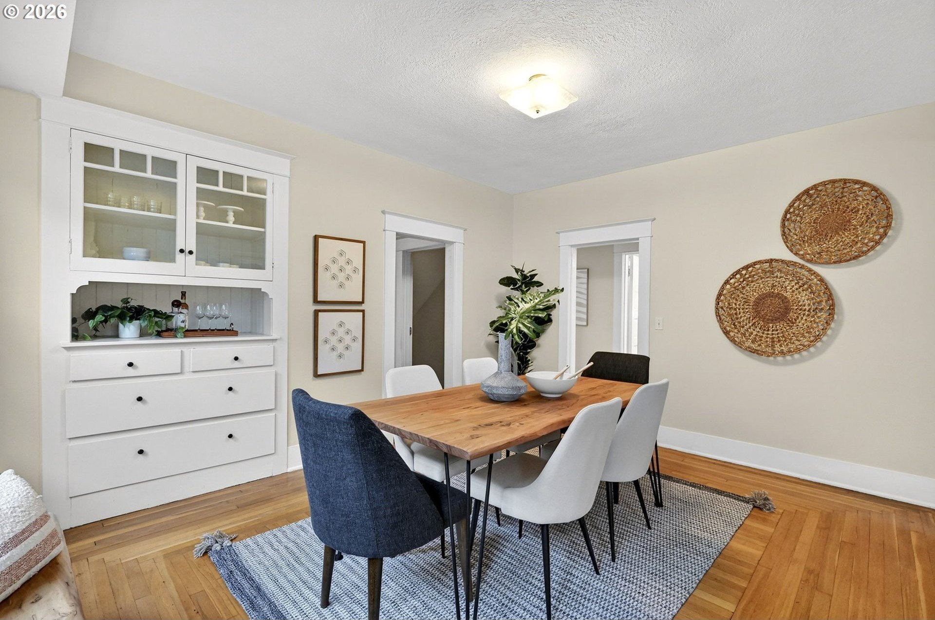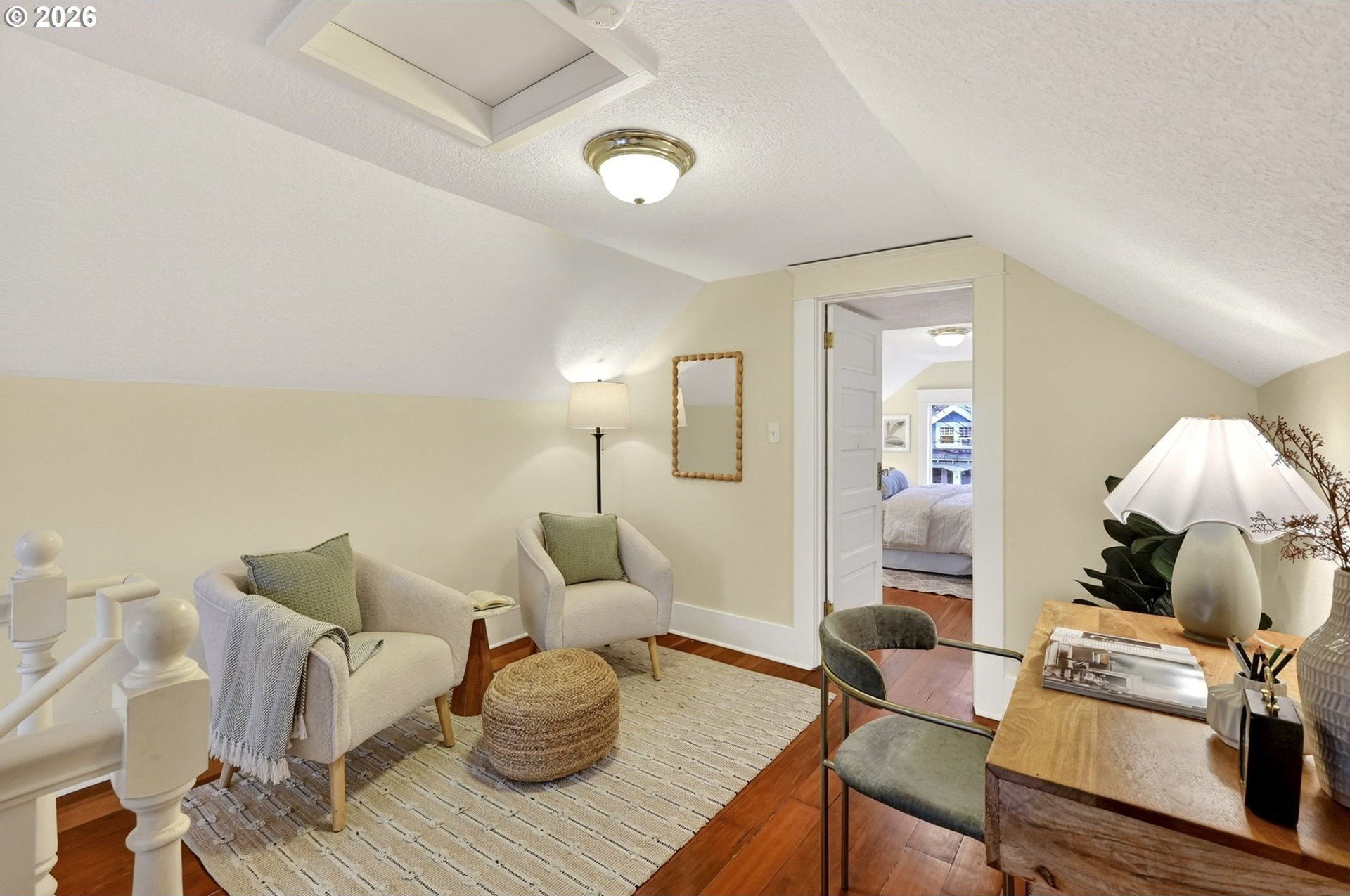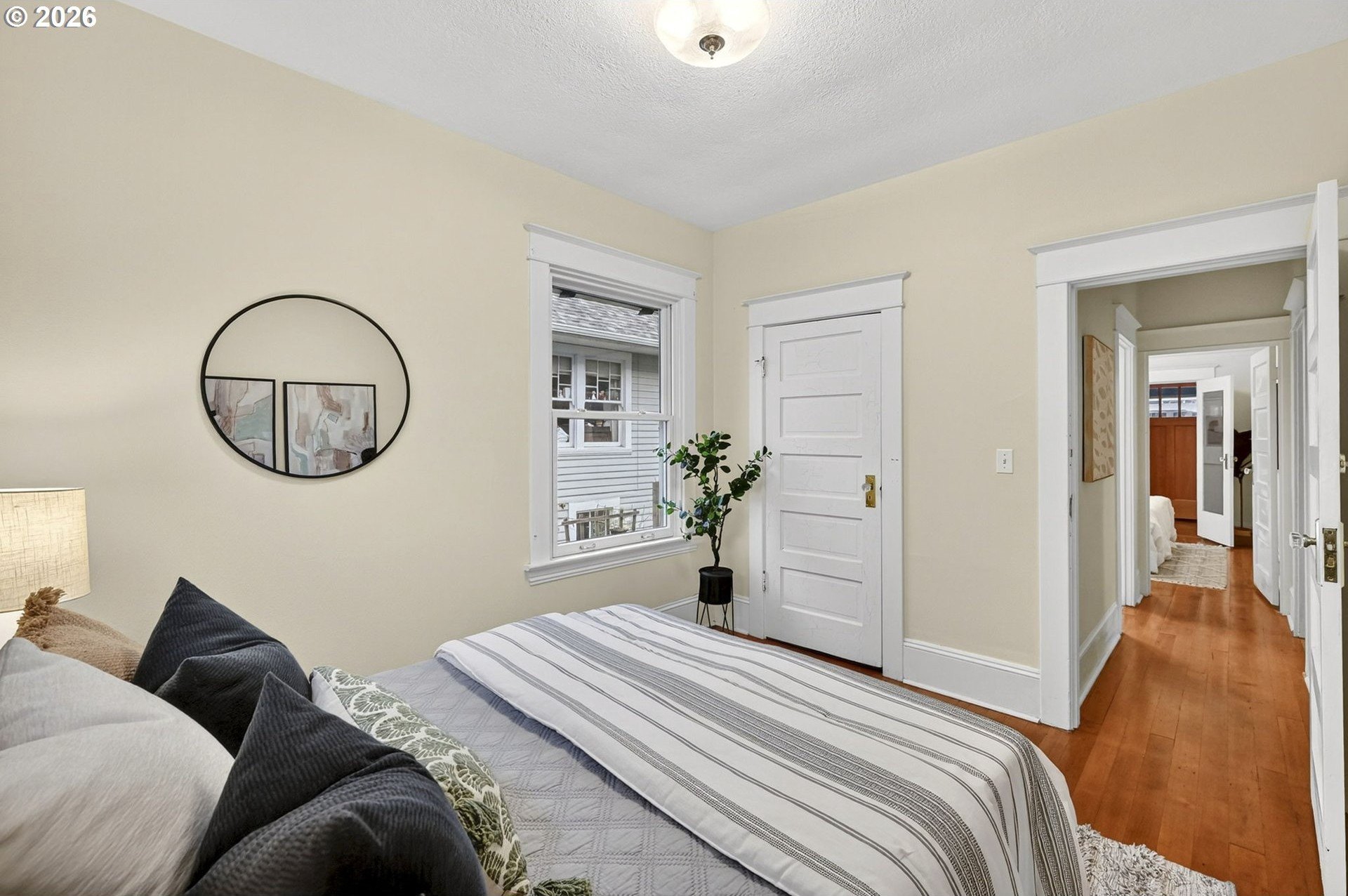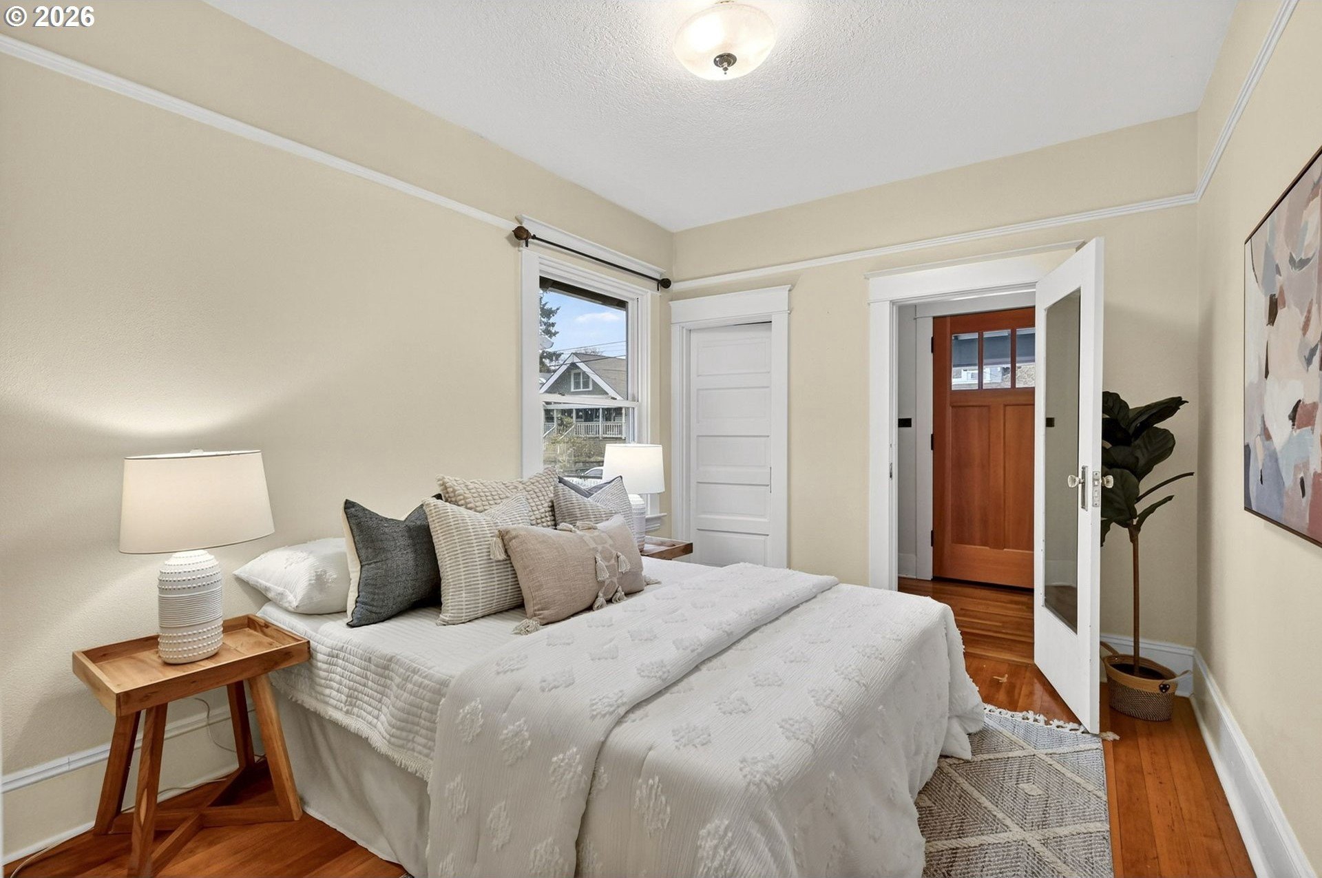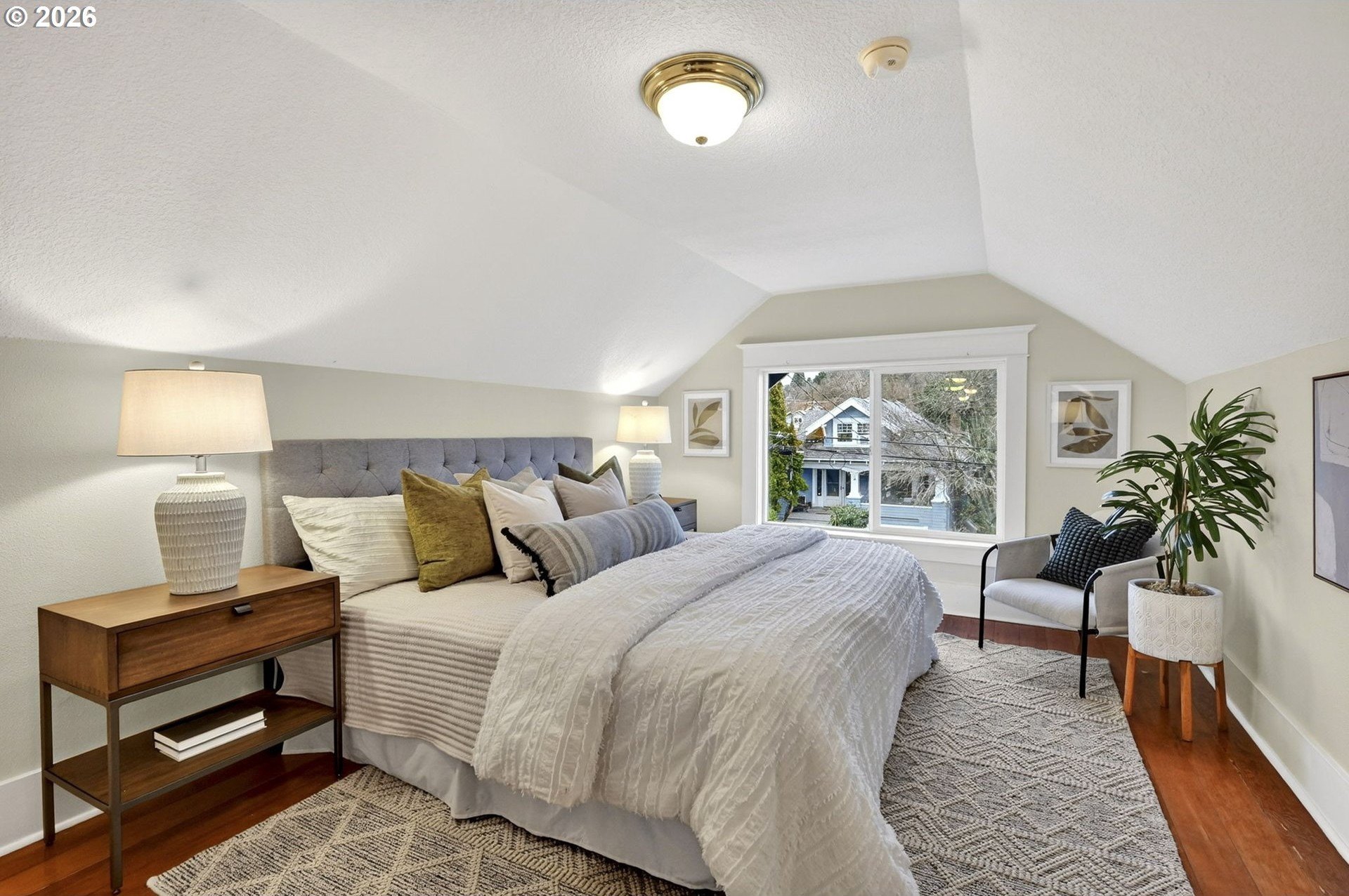 Squeaky-clean bungalow less than two blocks off Hawthorne, tucked away on a sweetheart dead end street. A classic front porch welcomes you into the charm of this solid 1911 bungalow. Oak and fir floors throughout, plus a cozy gas fireplace insert in the living room and built-ins in the dining room. Mostly newer, high-end Marvin windows throughout. The lovely second floor features a landing ideal for office space with a peek toward the West Hills, and a spacious primary bedroom with views up to Mt. Tabor Park. The unfinished basement offers a clean, blank slate with good ceiling height and an exterior entrance. Enjoy a covered back porch off the kitchen and a nicely hedged and fenced backyard perfect for summer entertaining. A beautifully maintained home that is move in ready!
