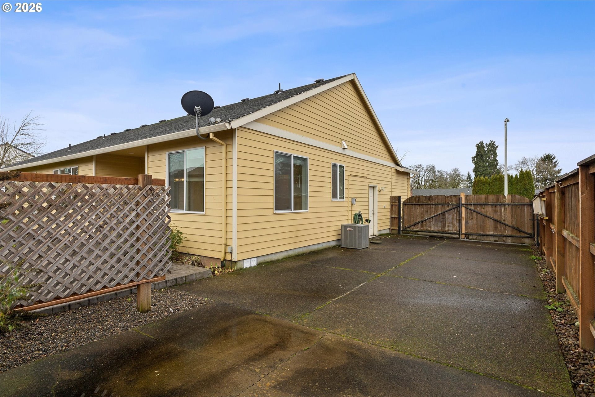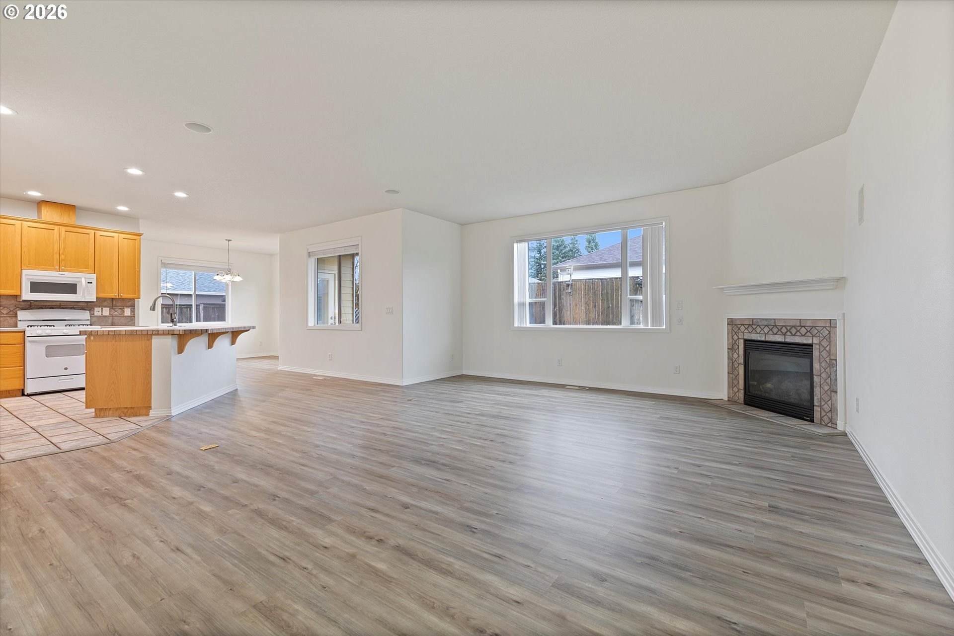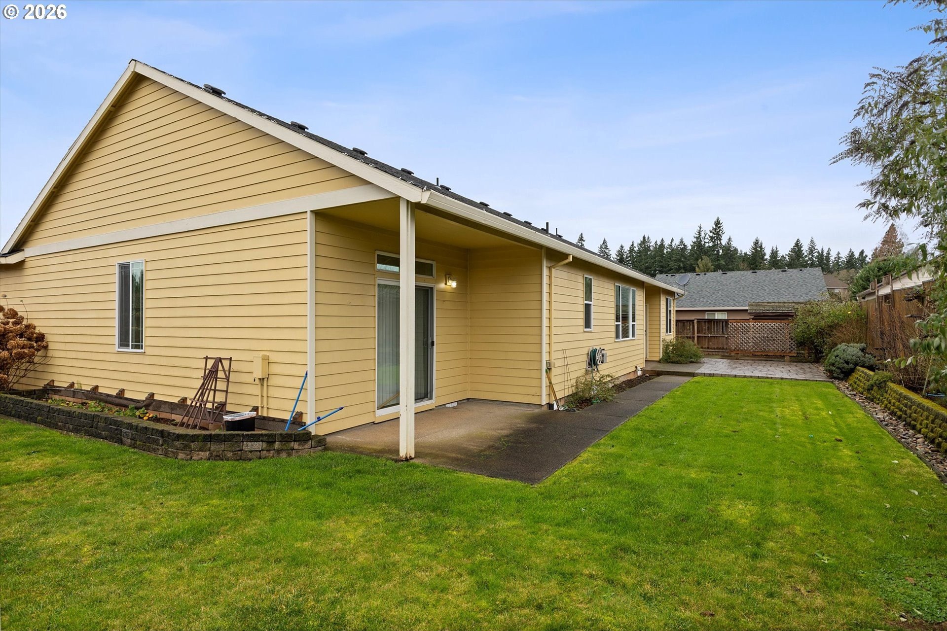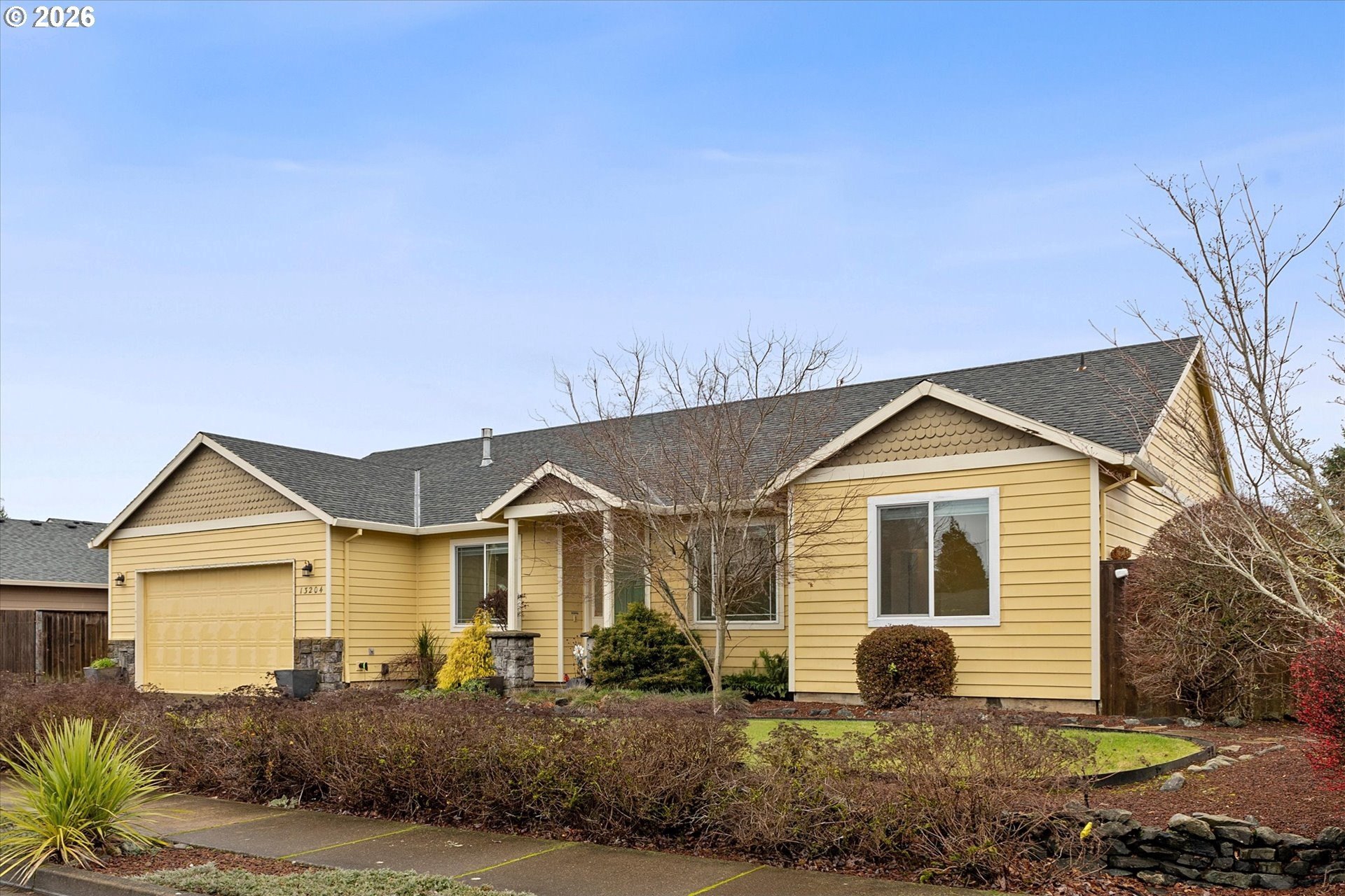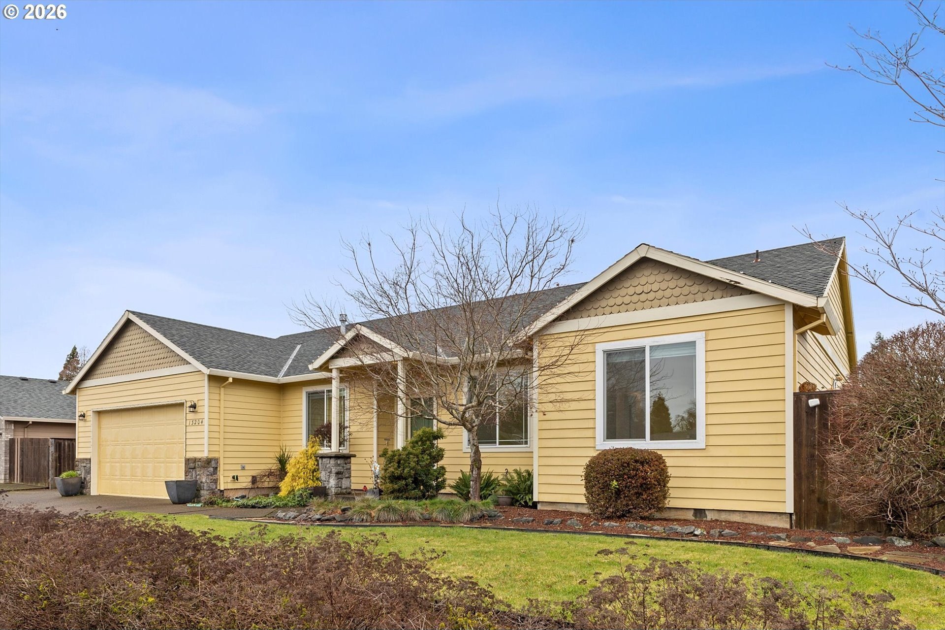 Welcome to 13204 Gaffney Lane, a beautifully updated single-level ranch home tucked into a quiet, desirable Oregon City neighborhood. Sitting on a spacious corner lot, this property offers great curb appeal with a manicured front lawn, ample parking, and gated RV parking. Inside, you'll find a bright, open layout with high ceilings throughout, designed for both everyday living and entertaining. The living room features a cozy gas fireplace and flows seamlessly into the dining area and kitchen, with easy access to the backyard for true indoor/outdoor living. Recent upgrades include a new furnace & A/C, commercial-grade luxury vinyl plank flooring throughout, fresh interior paint, new water heater, & more, making this home completely turnkey. The three spacious bedrooms provide plenty of comfort, while an efficient floor plan ensures excellent use of space with generous closets and storage. Outside, the fully fenced backyard is a private retreat, complete with a custom stamped-concrete patio, raised garden beds, & a lush lawn, & gas connection for your BBQ, making this the perfect gathering place for those summer barbecues, or spending your time enjoying gardening, or simply relaxing. The large driveway, RV/Boat parking pad, & 2 car attached garage offer flexibility for parking, storage, or hobbies. Low monthly HOA dues of just $10 add extra appeal. Conveniently located near Gaffney Lane Elementary, as well as other Oregon City schools, parks, restaurants and shopping, this home offers both comfort and convenience. Completely move-in ready, this is a rare find you won't want to miss!
