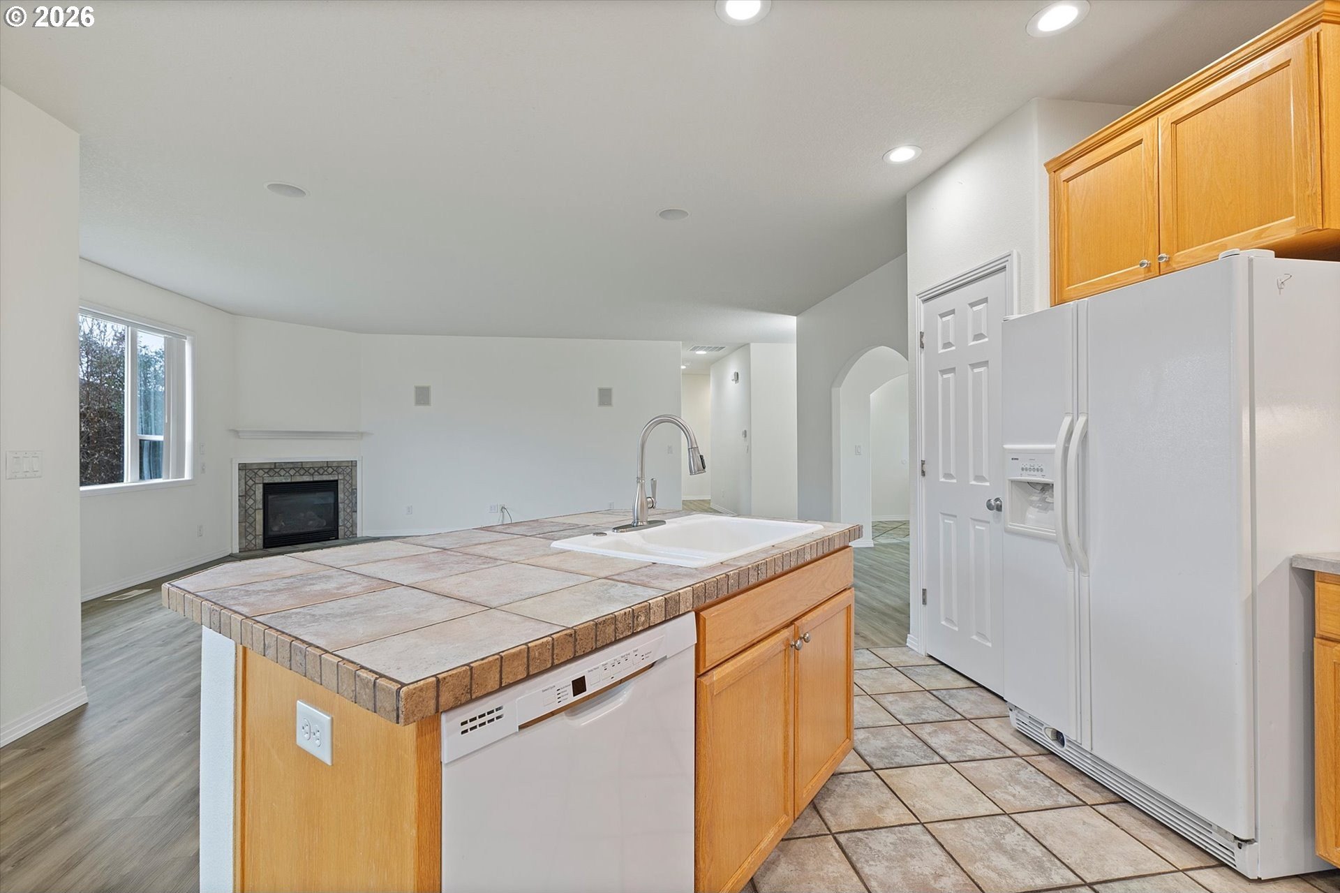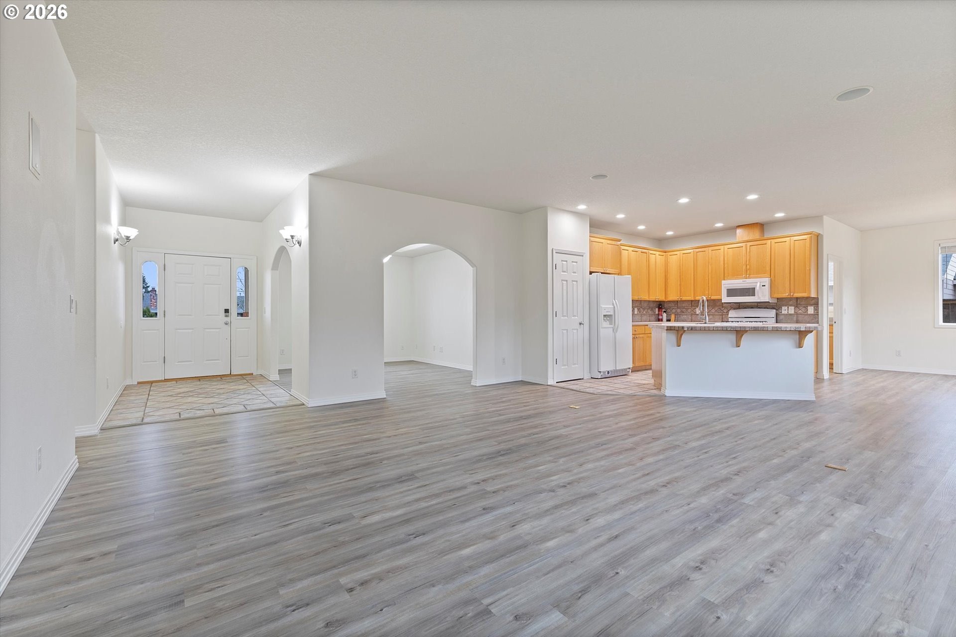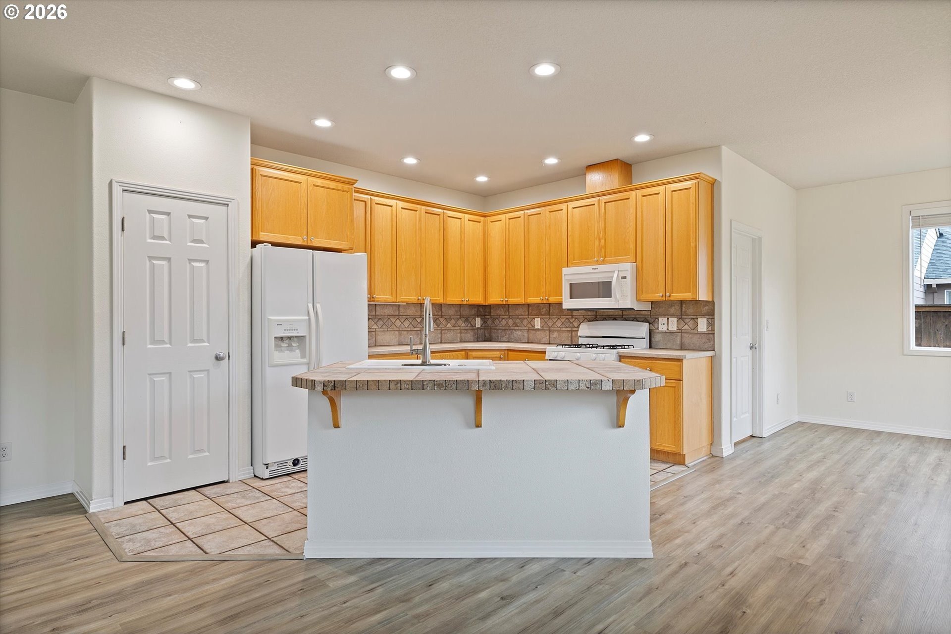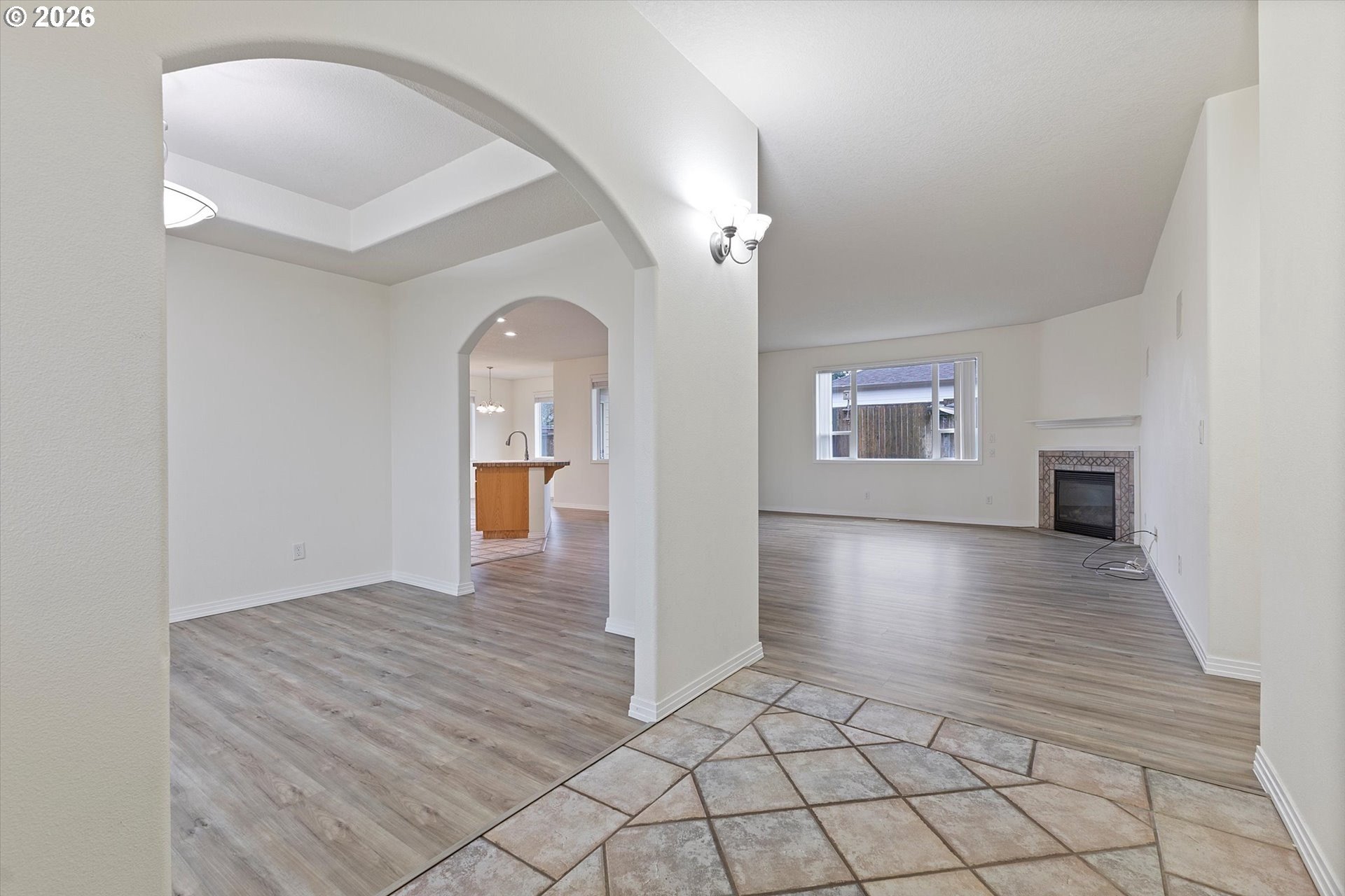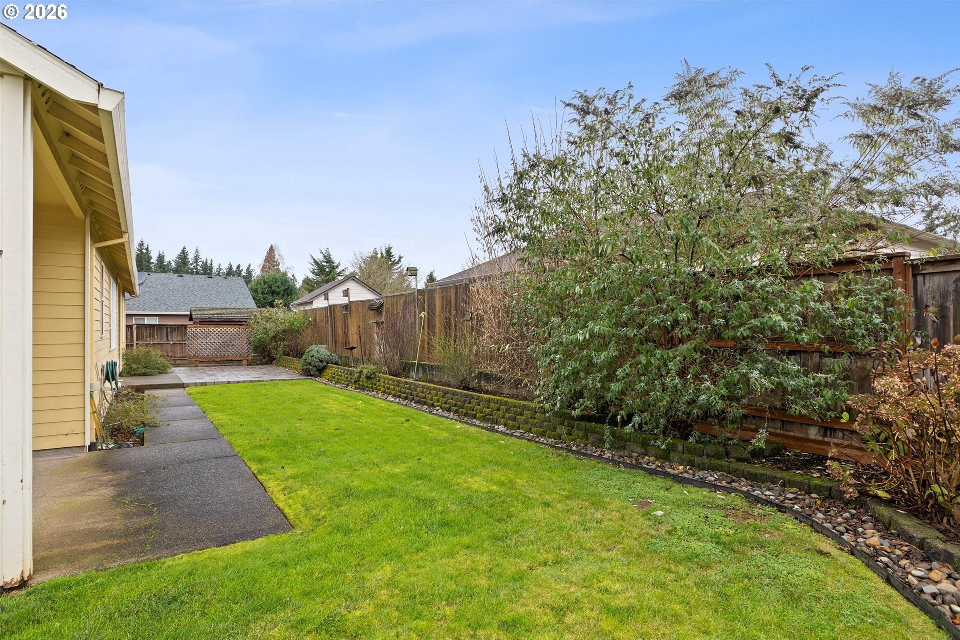 Welcome to 13204 Gaffney Lane, a beautifully updated single-level ranch home tucked into a quiet, desirable Oregon City neighborhood. Sitting on a spacious corner lot, this property offers great curb appeal with a manicured front lawn, ample parking, and gated RV parking. Inside, you'll find a bright, open layout with high ceilings throughout, designed for both everyday living and entertaining. The living room features a cozy gas fireplace and flows seamlessly into the dining area and kitchen, with easy access to the backyard for true indoor/outdoor living. Recent upgrades include a new furnace & A/C, commercial-grade luxury vinyl plank flooring throughout, fresh interior paint, new water heater, & more, making this home completely turnkey. The three spacious bedrooms provide plenty of comfort, while an efficient floor plan ensures excellent use of space with generous closets and storage. Outside, the fully fenced backyard is a private retreat, complete with a custom stamped-concrete patio, raised garden beds, & a lush lawn, & gas connection for your BBQ, making this the perfect gathering place for those summer barbecues, or spending your time enjoying gardening, or simply relaxing. The large driveway, RV/Boat parking pad, & 2 car attached garage offer flexibility for parking, storage, or hobbies. Low monthly HOA dues of just $10 add extra appeal. Conveniently located near Gaffney Lane Elementary, as well as other Oregon City schools, parks, restaurants and shopping, this home offers both comfort and convenience. Completely move-in ready, this is a rare find you won't want to miss!