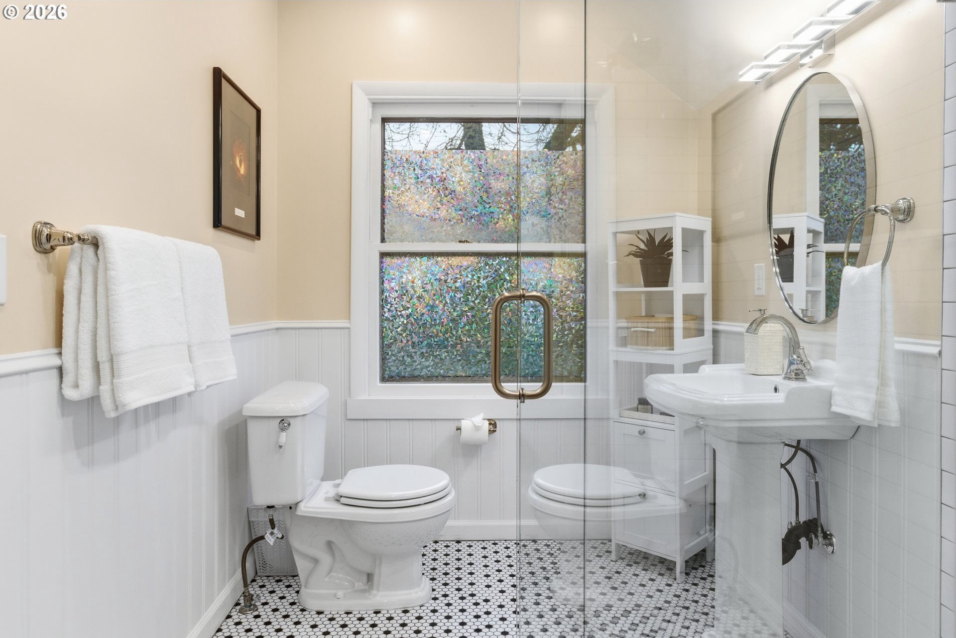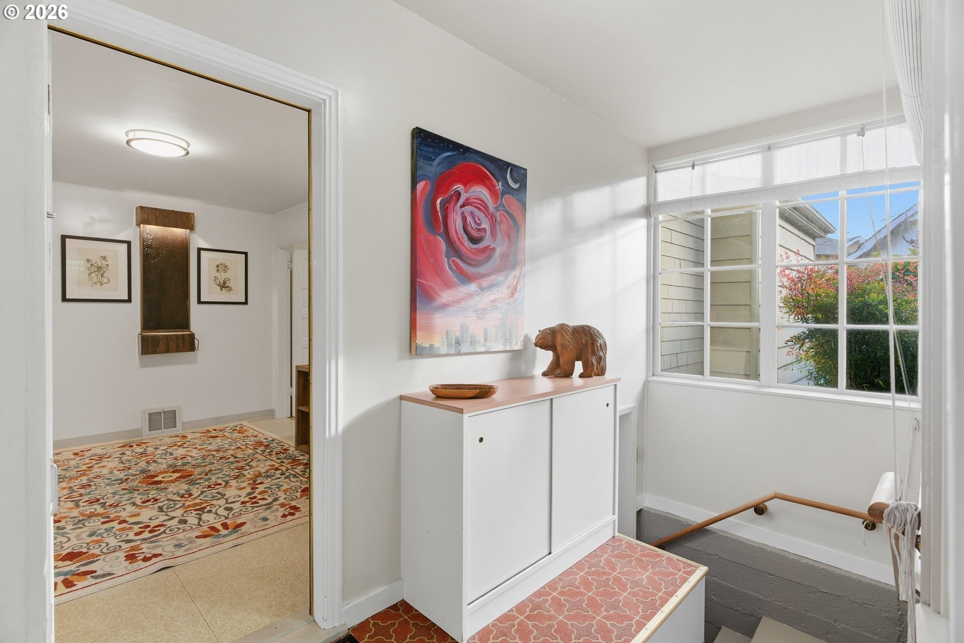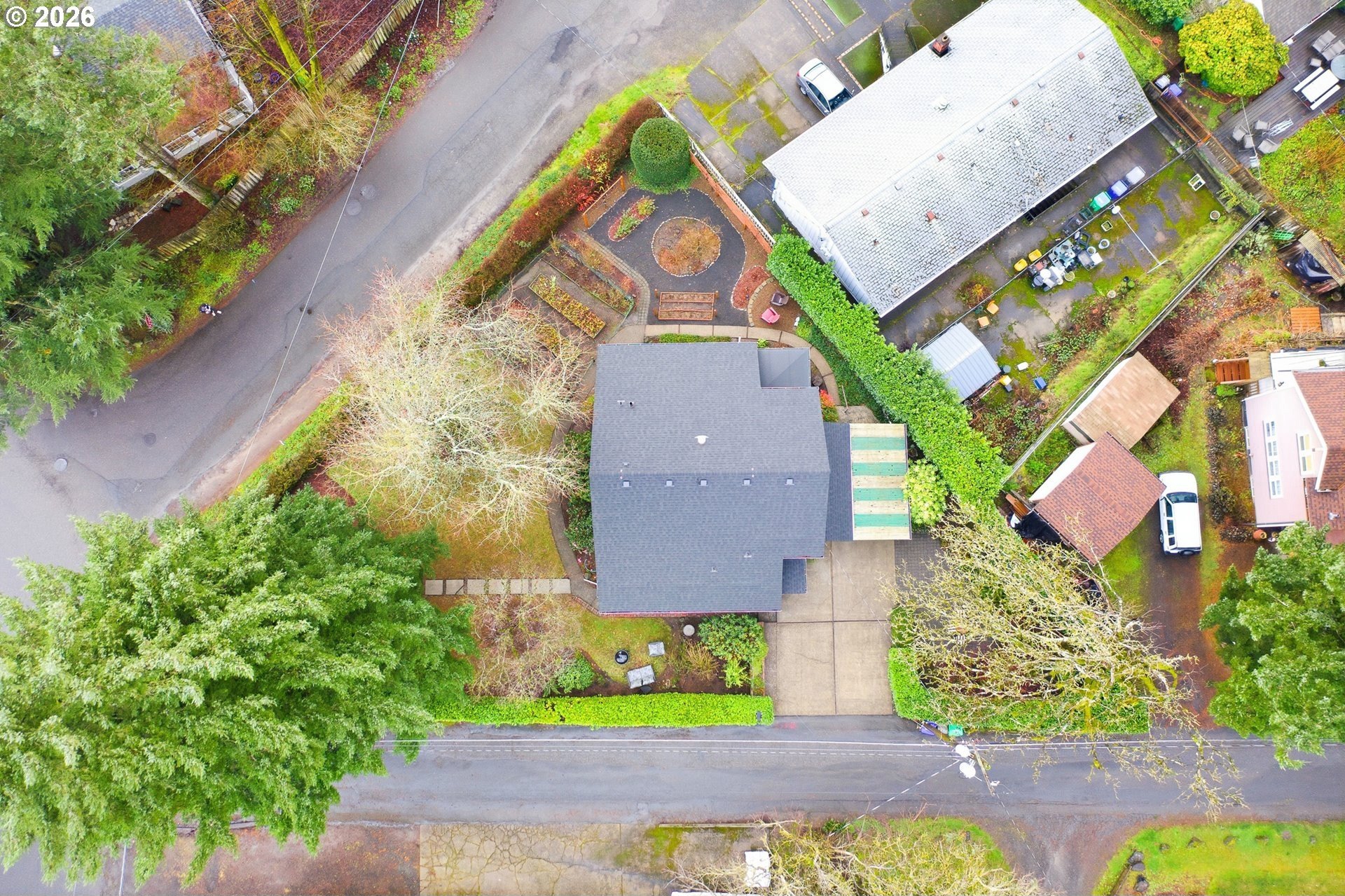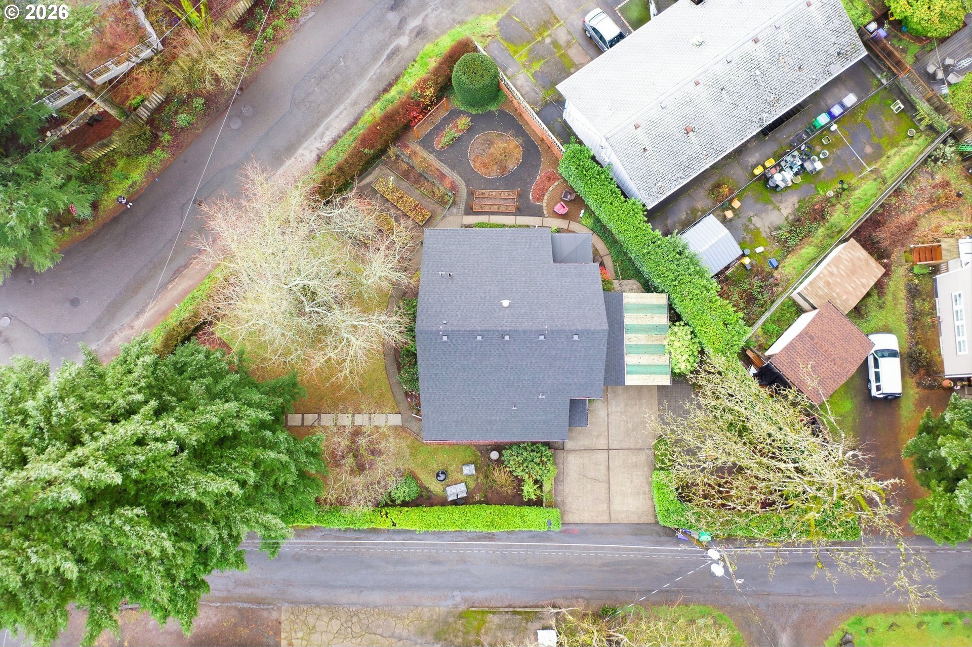 Charming 1914 Craftsman cottage. The home features 4 bedrooms, 2.5 bathrooms, and 2,472 square feet, with interiors that feel warm, welcoming, and filled with natural light. Inside, you'll find classic details throughout, paired with a series of modern updates. Outdoors, the 8,650 sq ft lot unfolds like a private sanctuary, complete with winding garden walkways, productive raised vegetable beds, quiet seating areas, and a long-established rose garden showcasing blooms that have thrived for decades. Easy maintenance watering system in place. Recent improvements include a new roof in 2024, a 200-amp electrical panel upgrade in 2025, added attic insulation, updated lighting, new water heater in 2022, a new furnace in 2020 and a fully remodeled bathroom on the upper level complete with walk-in tile shower, and tile floors. New paint throughout the home including bedrooms, kitchen cabinets, and living room. The main floor is designed for convenience, offering easy access with no steps into the home or on the first level. Featuring a bedroom with an adjoining bathroom and its own laundry room, which feels like its own private suite, making it perfect for multi-generational living possibilities. Downstairs, the basement provides additional flexibility, featuring a workshop area with a vintage wood lathe. There's an option to add washer and dryer downstairs, and plumbing is present to do so. What the owner loves about this home: the park-like setting for gardening, the large light filled living room with oversized windows overlooking the yard. The home is perfect for entertaining large parties and the outdoor patio seating area nestled in the serene landscape makes for a perfect sitting or dining area. Ideally situated near Multnomah Village and Hillsdale, with quick access to parks, trails, and downtown Portland. A special opportunity to own a well-cared-for historic property with space to garden, gather, and grow-ready to be enjoyed today. [Home Energy Score = 1. HES Report