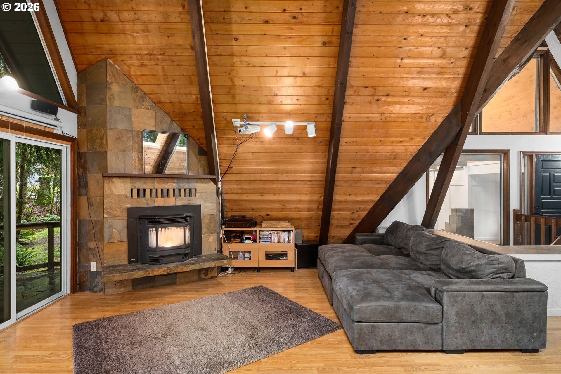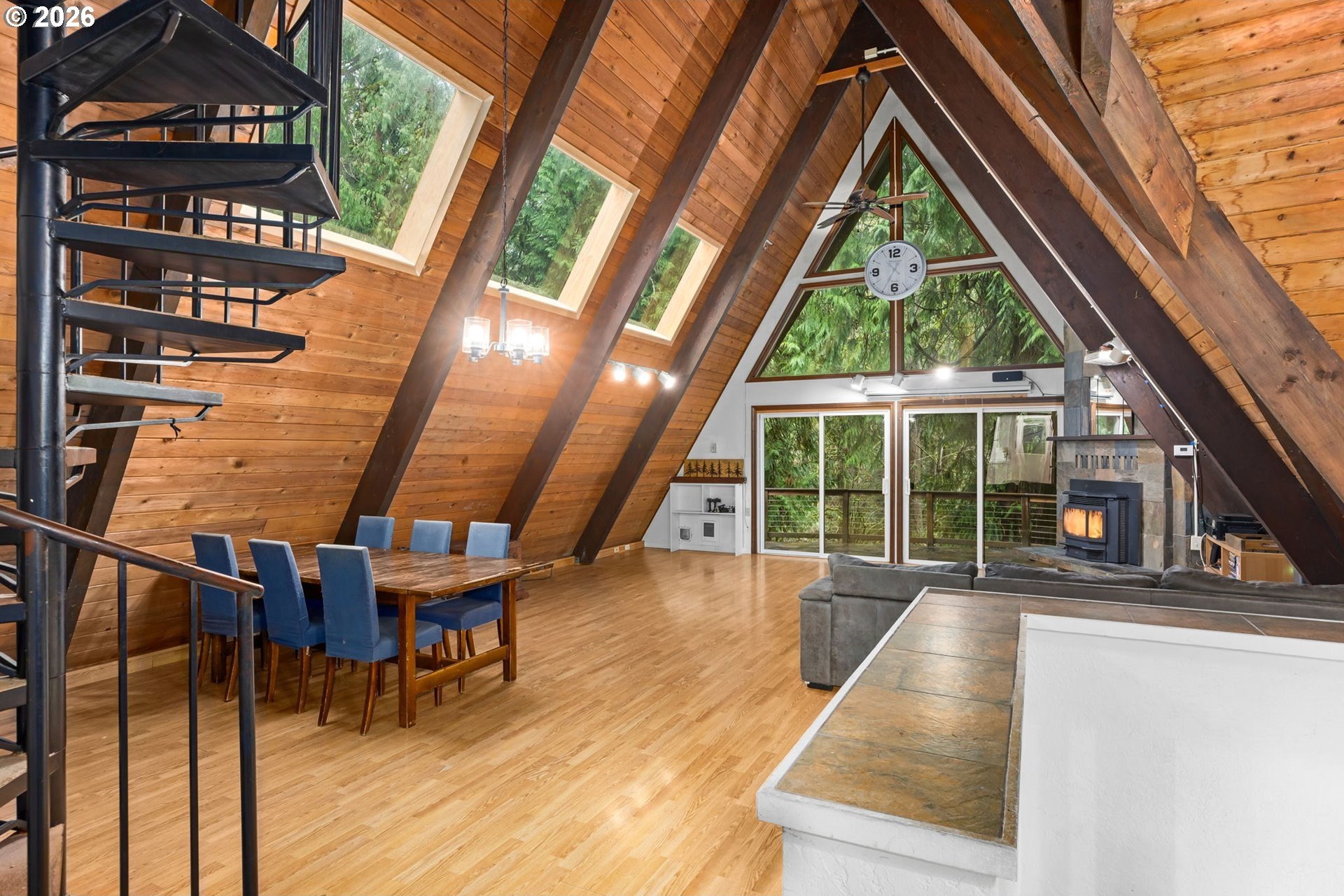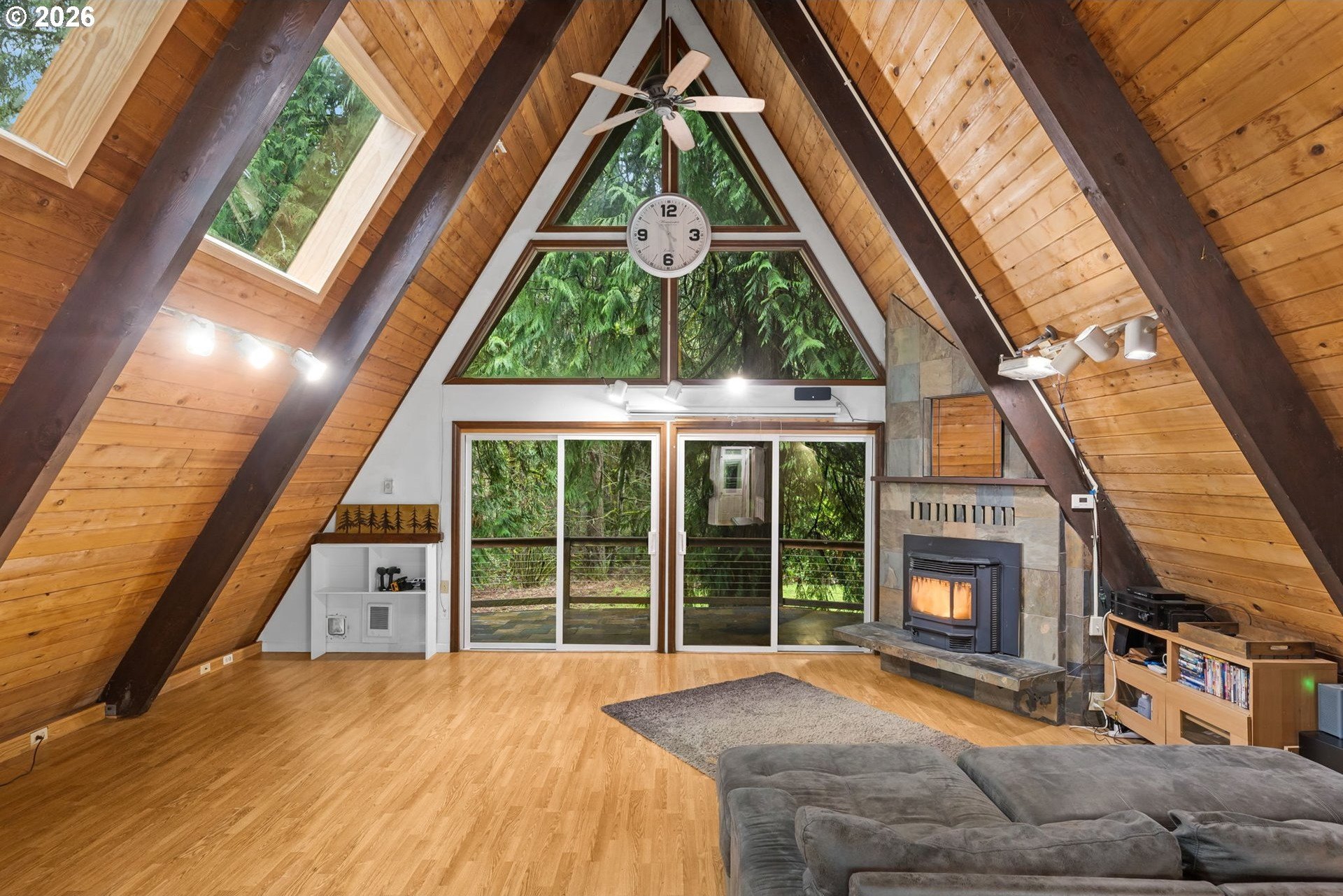 Tucked away on over 2 acres, this A-frame inspired retreat offers the perfect blend of architectural character, peaceful surroundings, and everyday convenience. A soaring wall of windows with a cozy, cabin-like feel creates a true nature escape, while still being just minutes from shopping, dining, and amenities in the tight-knit Sandy community. Plus, just a 35 minute drive to PDX, and 45 minutes to Government Camp, a location ideal for both recreational enthusiasts and city living.Beyond the charm, this home was designed with room to live and play. The property features 3+ bedrooms and 3 full bathrooms, including ensuite primary, an EV ready, four-car garage, above ground pool with pool house, an outbuilding and ample space for recreational vehicles, boats, tools, and hobbies. Everything you'd want all in one place. Highlighted updates and features include: A-frame entryway, roof, sky lights, windows, sliders, paint, remodeled kitchen and pantry, pellet stove, refreshed loft flex area, garage doors, outbuildings, well pump-house and EV hookup. Rarely do homes offer this level of privacy and proximity. Schedule your showing and see why this is one that truly needs to be experienced in person. Open Saturday and Sunday, 12pm-2pm.