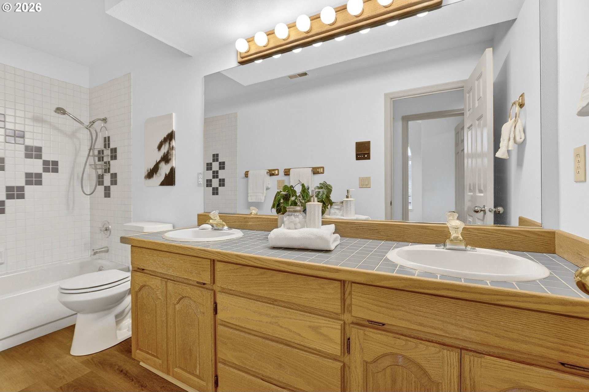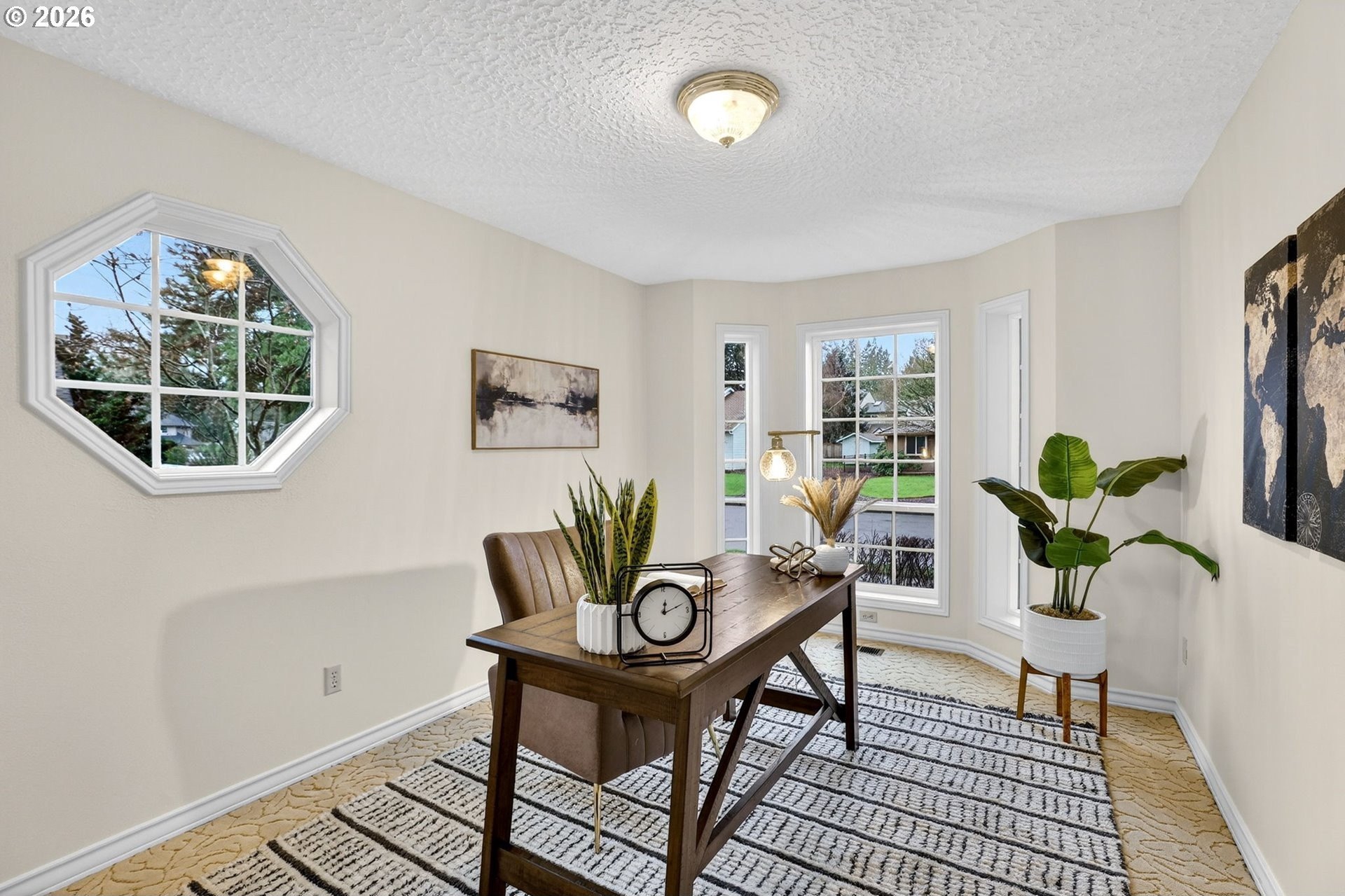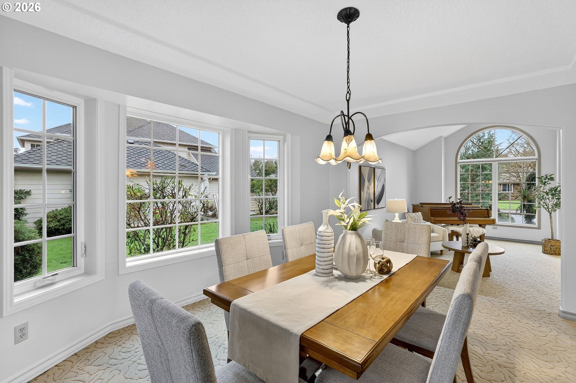 Spacious custom home backing to Green Meadows Golf Course, offering exceptional flexibility and serene views. An open entry, warm hardwood floors, and fresh interior paint create an inviting first impression. The versatile floor plan includes formal living and dining rooms, complemented by an open-concept kitchen and great room anchored by a cozy gas fireplace. With backyard access from both the great room and dining room, the layout is ideal for everyday living and effortless entertaining.The gourmet-style kitchen is perfectly positioned for gatherings and ready for your modern updates. Step outside to the beautifully landscaped backyard, where mature plantings provide privacy and peaceful golf course views. The main level also features a half bath and a flexible office or 5th bedroom-perfect for remote work or guests.Upstairs, the generous primary suite offers a gas fireplace, walk-in closet, and en-suite bath, while two additional bedrooms and a large bonus room with closets provide endless options for media, play, or additional living or sleeping space. Exceptional storage throughout, a 3-car garage, tile roof, and a prime central location near shopping, services, and Club Green Meadows-with golf, tennis, pickleball, and more-complete the package. A new refrigerator and dishwasher, along with freshly painted interiors and newly cleaned carpets, make this home ready for your personal touch.