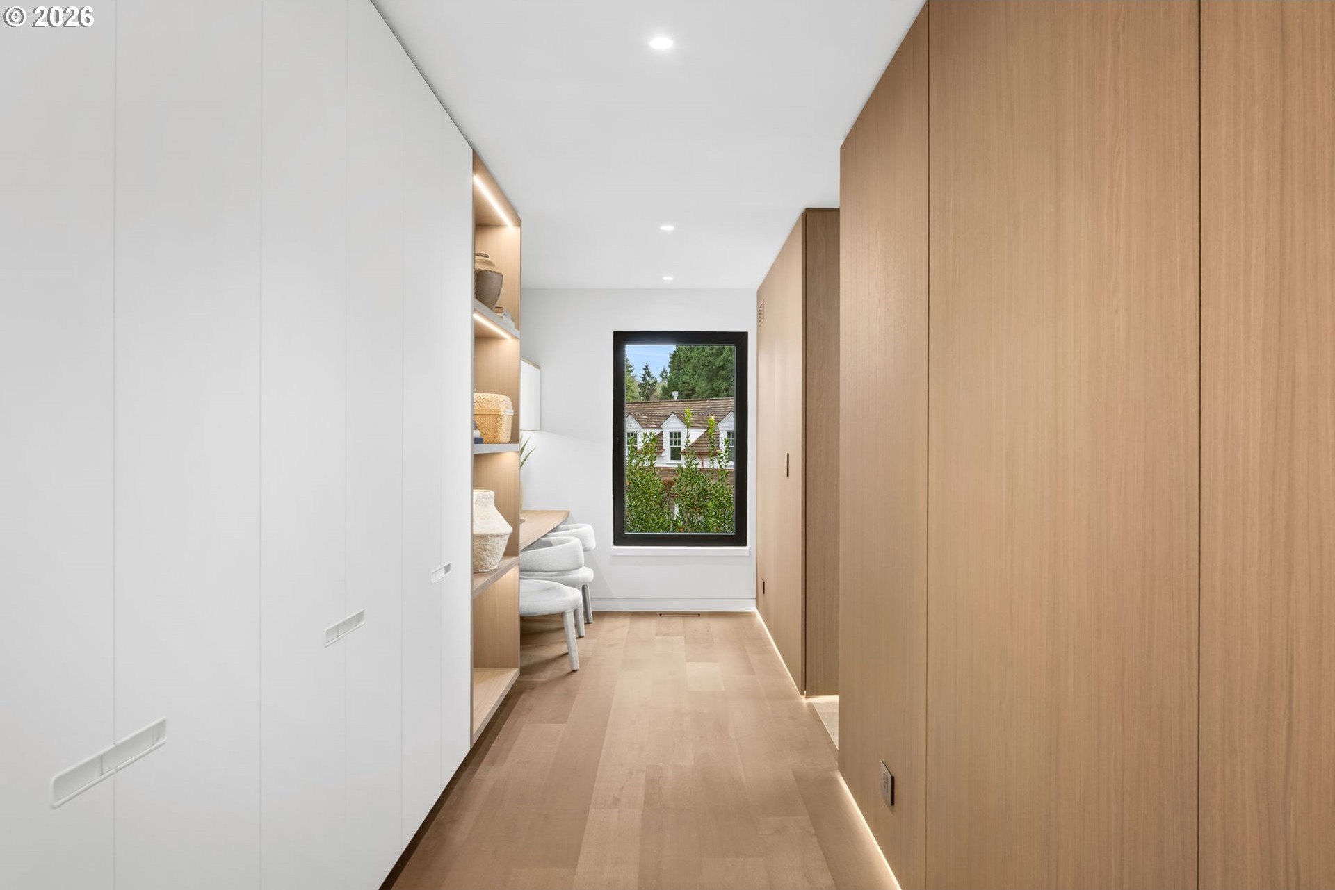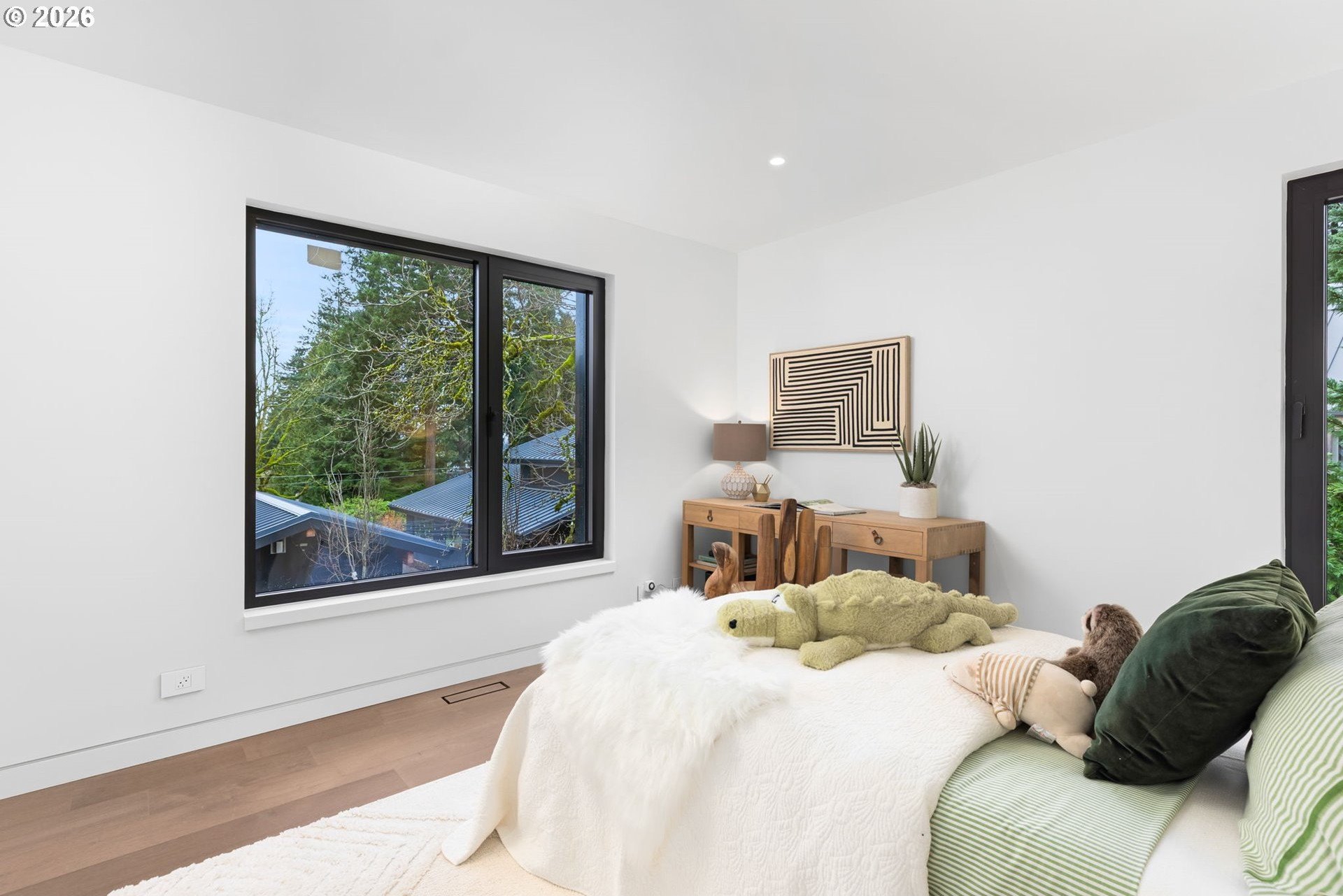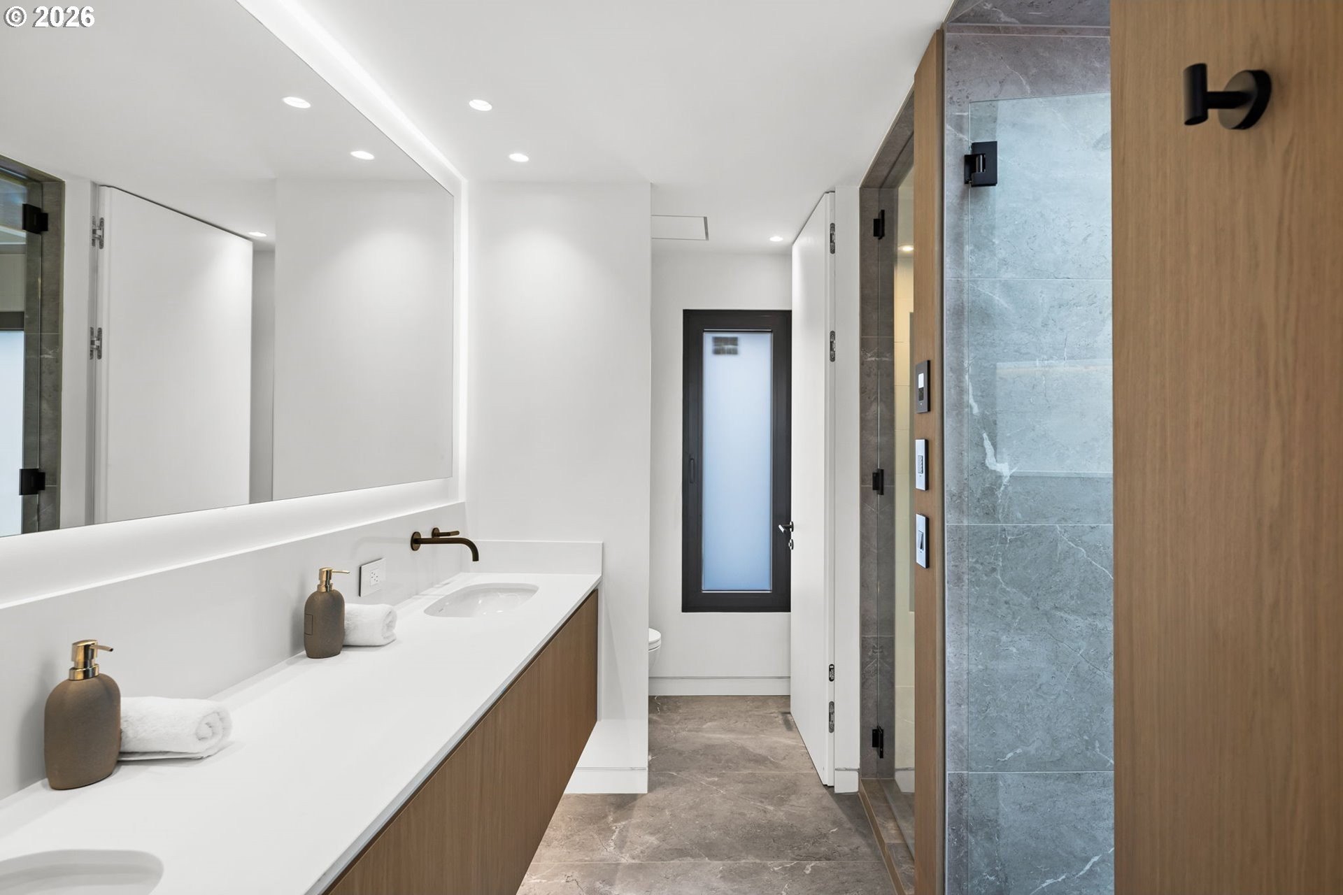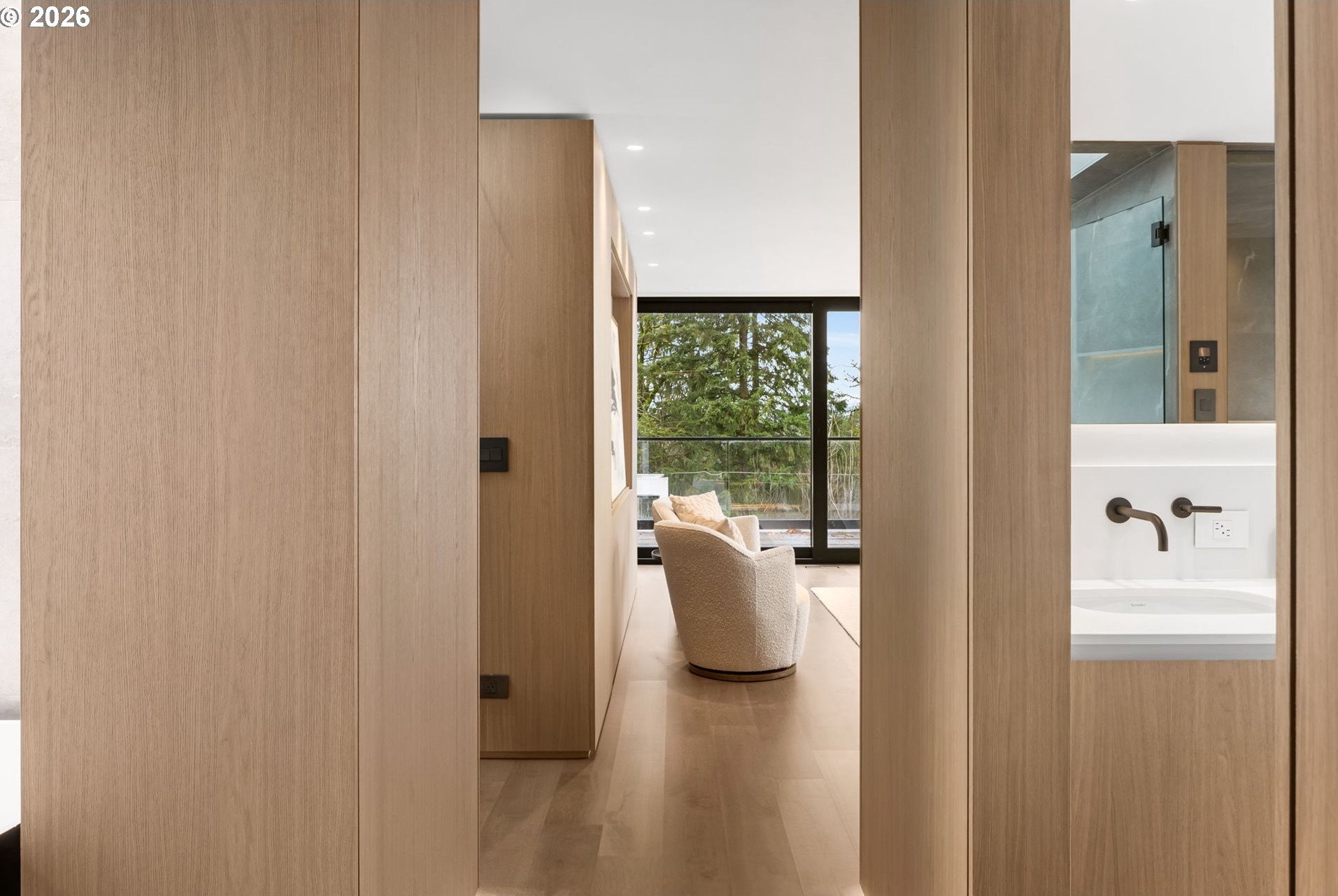 The Eden House is a rare blend of modern architecture, functional innovation, and elevated indoor-outdoor living, ideally located on revered Military Road. This architecturally custom residence features a refined open-concept great room that flows seamlessly to resort-style outdoor entertaining spaces. A striking infinity-edge pool serves as both centerpiece and water feature, cascading to a lower patio with built-in fire pit. Multiple outdoor zones include built-in BBQs on both the kitchen-level deck and lower patio, offering exceptional versatility for entertaining. The high-style chef's kitchen showcases custom inset cabinetry, slab countertops and backsplash, double Miele ovens, and a sleek, integrated Pitt Burner cooktop system, perfectly balancing form and function. The primary suite is a private wellness retreat with steam room and sauna, while the spa-inspired primary shower is fully capped with a skylight-one of five thoughtfully placed skylights that flood the home with natural light and dramatic architectural presence. The upper level includes three guest bedrooms: two connected by a Jack-and-Jill bath and a private en suite guest room. A main-level study with adjacent full bath adds flexibility for work-from-home or guest living. A detached structure enhances the property's versatility, ideal as a yoga studio, art studio, or creative retreat. Architectural integrity is elevated with custom Glo windows and doors and warm clear cedar siding, completing a home inspired by international design and defined by thoughtful craftsmanship and refined modern living.