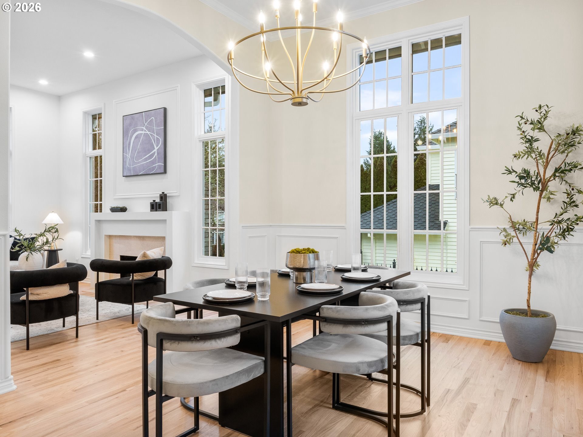 Hello! I'm a fully renovated, move-in-ready home offering 3,448 square feet of thoughtfully designed living space in Beaverton's desirable Kemmer View Estates neighborhood. I span two levels, sit on nearly a quarter-acre lot, and feature an attached oversized three-car garage. My neighborhood is prized for its established residential character, larger lots, and quiet, low-traffic setting, while still being close to parks, walking routes, neighborhood coffee shops, restaurants, bars, and everyday amenities at Murrayhill and Progress Ridge. On my main level, dramatic oversized windows with soaring proportions flood my living spaces with natural light. My front entry showcases a beautiful stairwell with a statement light fixture and custom railing that draws light through the center of the home. I offer multiple inviting gathering spaces, including a living room with a gas fireplace and a separate family room with a wood-burning fireplace. My kitchen anchors the home with a full-size island with waterfall countertop and eat bar, built-in gas cooktop, stainless steel appliances, custom cabinetry, tilework, a double oven, and a floor-to-ceiling wine display behind glass paneling. I also feature both a formal dining room and a dining nook just off the kitchen. A paneled office provides flexibility as a fifth bedroom or flex space, and my main level includes a half bathroom and a dedicated laundry room with built-in cabinetry and solid surface counters for everyday convenience. Two stairwells lead upstairs, including a secondary staircase off the laundry room. Upstairs, I offer four spacious bedrooms filled with natural light. My primary suite is a true retreat with a walk-in closet and spa-inspired bathroom featuring a soaking tub, walk-in shower, and extensive tilework, while a second full bathroom serves the remaining bedrooms. Outside, I offer a private back patio and generous yard space, perfect for relaxing or entertaining while enjoying the rare scale of my setting.