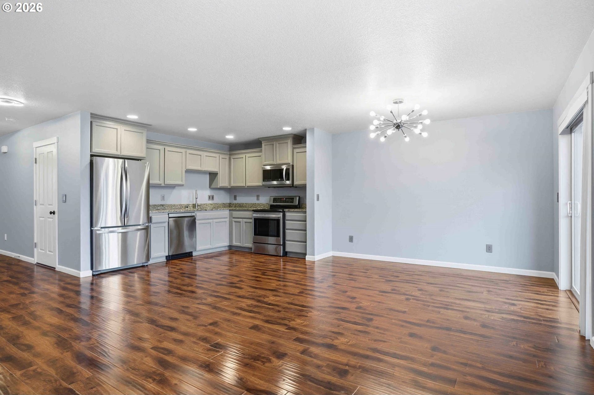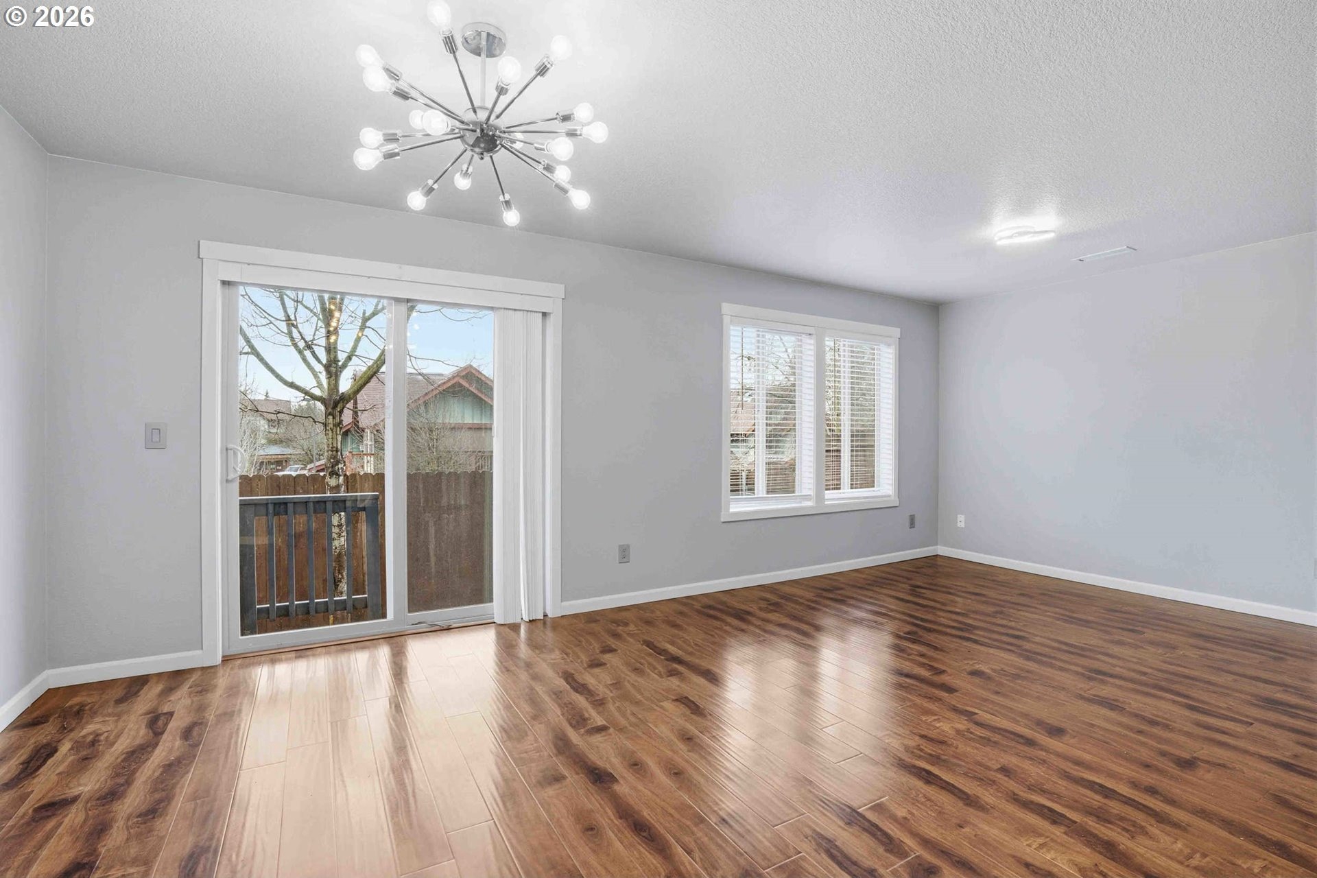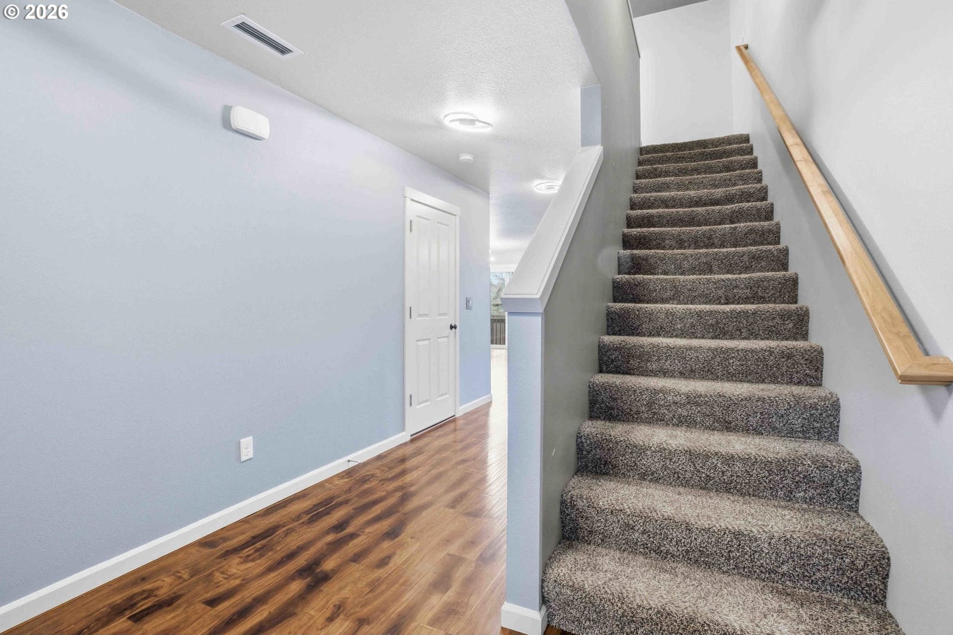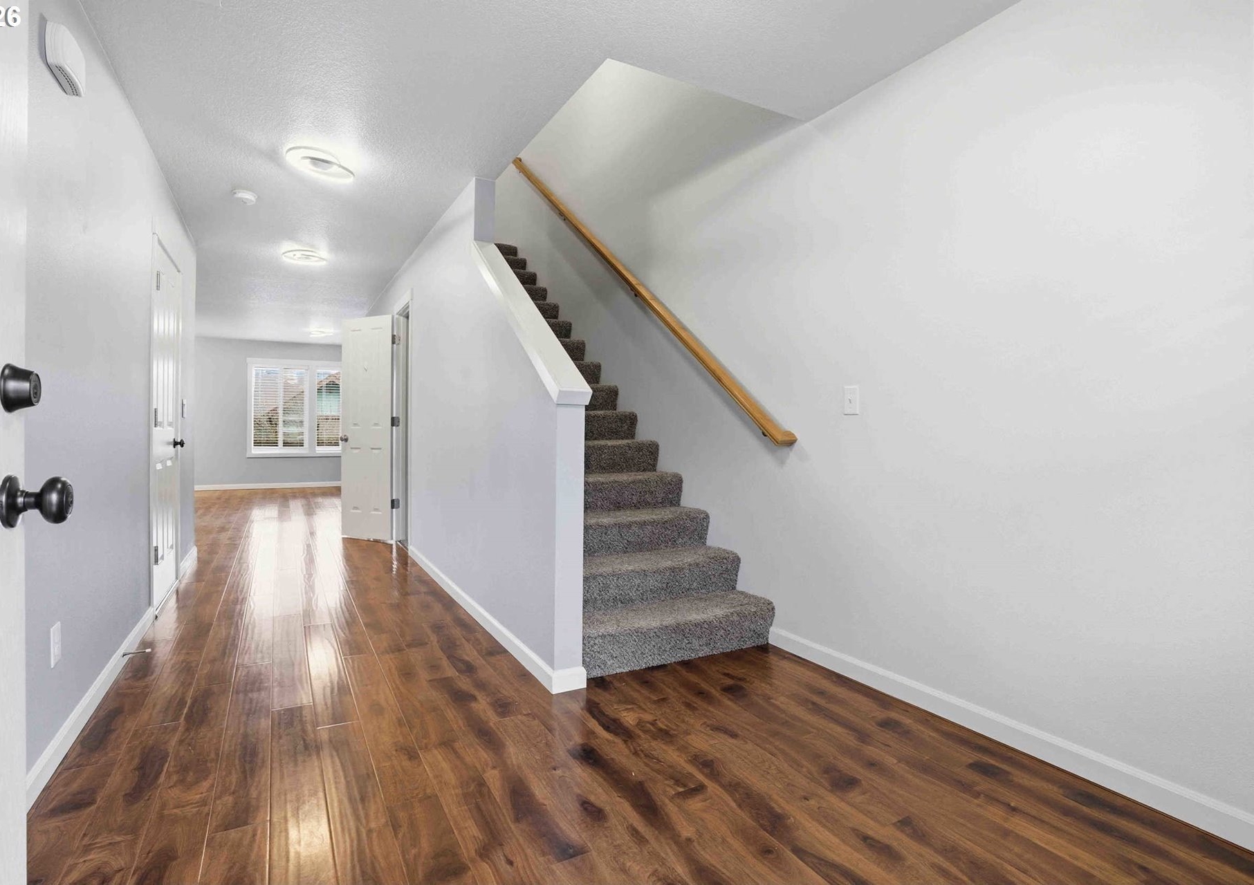 Charming and easy living in this move-in-ready 3-bedroom, 2.5-bath townhome with low HOA dues in a convenient location. Features an open floor plan, tasteful interior designer colors, and engineered hardwood floors throughout the main level. The kitchen offers granite countertops, stainless-steel appliances, and a brand new dishwasher. Upstairs includes a spacious primary suite complete with a ceiling fan, walk-in closet, and an ensuite bathroom with dual vanities. A convenient laundry closet with a stackable washer/dryer. Smart home features include a Nest thermostat, Alexa-compatible switches, and an Arlo video doorbell. EV-ready garage with 220 outlet. HOA maintains front yard; fully fenced backyard with low-maintenance turf and patio. Close to the neighborhood park, shopping, and commuter routes. Perfect for first-time buyers or investors alike, this move-in-ready home delivers comfort, convenience, and turn-key appeal.