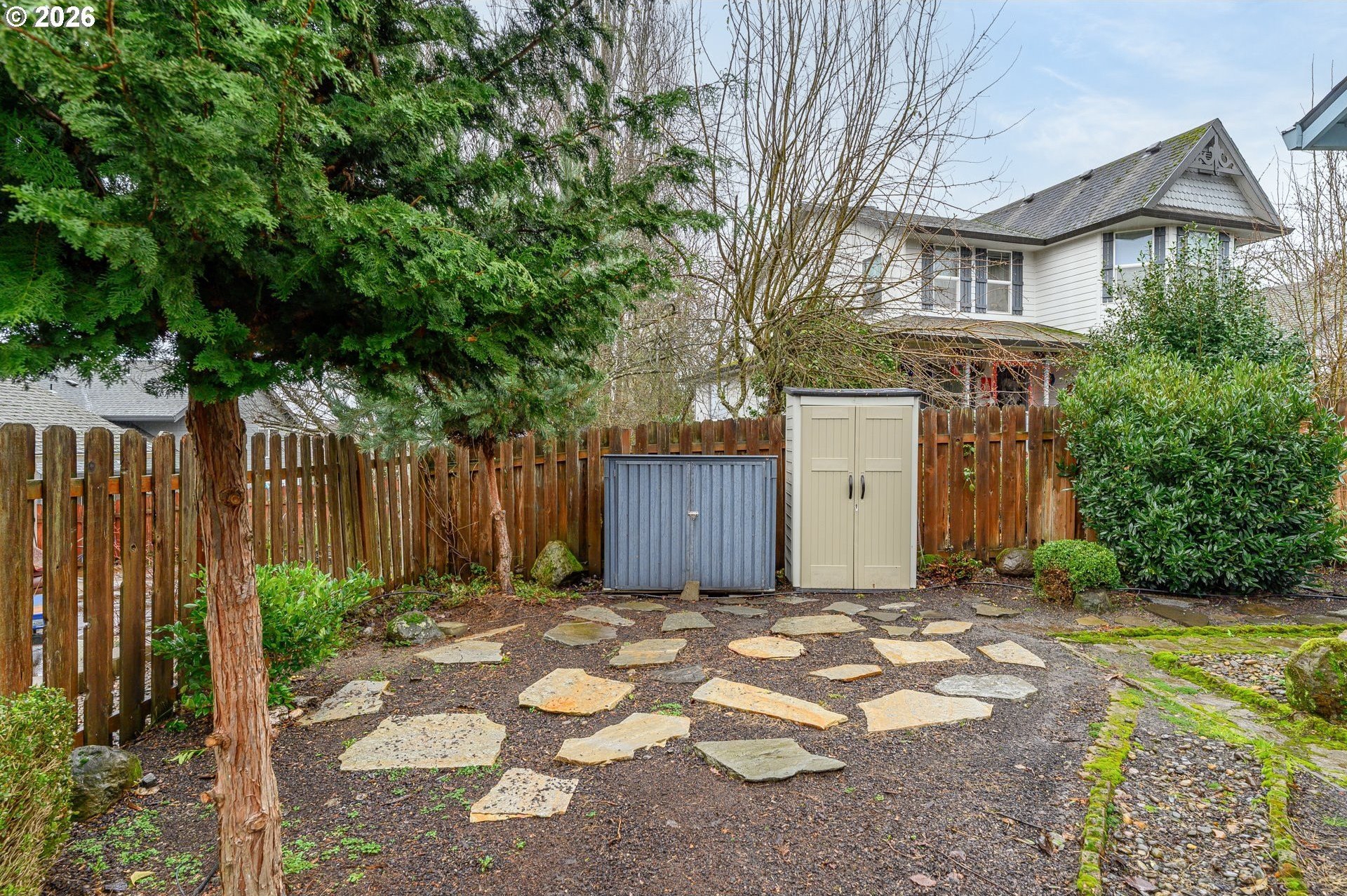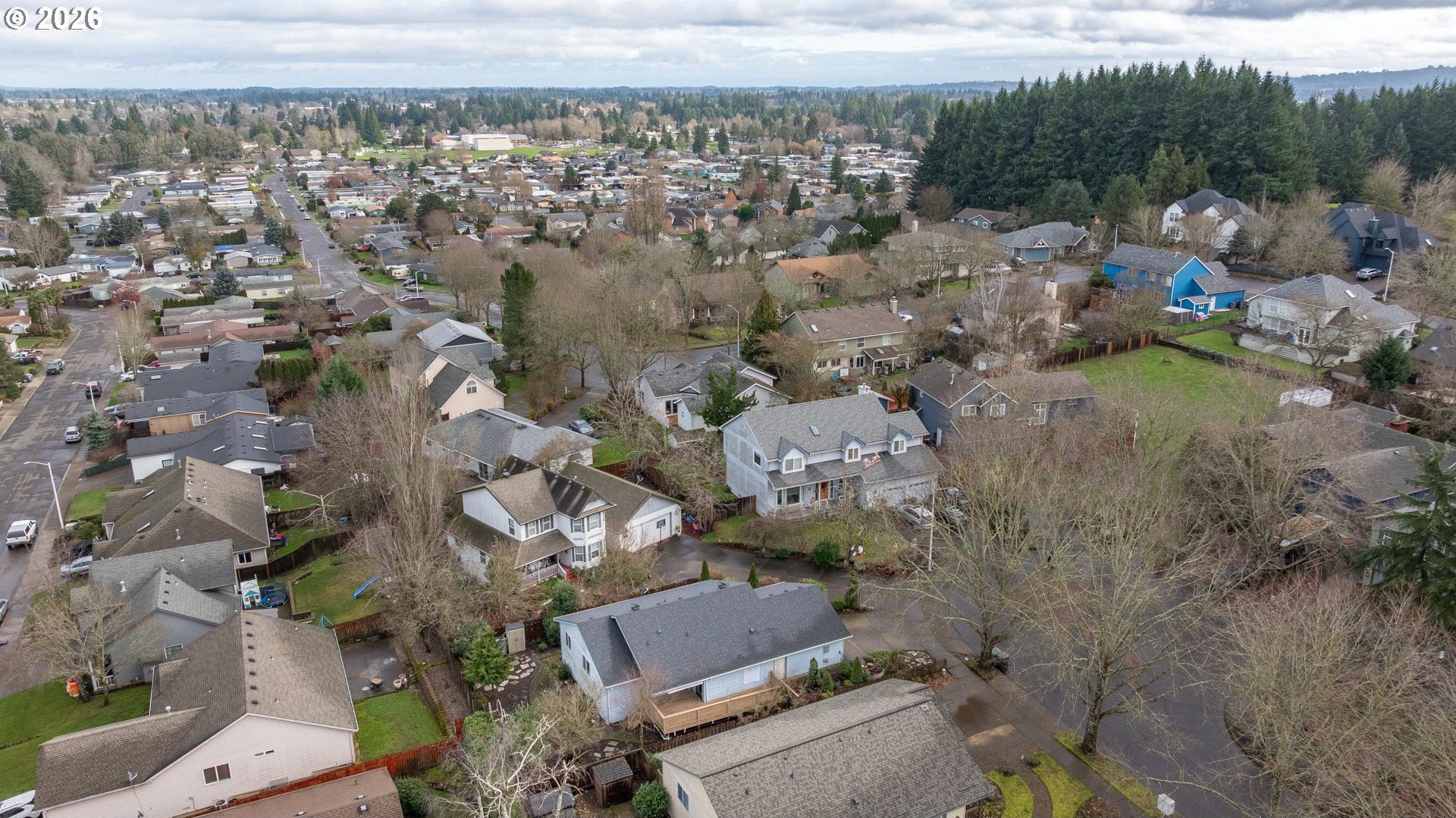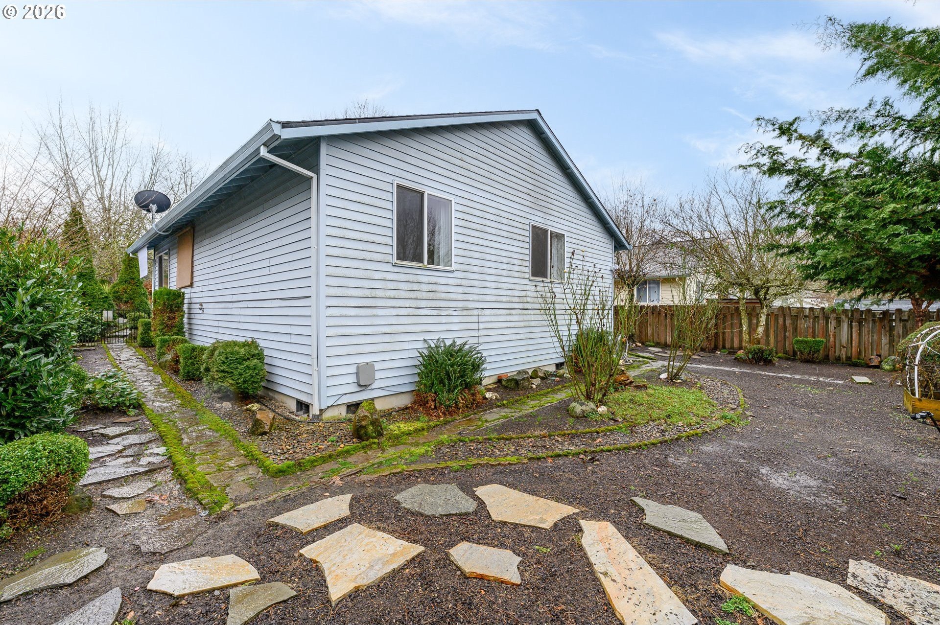 Located at the end of a peaceful cul-de-sac, this 1,216 sq ft single-level home offers privacy and a functional, easy-living layout. The open floor plan creates a welcoming flow for everyday living and provides an opportunity for a new owner to add their own personal touches. Recent updates include a newer roof with gutter guards and a new living room window that fills the space with natural light. The washer and dryer, approximately three years old, and the refrigerator are included. Step outside to a covered deck overlooking a landscaped, low-maintenance yard with a calming water feature, an ideal spot to relax. Enjoy the benefits of cul-de-sac living with minimal traffic and added privacy. The neighborhood offers access to the Westside Pedestrian Trail, featuring a 1.31-mile walking path to the park.