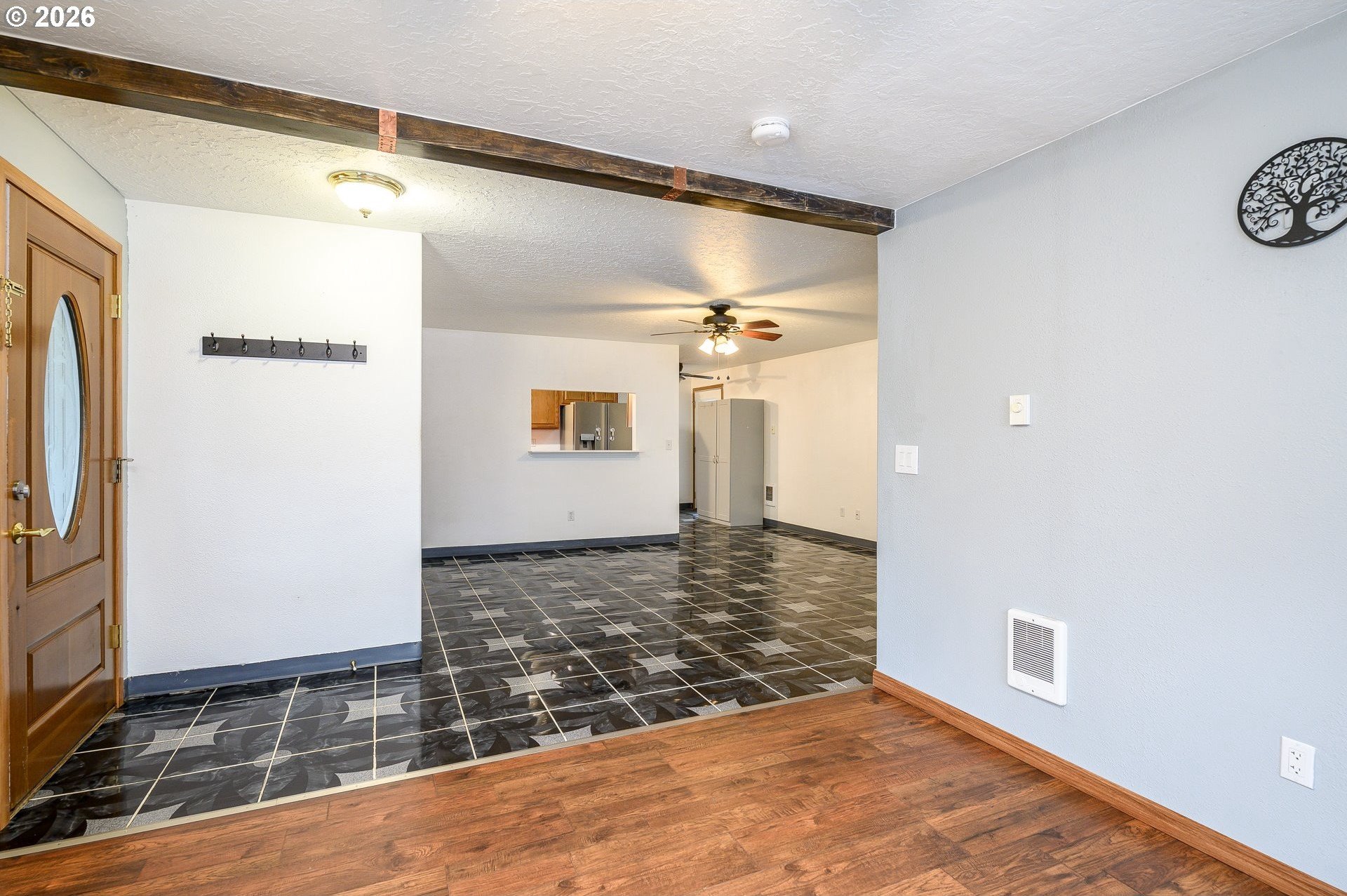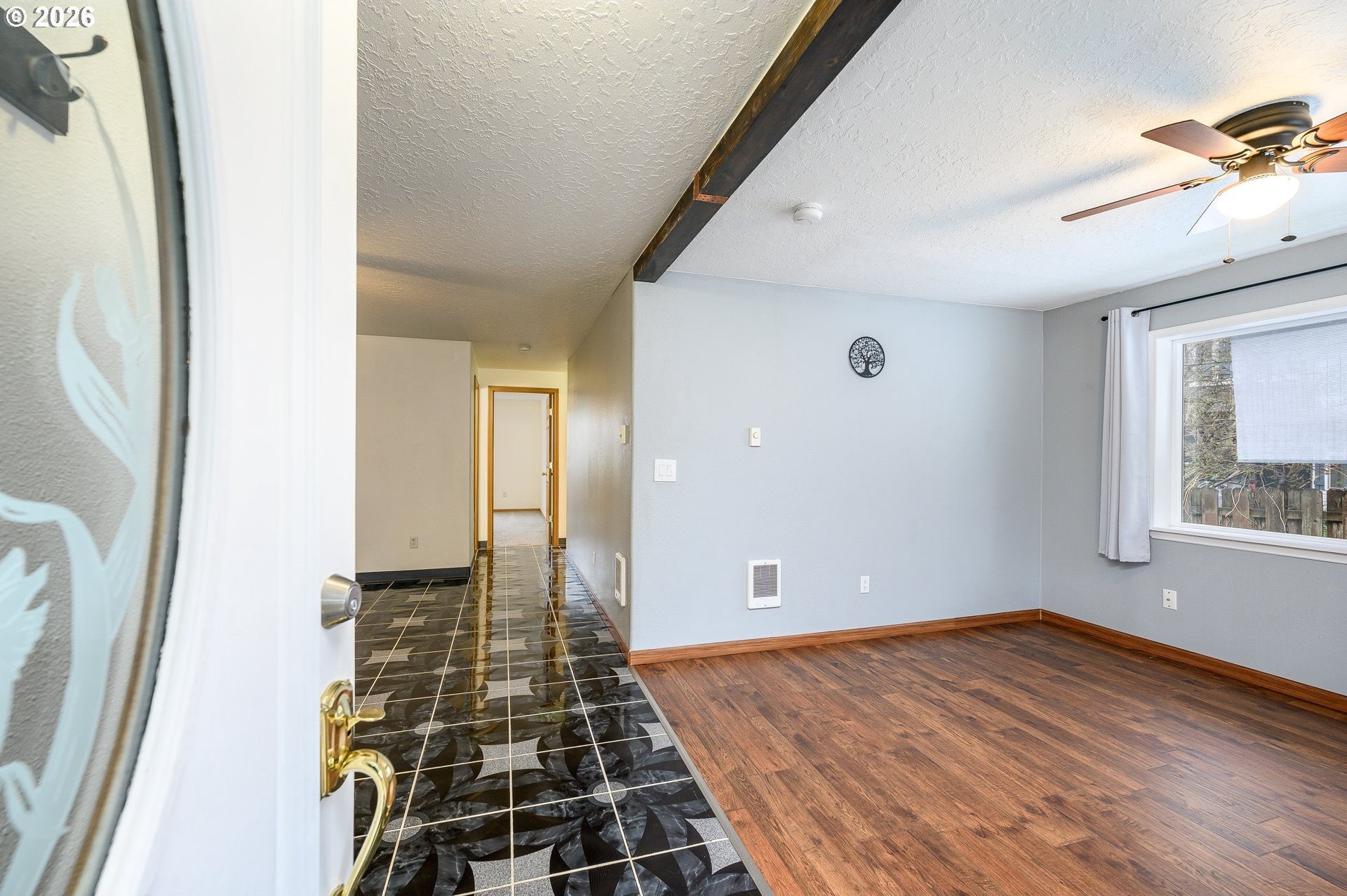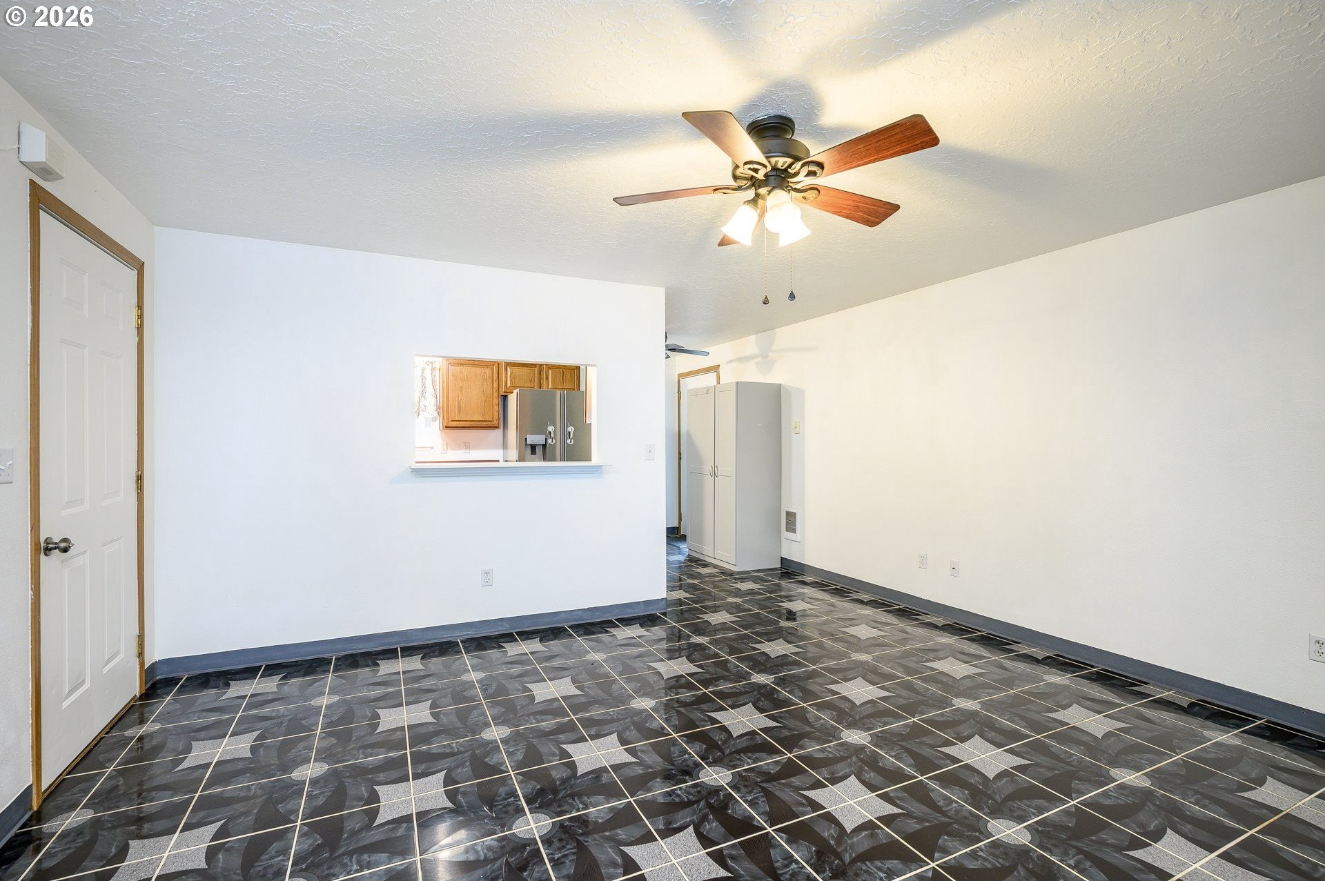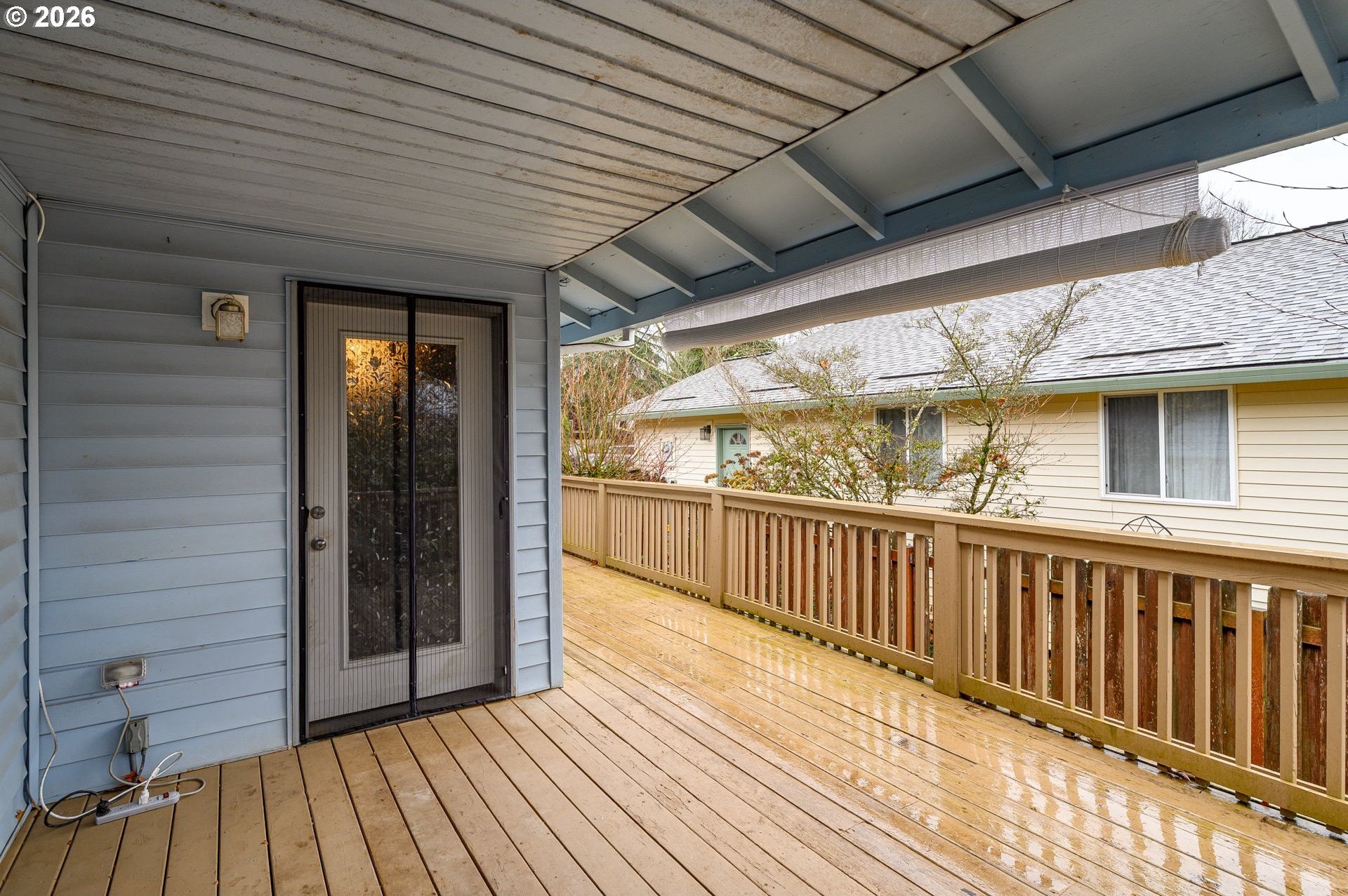 Located at the end of a peaceful cul-de-sac, this 1,216 sq ft single-level home offers privacy and a functional, easy-living layout. The open floor plan creates a welcoming flow for everyday living and provides an opportunity for a new owner to add their own personal touches. Recent updates include a newer roof with gutter guards and a new living room window that fills the space with natural light. The washer and dryer, approximately three years old, and the refrigerator are included. Step outside to a covered deck overlooking a landscaped, low-maintenance yard with a calming water feature, an ideal spot to relax. Enjoy the benefits of cul-de-sac living with minimal traffic and added privacy. The neighborhood offers access to the Westside Pedestrian Trail, featuring a 1.31-mile walking path to the park.