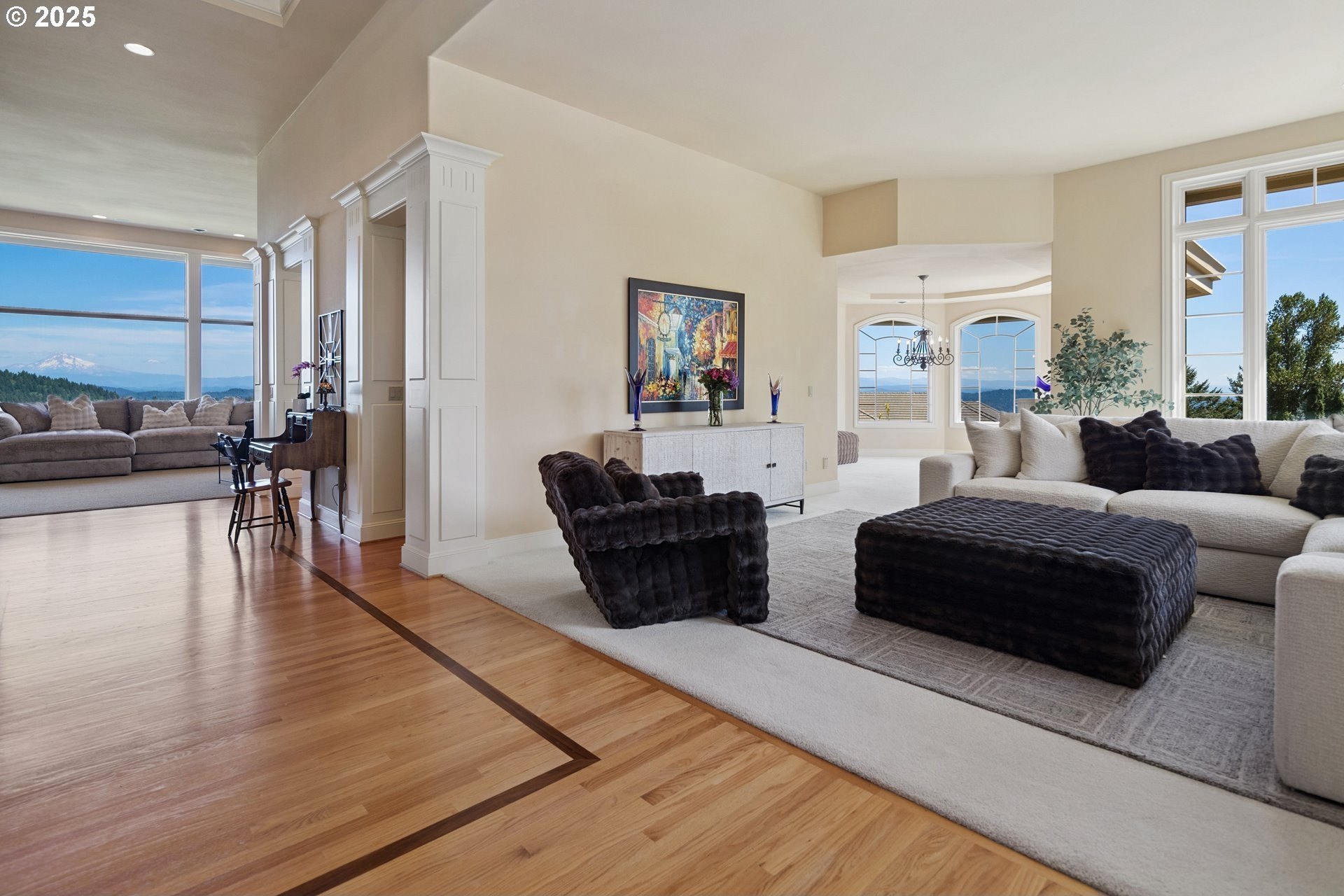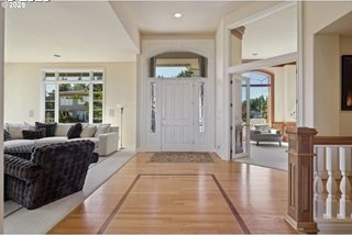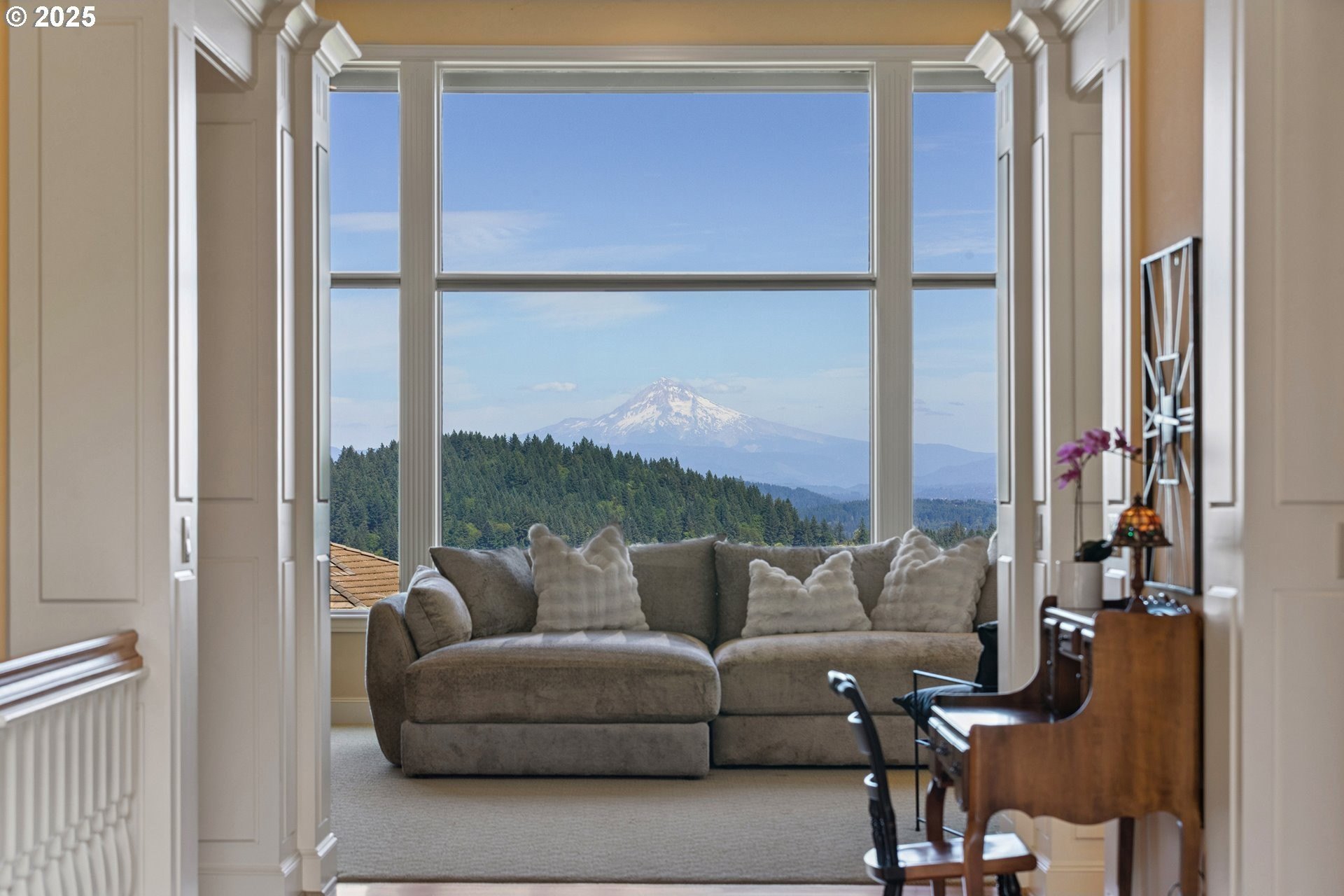 Luxury Living with Captivating Mt. Hood Views. Welcome to your luxurious retreat, ideally situated on a scenic corner lot with over half an acre of land and breathtaking, uninterrupted views of Mt. Hood. This exceptional 6,806 sq ft custom estate offers refined elegance, including a full-home generator and private elevator for ultimate convenience and comfort. Main-Level Primary Suite: Enjoy the ease of main-level living in your spacious primary suite, complete with a private deck showcasing stunning mountain vistas, the perfect start and end to your day.Thoughtful Design & Elegant Craftsmanship. This home features soaring ceilings, polished hardwood floors, detailed crown moldings, and impeccable finishes. The layout is ideal for entertaining or peaceful relaxation, offering two cozy fireplaces, spacious family rooms, and versatile bonus rooms. Comfort and Space for Every Lifestyle. With five bedrooms, three full baths, two half baths, and an oversized three-car garage, there's ample room for family and guests, with a house back-up generator. The large lot provides endless possibilities for outdoor living. Prime Location in Happy Valley, OR. Located at 11719 SE Solomon Ct, enjoy proximity to excellent schools, beautiful parks, golf courses, and upscale shopping and dining. Portland's vibrant city amenities are just a short distance away. Don't miss the opportunity to own this remarkable home with iconic Mt. Hood views. Schedule your viewing today!