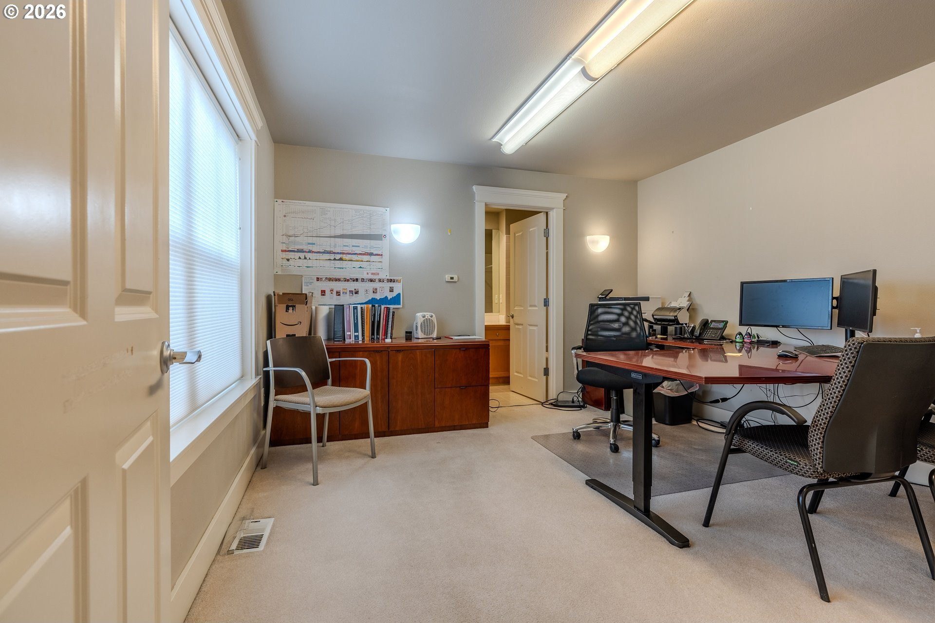 This 4 bedroom 3 1/2 bath home has spacious and open living area with a large entrance, cozy fireplace. and ample space to live and entertain. 2 of the bedrooms, including the primary, have their own bathrooms attached. The room in the front of the house can be used for a den, office, or great room. The 3rd bedroom at the top of the stairs is huge and can be used for a media room, play room, or bedroom. Laundry room is on 2nd floor next to the bedrooms for convenience. This property is a wonderful large home, and can also be used for an owner-run business - zoned VC. It has currently been used as a professional office. This property comes with a currently rented ADU for extra income ($1,348/mo). Kitchen can be put back in original space (was put in garage for professional office) Right in the heart of Fairview Village, shopping, library, parks, are all within walking distance. Seller willing to carry financing with 250K down for 3 years, 5% interest. Too good to pass up! Please call \listing agent for more information.