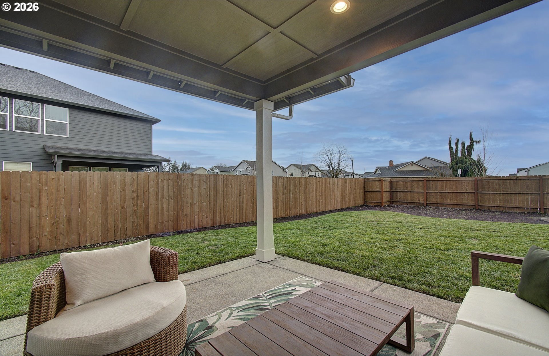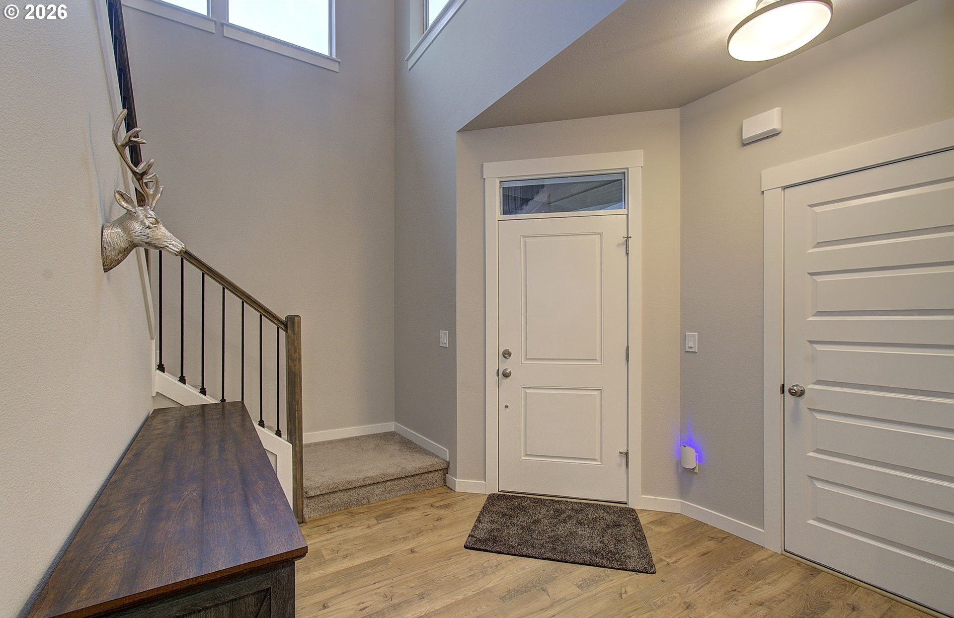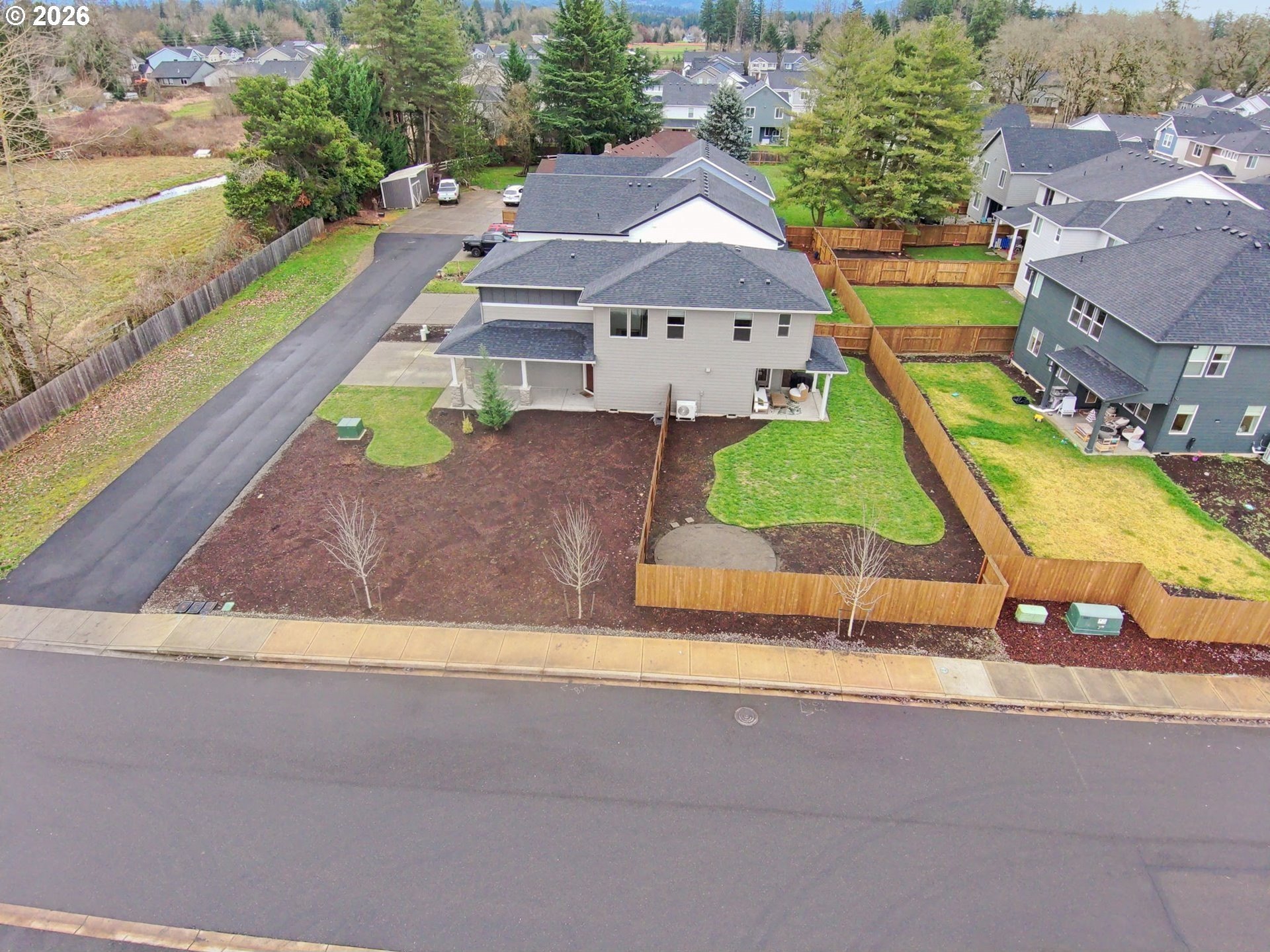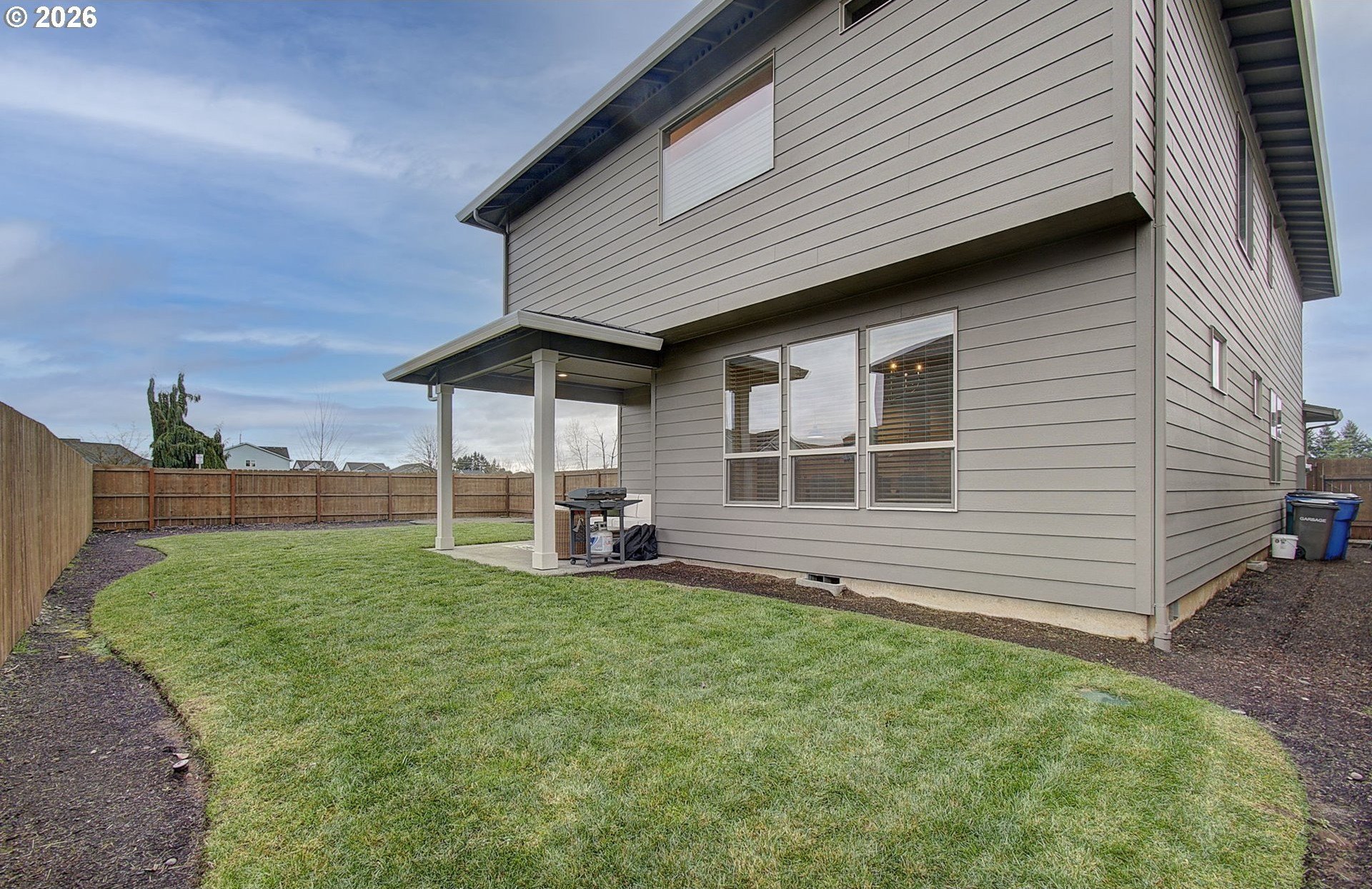 Built in 2024, this thoughtfully designed 4-bedroom home offers modern comfort on a rare double-size corner lot next to greenspace and across from an open field. The main floor features a versatile den with French doors-ideal as an office, workout space, or flex room. The kitchen centers around a quartz-topped island, with soft-close cabinetry, a large pantry, stainless steel appliances, and an included refrigerator.The spacious great room flows to a 13*11 covered patio and an oversized, fully fenced backyard-nearly 2,500 sq. ft. of usable outdoor space with sprinklers and an installed above-ground pool that may be included in negotiations.Upstairs, the private primary suite includes a generous walk-in closet with custom organizer, plus an ensuite bath featuring a free-standing soaking tub and walk-in shower. Three additional bedrooms, a full bath, and convenient laundry complete the upper level-washer and dryer included.Additional highlights include a heat pump with AC, smart thermostat, luxury vinyl plank flooring, and a finished 2-car garage. Sidewalks connect throughout the quiet neighborhood. The structural builder warranty is believed to be transferable-buyer to verify. Located in fast-growing Brush Prairie, just minutes from shopping and schools, this quiet setting offers space to live, relax, and enjoy.