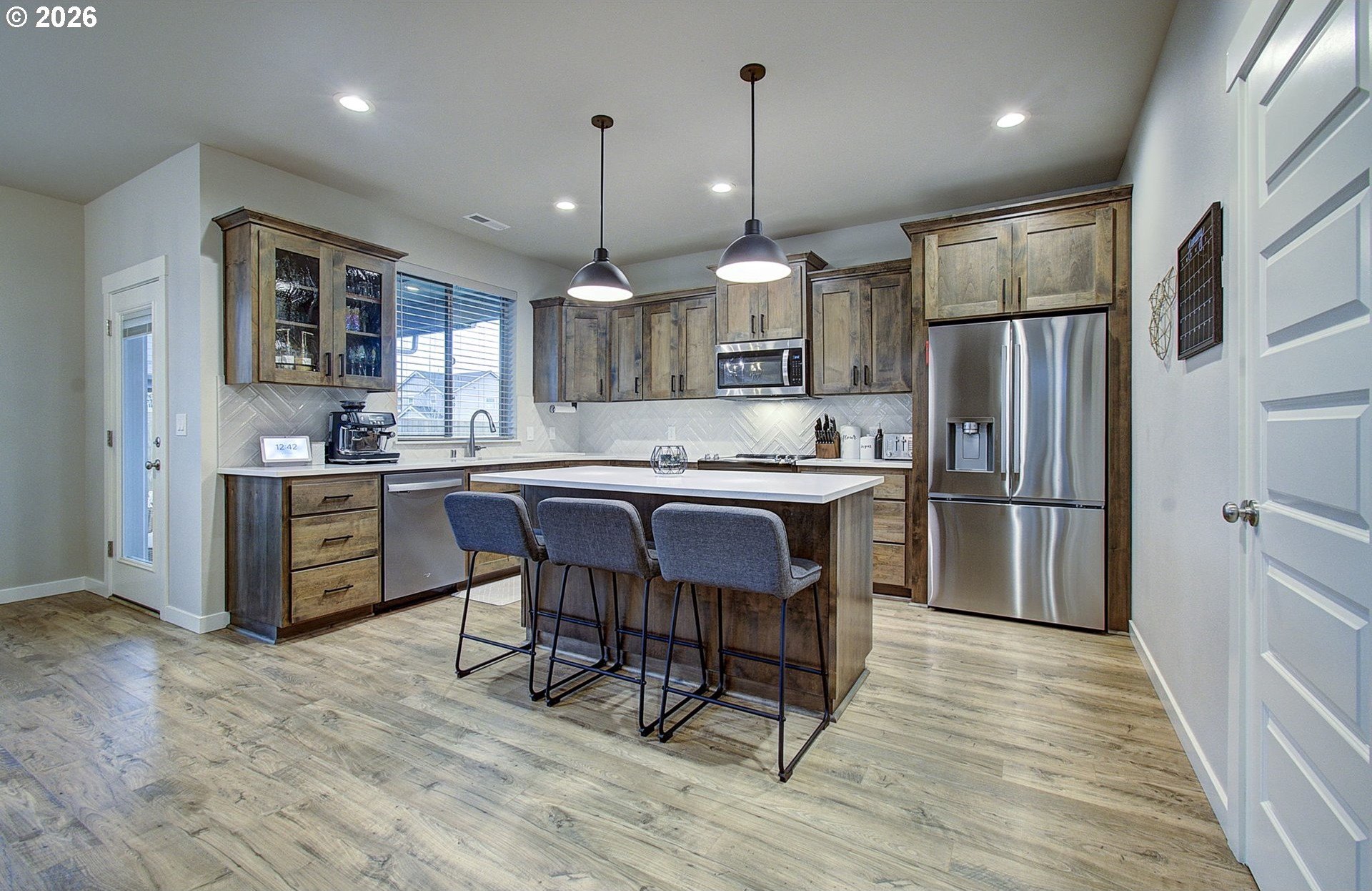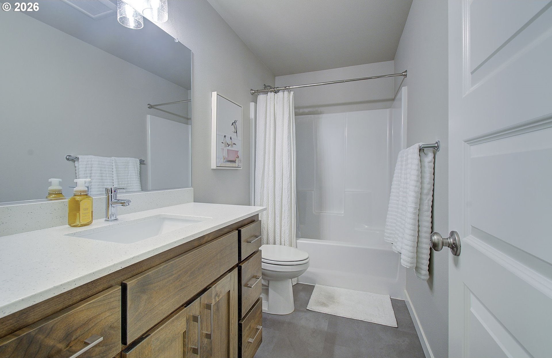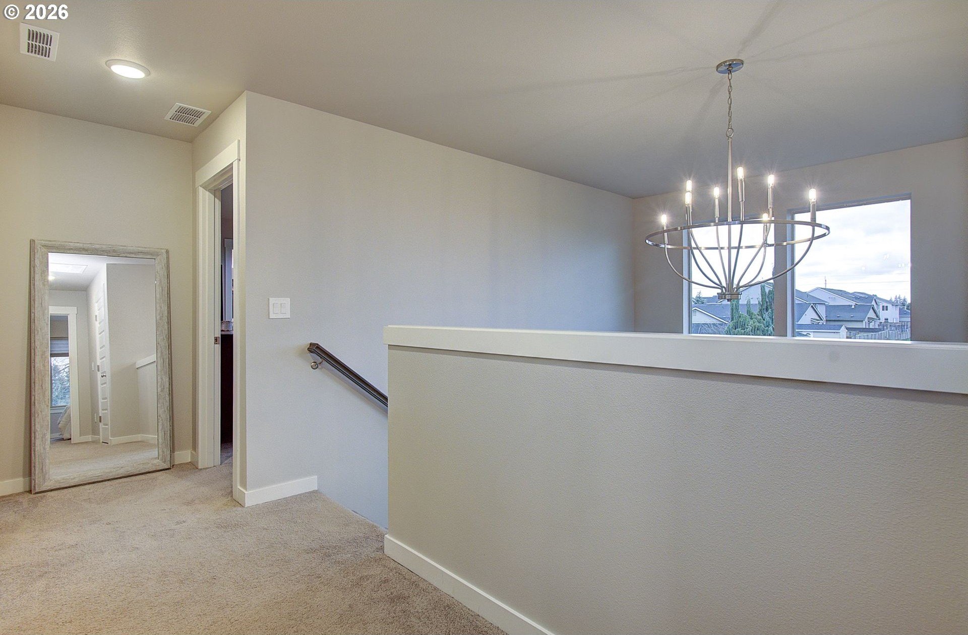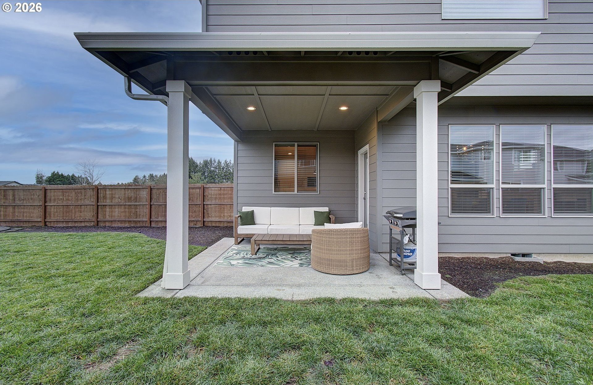 Built in 2024, this thoughtfully designed 4-bedroom home offers modern comfort on a rare double-size corner lot next to greenspace and across from an open field. The main floor features a versatile den with French doors-ideal as an office, workout space, or flex room. The kitchen centers around a quartz-topped island, with soft-close cabinetry, a large pantry, stainless steel appliances, and an included refrigerator.The spacious great room flows to a 13*11 covered patio and an oversized, fully fenced backyard-nearly 2,500 sq. ft. of usable outdoor space with sprinklers and an installed above-ground pool that may be included in negotiations.Upstairs, the private primary suite includes a generous walk-in closet with custom organizer, plus an ensuite bath featuring a free-standing soaking tub and walk-in shower. Three additional bedrooms, a full bath, and convenient laundry complete the upper level-washer and dryer included.Additional highlights include a heat pump with AC, smart thermostat, luxury vinyl plank flooring, and a finished 2-car garage. Sidewalks connect throughout the quiet neighborhood. The structural builder warranty is believed to be transferable-buyer to verify. Located in fast-growing Brush Prairie, just minutes from shopping and schools, this quiet setting offers space to live, relax, and enjoy.