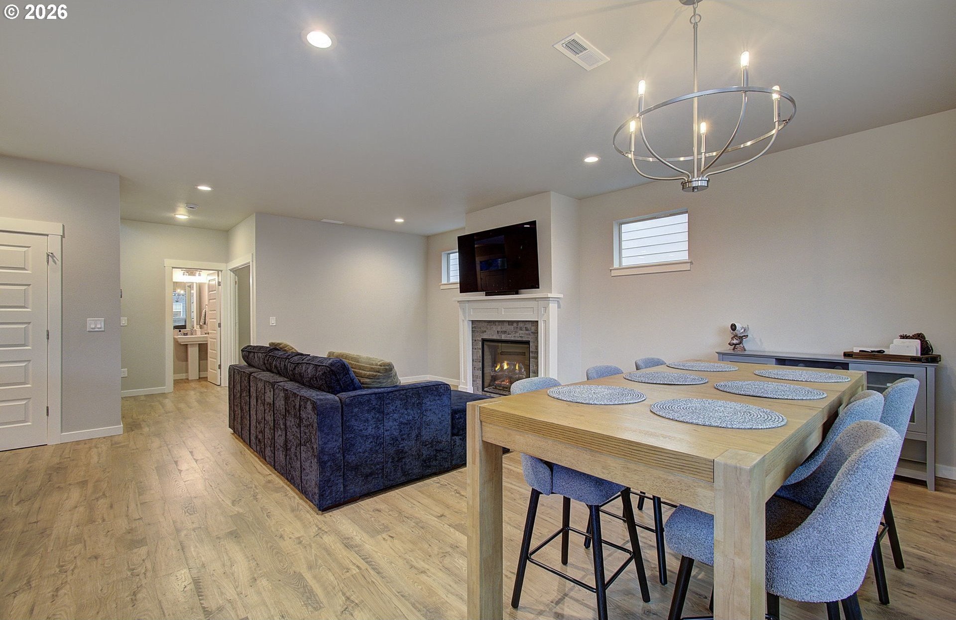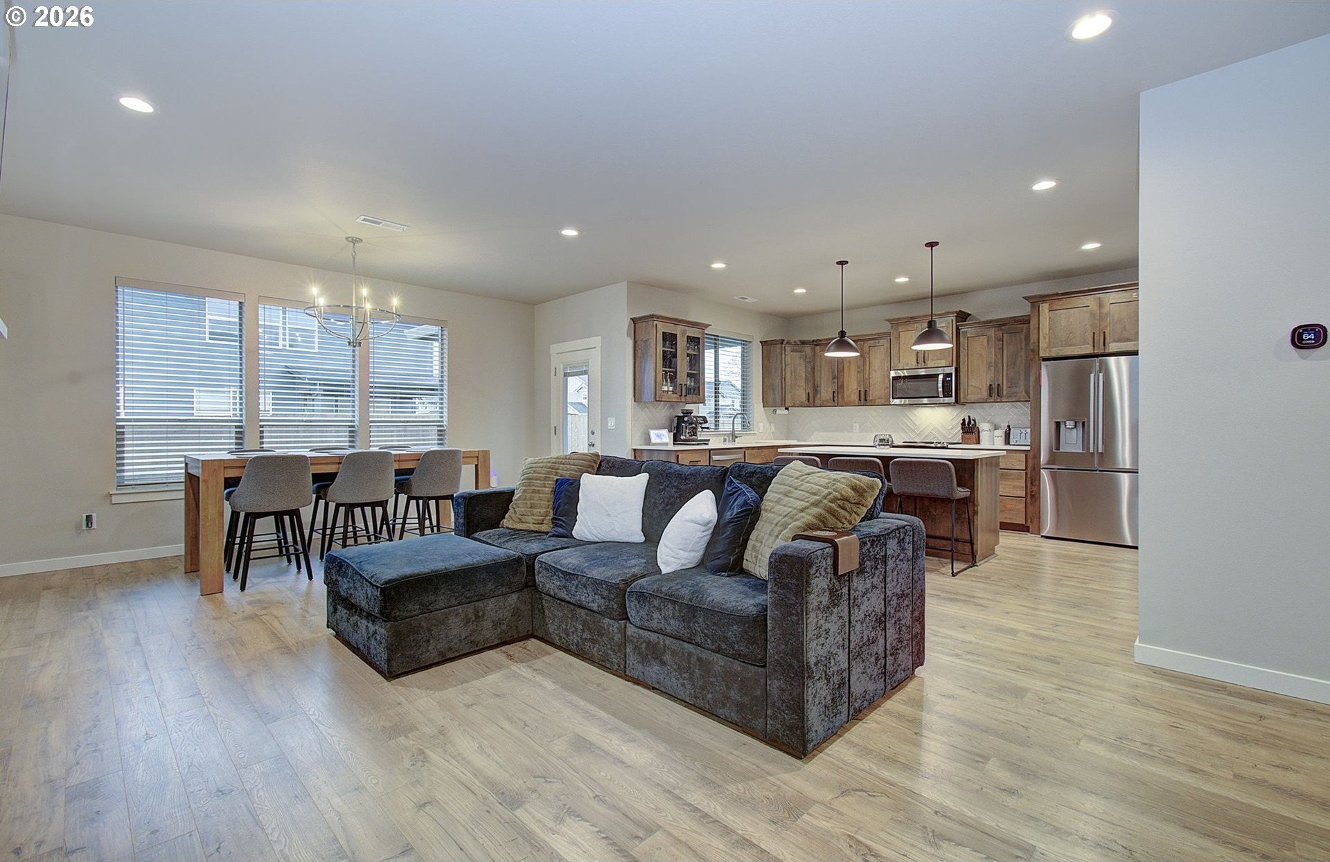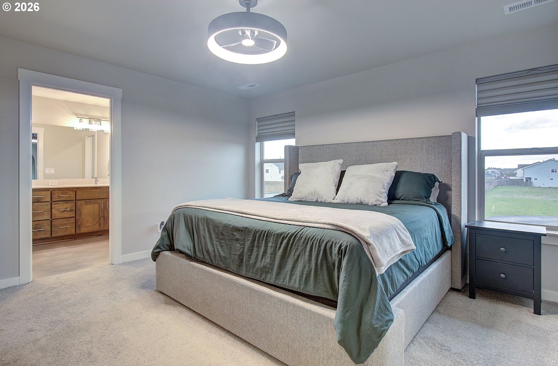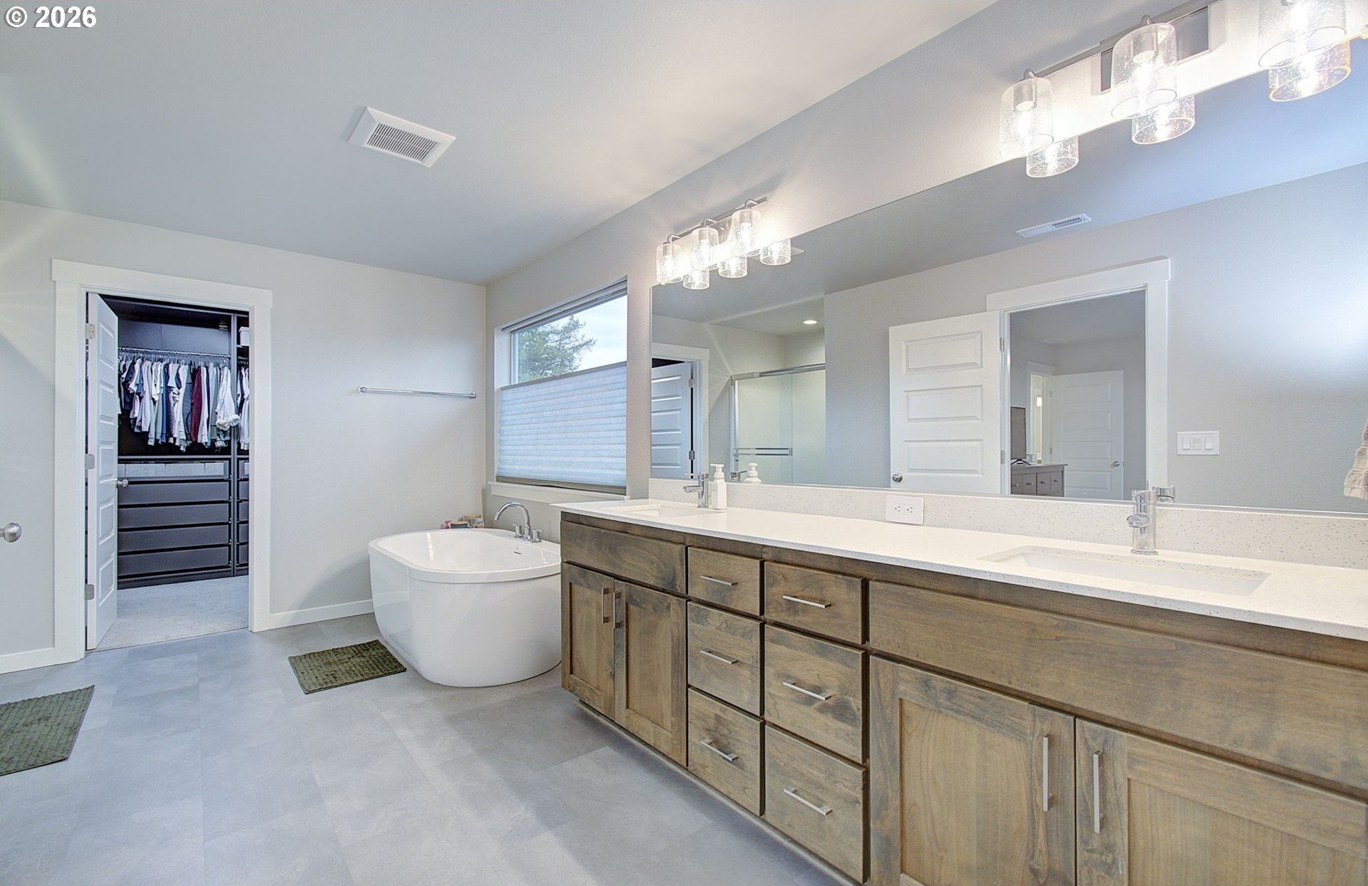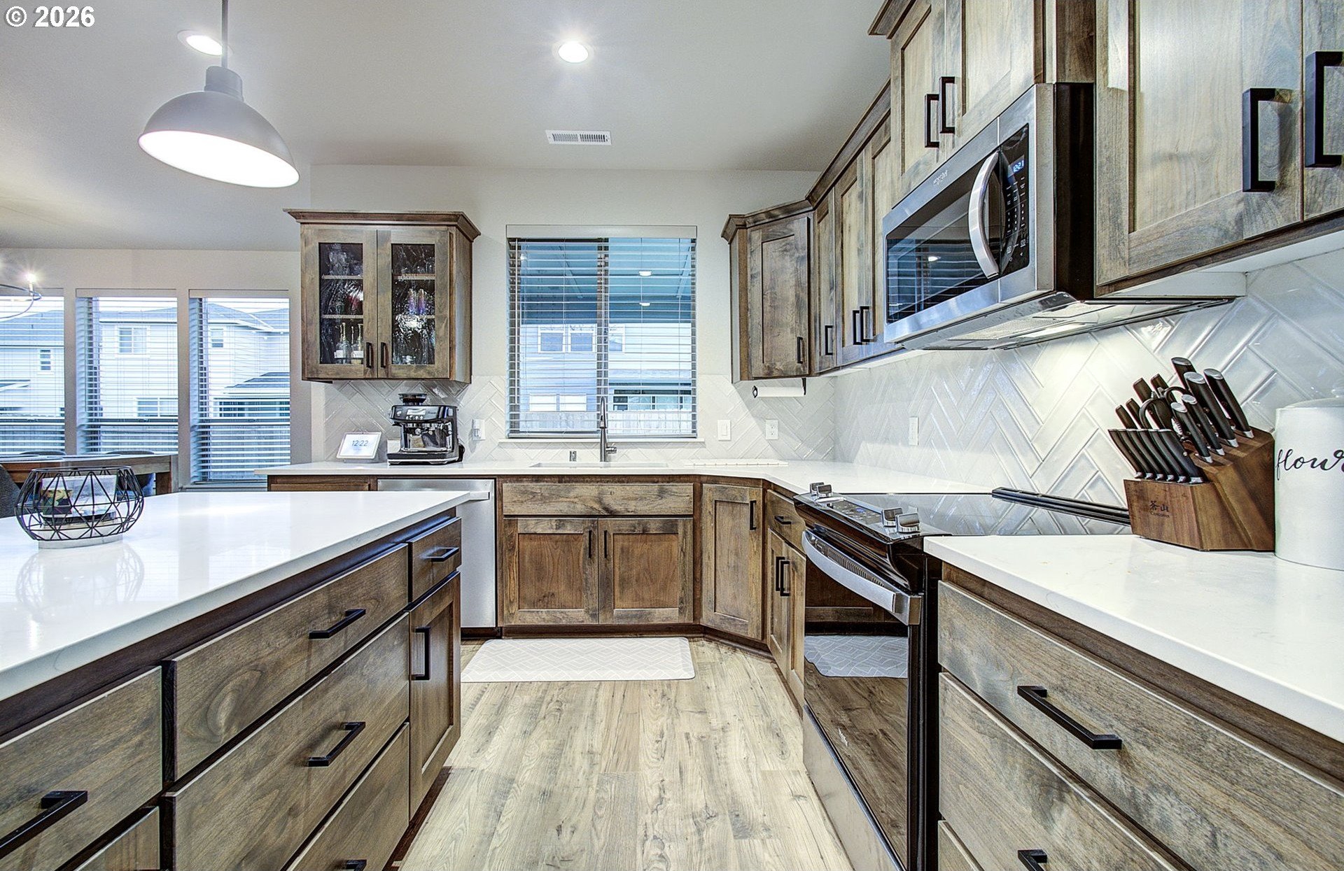 Built in 2024, this thoughtfully designed 4-bedroom home offers modern comfort on a rare double-size corner lot next to greenspace and across from an open field. The main floor features a versatile den with French doors-ideal as an office, workout space, or flex room. The kitchen centers around a quartz-topped island, with soft-close cabinetry, a large pantry, stainless steel appliances, and an included refrigerator.The spacious great room flows to a 13*11 covered patio and an oversized, fully fenced backyard-nearly 2,500 sq. ft. of usable outdoor space with sprinklers and an installed above-ground pool that may be included in negotiations.Upstairs, the private primary suite includes a generous walk-in closet with custom organizer, plus an ensuite bath featuring a free-standing soaking tub and walk-in shower. Three additional bedrooms, a full bath, and convenient laundry complete the upper level-washer and dryer included.Additional highlights include a heat pump with AC, smart thermostat, luxury vinyl plank flooring, and a finished 2-car garage. Sidewalks connect throughout the quiet neighborhood. The structural builder warranty is believed to be transferable-buyer to verify. Located in fast-growing Brush Prairie, just minutes from shopping and schools, this quiet setting offers space to live, relax, and enjoy.