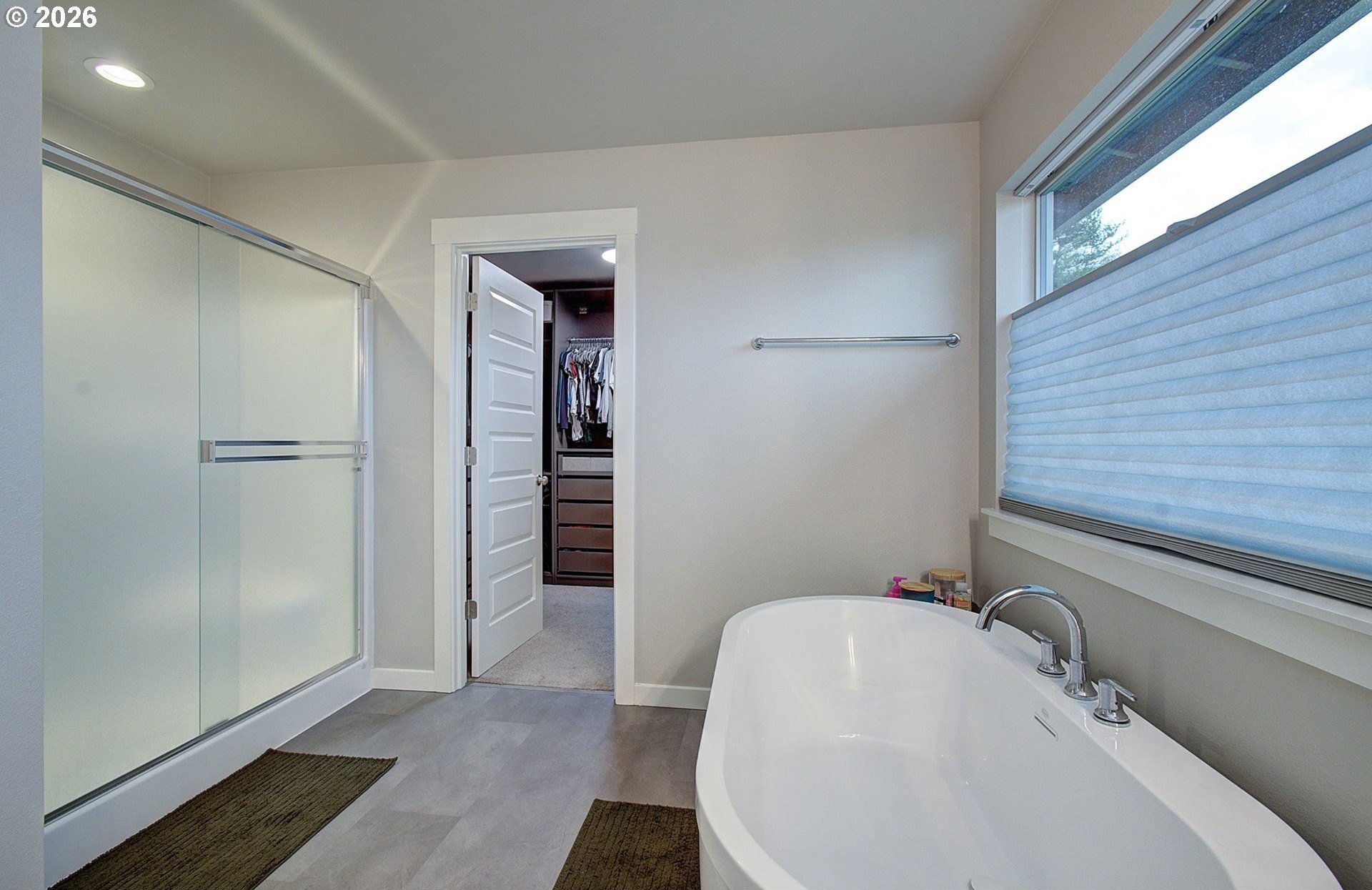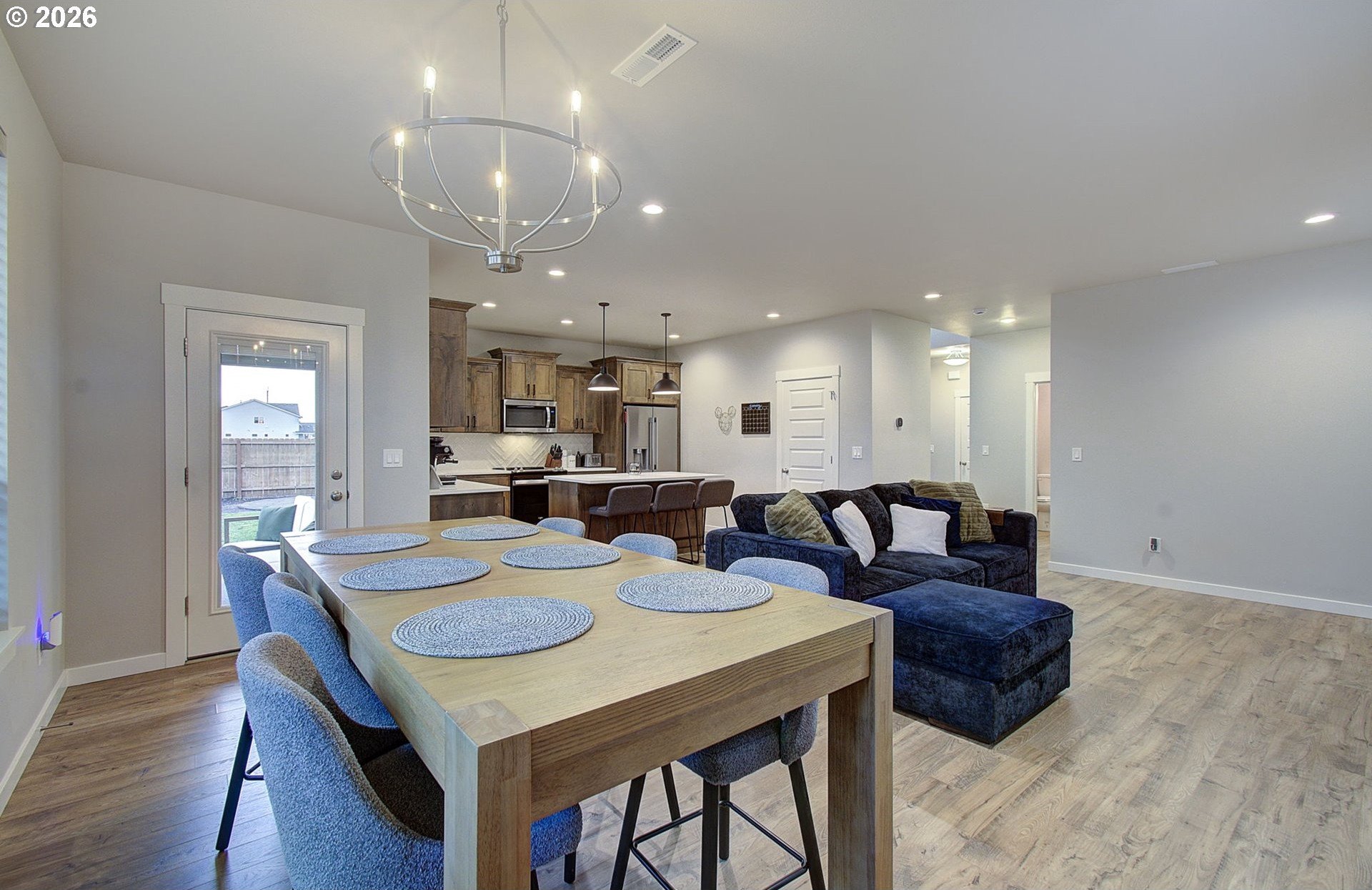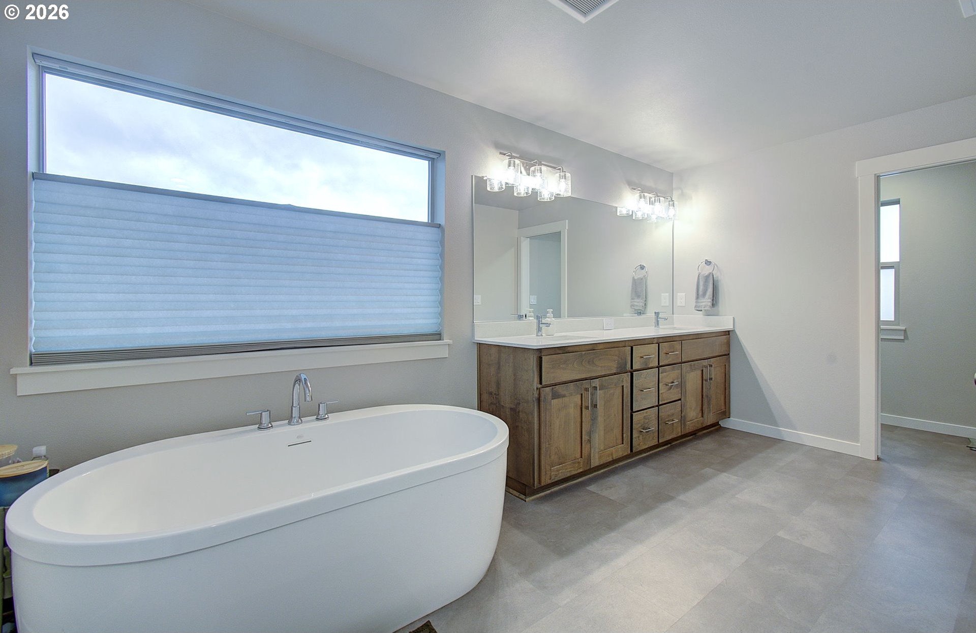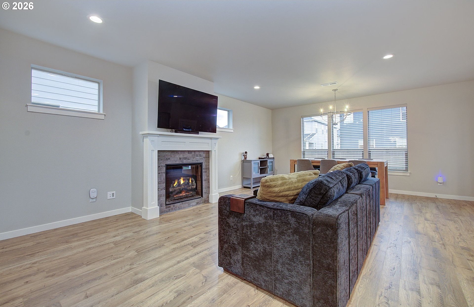 Built in 2024, this thoughtfully designed 4-bedroom home offers modern comfort on a rare double-size corner lot next to greenspace and across from an open field. The main floor features a versatile den with French doors-ideal as an office, workout space, or flex room. The kitchen centers around a quartz-topped island, with soft-close cabinetry, a large pantry, stainless steel appliances, and an included refrigerator.The spacious great room flows to a 13*11 covered patio and an oversized, fully fenced backyard-nearly 2,500 sq. ft. of usable outdoor space with sprinklers and an installed above-ground pool that may be included in negotiations.Upstairs, the private primary suite includes a generous walk-in closet with custom organizer, plus an ensuite bath featuring a free-standing soaking tub and walk-in shower. Three additional bedrooms, a full bath, and convenient laundry complete the upper level-washer and dryer included.Additional highlights include a heat pump with AC, smart thermostat, luxury vinyl plank flooring, and a finished 2-car garage. Sidewalks connect throughout the quiet neighborhood. The structural builder warranty is believed to be transferable-buyer to verify. Located in fast-growing Brush Prairie, just minutes from shopping and schools, this quiet setting offers space to live, relax, and enjoy.