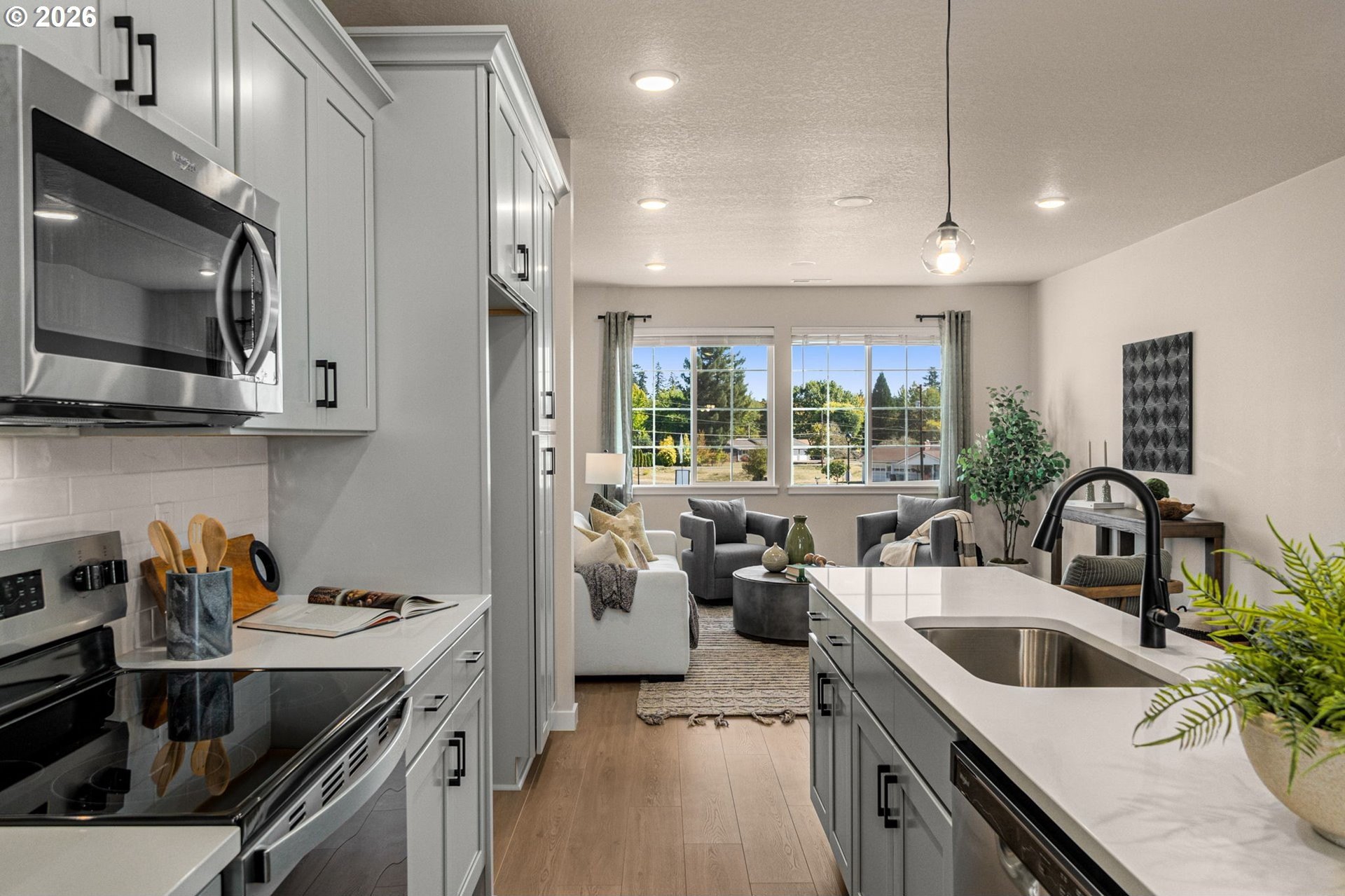 Brand New Luxury Townhome Community, Located in South Hillsboro! The Avery Plan offers 2 bedrooms, 2.5 baths, a large bonus room and 9' ceilings or higher throughout entire home. Standard Features include quartz counters & under-mount sinks in kitchen AND bathrooms, black matte hardware, lighting fixtures & faucets, stainless steel appliances, soft close doors & drawers at all cabinets and wide plank laminate hardwood flooring on entire main level. Stay warm in the winter with electric heat pump that will also keep you cool in the summer! The primary suite has a 11'H vaulted ceiling, walk-in closet, walk in shower, dual sinks and more. Home features a covered deck off the great room plus a bonus room on the ground level. 2" Faux wood blinds, Air Conditioning, garage door opener & 50 amp EV outlet included. NEIGHBORHOOD PRICING STARTING AT $409,500! Taxes TBD. Open Friday thru Tuesday 11am-4pm. Closed Wednesdays & Thursdays. [Home Energy Score = 9. HES Report
