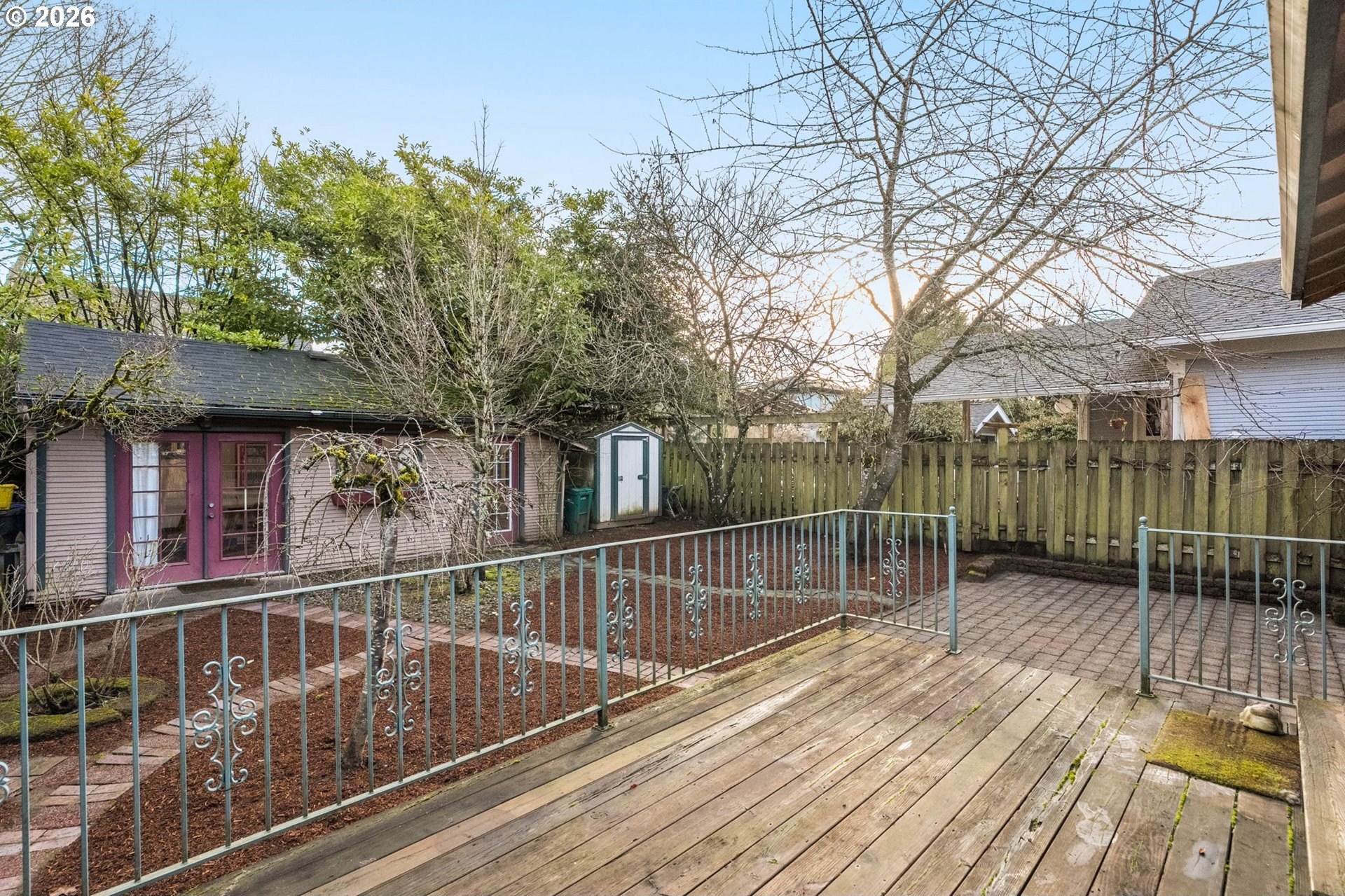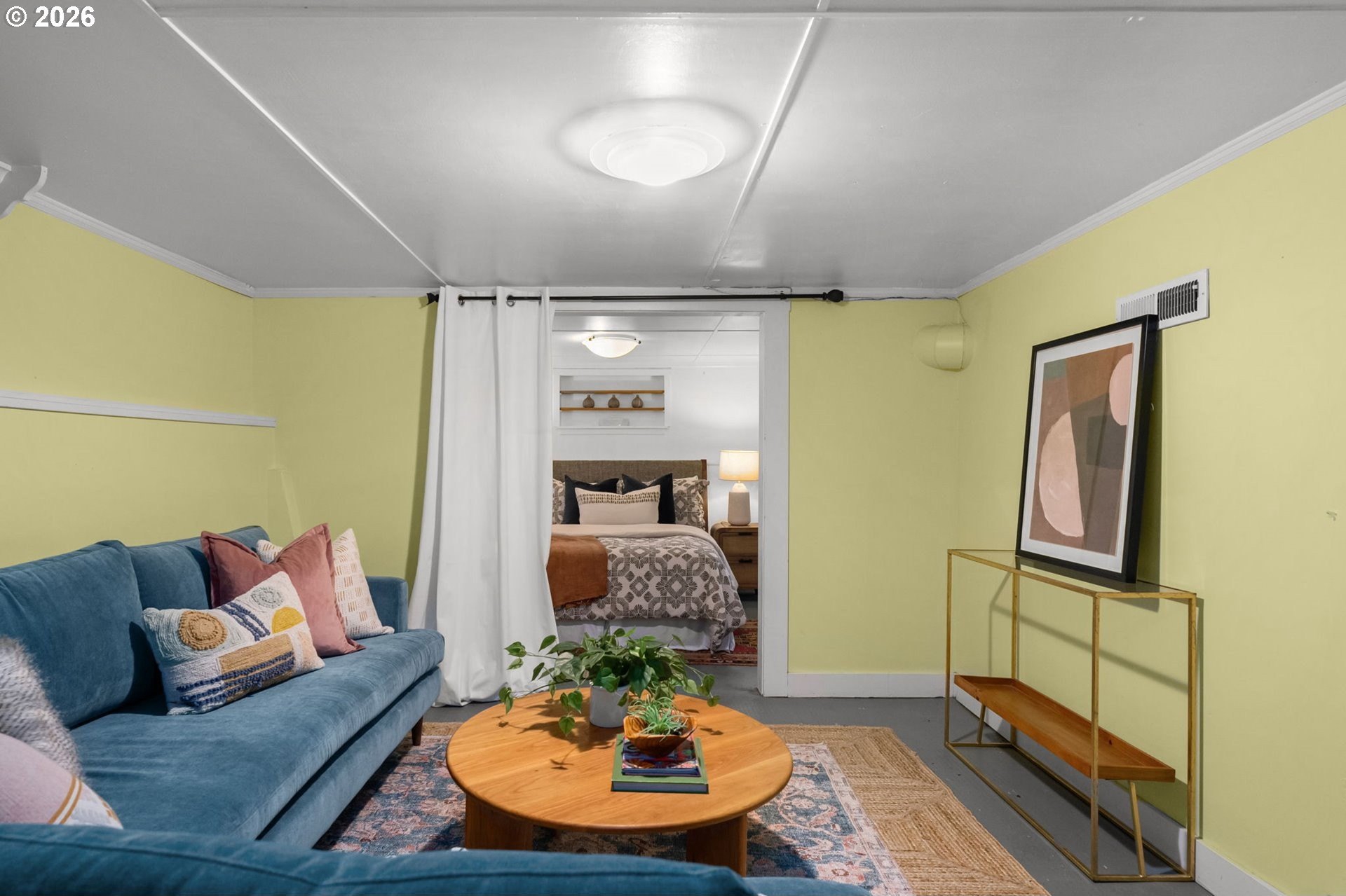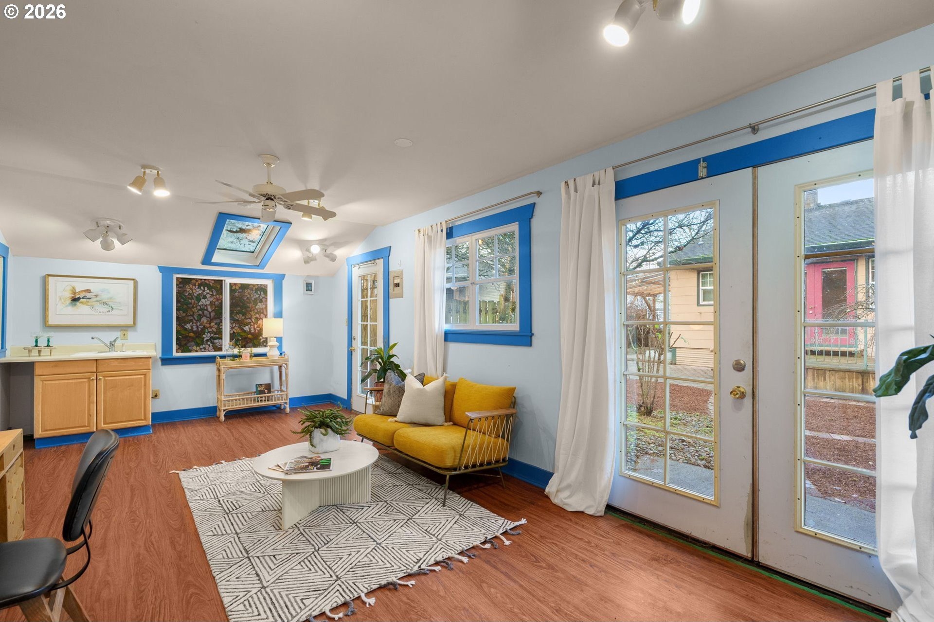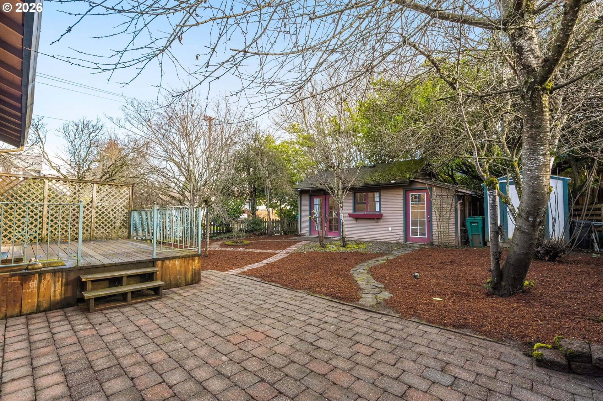 Perfectly perched on a sunny corner lot with a detached studio just one block from NE Fremont Street, this home delivers the ultimate Portland lifestyle. From here, you can easily stroll to the most vibrant stretch of Fremont Street, surrounded by beloved cafes, local shops, and neighborhood favorites. The setting alone makes a statement- central, connected, and full of character - truly living up to the mantra of location, location, location!Inside, a charming living room sets a warm and inviting tone, anchored by a cozy gas fireplace. To the right, a stylish kitchen flows seamlessly into the dining area, creating an ideal space for everyday living. Just off the living room, the main-level bedroom is filled with natural light and features double doors that open to the deck and backyard, paired with a full bathroom for comfort and privacy. Out back, a cool art and artist studio adds a creative touch and unique flexibility.Downstairs, the basement offers even more versatility with a generous flex space perfect for a home office, media room, or gym. A second bedroom, half bathroom, and exterior access make this level well-suited for guests or extended living. Thoughtfully laid out and rich with character, this home blends function, creativity, and an unbeatable location! [Home Energy Score = 5. HES Report