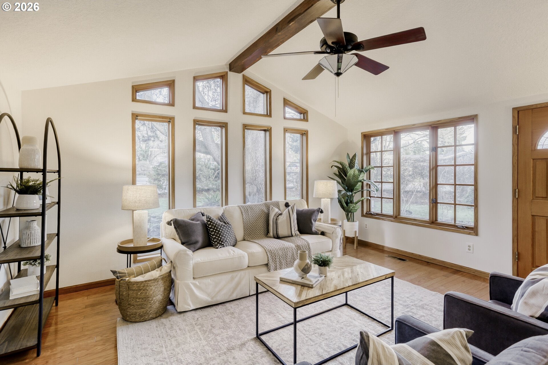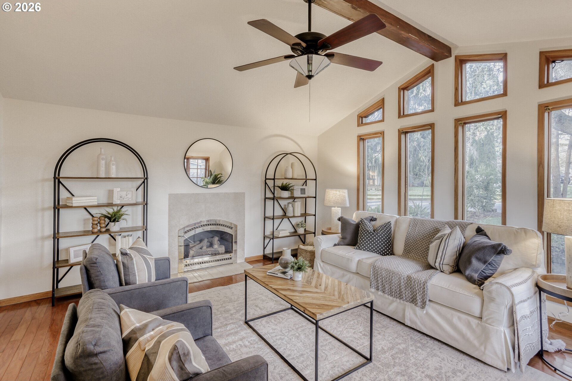 Fantastic single level home in desirable Ardenwald! 3 BD + 2 BA + Covered patio + RV Parking space. Located on a corner lot with mature landscaping, this darling home offers a spacious open floorplan: mud room, living room with tall vaulted ceilings and gas fireplace, dining area with newer slider to the back patio, a sitting area and an updated kitchen (quartz countertop, lots of storage, fridge included). The primary suite is well sized, walk-in closet with cedar, and an ensuite remodeled bathroom sure to please with its heated tiled floors, walk-in tiled shower, skylight, door to the outside (ideal when you install a hot tub - already wired 220). 2 more bedrooms and a second bathroom (with solar tube) make this home a great option for any households. The laundry room comes with stacked washer and dryer and has ample storage space as well. The garage was partially converted to a 3rd bedroom but still offer an amazing shop area, and/or storage options for gardening tools, bikes and other toys, and has a 220 plug ready for your e-vehicle charger! You will appreciate the details: wood windows, Andersen slider, new garage door and garage door opener. The outdoor space will amaze you: from the oversized covered concrete tile back patio, to the side yard with a gate from the street (42nd) to allow for RV parking, the composite decks, and the beautifully landscaped front yard, you will love all that this home offers as the seasons unfold. The driveway features a cover for your vehicle. PEX Plumbing, Furnace & A/C 2017, Water Heater 2021, Aluminum Roof 2023~, new garage door & garage door opener. What a great opportunity to live in Ardenwald, enjoy summer concerts, the Tideman Johnson Park, the Springwater Corridor etc... Come check it out today! [Home Energy Score = 4. HES Report