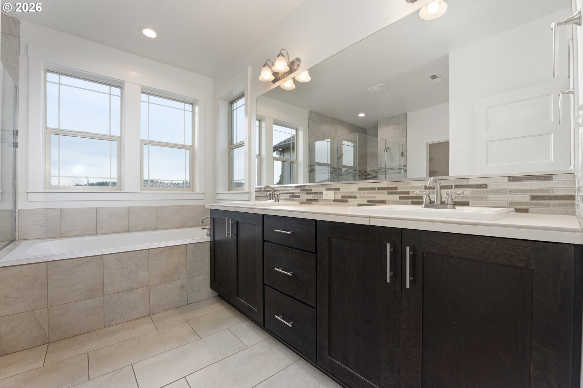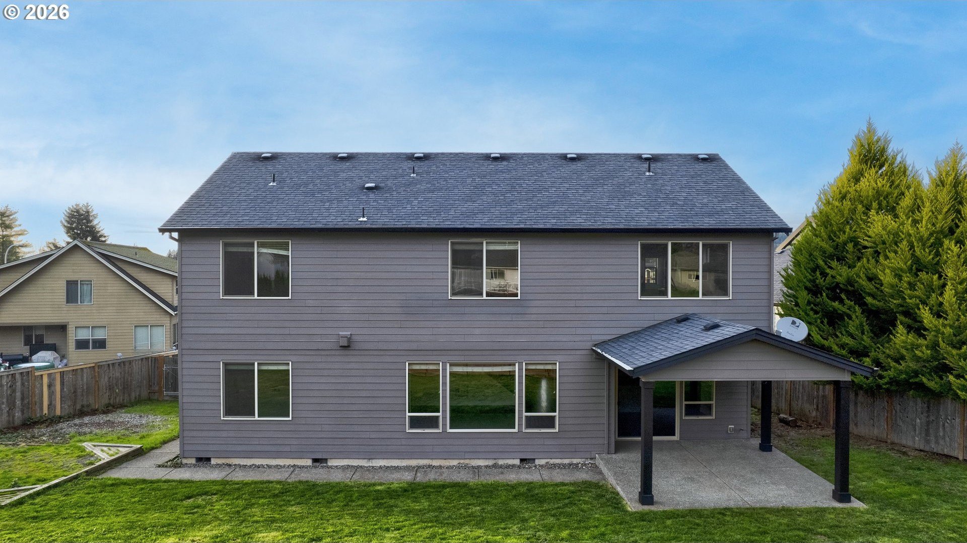 Open Sat & Sun 11:00-1:00. This beautiful home features an open-concept great room with a cozy gas fireplace and custom built-ins, perfect for both everyday living and entertaining. There is an office, bedroom and full bath on the main. The spacious upper primary suite offers a walk-in closet and a luxurious en suite bath with double sinks, walk-in shower, and a soaking tub. A dedicated laundry room includes a utility sink and ample storage for added convenience. Step outside to a 1/4 acre fully fenced backyard with a covered patio-ideal for relaxing or hosting gatherings. Completing the home is a three-car garage equipped with built-in cabinets for excellent organization and storage.
