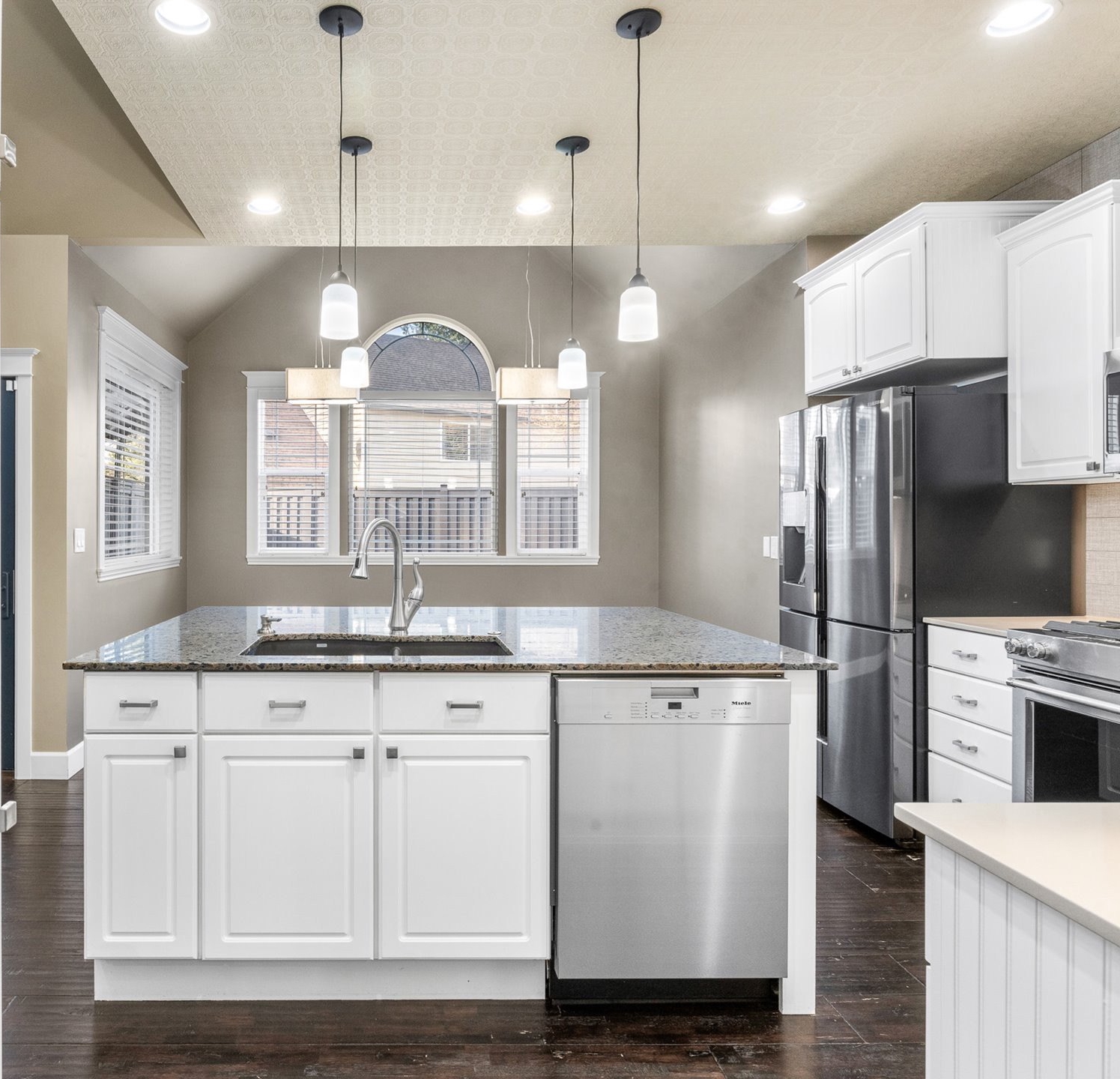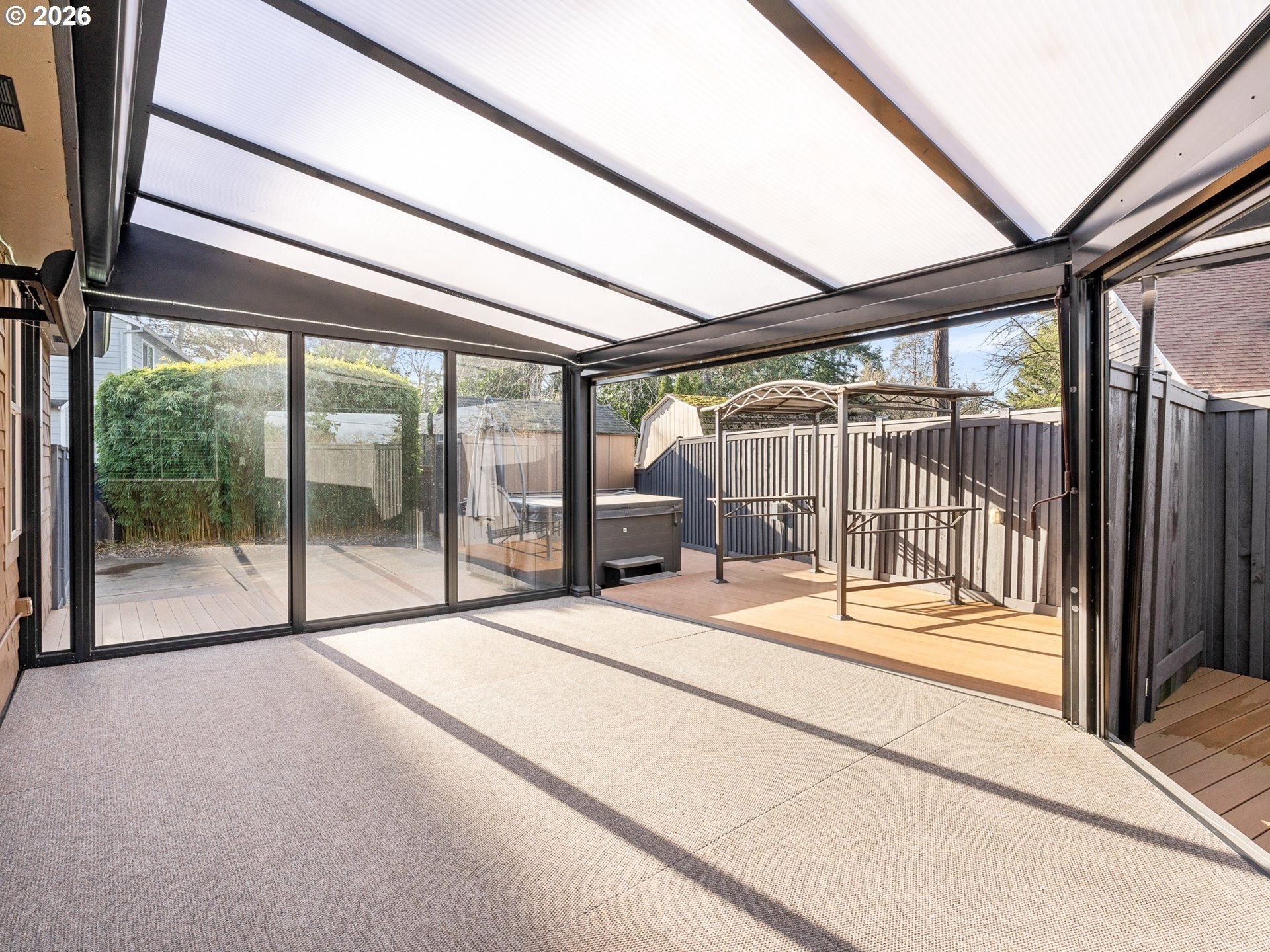 Hello from NE Going Street! I'm a meticulously maintained Storybook English-inspired home, set quietly back from the street and accessed by a private drive, offering privacy on a generous 10,000 square foot lot. With 2,764 square feet across two levels, I support long-term living, work-from-home needs, and flexible lifestyles. A highly desirable feature, I offer a true primary suite on the main level for single-level living if desired. This retreat includes a fully tiled walk-in shower, walk-in closet, and nearby half bath. A centrally located full laundry room with built-in cabinetry adds everyday convenience. My kitchen features stainless steel appliances, a gas range, generous cabinetry, and a large island with eat bar, complemented by both a casual dining nook and a separate formal dining area. Toward the back of the home, the family room opens with high vaulted ceilings for a true great room feel, anchored by a gas fireplace and enhanced by an integrated sound system, ideal for everyday living and entertaining. Upstairs are three additional bedrooms and two full bathrooms, offering flexibility for guests, home offices, or hobbies. I've been refreshed with new interior paint, updated lighting, new electrical, Ecobee smart thermostat, and a recently refreshed exterior fence stain, reinforcing my move-in-ready condition. Outdoor living stands out with an expansive deck, a fully enclosed three-season patio with heater, oscillating fan, and adjustable lighting, and a three-year-old Clearwater spa included. The yard is designed for low-maintenance living with stamped concrete, composite decking, synthetic turf, and a separate storage shed. I also offer an oversized attached two-car garage with built-ins and RV parking or potential ADU space, buyer to verify. Thoughtfully updated, meticulously maintained, and intentionally priced to reflect location while delivering exceptional overall value, I'm ready to welcome you home. [Home Energy Score = 5. HES Report