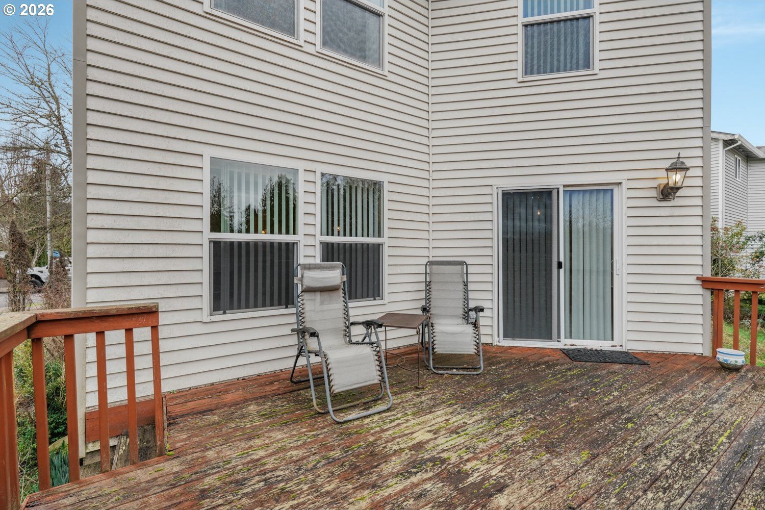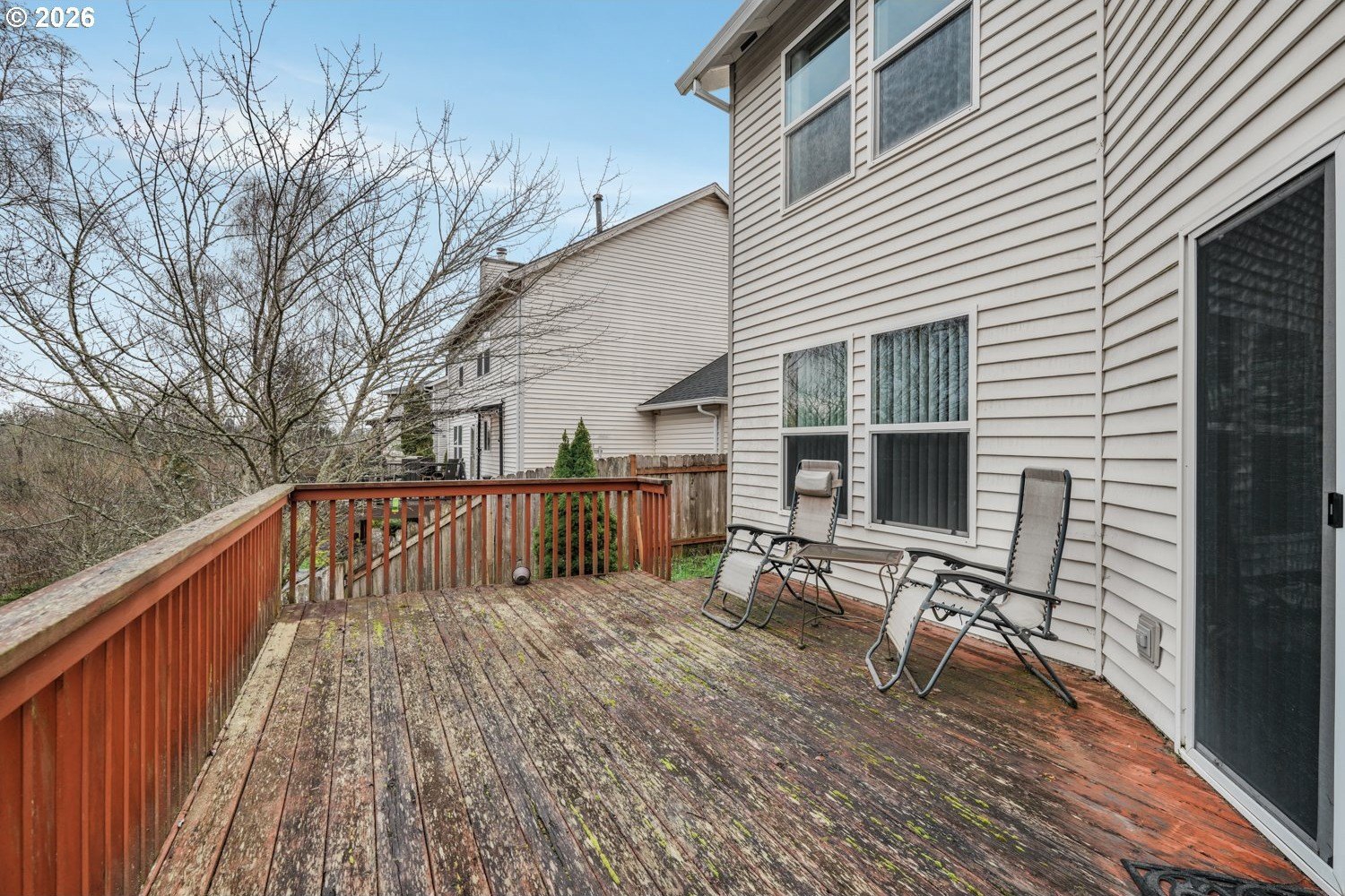 Beautifully maintained 3-bedroom, 2.5-bath traditional style home in the sought-after Preserve at Turner Creek. This bright and airy home features a spacious family room with gas fireplace and custom built-in shelving, perfect for everyday living or entertaining. The dining area opens to a deck through sliding doors, offering serene views of the surrounding preserve. The kitchen provides lots of cabinetry, generous prep space, and a walk-in pantry. Convenient half bath and laundry room located on the main level. Upstairs, enjoy a versatile bonus space ideal for a media room, home office, or hangout area. The large primary suite features a walk-in closet and private bath with dual vanities and tub/shower combo. Two additional bedrooms, including one with a walk-in closet, and a full guest bath complete the upper level.Ideally located near dining, shopping, the Reserve Vineyards & Golf Club, nature parks with walking trails, and the Sunset Esplanade Shopping District, with easy access to TV Highway. A perfect blend of comfort, functionality, and location.