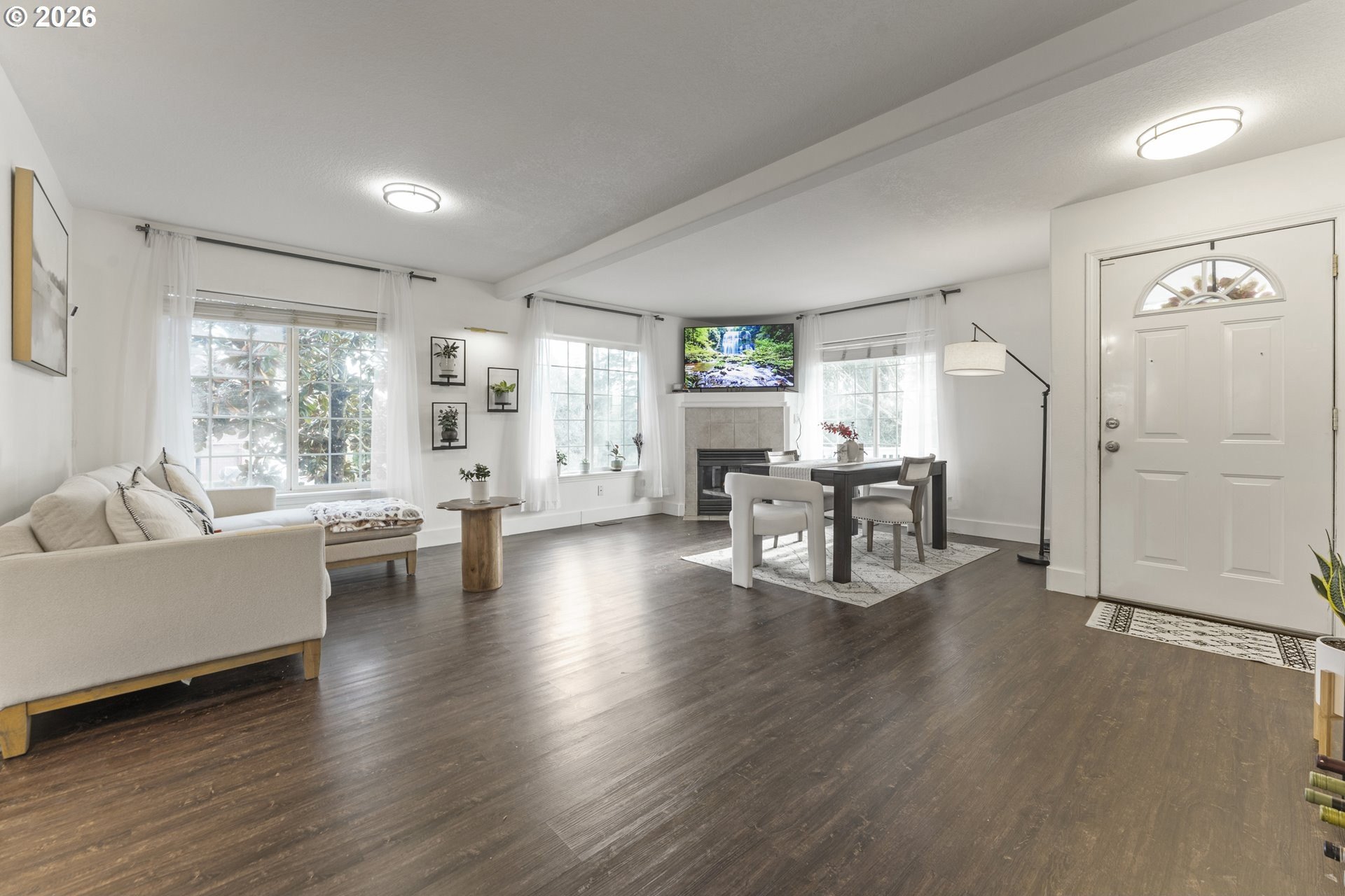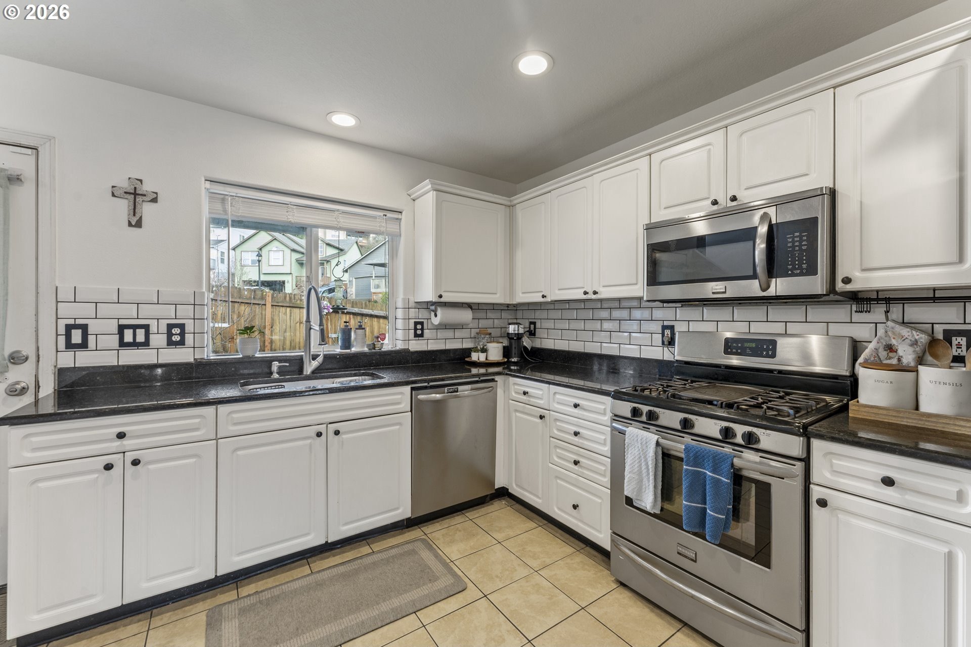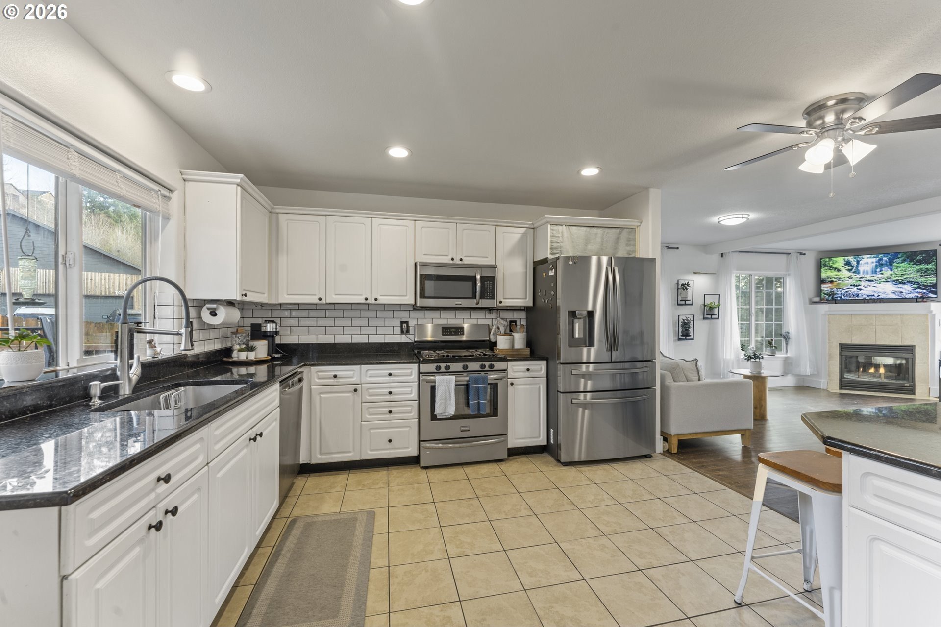 Spacious 3 bedroom, 2.5 bath home on large fenced corner lot. Being Sold "As-Is." Awesome large covered front porch, great place to hangout! Open floor plan. Living room features a gas fireplace. Luxury Vinyl Plank flooring throughout entire home (no carpet). Kitchen features lots of cabinets, granite counters w/ recessed sink, Large built-in eating area (an against the wall island) with more storage, tile floor, stainless steel appliances, gas range, subway tile backsplash, built-in microwave. Large utility room with built-in cabinets. Upgraded 6" base boards throughout. Primary bedroom has vaulted ceilings, built-in storage, walk-in closet with custom organizers, spacious remodeled bathroom with dual sinks, large mirror and tile flooring. The fenced backyard is well landscaped and has apple, persimmon, fig, cherry & southern & Jane magnolia trees. Also lemon, blackberry, 2 crepe myrtle & limelight hydrangea. Storage is ample with a large shed and storage under the front porch. 2 car garage, new AC & 96% efficient gas furnace in 2023. New roof in 2017. Close to Summerfield Park, Mt. Talbert Nature Park. Clackamas Town Center & Hwy 205 are just 3 miles away. Highly rated schools!