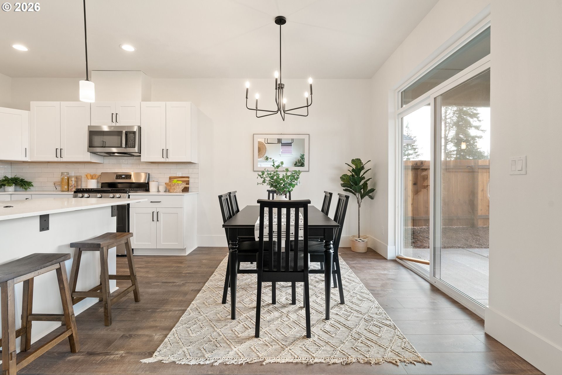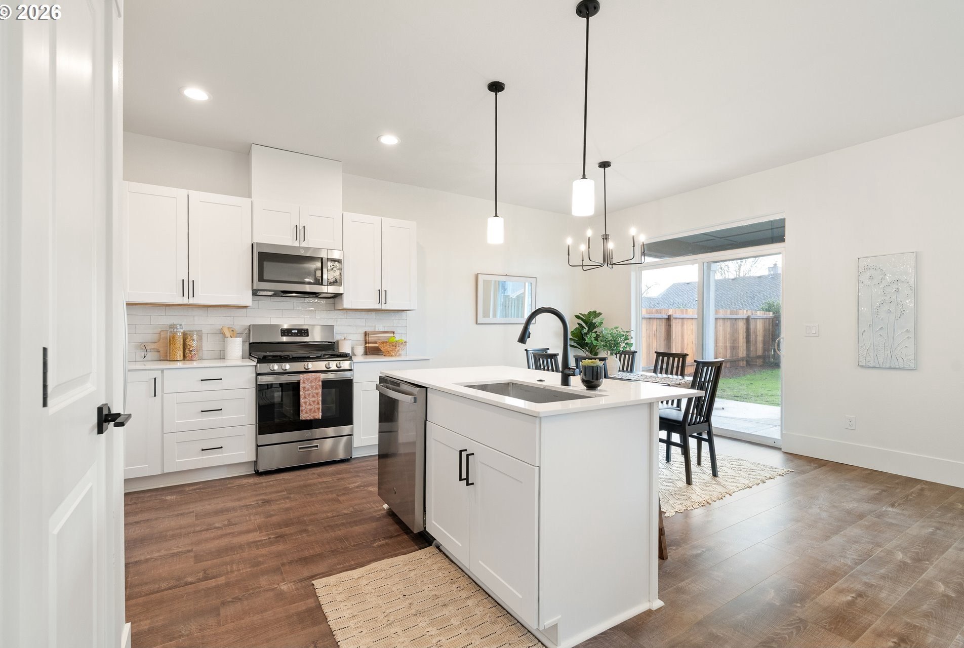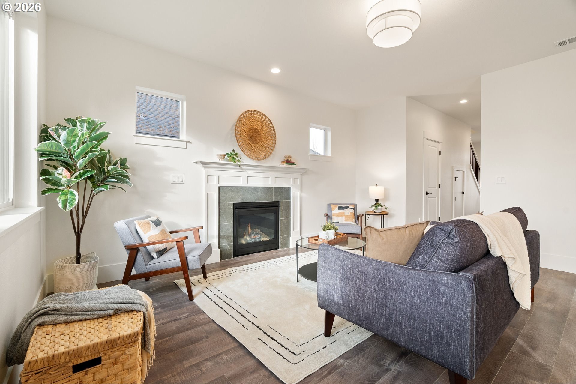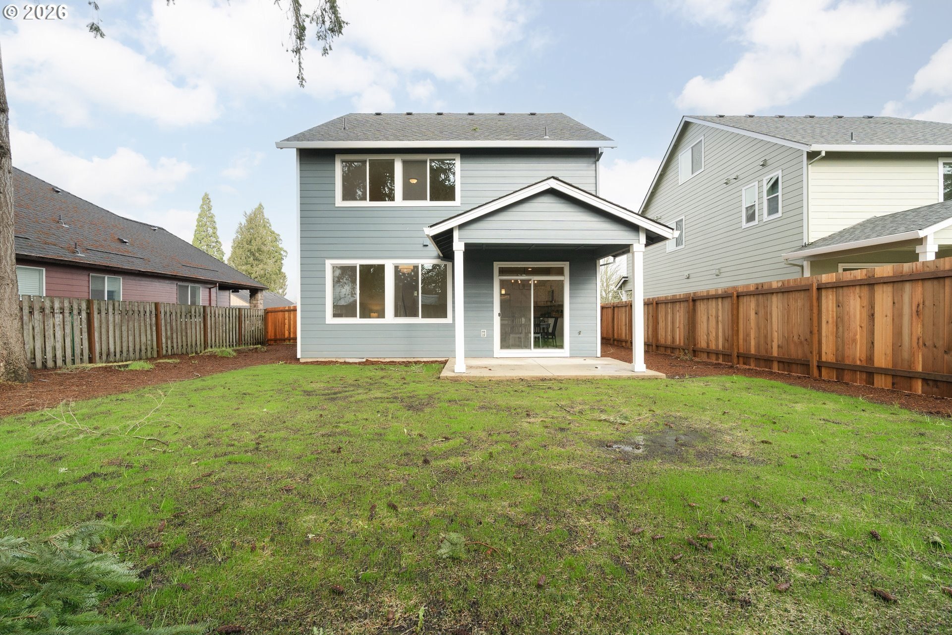 Tucked into an established North Plains neighborhood, this beautifully built home blends modern style with the rare bonus of a larger lot, more elbow room, and added privacy. The open-concept main level features a bright great room with gas fireplace, quartz countertops, tile backsplash, kitchen island, pantry, and great natural light with easy flow to the backyard.All three bedrooms sit on the second floor, including a spacious primary suite with a tiled walk-in shower, tile countertops, and a generous walk-in closet. Bathrooms feature tile floors, and the comfortable carpet carries through the bedrooms and the third-level bonus/loft - perfect for office, media, or play space.Mini-split heating/cooling, 2.5 baths, garage door opener, a two-car garage, and a fully fenced yard add convenience and livability. With larger lots, neighborhood charm, and quick freeway access, this home offers privacy, functionality, and modern style all in one.