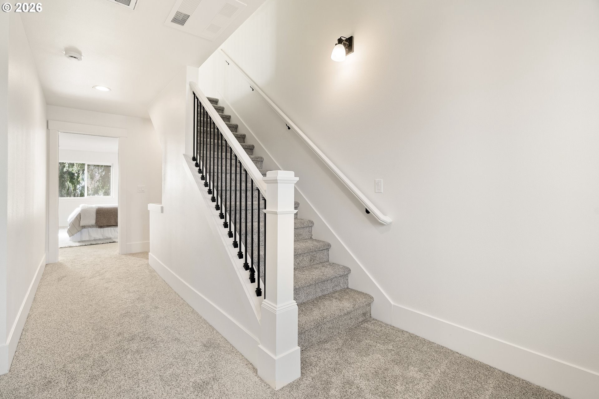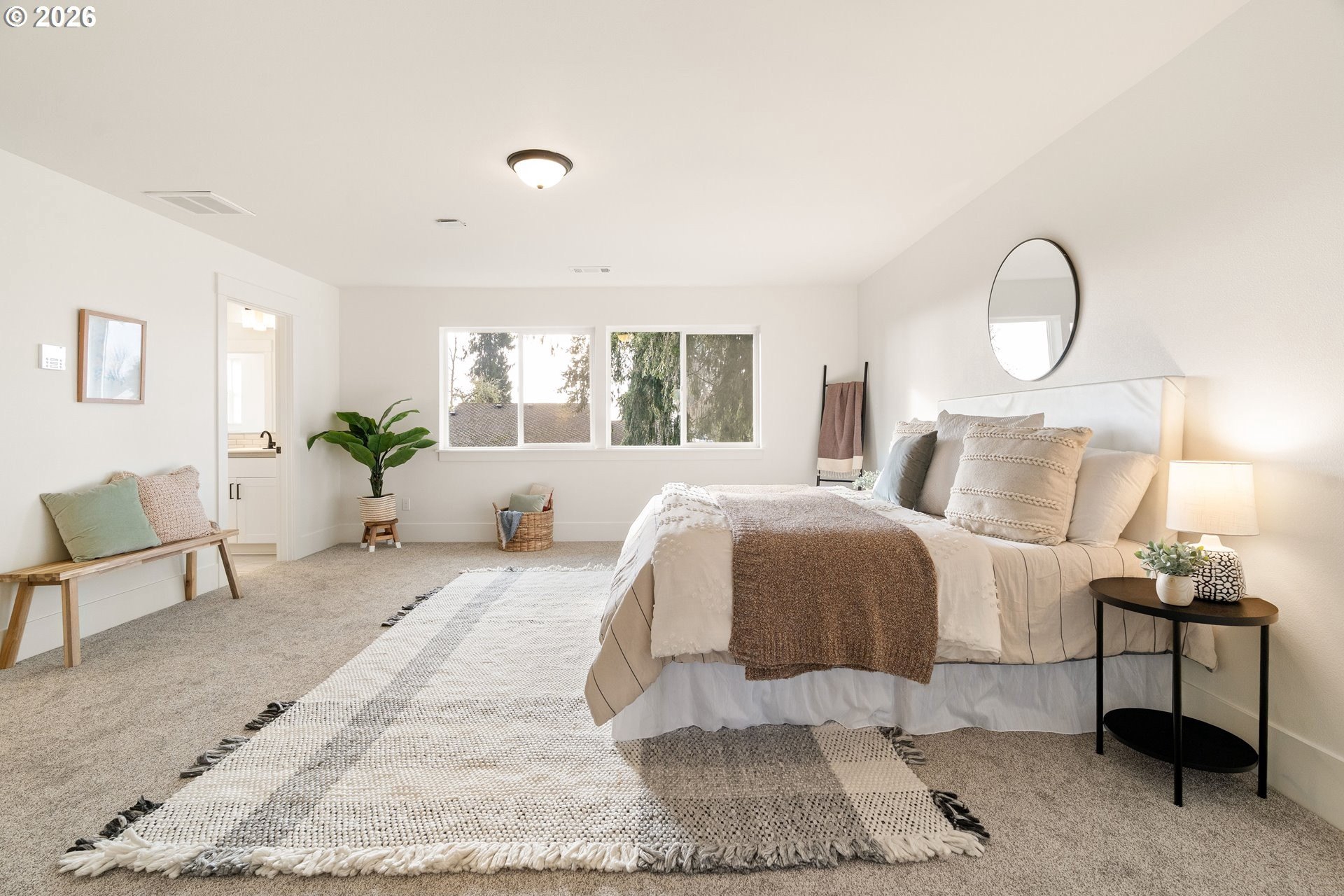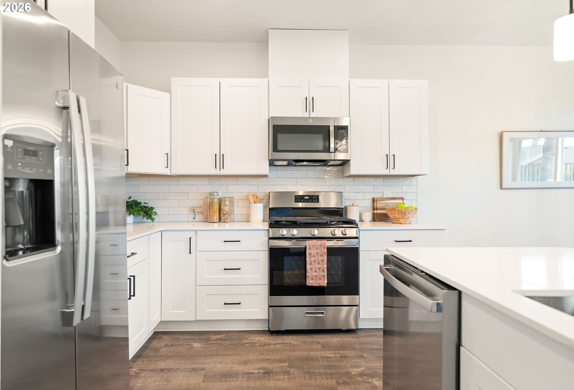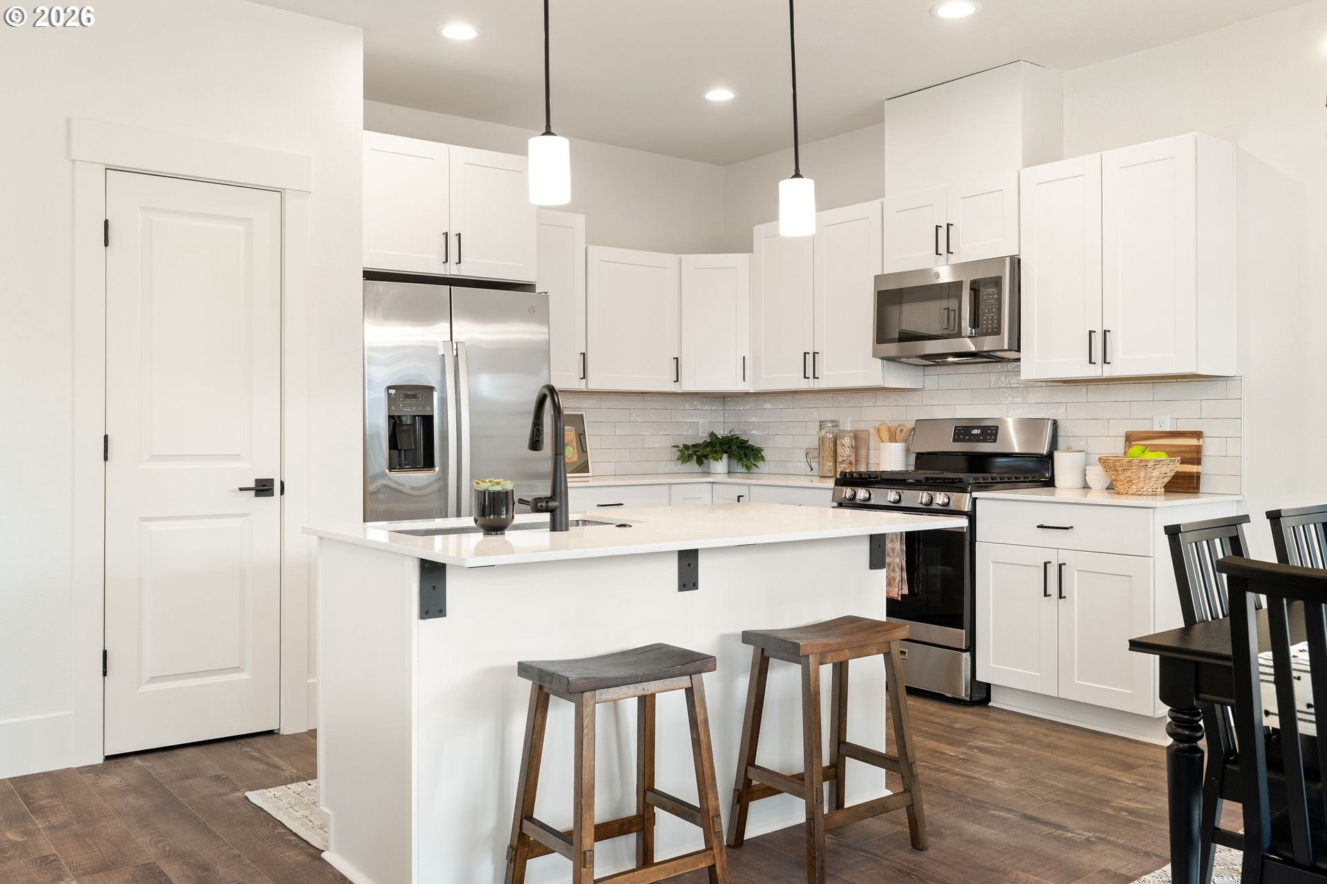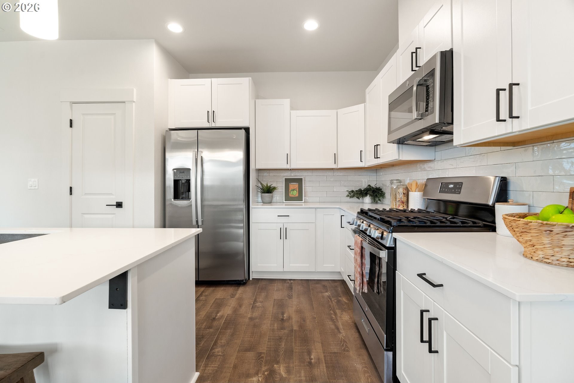 Tucked into an established North Plains neighborhood, this beautifully built home blends modern style with the rare bonus of a larger lot, more elbow room, and added privacy. The open-concept main level features a bright great room with gas fireplace, quartz countertops, tile backsplash, kitchen island, pantry, and great natural light with easy flow to the backyard.All three bedrooms sit on the second floor, including a spacious primary suite with a tiled walk-in shower, tile countertops, and a generous walk-in closet. Bathrooms feature tile floors, and the comfortable carpet carries through the bedrooms and the third-level bonus/loft - perfect for office, media, or play space.Mini-split heating/cooling, 2.5 baths, garage door opener, a two-car garage, and a fully fenced yard add convenience and livability. With larger lots, neighborhood charm, and quick freeway access, this home offers privacy, functionality, and modern style all in one.
