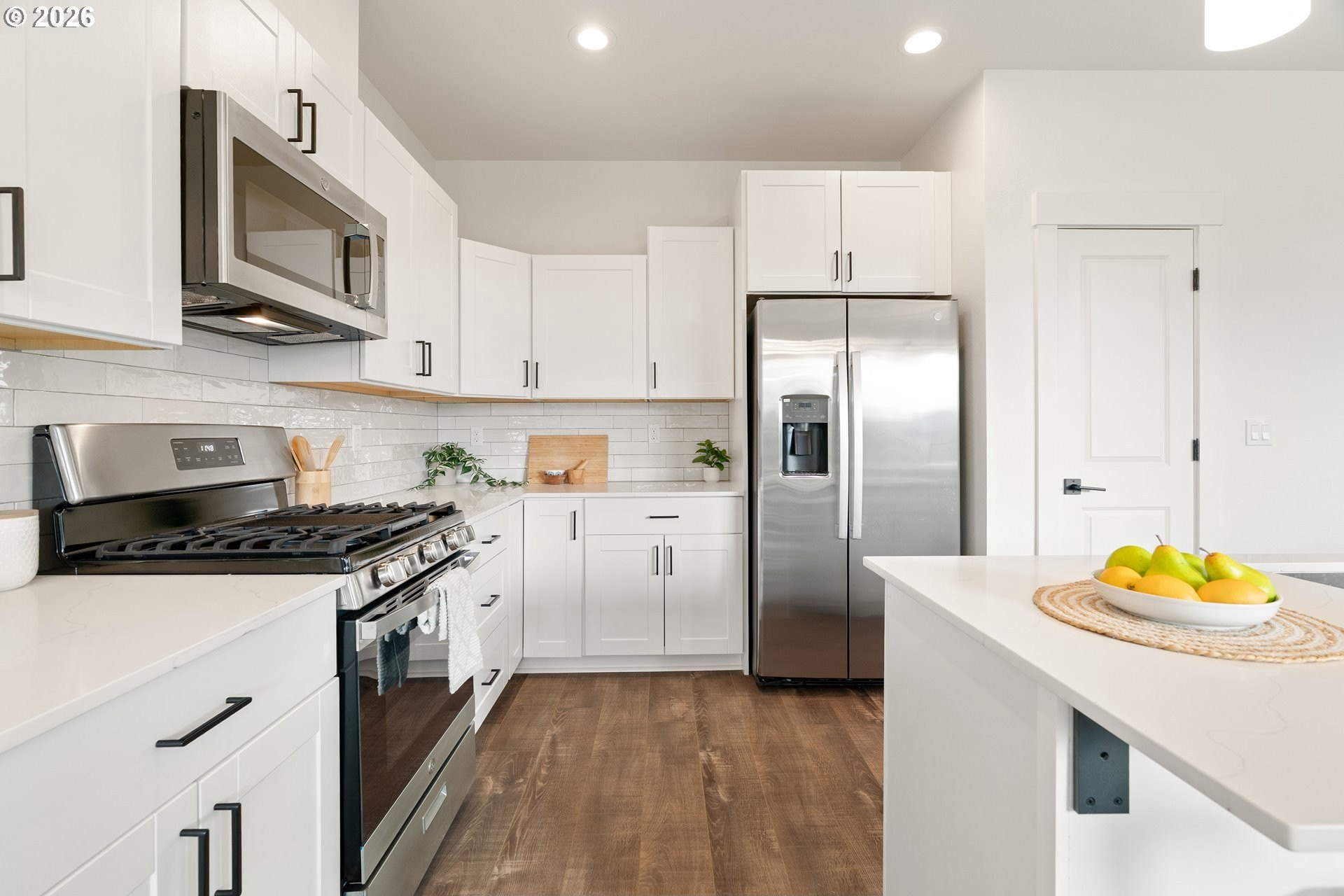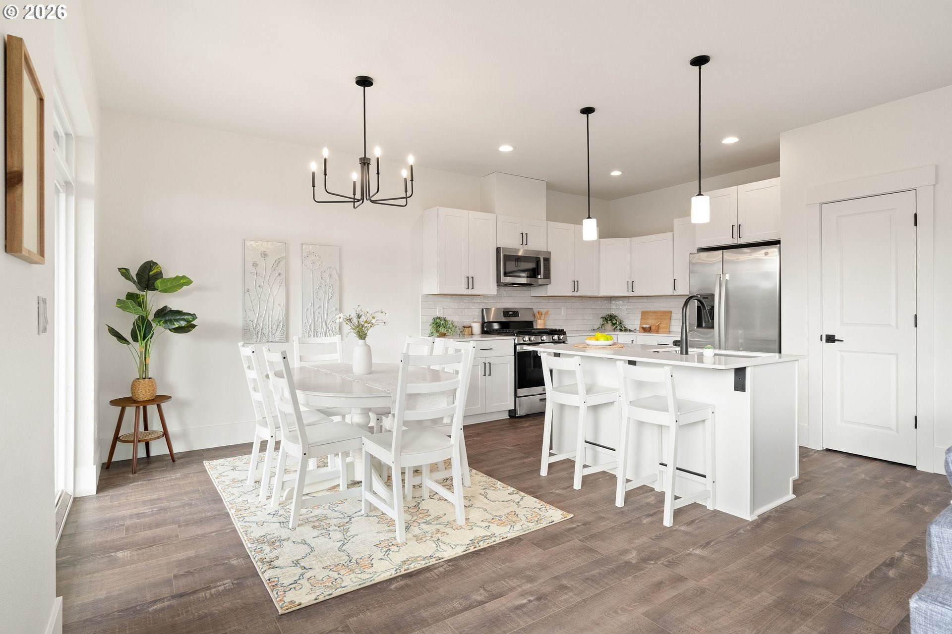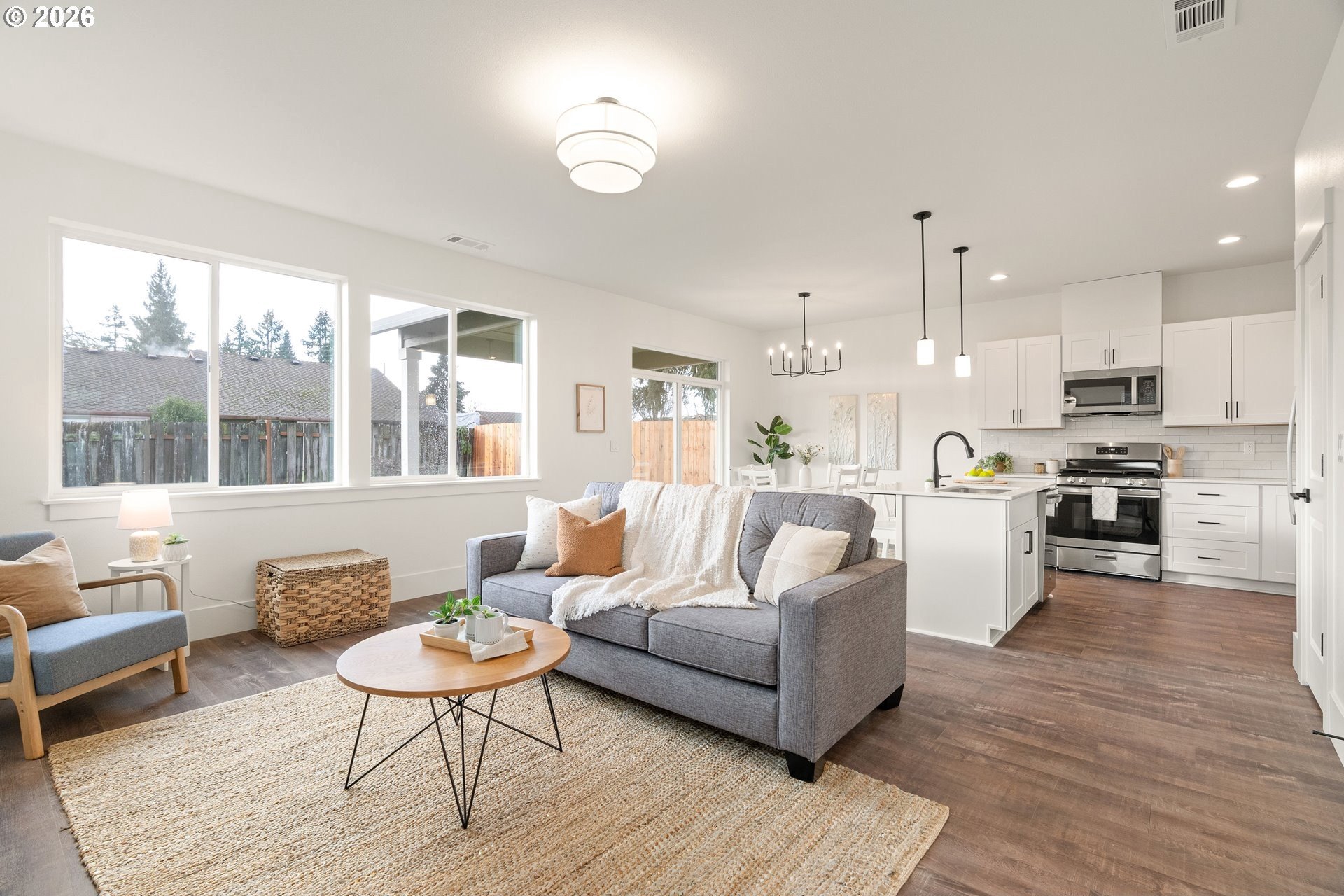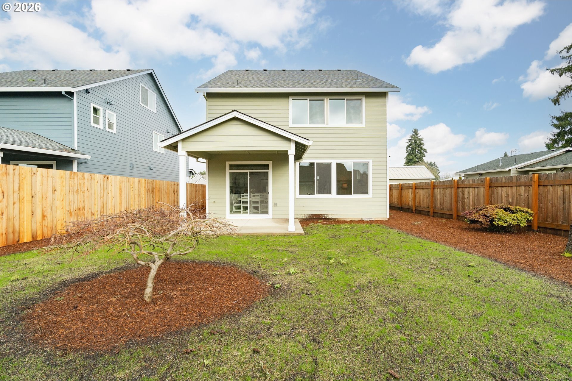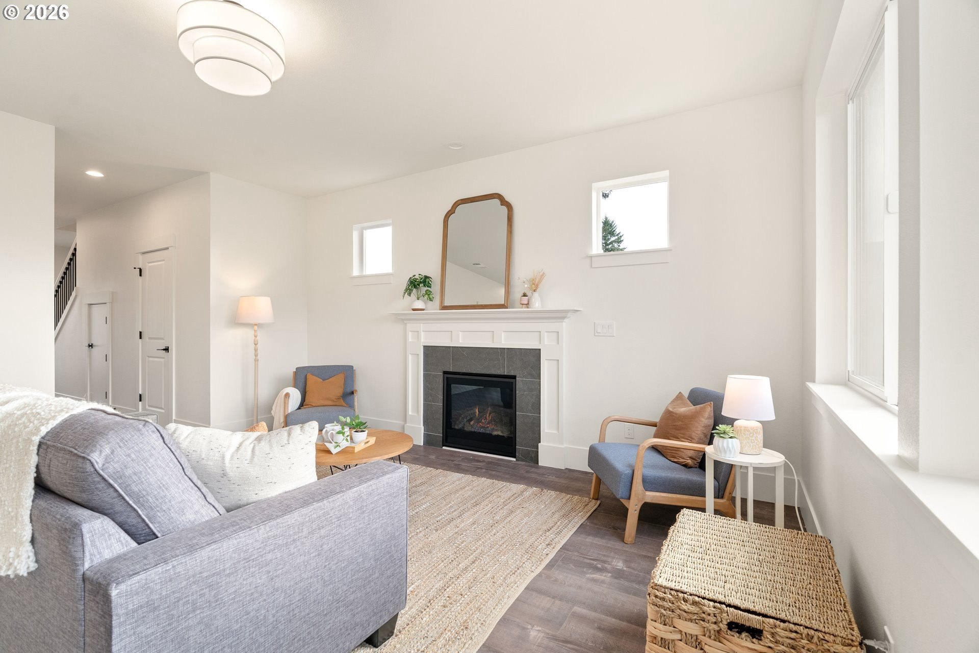 Tucked into an established North Plains neighborhood, this beautifully built home blends modern style with the rare bonus of a larger lot, more elbow room, and added privacy. The open-concept main level features a bright great room with gas fireplace, quartz countertops, tile backsplash, kitchen island, pantry, and great natural light with easy flow to the backyard.All three bedrooms sit on the second floor, including a spacious primary suite with a tiled walk-in shower, tile countertops, and a generous walk-in closet. Bathrooms feature tile floors, and the comfortable carpet carries through the bedrooms and the third-level bonus/loft - perfect for office, media, or play space.Mini-split heating/cooling, 2.5 baths, garage door opener, a two-car garage, and a fully fenced yard add convenience and livability. With larger lots, neighborhood charm, and quick freeway access, this home offers privacy, functionality, and modern style all in one.