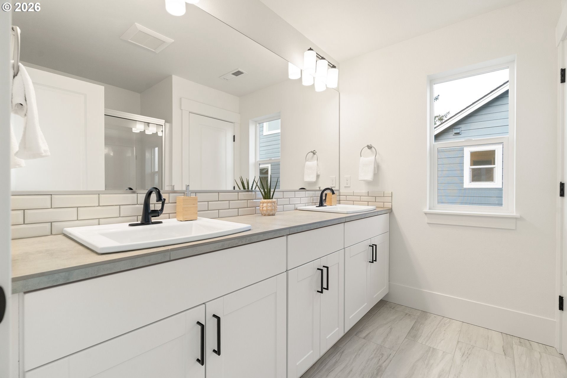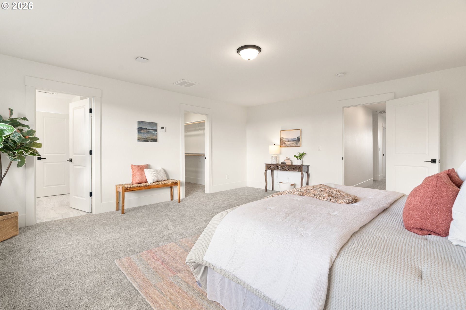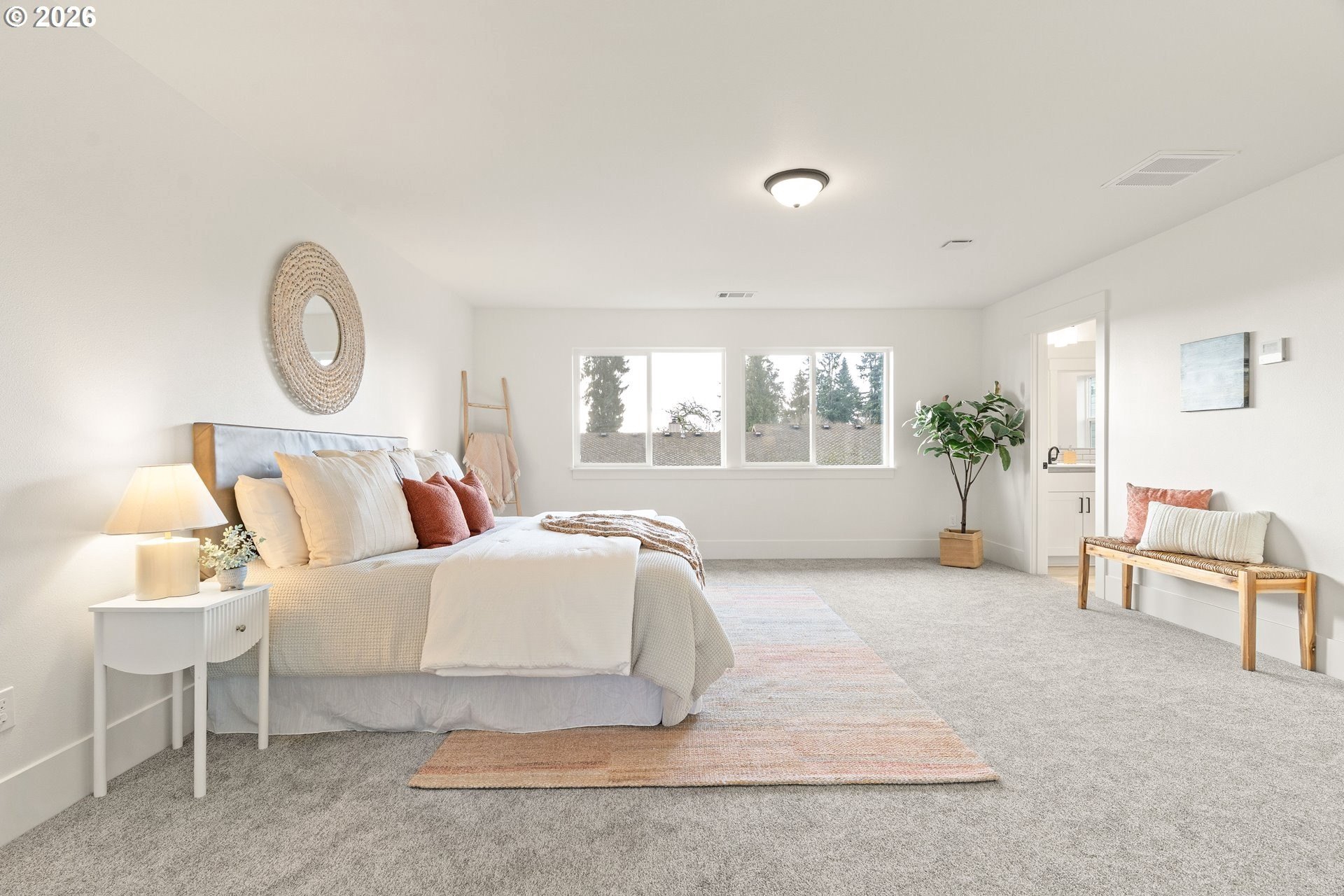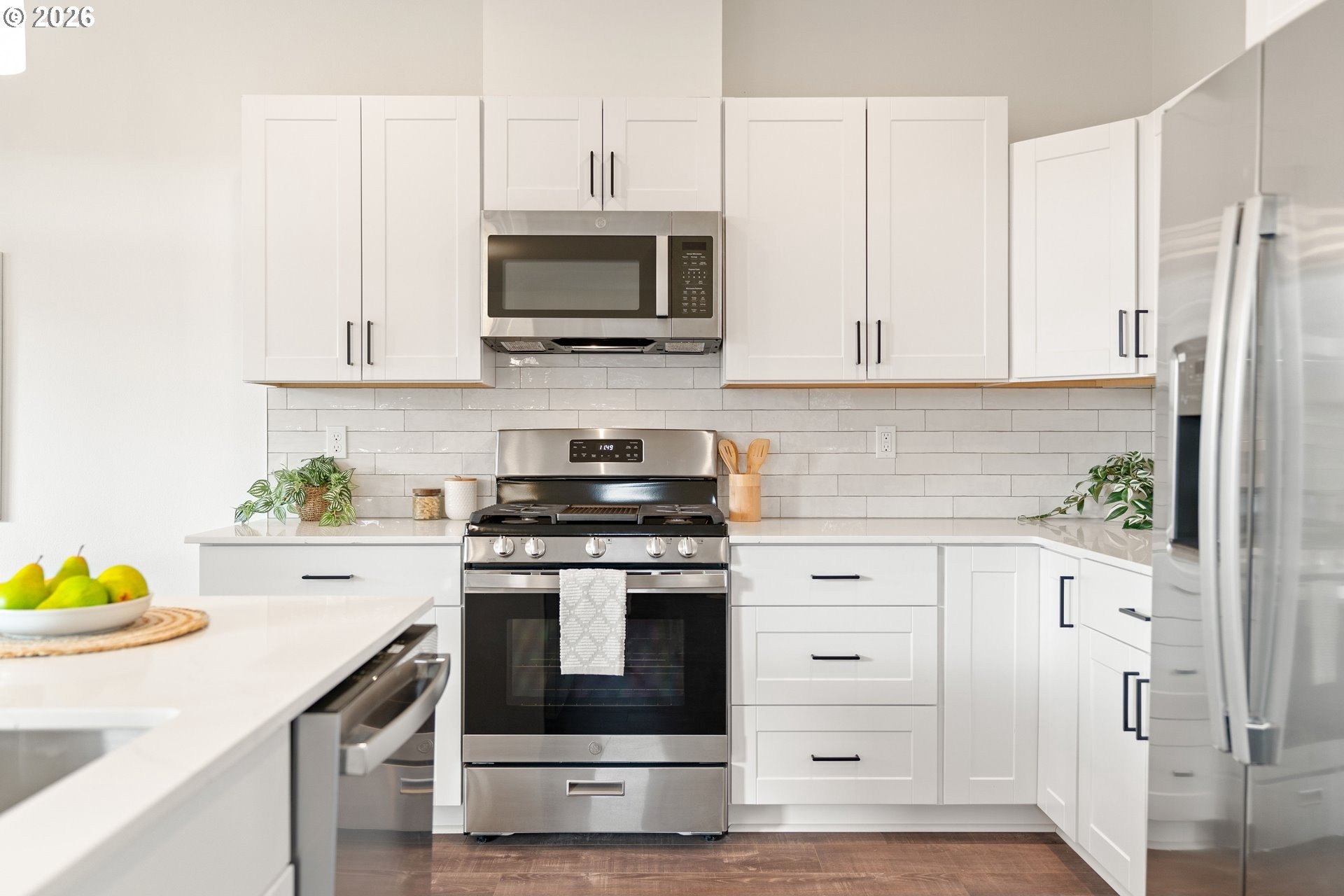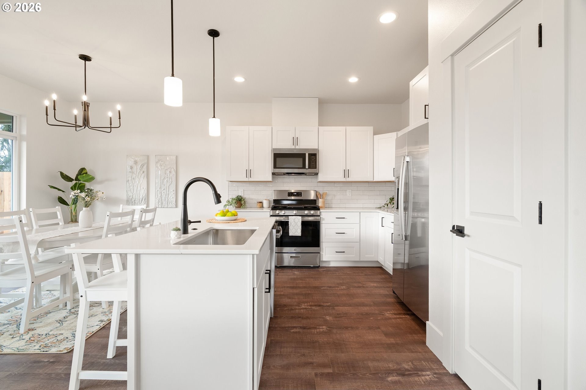 Tucked into an established North Plains neighborhood, this beautifully built home blends modern style with the rare bonus of a larger lot, more elbow room, and added privacy. The open-concept main level features a bright great room with gas fireplace, quartz countertops, tile backsplash, kitchen island, pantry, and great natural light with easy flow to the backyard.All three bedrooms sit on the second floor, including a spacious primary suite with a tiled walk-in shower, tile countertops, and a generous walk-in closet. Bathrooms feature tile floors, and the comfortable carpet carries through the bedrooms and the third-level bonus/loft - perfect for office, media, or play space.Mini-split heating/cooling, 2.5 baths, garage door opener, a two-car garage, and a fully fenced yard add convenience and livability. With larger lots, neighborhood charm, and quick freeway access, this home offers privacy, functionality, and modern style all in one.