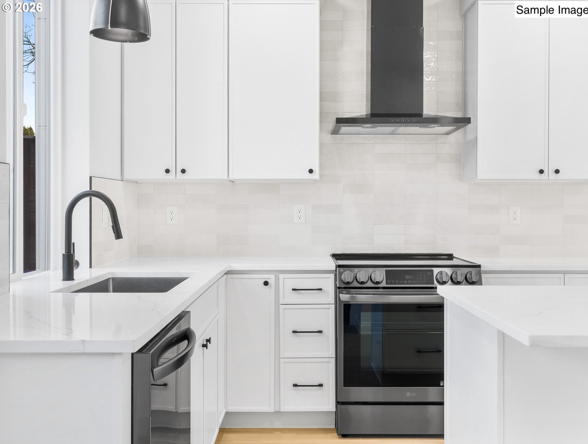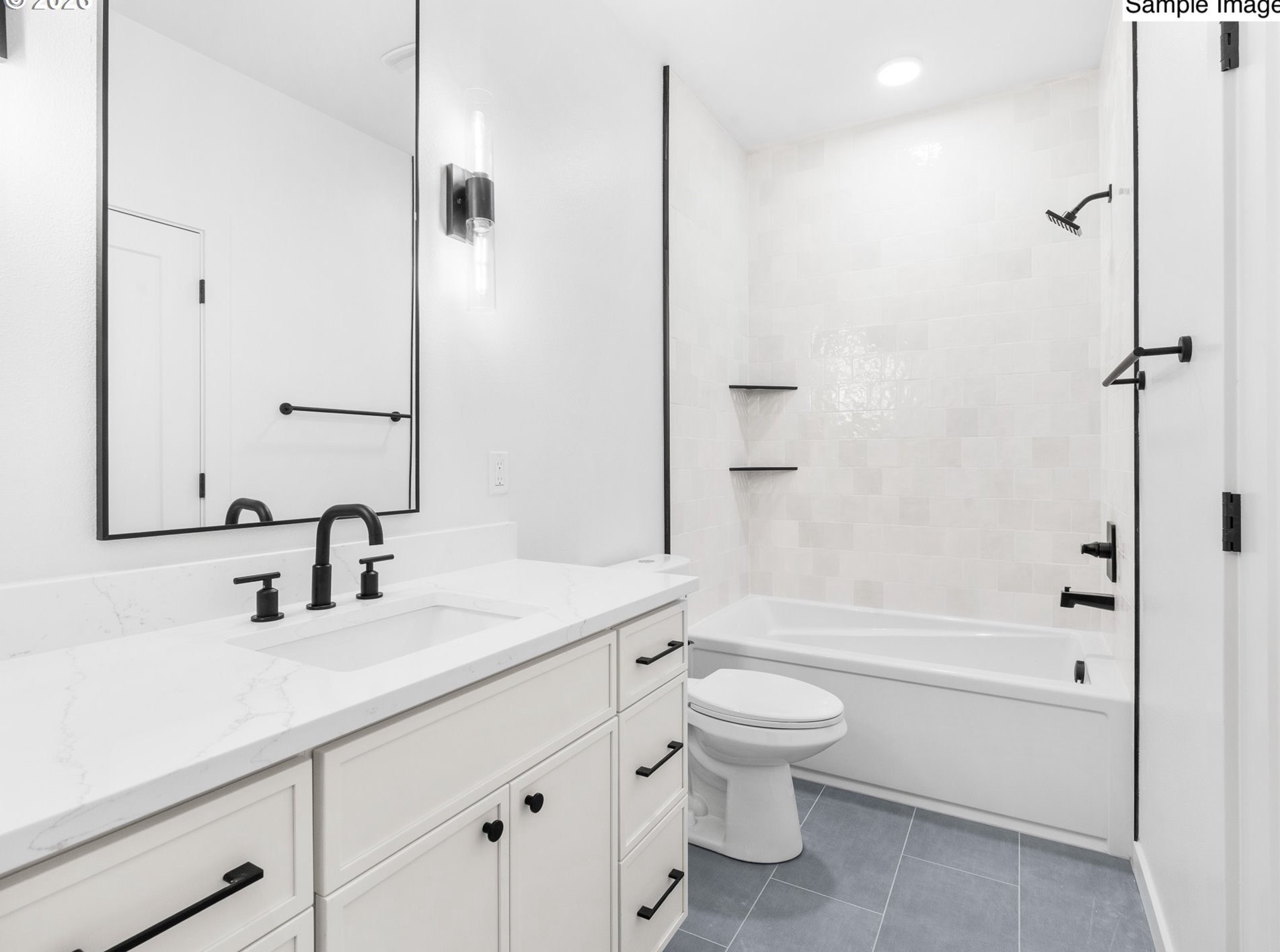 Hello! I'm a thoughtfully crafted new-construction home offering 972 square feet of modern living, built by a respected local boutique builder as part of an intimate four-home community. Unlike many nearby new builds, I'm not a condo and I have no HOA, giving you true fee-simple ownership and independence. On my main level, I welcome you with high ceilings and abundant natural light flowing through an open great room designed for everyday living and entertaining. My kitchen sits at the heart of the space, featuring custom cabinetry, a generous island with eat bar, new stainless steel appliances, and a stylish tile backsplash. Just off the kitchen, I offer a private, fenced patio, perfect for outdoor dining, relaxing, or gardening. A convenient half bathroom completes my main floor. Upstairs, I'm designed with comfort and privacy in mind. I feature two bedrooms, paired with two full ensuite bathrooms, offering flexibility for a variety of living arrangements. My laundry room is conveniently located at the top of the stairs, providing easy access to each bedroom and simplifying daily routines. I'm proudly located in Portland's beloved Woodstock neighborhood, where local favorites are just moments away. Enjoy dining at nearby spots like Woodstock Fish & Chips, Otto's Sausage Kitchen, The Heist, and Taqueria Lindo Michoacan, or grab coffee at neighborhood staples such as Red E Cafe, Woodstock Coffee, and Keeper Coffee Co. Outdoor enthusiasts will appreciate close proximity to parks, green spaces, and tree-lined streets that make Woodstock such a sought-after place to call home. My list price reflects eligibility for Portland Housing Bureau's System Development Charge (SDC) Exemption, an initiative supporting affordable homeownership across the City of Portland. Buyer eligibility and program requirements apply. If you're not familiar with this opportunity, contact my people; they're experts and are happy to guide you through the process.