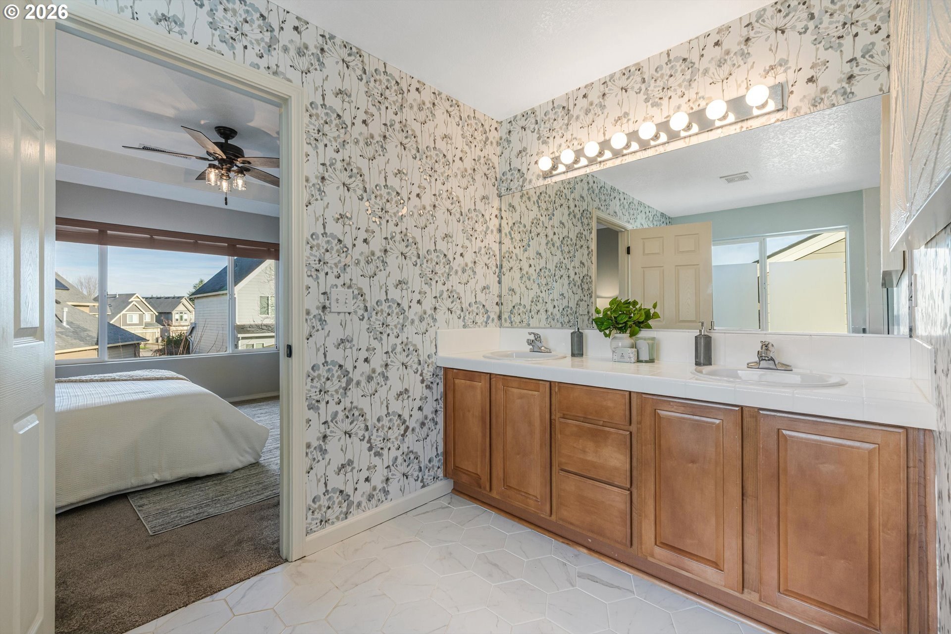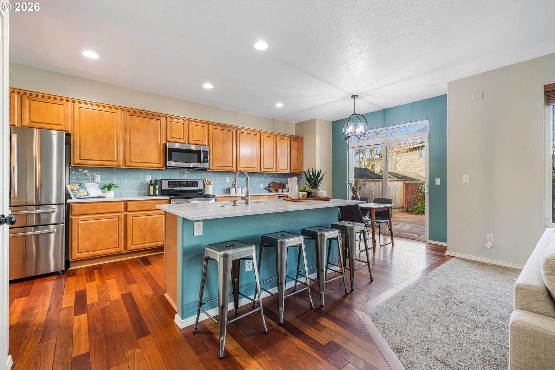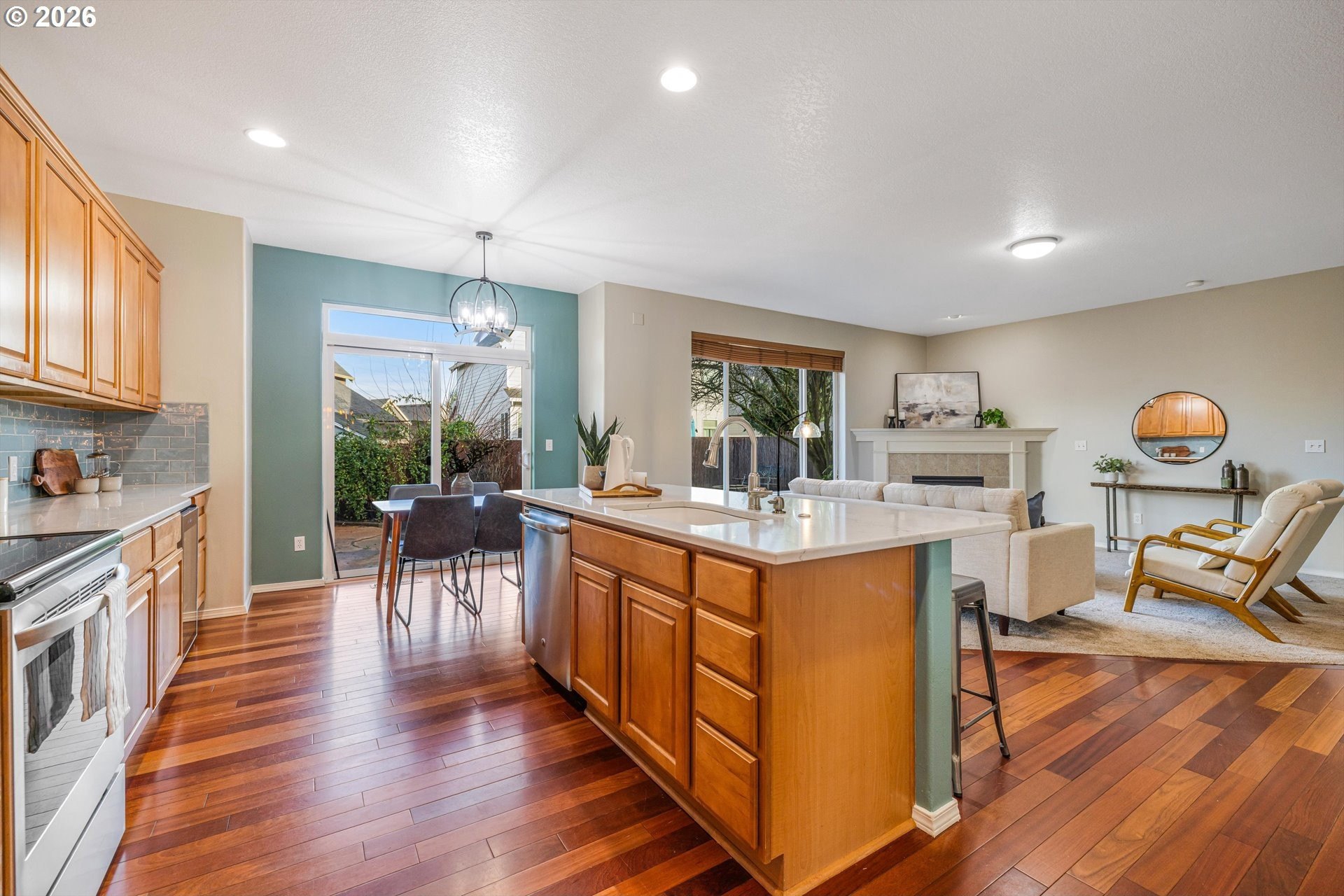 Welcome home to this beautifully updated residence in a highly desirable Sherwood neighborhood! Offering over 2,300 square feet of thoughtfully designed living space, this home features stunning hardwood floors and a functional floor plan ideal for today's lifestyle. The main level includes a versatile bedroom that can easily serve as a home office or guest space. The kitchen is well-appointed with updated quartz countertops and stainless steel appliances, opening to comfortable living and dining areas perfect for everyday living and entertaining.Upstairs, the spacious primary suite is a true retreat with a tastefully updated ensuite bath featuring double sinks, a relaxing garden tub, and a walk-in tile shower. Additional updates include new carpet and fresh interior paint throughout. Step outside to a private backyard designed for entertaining, offering the perfect space to relax or gather with friends. This move-in-ready home combines comfort, style, and location...don't miss this exceptional opportunity!