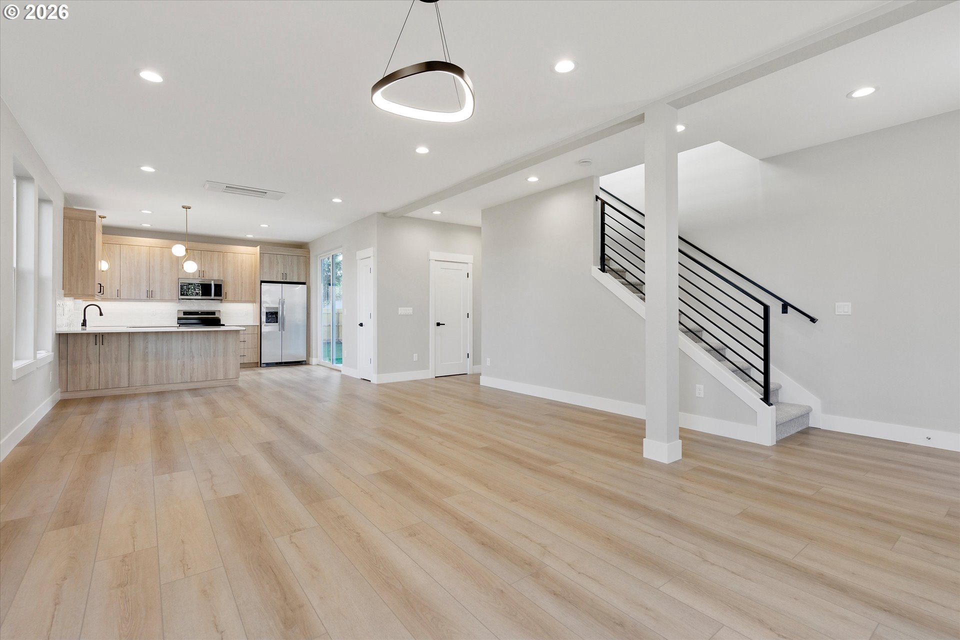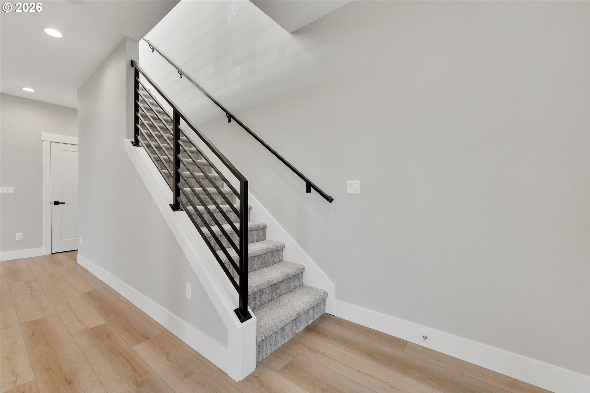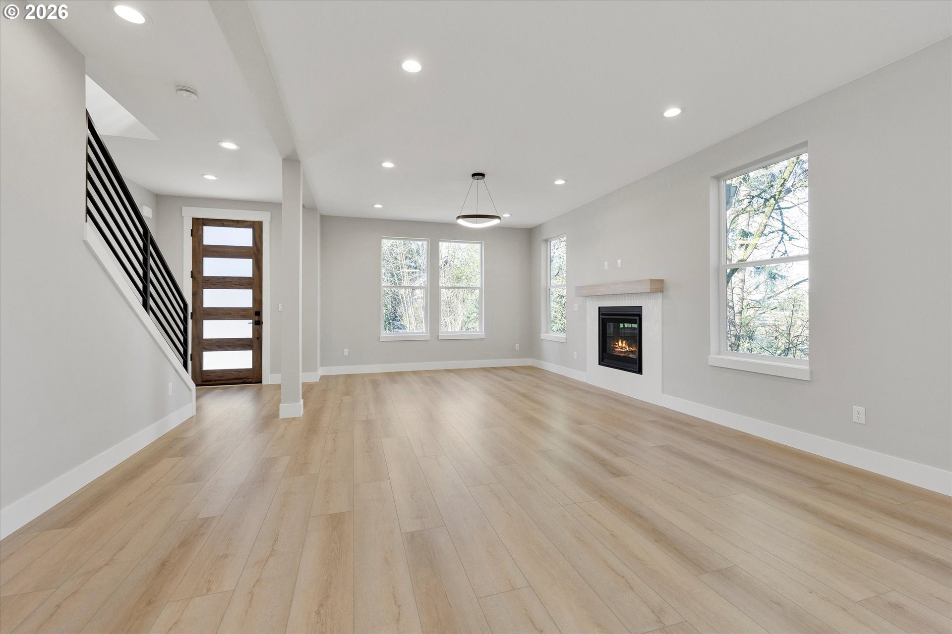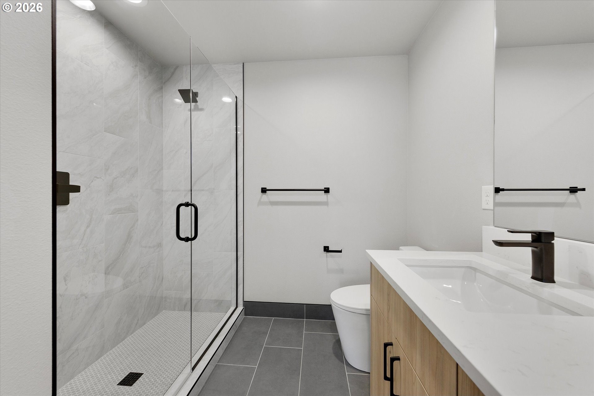 Discover this stunning new construction home set on an expansive 9,000+ sq. ft. lot, offering exceptional privacy and a tranquil, green-buffered setting. From the moment you step inside, an abundance of windows fills the home with natural light and frames serene outdoor views, seamlessly blending indoor and outdoor living. Thoughtful design and meticulous craftsmanship are evident throughout. The open-concept main level effortlessly connects the bright great room with a cozy fireplace, the formal dining area, and the beautifully appointed kitchen-perfect for both entertaining and everyday living. An oversized sliding door extends the living space to a generous covered patio with a BBQ gas hook up, and backyard ideal for relaxing or hosting gatherings. The kitchen features custom cabinetry with under-mount cabinet lighting , quartz countertops, a full suite of stainless steel appliances including refrigerator, and a pantry. Durable laminate flooring flows throughout the main floor, adding style and functionality. Ascend upstairs via a stair case with custom metal railings and step into a sunlit-high ceiling hallway leading to three spacious bedrooms. The primary suite with vaulted ceilings offers a large walk-in closet and a spa-inspired bathroom with a walk-in shower, dual vanity, and heated tile floors. Additional bathroom upstairs also feature heated tile flooring for year-round comfort. Practical amenities enhance everyday living, including a spacious laundry room with built-ins, central heating and cooling upstairs, and a mini-split system on the main level. The oversized garage is equipped with a quiet garage door opener, remotes, and keypad. A dead-end ally behind the lot, and no neighbors peeking in from every direction! Ideally located just minutes from downtown Vancouver, this home provides easy access to shopping, dining, entertainment, and quick freeway access makes it a commuter's dream. Builder's warranty and seller's concessions are available.