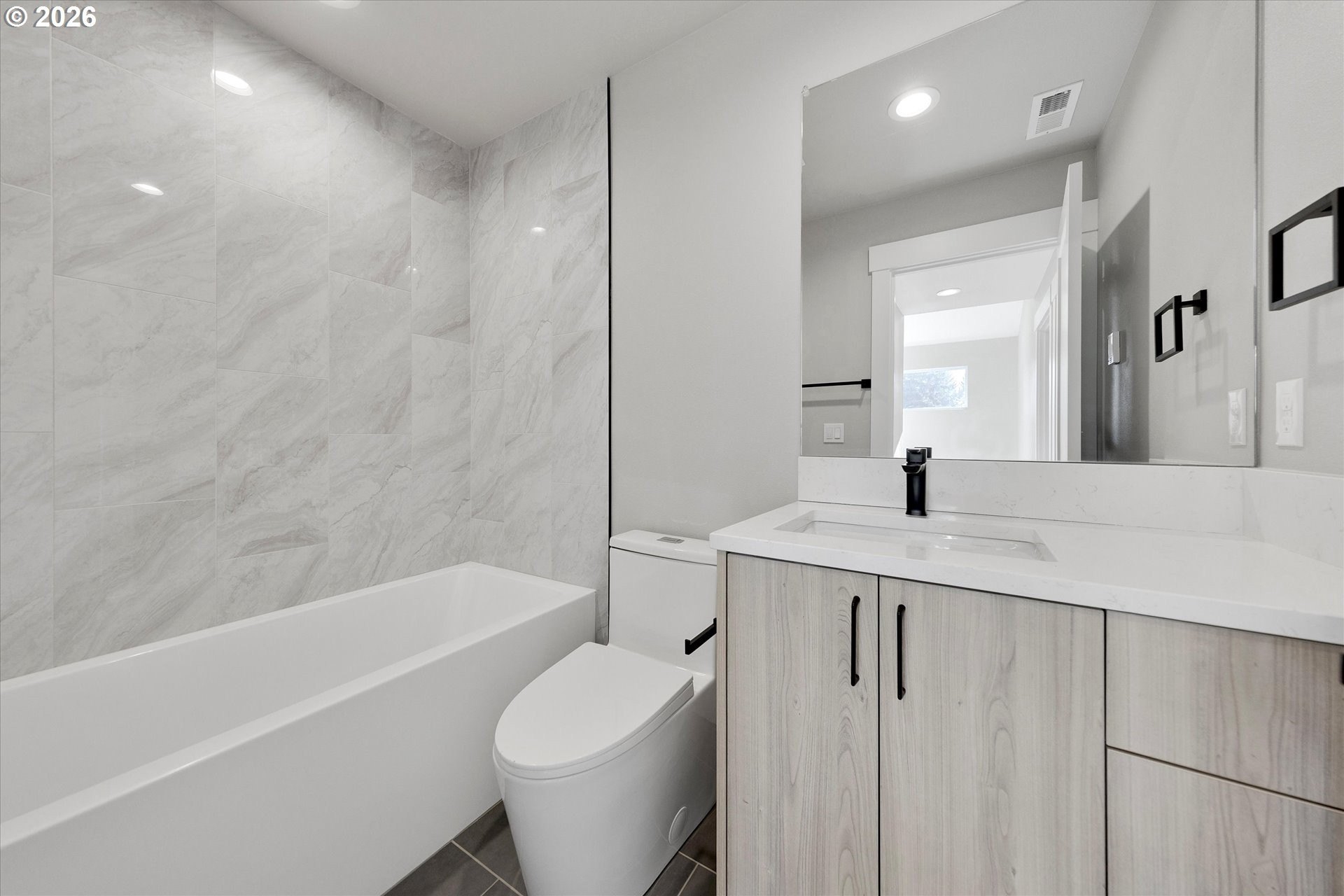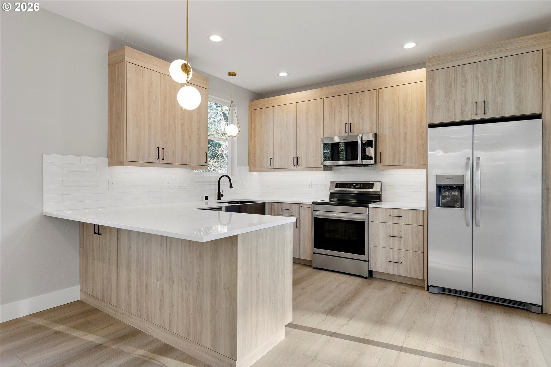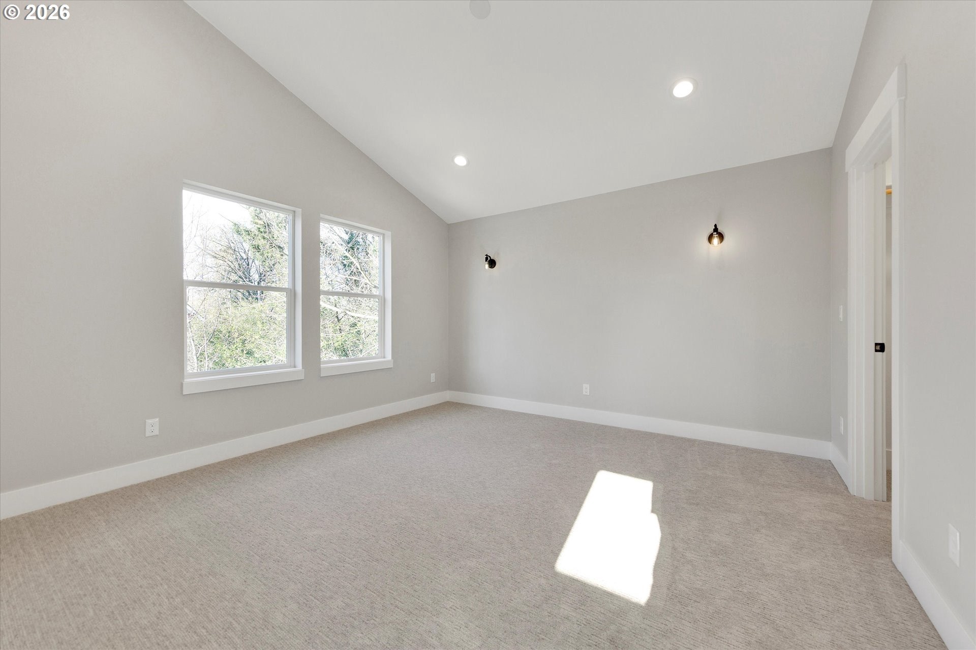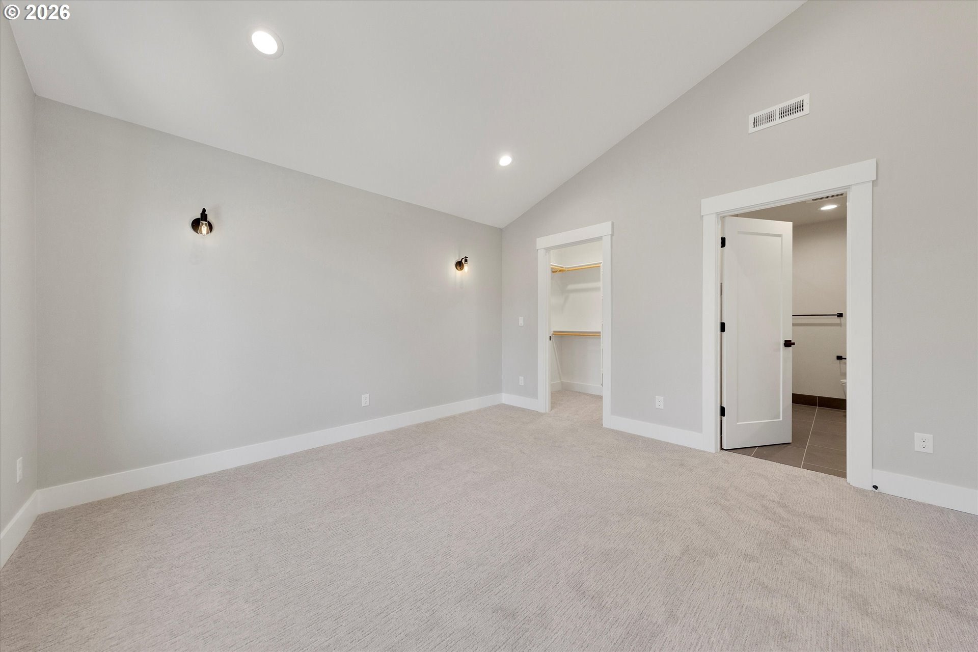 Discover this stunning new construction home set on an expansive 9,000+ sq. ft. lot, offering exceptional privacy and a tranquil, green-buffered setting. From the moment you step inside, an abundance of windows fills the home with natural light and frames serene outdoor views, seamlessly blending indoor and outdoor living. Thoughtful design and meticulous craftsmanship are evident throughout. The open-concept main level effortlessly connects the bright great room with a cozy fireplace, the formal dining area, and the beautifully appointed kitchen-perfect for both entertaining and everyday living. An oversized sliding door extends the living space to a generous covered patio with a BBQ gas hook up, and backyard ideal for relaxing or hosting gatherings. The kitchen features custom cabinetry with under-mount cabinet lighting , quartz countertops, a full suite of stainless steel appliances including refrigerator, and a pantry. Durable laminate flooring flows throughout the main floor, adding style and functionality. Ascend upstairs via a stair case with custom metal railings and step into a sunlit-high ceiling hallway leading to three spacious bedrooms. The primary suite with vaulted ceilings offers a large walk-in closet and a spa-inspired bathroom with a walk-in shower, dual vanity, and heated tile floors. Additional bathroom upstairs also feature heated tile flooring for year-round comfort. Practical amenities enhance everyday living, including a spacious laundry room with built-ins, central heating and cooling upstairs, and a mini-split system on the main level. The oversized garage is equipped with a quiet garage door opener, remotes, and keypad. A dead-end ally behind the lot, and no neighbors peeking in from every direction! Ideally located just minutes from downtown Vancouver, this home provides easy access to shopping, dining, entertainment, and quick freeway access makes it a commuter's dream. Builder's warranty and seller's concessions are available.