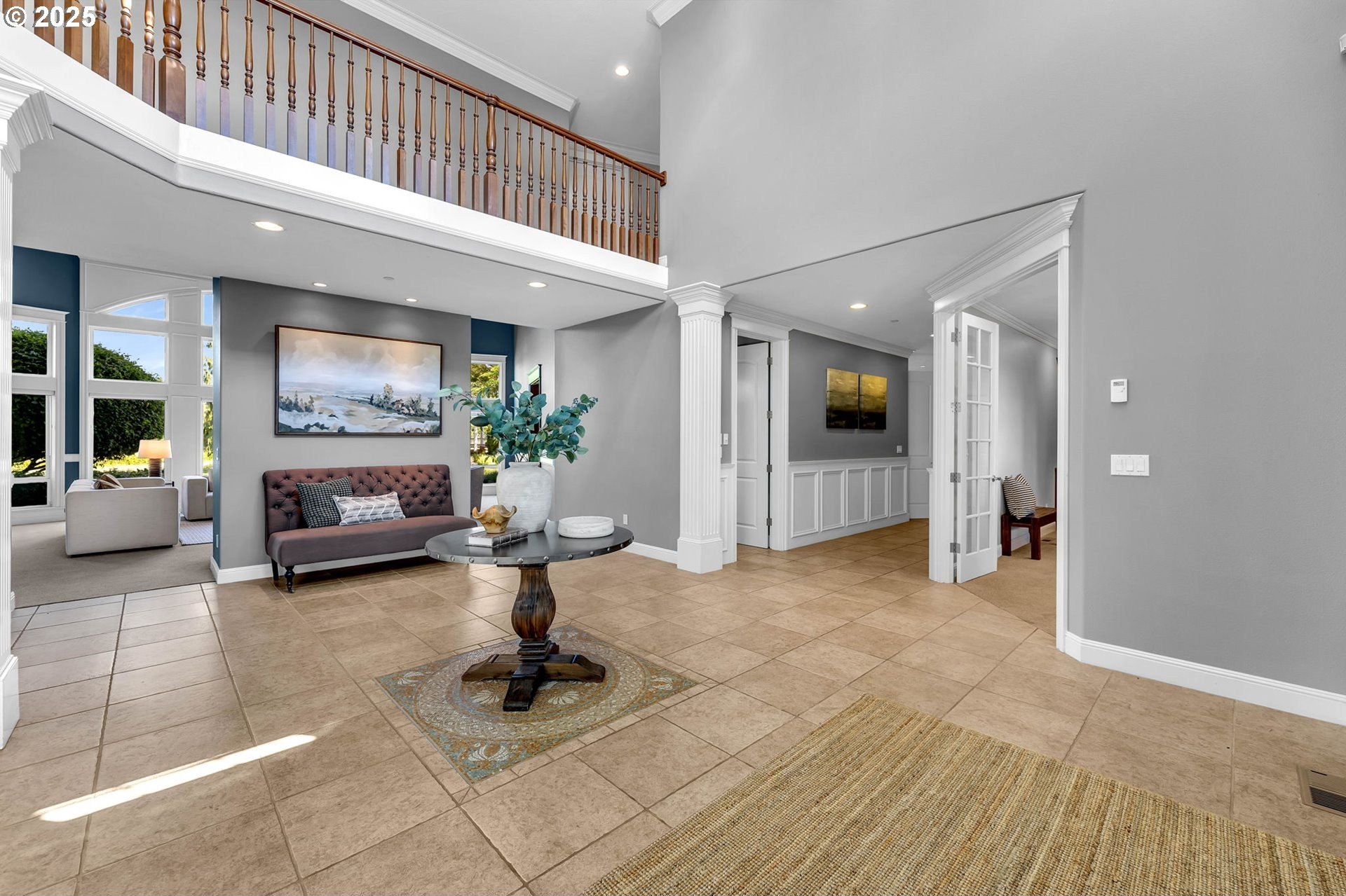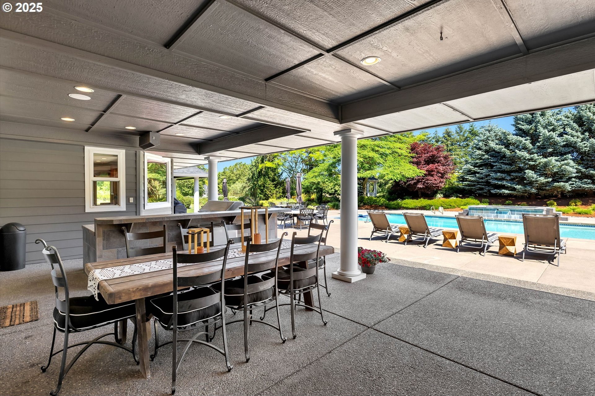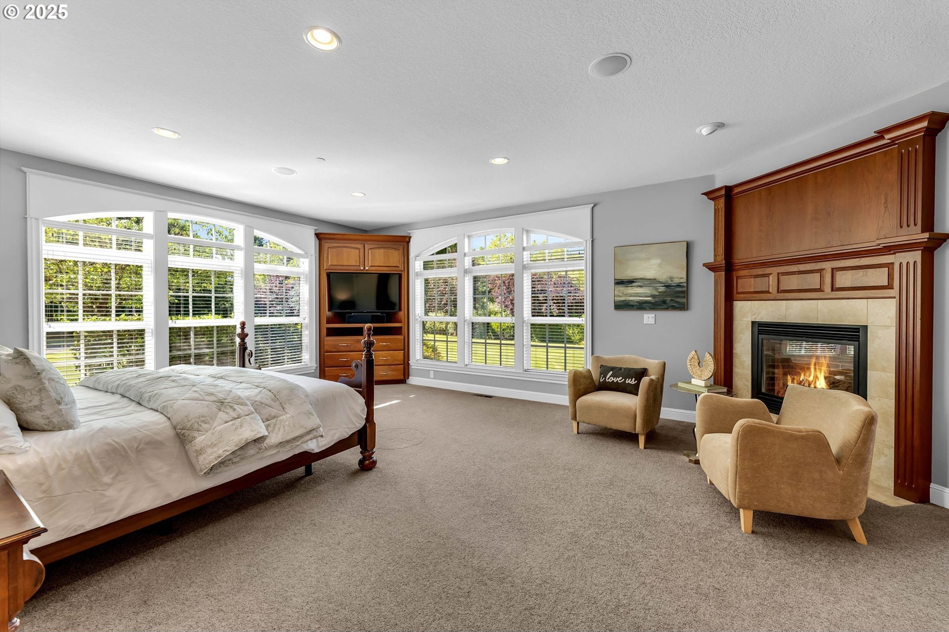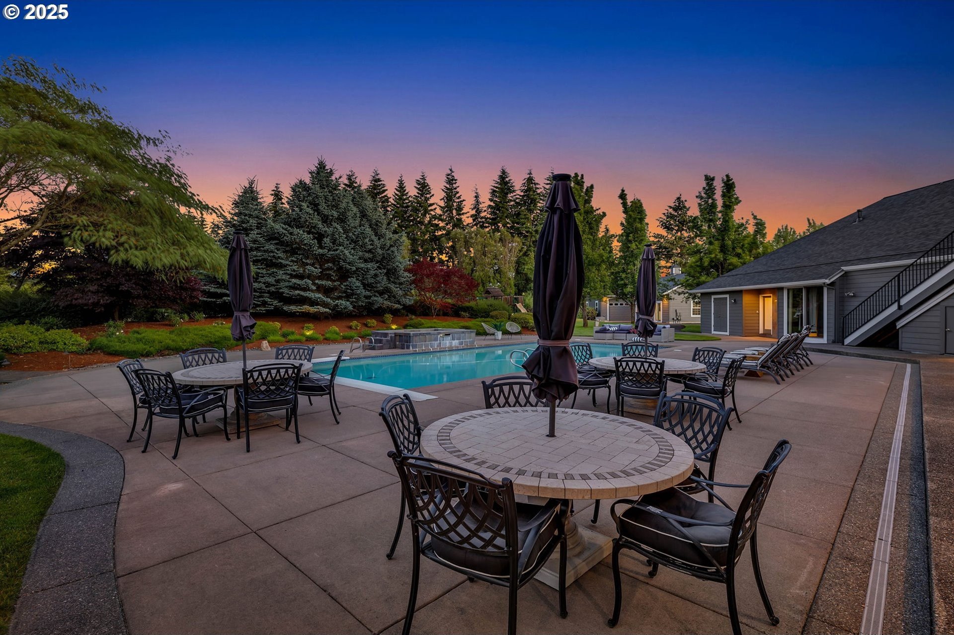 Private tree lined drive leads your guests to this stunning 6.53-acre Cape Cod Estate. A retreat designed for comfort, elegance, and unforgettable moments. Two Primary Suites! Main level suite features gas fireplace w/ cherry cabinetry surround & two spacious walk-in closets w/ built ins. Upper-level 2nd primary w/ vaulted beamed ceilings, gas fireplace, flex space w/ bayed window & spacious walk-in closet. 5 additional bedroom suites upstairs including gym/yoga room w/ balcony, spacious laundry room, storage room & back staircase. Second level guest quarters w/ separate entrance, kitchenette, vaulted bedroom, full bath & private balcony. Two story formal living w/ floor to ceiling windows, gas fireplace w/ marble surround. Main level office w/ built-in desk offering three workstations, built-in bookshelves & closet. Chef's kitchen features cherry cabinetry, 6 burner Viking range, expansive solid granite workspace & island w/ bar seating for 7, two dishwashers, built-in kitchen desk & large walk-in pantry. Gorgeous formal dining features cherry boxed beam ceiling, gas fireplace w/ cherry built-ins & French doors to covered patio. Great room w/ bay window and built-in cherry cabinetry is an entertainers dream. Double sliders open to beautiful outdoor covered entertaining w/ bar, infrared BBQ, outdoor fireplace & 1000 sf pool w/ spa. 4 zone HVAC w/ newer A/C units. New 50-year roof. Newer exterior paint. 5 car oversized garage w/ built-in cabinetry & epoxy flooring. Separate 1196 sf guest house/office features kitchenette, bedroom & full bath plus several flex spaces & one car garage.