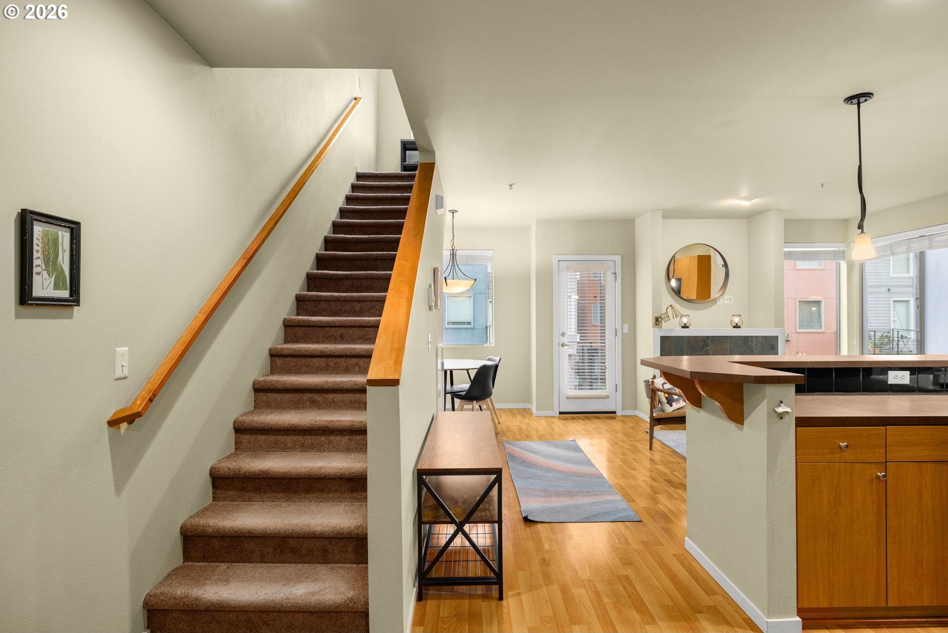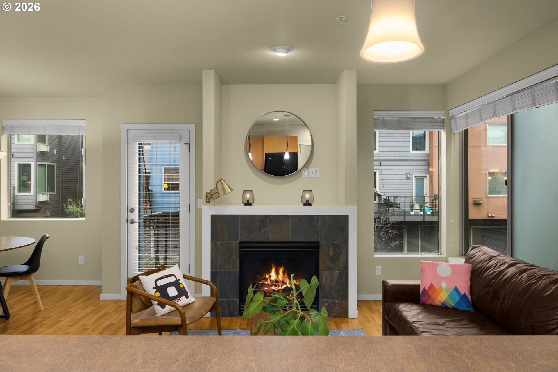 Welcome to this thoughtfully designed townhouse-style condo in the heart of St. Johns, one of North Portland's most vibrant and community-driven neighborhoods. Scoring a 10 out of 10 home energy score, this 2-bedroom, 2.5-bath home features Earth Advantage certified construction, superior energy efficiency, comfort, and long-term sustainability. The open-concept main level is filled with natural light and designed for both everyday living and entertaining. Clean lines, modern finishes, and smart use of space create a warm, contemporary feel throughout. Upstairs, two spacious bedrooms, including a primary with its own ensuite bath and walk-in closet, providing privacy and flexibility for guests, roommates, or a home office setup. Appliances are included! Enjoy the peace of mind that comes with high-performance construction, lower utility costs, and environmentally conscious design. All of this is just moments from St. Johns' local shops, restaurants, parks, and iconic Cathedral Park, with easy access to downtown Portland and beyond. A stylish, efficient home in a beloved North Portland neighborhood. This is St. Johns living at its best. [Home Energy Score = 10. HES Report