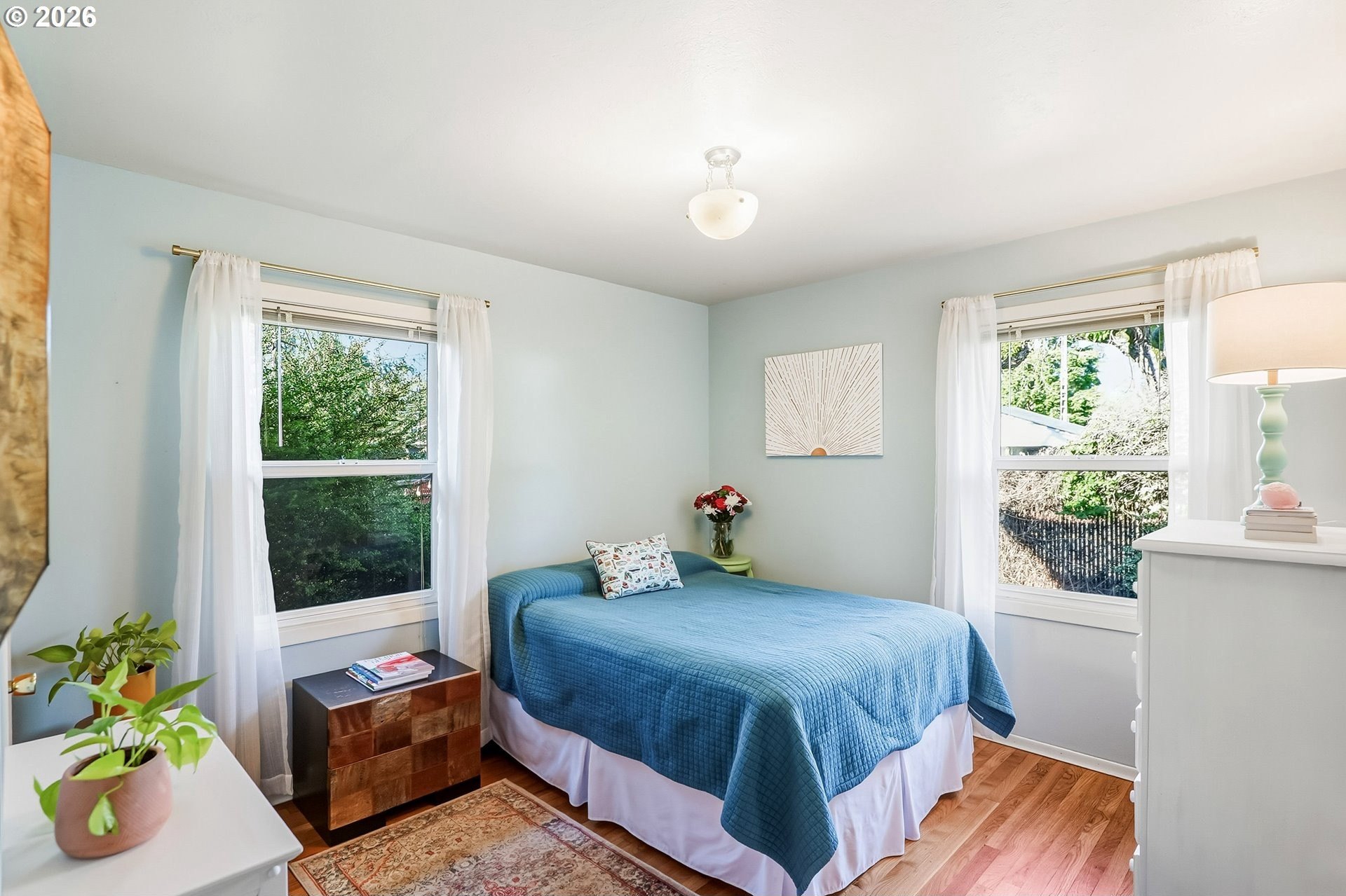 Charm and natural light abound in this delightful one-level mid-century ranch, ideally located just blocks from Downtown Milwaukie. Enjoy the best of both worlds, classic vintage character paired with a hip location near shops, coffee, and restaurants, including the newly opened Friem Brewery, plus the Farmers Market, New Seasons Market, food carts, the MAX line, and the riverfront. Providence Hospital is just blocks away, making commuting a breeze. Warm hardwood floors and a thoughtful mix of original details and tasteful updates create an inviting atmosphere. Cozy up by the delightful wood-burning fireplace with a cup of tea and your favorite book. The dining room is perfectly suited for everyday living and effortless entertaining. Vintage lighting fixtures blend beautifully with modern touches, adding personality throughout. Just off the kitchen, "The Sunny Room" with a slider to the backyard offers flexible living space and could easily be converted back to a third bedroom. Outside, the spacious, fully fenced backyard is ideal for summer BBQs, gardening, or relaxing evenings, featuring a recently added patio and planter beds. The attached garage with ample storage plus generous off-street parking add everyday convenience. Recent peace of mind updates include a new roof (2019), additional insulation (2018) and interior and exterior paint (2021). With single-level living and a sought-after location near vibrant parks, schools, shopping, entertainment, and transit, this home is rich with charm, history, and lifestyle appeal - a true Milwaukie gem and a must-see!