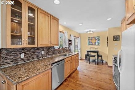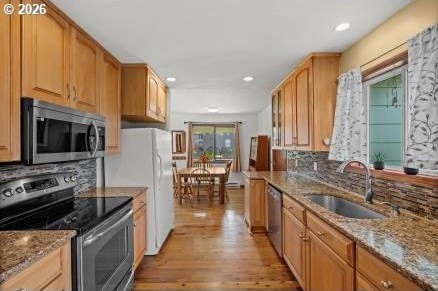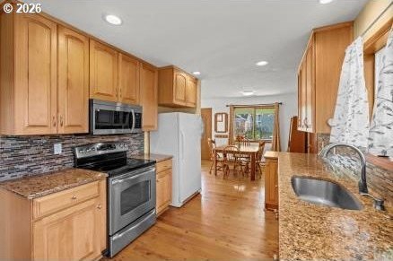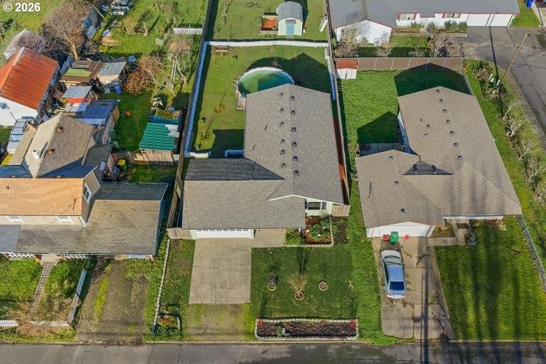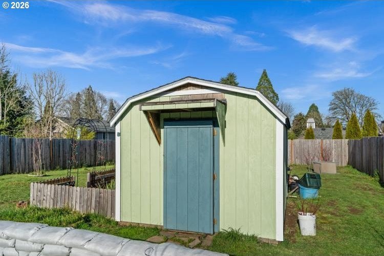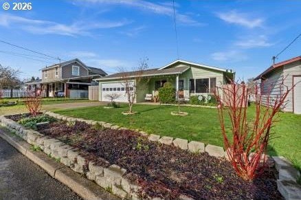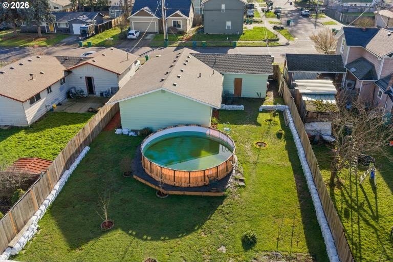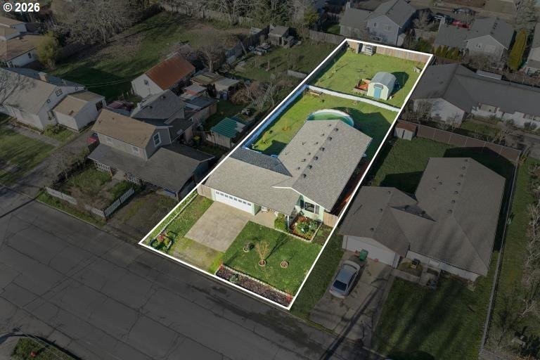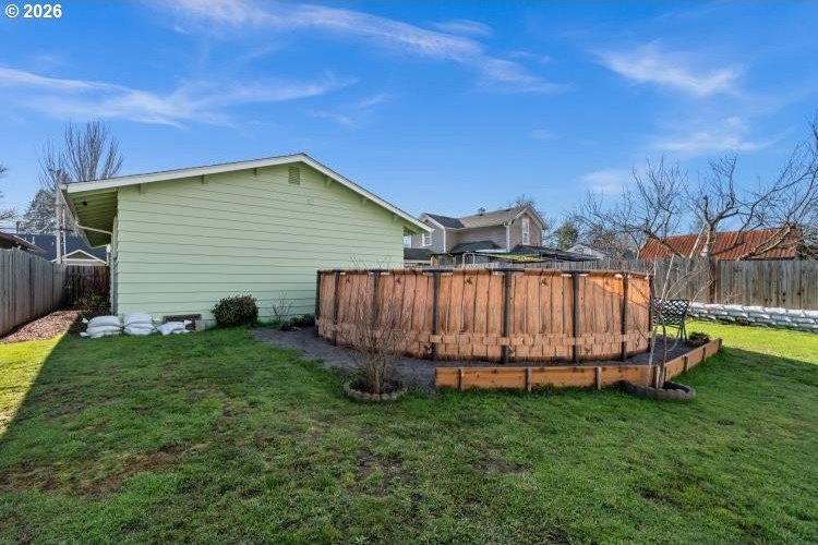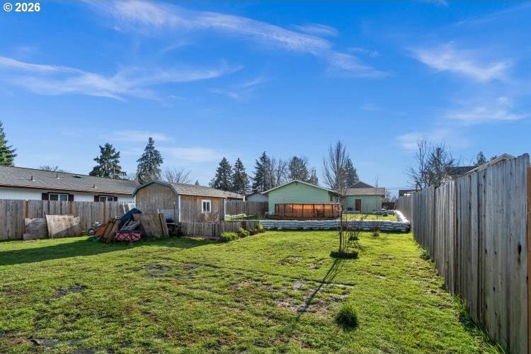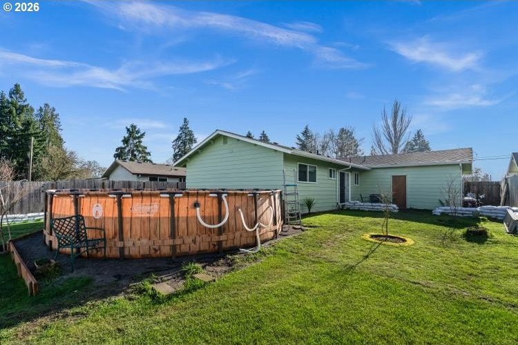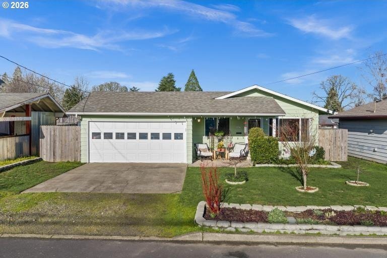Open House Saturday and Sunday 12:00-2:00pm! Darling single-level home with an expansive, beautifully landscaped backyard. This inviting property welcomes you with a wide driveway featuring vibrant flowers, and a charming covered front porch. Inside, the light-filled living room showcases gleaming hardwood floors, designer paint, and a large picture window. The cheerful dining room off the kitchen provides ample space for a farm table and hutch, complemented by another sunny window. The updated kitchen includes maple cabinetry, granite slab countertops, tile backsplash, stainless steel appliances, pantry, and a cozy dining nook with access to the patio - an ideal spot for enjoying sunshine and hosting gatherings.A hallway with two generous storage closets leads to the remodeled bathroom featuring a step-in shower with glass door, new vanity, lighted mirror, and tile flooring. The primary bedroom offers hardwood floors, a custom lighted ceiling fan, and great closet space. Two additional bedrooms are well-sized with ample storage. The oversized garage includes a convenient door to the backyard, perfect for rinsing off after gardening or outdoor play. The fully fenced backyard is a standout feature with a large tool shed, blueberry bushes, ornamental trees, and plenty of lawn for pets and play. A large above-ground pool may remain for summer fun; sandbags can be removed if the buyer prefers. Recent upgrades include a new furnace and heat pump.Located in the heart of Forest Grove, this home offers easy access to Pacific University, the Wednesday Farmers Market, local restaurants, boutiques, award-winning wineries, and nearby Hagg Lake for fishing and hiking.