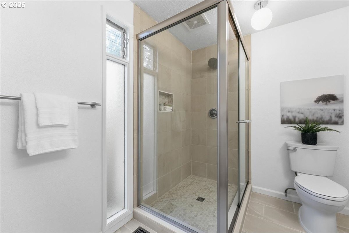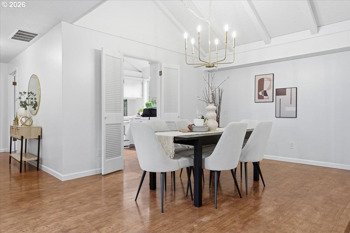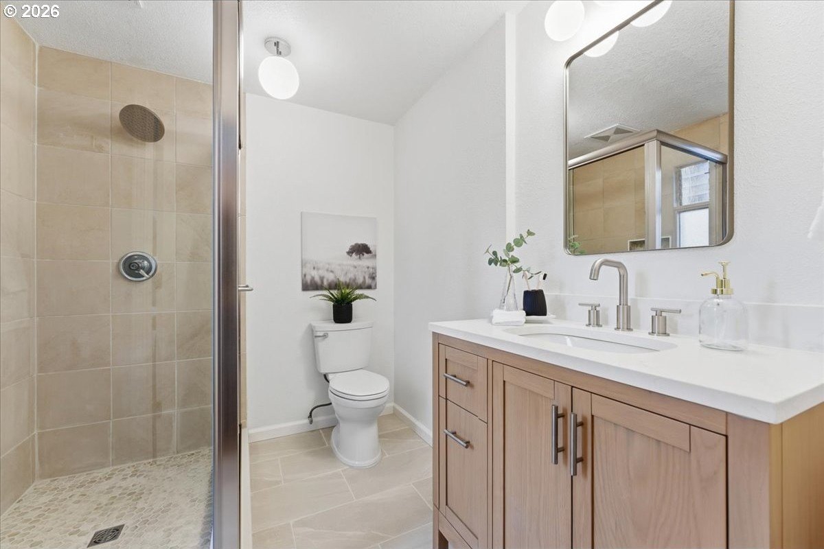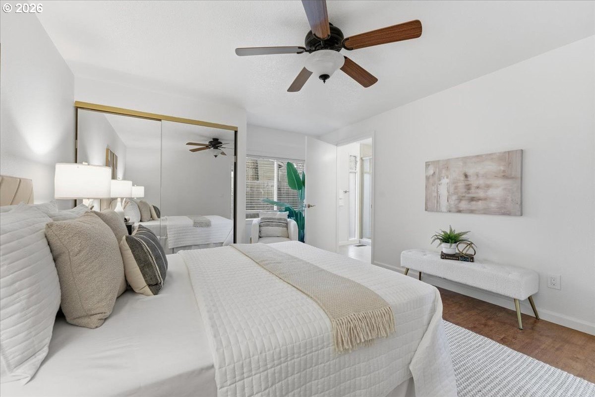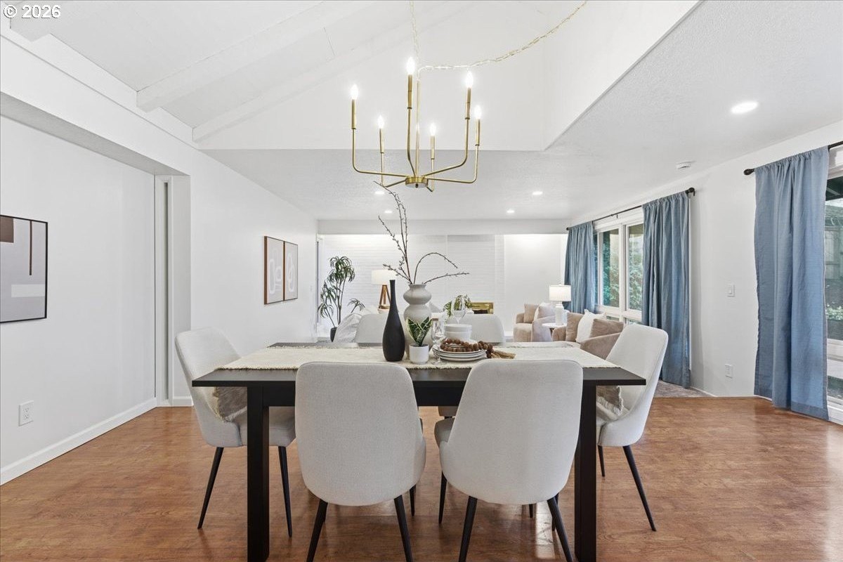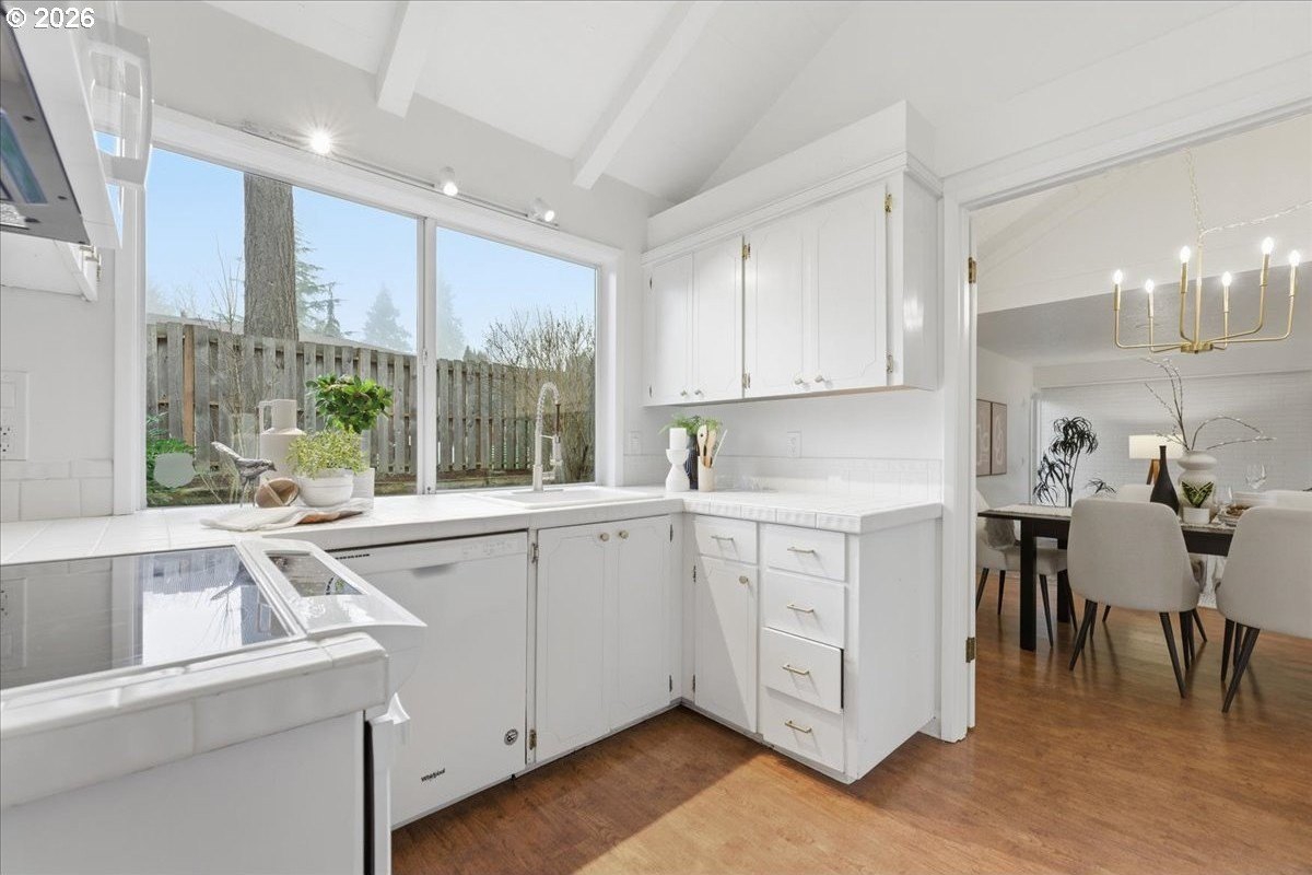 Mid-century charm meets modern updates in the coveted Four Seasons neighborhood. This rare one-level 1969 home welcomes you with a double-door entry, vaulted dining area, and a sunken living room with a white fireplace featuring a wall-to-wall mantle and soft backlighting. Walls of windows fill the home with natural light and the kind of character you simply can't find often. The kitchen offers tiled countertops, gold accents, and a pass-through to the pop-out breakfast nook window perfect for greenery. Just beyond, a cozy family room opens to the brick patio. The spacious primary suite includes mirrored closet doors and a recently updated bathroom with a tiled walk-in shower. Two additional bedrooms and a modernized hall bath round out the thoughtfully designed single-level layout. Major improvements make this home truly move-in ready, including a new $50K roof with 30-year warranty, new gutter guards, a new composite front deck, fresh interior paint, new microwave, and updated bathroom vanities, faucets, and lighting. Low-maintenance bark-dust landscaping and mature trees let the architecture shine. Enjoy a peaceful HOA setting with trees, creeks, a clubhouse, and pool, all just minutes from Cedar Hills Crossing with shopping and eateries, downtown Beaverton, Nike, and Hwy 217.