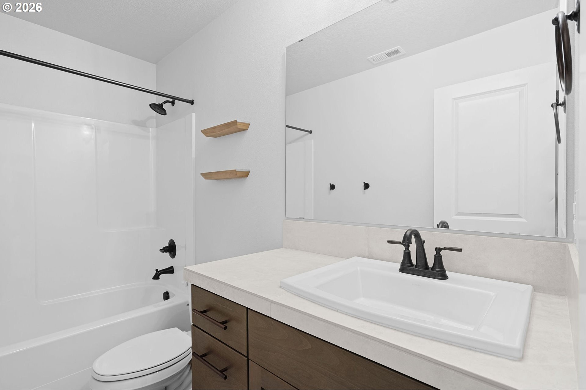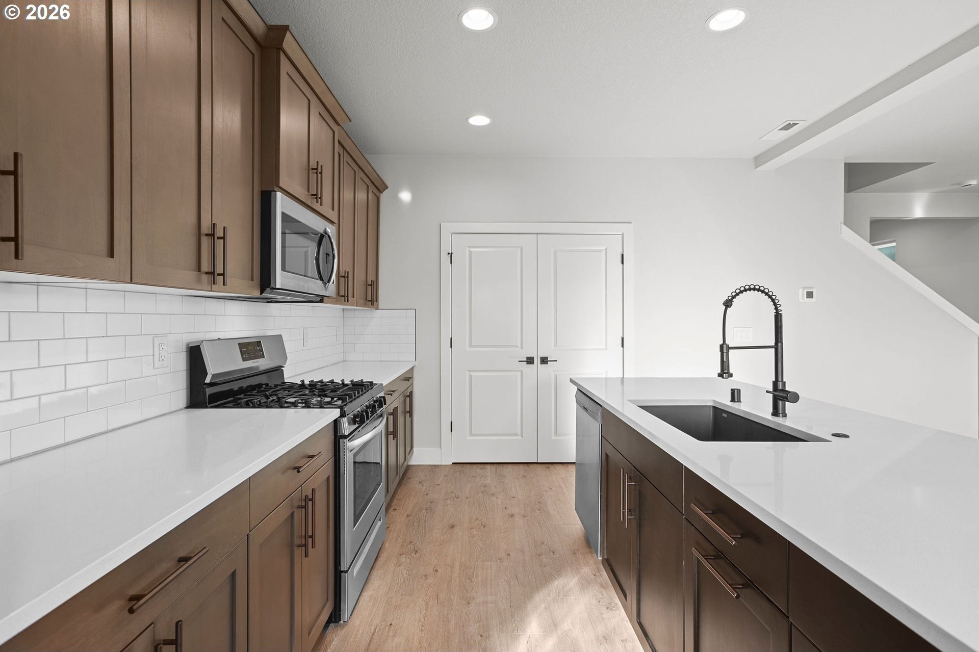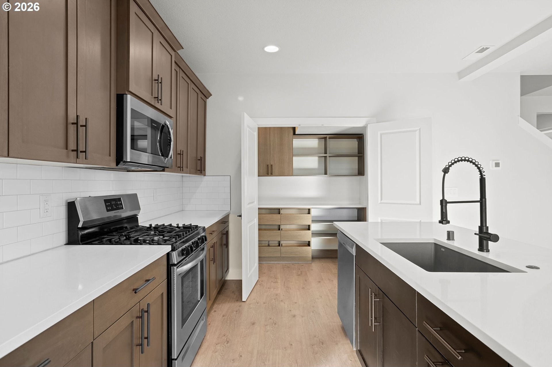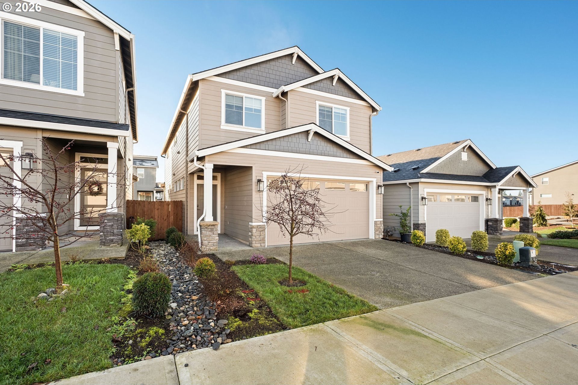 Open House 1/17 12-2 come tour it! Better than new - This exceptionally chic Pacific Lifestyle Home, completed in 2023, blends designer colors, modern finishes, and extensive upgrades to create a polished, contemporary aesthetic throughout. Situated on a premium lot with no neighbors to the south and a single-story home to the west, the home is filled with natural light. From the custom California Closets mudroom just off the foyer to the impressive walk-in pantry with stone countertops, thoughtful upgrades are evident at every turn and storage is abundant. Warm-toned LVP flooring sets the tone across the main living areas, complemented by recessed lighting, oversized windows with modern roller shades, and a cozy gas fireplace framed by built-ins - resulting in a bright, welcoming space ideal for both everyday living and entertaining. Additional enhancements include full-height kitchen cabinetry, upgraded carpet upstairs, and window treatments throughout, including blackout shades in the owner's suite. Beyond the incredible pantry and full-height cabinetry, the stunning kitchen features sleek quartz countertops, an island with eating bar, full tile backsplash, and Energy Star-qualified stainless appliances - all included. The main-level bathroom has been newly remodeled, showcasing new tile flooring and vanity. For everyday ease, upstairs, along with 4 good sized bedrooms, you'll find the laundry room - washer and dryer included for added convenience. The spacious owner's suite includes a large en-suite bath with double sinks and generous walk-in closet. An oversized garage, along with an upgraded, fully landscaped backyard featuring a retaining wall, plant patio, lawn, curated native plantings, and a covered porch, completes the offering. Located just minutes from I-5, near shopping and schools. Meticulously maintained and move-in ready - this home is ready to be Yours!