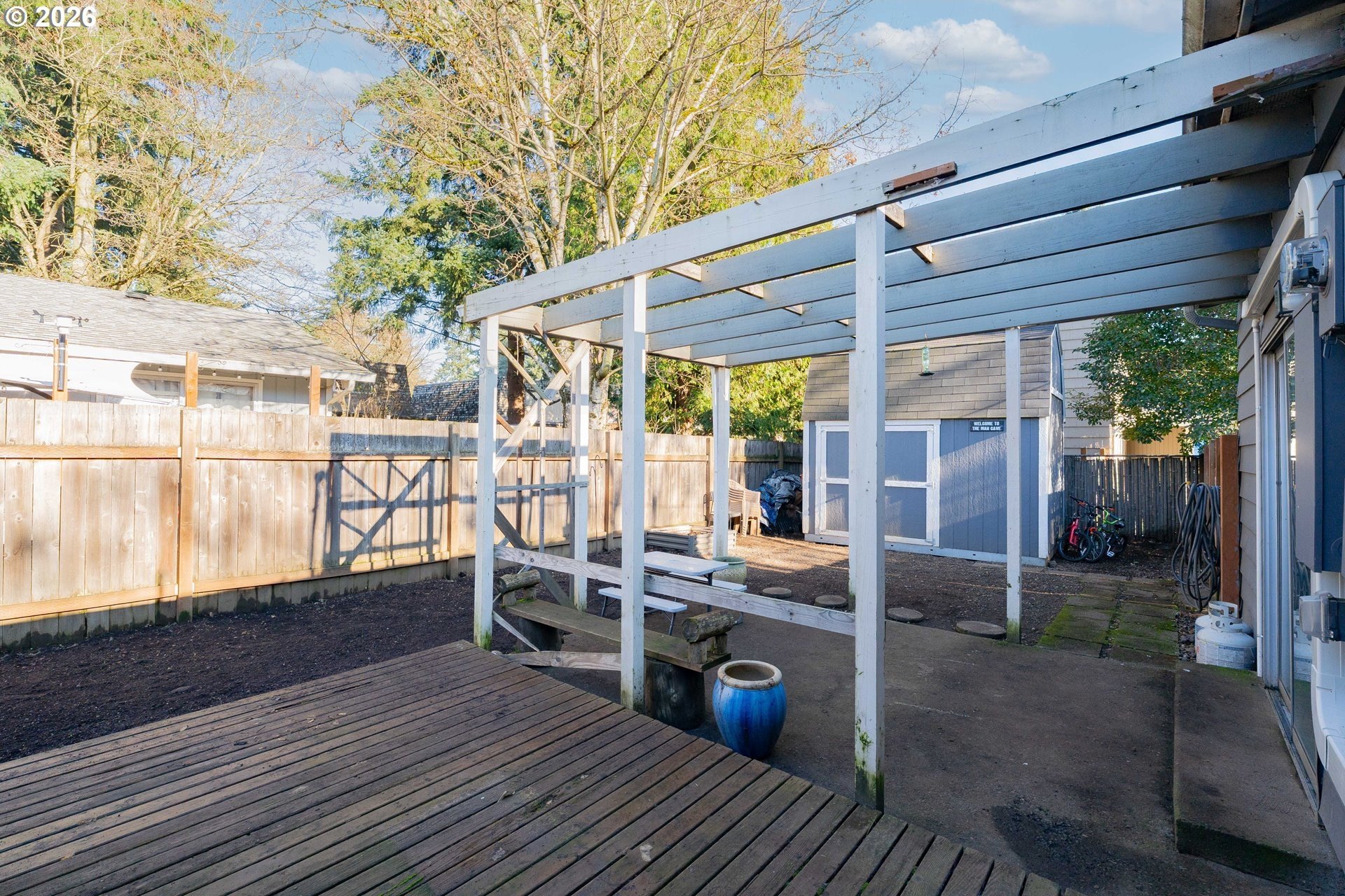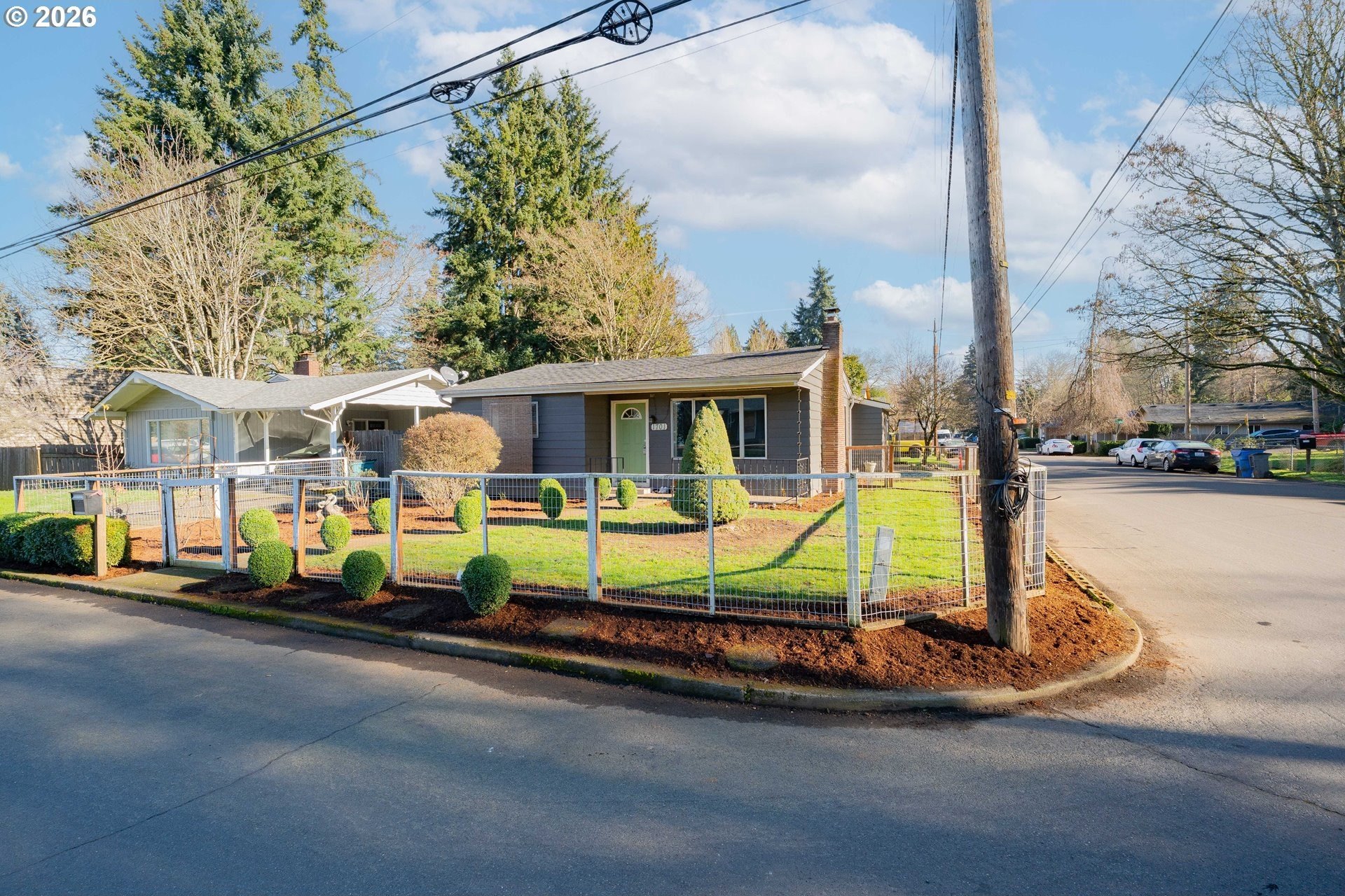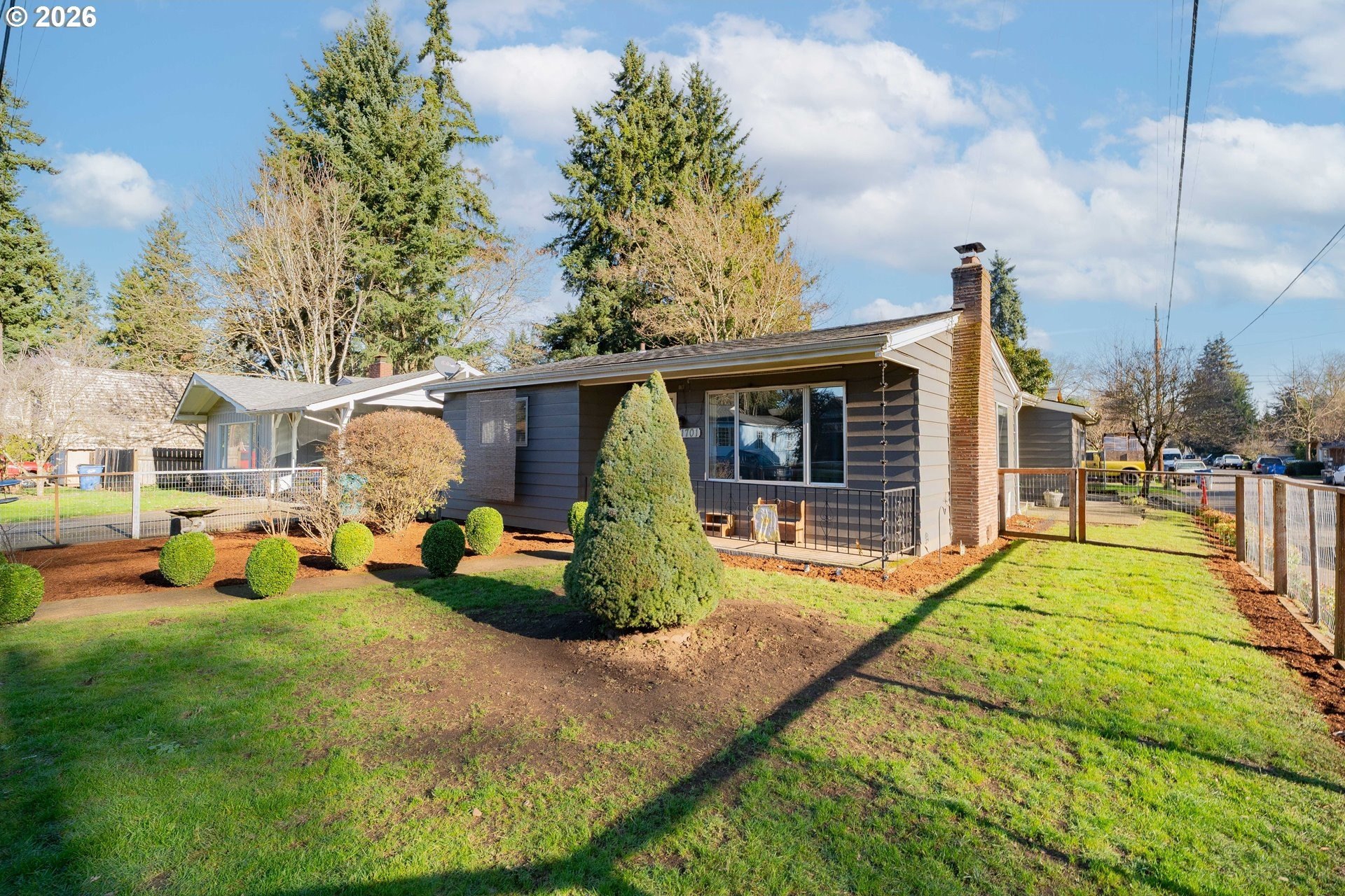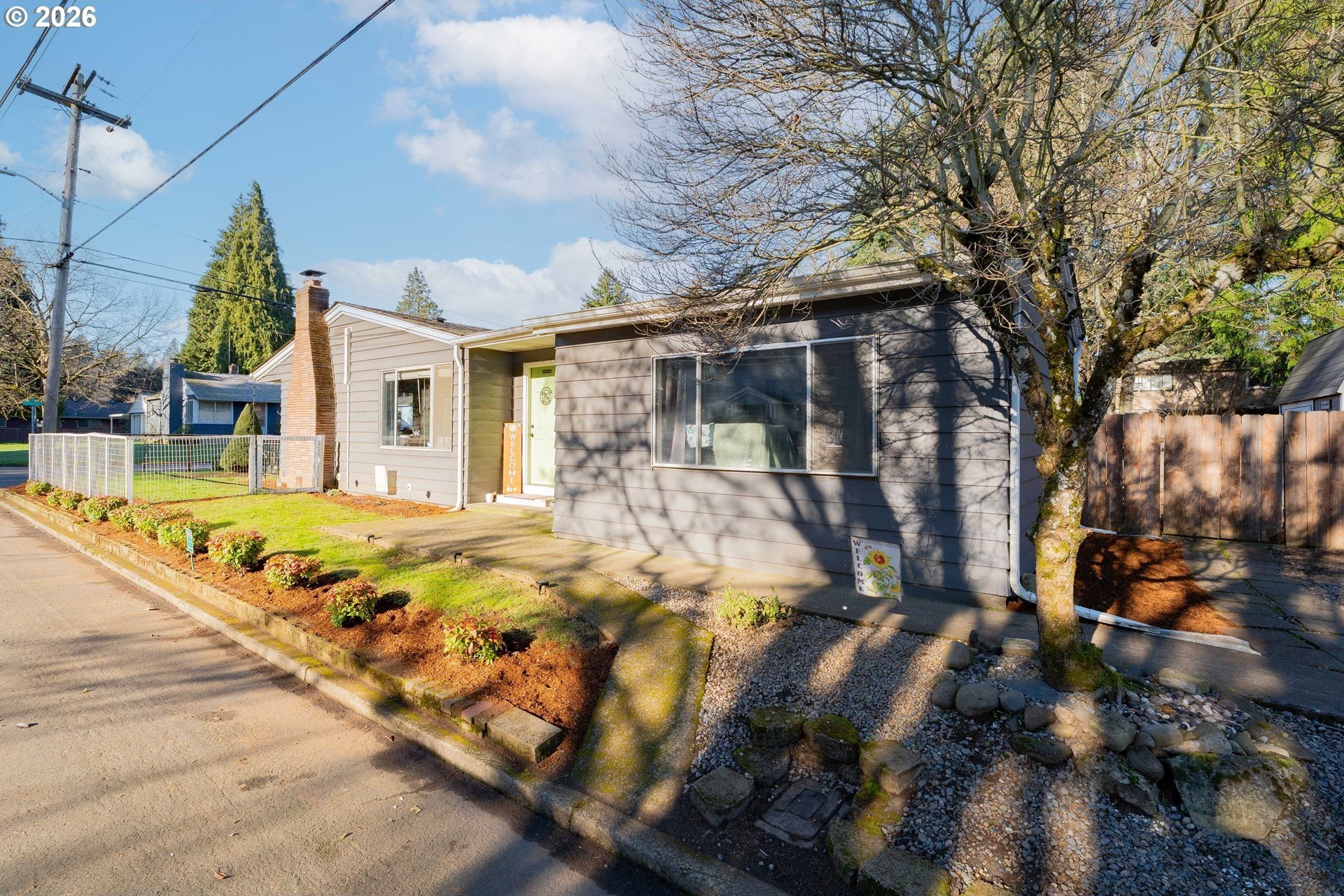 Welcome home! This 1,210-square-foot mid-century-inspired bungalow blends vintage character with modern comfort in a way that feels effortlessly cool. The spacious living room features a classic coved ceiling, sleek laminate flooring, and a statement brick fireplace with a wood stove insert - perfect for cozy nights in. The dining room adds subtle architectural interest with wainscoting and a coved ceiling, while the kitchen delivers everyday style with solid surface counters, a full tile backsplash, and stainless appliances. The vaulted owner's suite feels light and airy with an exposed beam ceiling, a convenient laundry closet, and direct access to the patio. Brand-new ductless heating and cooling add year-round comfort and energy efficiency and a newer roof and complete house repipe will add additional peace of mind! Set on a generous corner lot, the fully fenced front and back yards offer space to garden, relax, or host friends, with a deck, covered patio, and large shed for added storage. Centrally located near Clark College, multiple parks, the VA Hospital, downtown, shopping, dining, and more, this home offers a smart blend of character, comfort, and city convenience. Open House Saturday, January 17 from 12-2pm - come take a look!