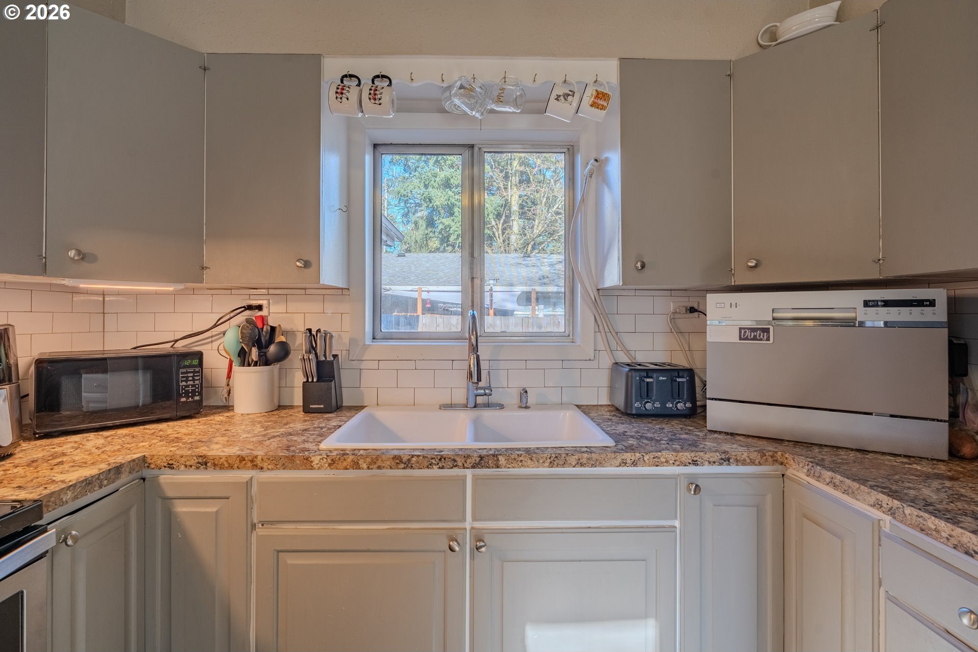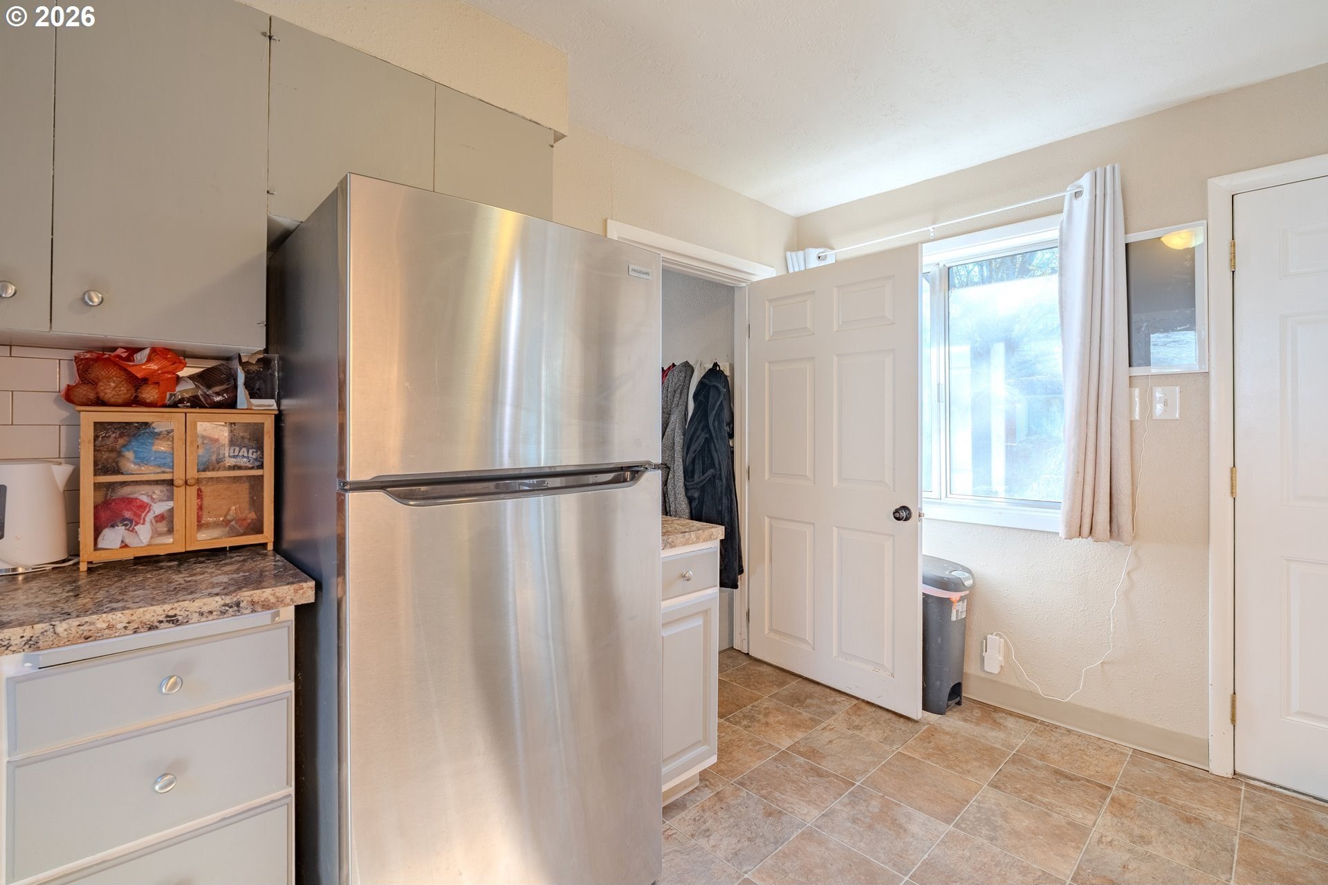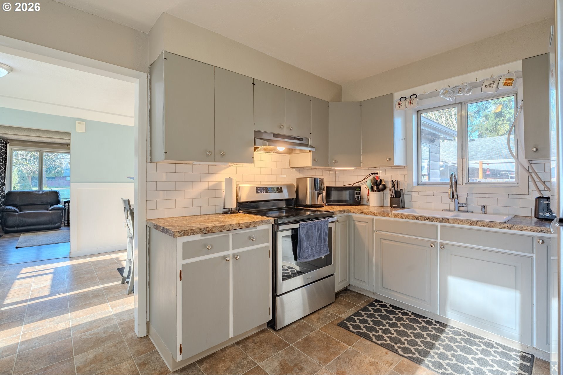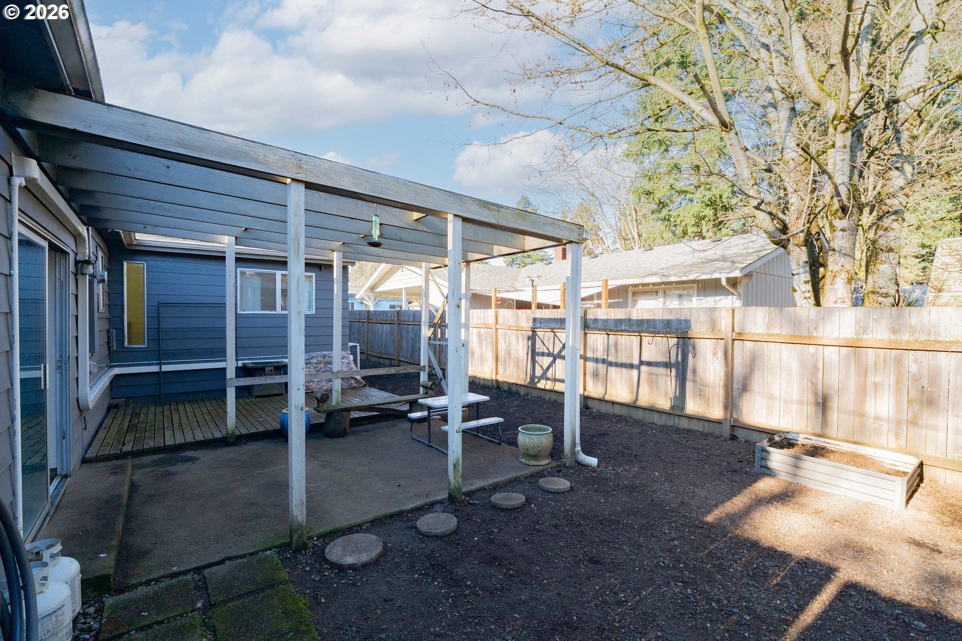 Welcome home! This 1,210-square-foot mid-century-inspired bungalow blends vintage character with modern comfort in a way that feels effortlessly cool. The spacious living room features a classic coved ceiling, sleek laminate flooring, and a statement brick fireplace with a wood stove insert - perfect for cozy nights in. The dining room adds subtle architectural interest with wainscoting and a coved ceiling, while the kitchen delivers everyday style with solid surface counters, a full tile backsplash, and stainless appliances. The vaulted owner's suite feels light and airy with an exposed beam ceiling, a convenient laundry closet, and direct access to the patio. Brand-new ductless heating and cooling add year-round comfort and energy efficiency and a newer roof and complete house repipe will add additional peace of mind! Set on a generous corner lot, the fully fenced front and back yards offer space to garden, relax, or host friends, with a deck, covered patio, and large shed for added storage. Centrally located near Clark College, multiple parks, the VA Hospital, downtown, shopping, dining, and more, this home offers a smart blend of character, comfort, and city convenience. Open House Saturday, January 17 from 12-2pm - come take a look!